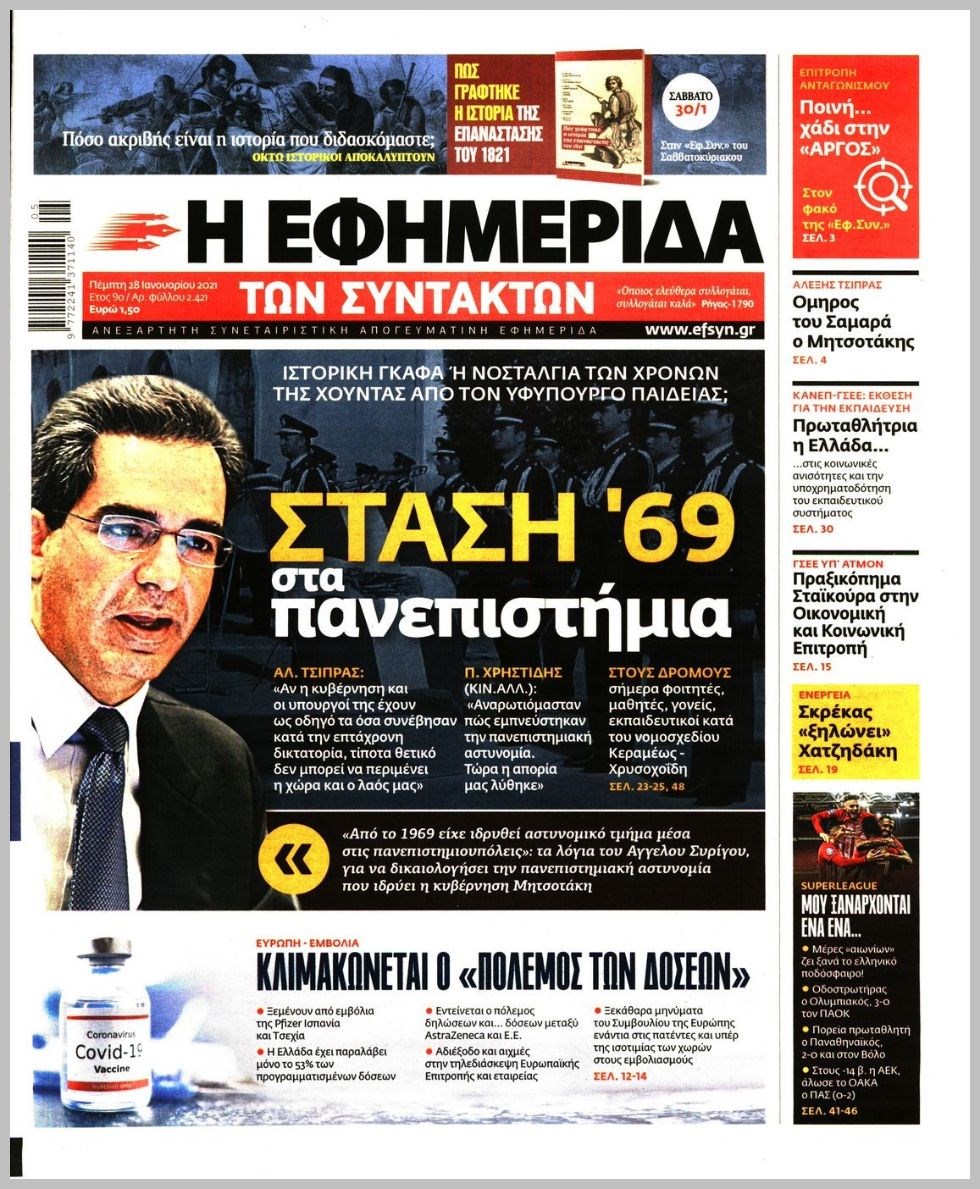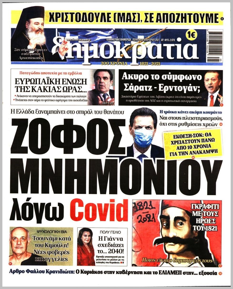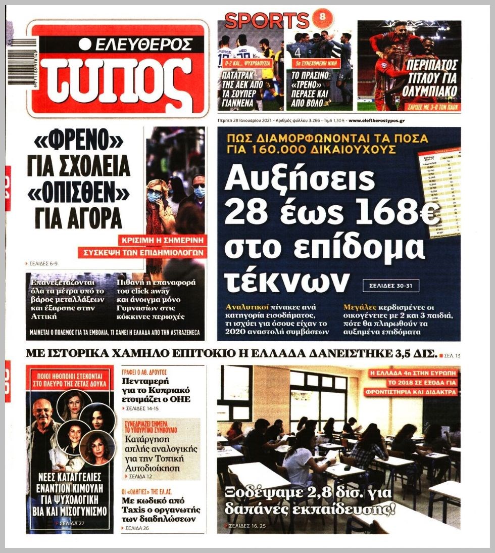 Οι πολιτικές εφημερίδες 28/1/2021 Διονύσης Νίκκας 06:07, Πέμπτη 28 Ιανουαρίου 2021 Media Διαβάστε τα πρωτοσέλιδα των πολιτικών εφημερίδων… ΕΦΗΜΕΡΙΔΕΣ ΠΟΛΙΤΙΚΕΣ ΕΦΗΜΕΡΙΔΕΣ ΠΡΩΤΟΣΕΛΙΔΑ Μοιράσου το: σχολίασε κι εσύ (0 σχόλια) Ακολουθήστε το enikos.gr στο Google News και μάθετε πρώτοι όλες τις ειδήσεις Δείτε όλες τις τελευταίες ειδήσεις από την Ελλάδα και τον Κόσμο στο enikos.gr Ειδήσεις Ροή Ειδήσεων 57 λεπτά πριν Γκύζη: Ιδιόχειρο σημείωμα άφησε ο 74χρονος που μαχαίρωσε την σύζυγό του και αυτοκτόνησε – Με τραύματα στο λαιμό νοσηλεύεται η 67χρονη 3 ώρες πριν Μπριζίτ Μπαρντό: Η ζωή και η καριέρα ενός μύθου που έγινε συνώνυμο της ομορφιάς – Ποια ήταν η θρυλική «Μπεμπέ» 5 ώρες πριν Καιρός: Προ των πυλών η ψυχρή εισβολή – Ποδαρικό με τσουχτερό κρύο θα κάνει το 2026, πού θα χιονίσει 2 ώρες πριν Γλυφάδα: Ποινική δίωξη στον Ivan Greko για το πλημμέλημα της αποδοχής προϊόντων εγκλήματος 4 ώρες πριν Παραμένουν στα μπλόκα οι αγρότες της δυτικής Θεσσαλίας – «Εμείς θα φύγουμε τελευταίοι» 59 λεπτά πριν Τα 4 ζώδια που προσελκύουν αφθονία και τύχη τον Ιανουάριο του 2026 – «Το νέο έτος μπαίνει με το δεξί» 6 ώρες πριν Από τα 150 στα 68 κιλά: Γυναίκα μοιράζεται το πρόγραμμα διατροφής και άσκησης που την βοήθησε να χάσει βάρος χωρίς στερήσεις 5 ώρες πριν Αν κάποιος συγγενής σας έχει αυτές τις 9 συμπεριφορές στις οικογενειακές συγκεντρώσεις, πιθανότατα είναι βαθιά δυστυχισμένος 2 ώρες πριν Η απλή χημική λύση που μπορεί να φέρει επανάσταση στις μπαταρίες ροής 2 λεπτά πριν Κουίζ για την παλιά Αθήνα: Αναγνωρίζετε την οδό; Έχετε περάσει 100% από εκεί 10 λεπτά πριν Τρόμος στον Ταύρο: Μαχαίρωσε υπάλληλο πρακτορείου τυχερών παιχνιδιών, την κλείδωσε σε γραφείο και άρπαξε 10.000 ευρώ 18 λεπτά πριν Κρίσιμες βουλευτικές εκλογές στο Κόσοβο – Το φαβορί για τη νίκη και τα σενάρια για σχηματισμό κυβέρνησης 26 λεπτά πριν Αγρότες: Διακόπτεται εκ νέου η κυκλοφορία των φορτηγών αυτοκινήτων στον κόμβο του Ορμενίου και το Τελωνείο των Κήπων 34 λεπτά πριν Ιωάννης Παπαζήσης: Δεν μπορούσα να καταλάβω ποτέ την ανωτερότητα του σκηνοθέτη απέναντι στον ηθοποιό ENIKOS NETWORK Η εκπληκτική ηλικία που κορυφώνεται η σωματική δύναμη – Πότε κατέγραψαν τα ρεκόρ τους Federer και Modric Μακροζωία: Οι 4 «χρυσοί» κανόνες που νικούν το χρόνο – Τι ανακάλυψαν κορυφαίοι επιστήμονες στην Ιαπωνία Νέο κρατικό επίδομα γέννησης ύψους έως και 3.000 ευρώ- Όλες οι λεπτομέρειες Νέα προκήρυξη ΑΣΕΠ για προσλήψεις στο Δημόσιο μετά την Πρωτοχρονιά 2026: Αυτές είναι οι ειδικότητες που ζητούνται -Πότε αρχ... Ο Google Assistant θα παραμείνει λίγο περισσότερο για ορισμένους χρήστες Android Τεστ προσωπικότητας: Το βάζο που θα επιλέξετε αποκαλύπτει πώς λύνετε προβλήματα στη ζωή σας περισσότερα 11:22 , Κυριακή 28 Δεκεμβρίου 2025 Τηλεθέαση (27/12): Τα ποσοστά για το βράδυ του Σαββάτου Η «μάχη» της prime time για την τηλεθέαση, συνεχίστηκε δυναμικά το βράδυ του Σαββάτου (27/12).... 10:14 , Κυριακή 28 Δεκεμβρίου 2025 Τηλεθέαση (27/12): Πώς κινήθηκαν οι εκπομπές στην πρωινή ζώνη το Σάββατο Συνεχίστηκε η μάχη για την τηλεθέαση στην πρωινή ζώνη των τηλεοπτικών καναλιών το Σάββατο (27/... 09:49 , Κυριακή 28 Δεκεμβρίου 2025 Η Realnews στο www.pressreader.com Διαβάστε την ψηφιακή έκδοση της εφημερίδας στην οθόνη του κινητού, του tablet και του υπολογισ... 07:02 , Κυριακή 28 Δεκεμβρίου 2025 Σήμερα με τη Realnews: Ό,τι και αν αγοράσεις, σκανάρεις και κερδίζεις! Σήμερα με τη Realnews: Ό,τι και αν αγοράσεις, σκανάρεις και κερδίζεις! Με το PADU app, το κορυ... ΤΕΛΕΥΤΑΙΕΣ ΕΙΔΗΣΕΙΣ 10 λεπτ