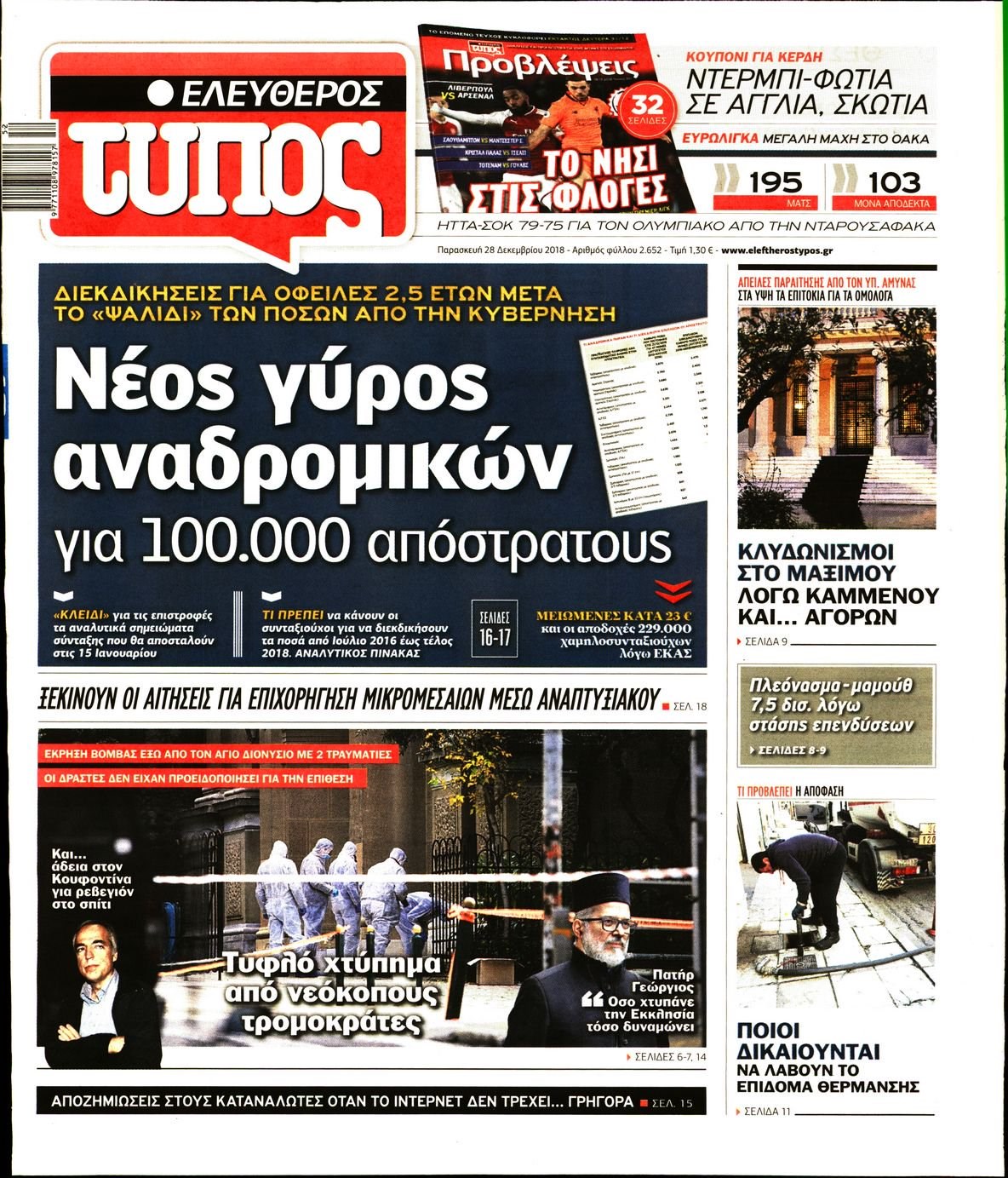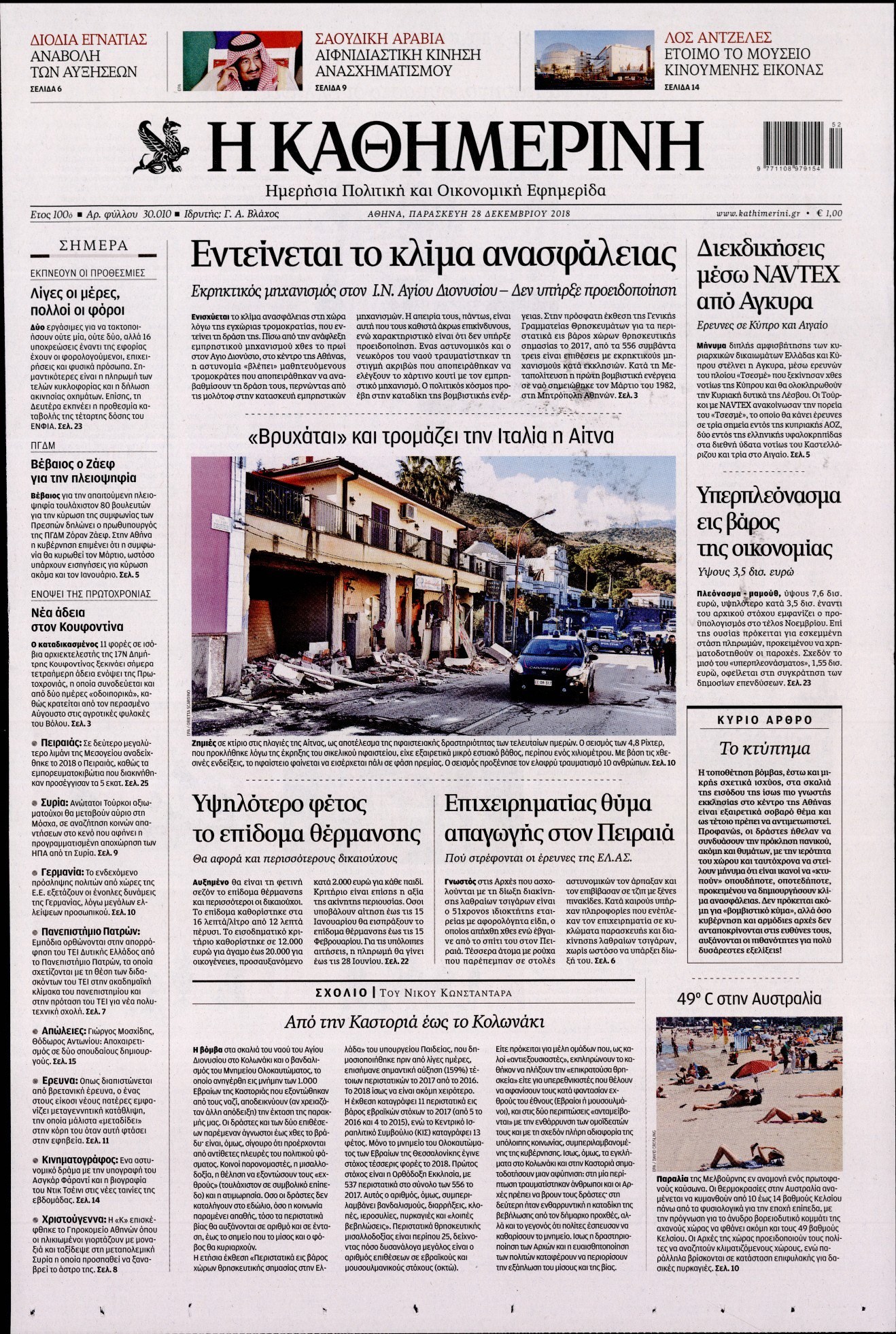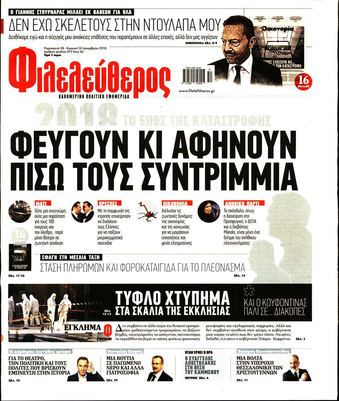 Οι πολιτικές εφημερίδες 28/12/18 Enikos Newsroom 06:24, Παρασκευή 28 Δεκεμβρίου 2018 Media Διαβάστε τα πρωτοσέλιδα των πολιτικών εφημερίδων: ΠΟΛΙΤΙΚΕΣ ΕΦΗΜΕΡΙΔΕΣ ΠΡΩΤΟΣΕΛΙΔΑ Μοιράσου το: σχολίασε κι εσύ (0 σχόλια) Ακολουθήστε το enikos.gr στο Google News και μάθετε πρώτοι όλες τις ειδήσεις Δείτε όλες τις τελευταίες ειδήσεις από την Ελλάδα και τον Κόσμο στο enikos.gr Ειδήσεις Ροή Ειδήσεων 3 ώρες πριν Υπόθεση Έπσταϊν: Το Υπουργείο Δικαιοσύνης δημοσιοποίησε μια σειρά από εξαιρετικά επεξεργασμένα αρχεία – «Λείπουν τα πιο σημαντικά έγγραφα», λένε οι Δημοκρατικοί 15 λεπτά πριν Γιορτές με μπλόκα για τους αγρότες: Ανοίγουν διόδια και μοιράζουν προϊόντα στους ταξιδιώτες 47 λεπτά πριν Εξαφάνιση 33χρονου γιατρού στην Κρήτη: «Άναψα τα φώτα, τρόμαξε και άρχισε να τρέχει στα χωράφια» – Η τελευταία διαδρομή και η μαρτυρία «κλειδί» 2 ώρες πριν Ο «χάρτης» με τις αυξήσεις και τις φοροελαφρύνσεις του 2026 – Ποιοι και πόσα κερδίζουν 31 λεπτά πριν Τα αρχεία του Έπσταϊν αποκαλύπτουν φωτογραφία του έκπτωτου πρίγκιπα Άντριου – Είναι ξαπλωμένος στην αγκαλιά 5 γυναικών 38 λεπτά πριν Μία νέα «χρυσή» περίοδος αρχίζει για 3 ζώδια από σήμερα – «Μία αναπάντεχη ευκαιρία οδηγεί στην επιτυχία» 5 ώρες πριν Αυγά: Πόσα μπορείτε να τρώτε την ημέρα με ασφάλεια για μέγιστη πρόσληψη πρωτεΐνης 3 ώρες πριν Αρχαιολόγοι ανακάλυψαν σε χωράφι απεικόνιση 600 ετών ενός Αγίου – Τα στοιχεία που δείχνουν ότι μαρτύρησε 2 ώρες πριν Αγχώνεται για το χριστουγεννιάτικο δώρο που πήρε στην πλούσια σύντροφό του – «Φοβάμαι πως θα το βρει φθηνιάρικο, φοράει βραχιόλια Cartier» 7 λεπτά πριν e-ΕΦΚΑ και ΔΥΠΑ: Οι πληρωμές από 22 έως 24 Δεκεμβρίου – Ποιοι θα δουν χρήματα στους λογαριασμούς τους 15 λεπτά πριν Συνελήφθη οδηγός μηχανής που έτρεχε με 161 χλμ στη Συγγρού – Τον έπιασε το ραντάρ της Τροχαίας 15 λεπτά πριν Γιορτές με μπλόκα για τους αγρότες: Ανοίγουν διόδια και μοιράζουν προϊόντα στους ταξιδιώτες 23 λεπτά πριν Τηλεθέαση (19/12): Κυριάρχησε η σειρά «Το σόι σου» – Τι νούμερα έκανε ο τελικός του GNTM 31 λεπτά πριν Τα αρχεία του Έπσταϊν αποκαλύπτουν φωτογραφία του έκπτωτου πρίγκιπα Άντριου – Είναι ξαπλωμένος στην αγκαλιά 5 γυναικών ENIKOS NETWORK Είστε μόνιμα απρόσεκτοι; 3 σημάδια που δείχνουν ότι μπορεί να είναι σύμπτωμα πάθησης Πόσα κιλά παίρνουμε πραγματικά τα Χριστούγεννα, σύμφωνα με την επιστήμη – Πώς να το αποτρέψουμε; Επίδομα παιδιού: Τι αλλάζει από το 2026 – Το όφελος από τις φορολογικές ελαφρύνσεις Mega χριστουγεννιάτικη φορολοταρία: «Κλείδωσε» η ημερομηνία για την κλήρωση – Ερωτήσεις και απαντήσεις Χαρτογραφώντας το «σημείο χωρίς επιστροφή»: Για πρώτη φορά αποκαλύπτεται με λεπτομέρεια το ακανθώδες όριο της ατμόσφαιρας τ... Η Google καταργεί τη λειτουργία «dark web report» – Πώς θα μπορούν οι χρήστες να διαγράφουν τα δεδομένα τους περισσότερα 09:30 , Σάββατο 20 Δεκεμβρίου 2025 «Porto Leone: Στη γειτονιά με τα κόκκινα φανάρια» – Ο Χρόνης αποκαλύπτει στην Αλεξάνδρα το μυστικό για το παιδί της Λένας Η μεγάλη δραματική σειρά του Apha «Porto Leone: Στη γειτονιά με τα κόκκινα φανάρια» μας μεταφέ... 08:14 , Σάββατο 20 Δεκεμβρίου 2025 Τρομεροί γονείς: Η Μαρία Καβογιάννη εισβάλλει στο σπίτι της οικογένειας Στεφανίδη Όσα θα δούμε στο νέο διπλό επεισόδιο της σειράς «Τρομεροί γονείς», σήμερα Σάββατο 20 Δεκεμβρίο... 05:48 , Σάββατο 20 Δεκεμβρίου 2025 Οι οικονομικές εφημερίδες 20/12/2025 Διαβάστε τα πρωτοσέλιδα από τις οικονομικές εφημερίδες, σήμερα 20/12/2025. 05:43 , Σάββατο 20 Δεκεμβρίου 2025 Οι αθλητικές εφη