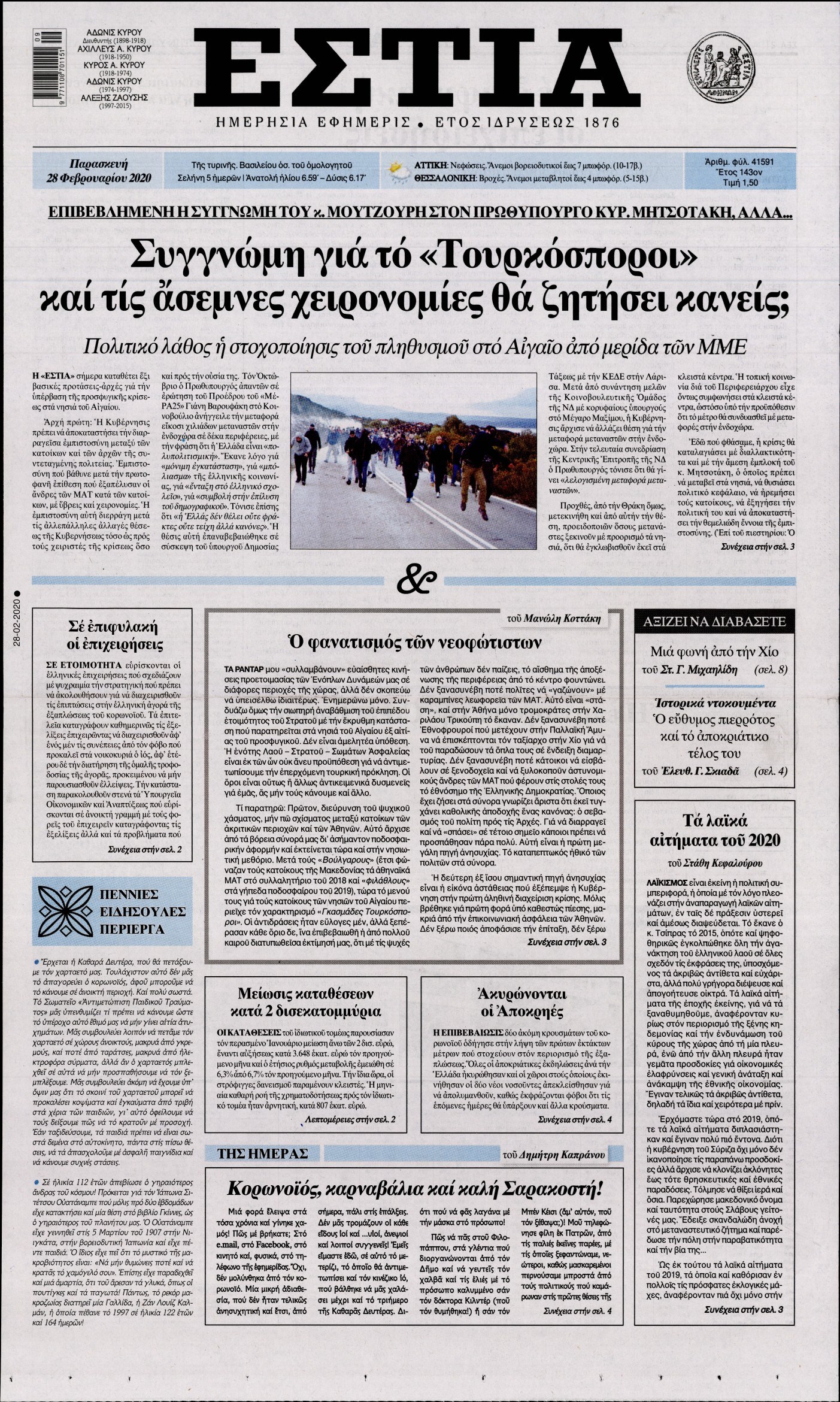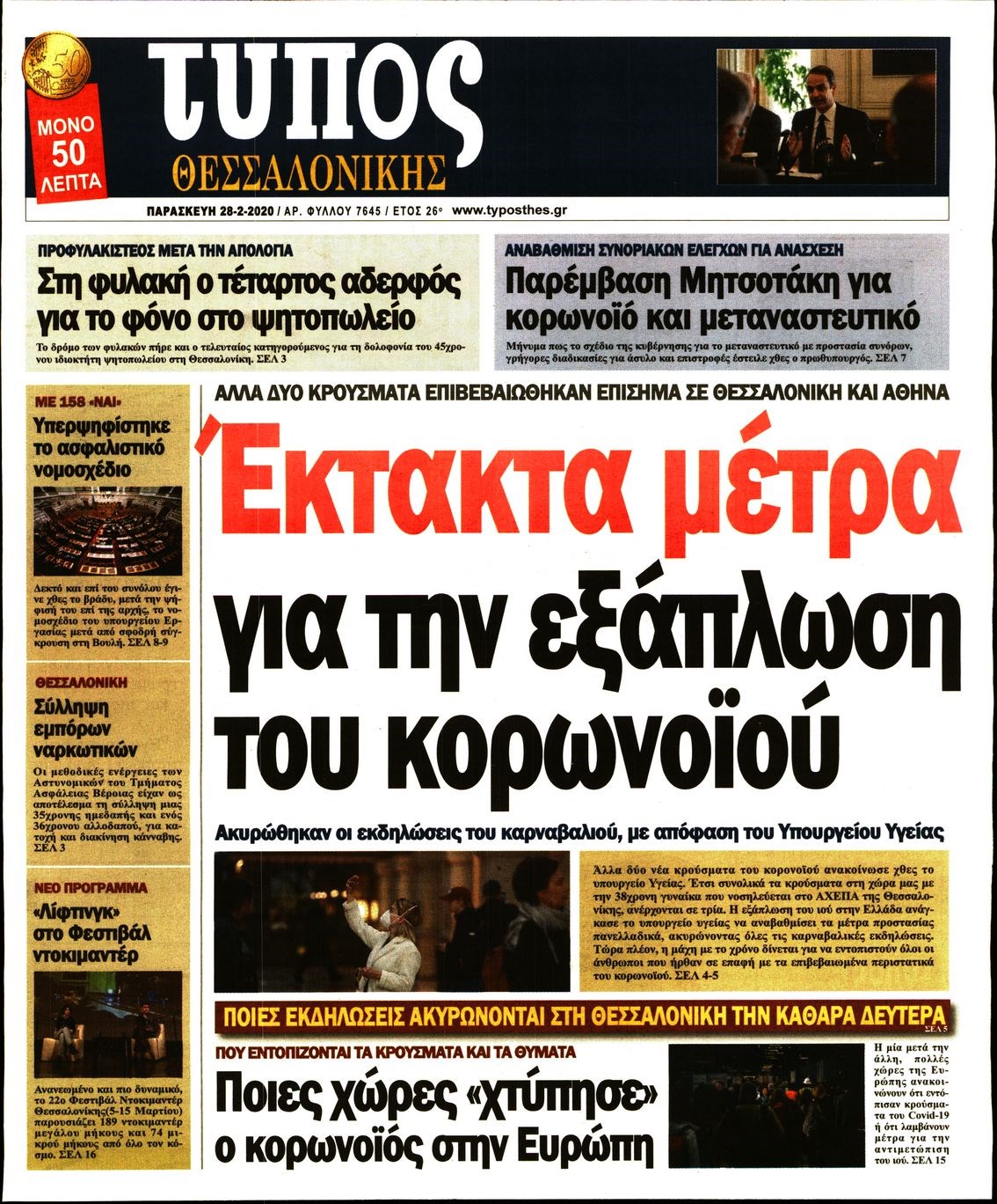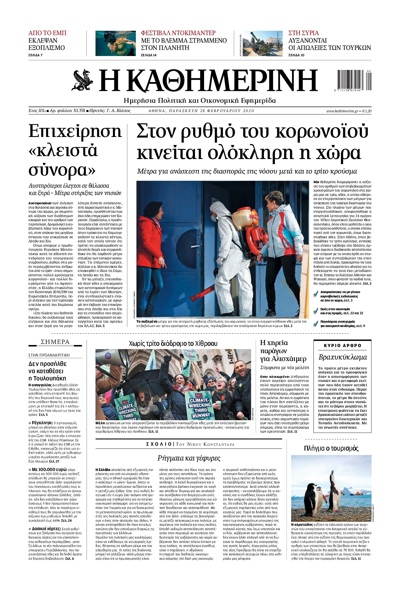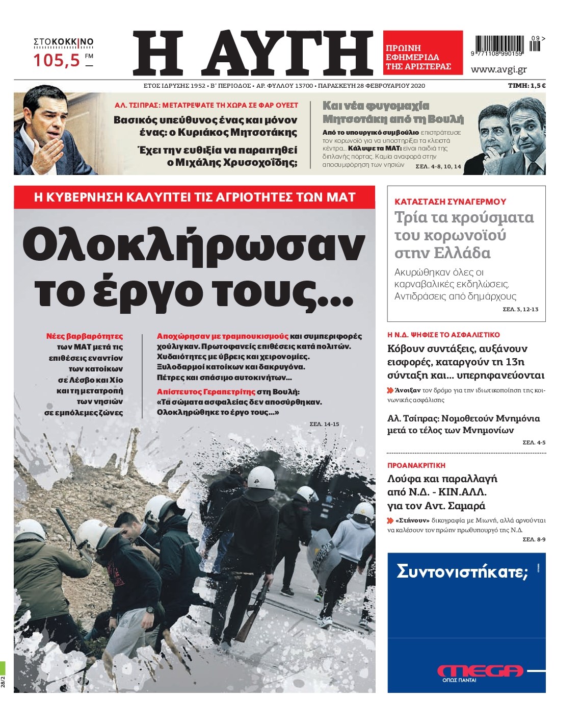 Οι πολιτικές εφημερίδες 28/2/2020 Διονύσης Νίκκας 06:05, Παρασκευή 28 Φεβρουαρίου 2020 Media Διαβάστε τα πρωτοσέλιδα των πολιτικών εφημερίδων… ΠΟΛΙΤΙΚΕΣ ΕΦΗΜΕΡΙΔΕΣ ΠΡΩΤΟΣΕΛΙΔΑ Μοιράσου το: σχολίασε κι εσύ (0 σχόλια) Ακολουθήστε το enikos.gr στο Google News και μάθετε πρώτοι όλες τις ειδήσεις Δείτε όλες τις τελευταίες ειδήσεις από την Ελλάδα και τον Κόσμο στο enikos.gr Ειδήσεις Ροή Ειδήσεων 4 ώρες πριν Χριστούγεννα στα μπλόκα: Επιμένουν στις κινητοποιήσεις τους οι αγρότες – Ανοίγουν τα διόδια το Σαββατοκύριακο 4 ώρες πριν Ουκρανία: Η άνευ προηγουμένου επίθεση σε ρωσικό τάνκερ στη Μεσόγειο και το μήνυμα προς στον Πούτιν – Το «μακρύ χέρι» του Κιέβου 3 ώρες πριν Πούτιν: Τα μηνύματα σε Ευρώπη και ΝΑΤΟ από το μαραθώνιο «σόου» του – Η απαίτηση για «σεβασμό» και η ειρήνη «με τους όρους» της Μόσχας 4 ώρες πριν Τραμπ: Δεν αποκλείει την πιθανότητα ενός πολέμου στη Βενεζουέλα – «Ο Μαδούρο ξέρει καλύτερα από τον καθένα τι ακριβώς θέλω» 5 ώρες πριν Συνεχίζει να προκαλεί ο Μίτσκοσκι: «Για μένα το όνομα Μακεδονία είναι ιερό» 3 ώρες πριν Ανακαλύφθηκαν αρχαία χρυσά νομίσματα 2.200 ετών που απεικονίζουν τον θεό Απόλλωνα – Η άγνωστη σύνδεση με τον Φίλιππο Β΄ της Μακεδονίας 4 ώρες πριν Ύπνος: Μια κρυφή κατάσταση του εγκεφάλου πριν από τον ύπνο μπορεί να είναι το “κλειδί” για υψηλή ευφυΐα και δημιουργικότητα 5 ώρες πριν Αριθμολογία: Οι άνθρωποι που έχουν γεννηθεί αυτές τις 4 ημερομηνίες, συχνά παρεξηγούνται – «Η καλοσύνη τους κρύβει τεράστια δύναμη» 6 ώρες πριν Ξεχάστε το καθάρισμα το Σαββατοκύριακο: Ο «κανόνας των 20 λεπτών» που θα σας λύσει τα χέρια 14 λεπτά πριν ΗΠΑ: Τραγωδία στην Αλαμπάμα – Σκότωσε την δημοσιογράφο σύζυγό του και αυτοκτόνησε μπροστά στον 3χρονο γιο τους 29 λεπτά πριν Πρόταση γάμου στο ΣΕΦ κατά την διάρκεια του αγώνα Ολυμπιακός-Βιλερμπάν – Δείτε βίντεο 44 λεπτά πριν Euroleague: Επέστρεψε στις νίκες ο Ολυμπιακός, πήρε την ματσάρα της χρονιάς η Μπάρτσα – Τα αποτελέσματα και η βαθμολογία 59 λεπτά πριν Συρία: Μαζικά πλήγματα των ΗΠΑ σε θέσεις του Ισλαμικού Κράτους – Χέγκσεθ: «Δεν είναι αρχή πολέμου, είναι μια δήλωση εκδίκησης» για το θάνατο των στρατιωτών μας 1 ώρα πριν Ουκρανία: Ολοκληρώθηκαν οι συνομιλίες με τους Αμερικανούς κι Ευρωπαίους διαπραγματευτές ENIKOS NETWORK Το ΕΚΑΒ τιμήθηκε από την Ακαδημία Αθηνών για τα 40 χρόνια προσφοράς του Έχετε πραγματικά μεγάλη καρδιά; 10 χαρακτηριστικά όσων έχουν καλοσύνη Αναστολή μέτρων αναγκαστικής εκτέλεσης για κτηνοτρόφους που πλήττονται από την ευλογιά των αιγοπροβάτων Πλήρης επάρκεια προϊόντων στις λαϊκές της Αττικής, παρά τις αγροτικές κινητοποιήσεις – Τι απαντούν οι πωλητές Χαρτογραφώντας το «σημείο χωρίς επιστροφή»: Για πρώτη φορά αποκαλύπτεται με λεπτομέρεια το ακανθώδες όριο της ατμόσφαιρας τ... Η Google καταργεί τη λειτουργία «dark web report» – Πώς θα μπορούν οι χρήστες να διαγράφουν τα δεδομένα τους περισσότερα 22:42 , Παρασκευή 19 Δεκεμβρίου 2025 Γιώργος Γιαννόπουλος για “Το σόι σου”: “Είναι ευτυχία και ευλογία αυτή η σειρά” «Είναι ευτυχία και ευλογία η συγκυρία αυτής της σειράς», θα πει ο Γιώργος Γιαννόπουλος -ο αγαπ... 20:37 , Παρασκευή 19 Δεκεμβρίου 2025 Don’t Forget The Lyrics: Η Έλλη Κοκκίνου υποδέχεται 4 παίκτες που θα κάνουν τα πάντα για να μη χάσουν ούτε… μισή λέξη από τους στίχους Το «Don’t Forget The Lyrics» επιστρέφει απόψε, Παρασκευή 19 Δεκεμβρίου, στις 21:00 με νέο επει... 19:31 , Παρασκευή 19 Δεκεμβρίου 2025 GNTM: Απόψε ο μεγάλος τελικός για τους 4 φιναλίστ Έπειτ