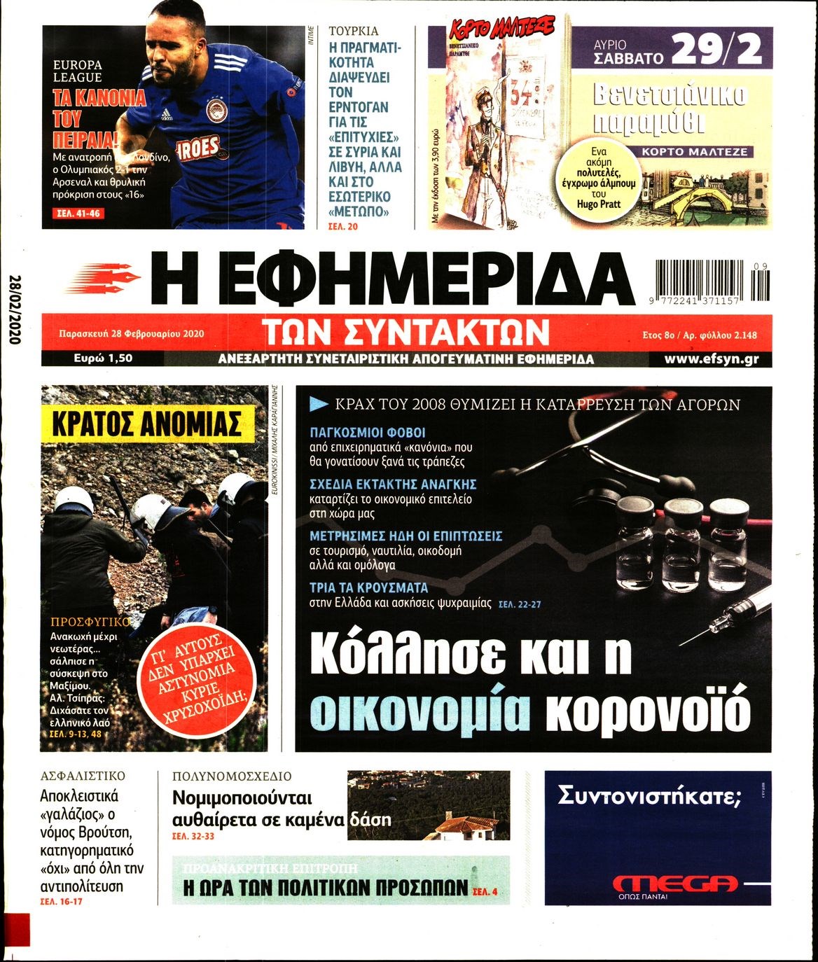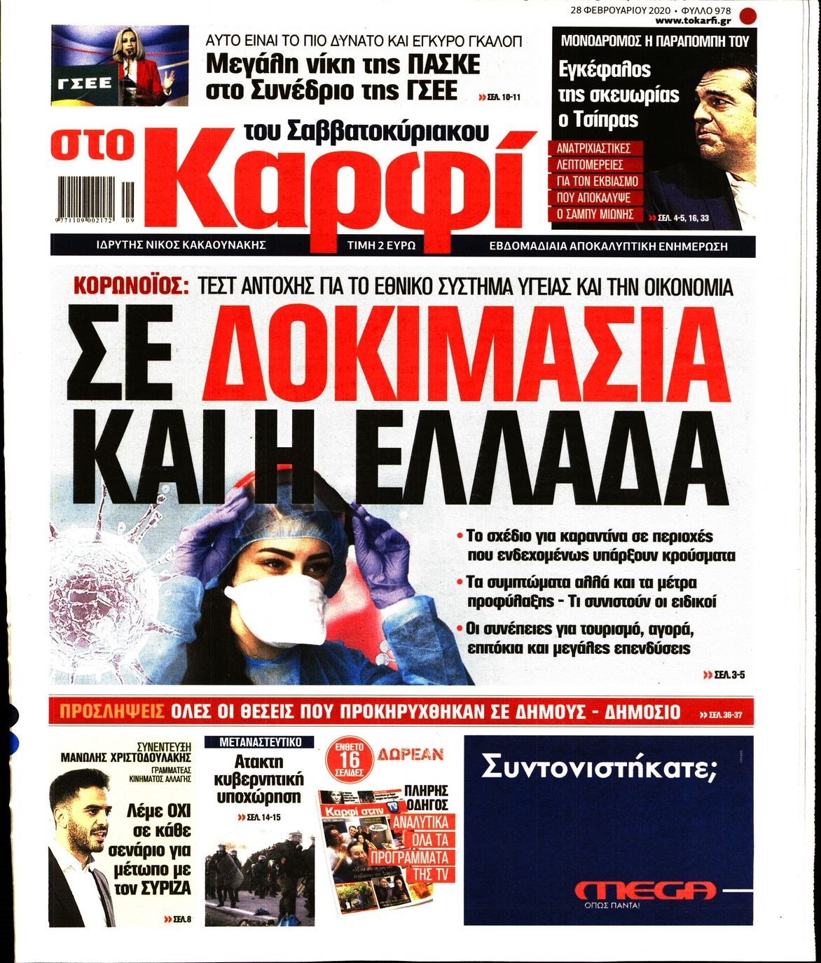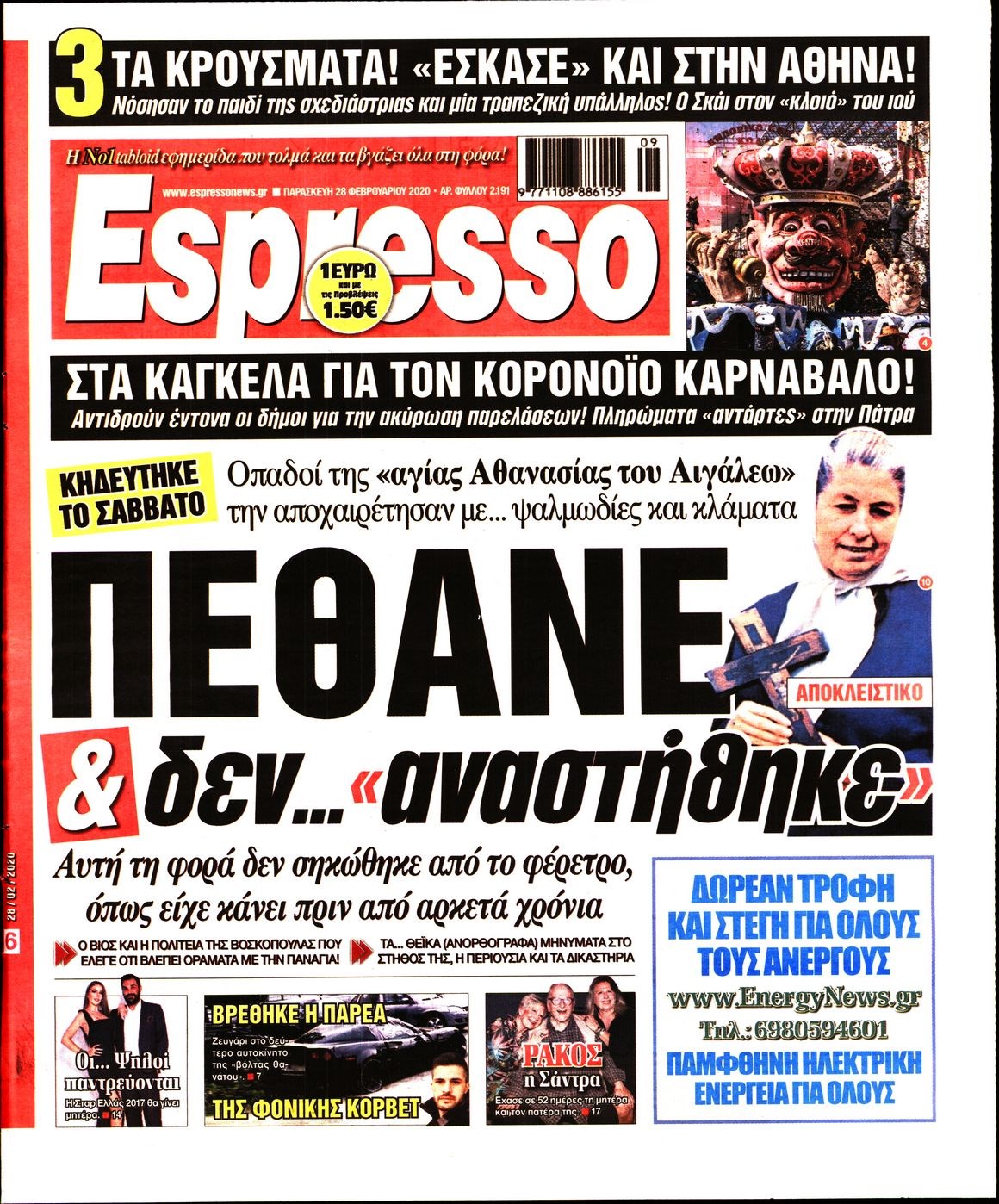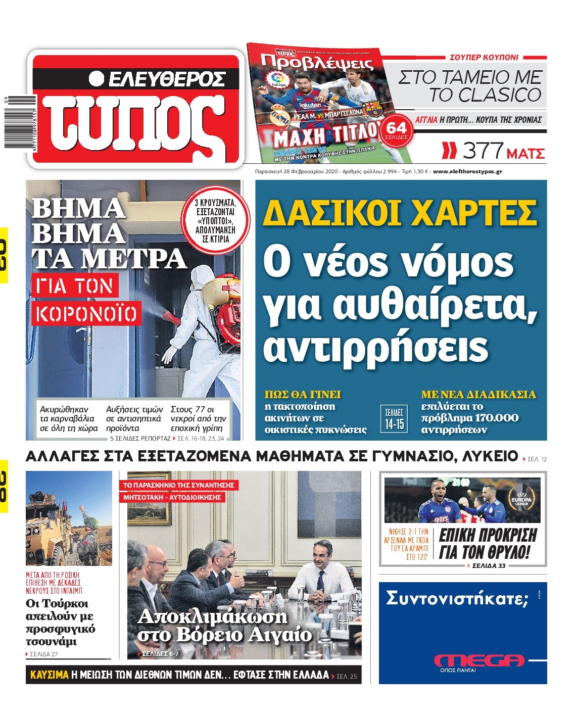 Οι πολιτικές εφημερίδες 28/2/2020 Διονύσης Νίκκας 06:05, Παρασκευή 28 Φεβρουαρίου 2020 Media Διαβάστε τα πρωτοσέλιδα των πολιτικών εφημερίδων… ΠΟΛΙΤΙΚΕΣ ΕΦΗΜΕΡΙΔΕΣ ΠΡΩΤΟΣΕΛΙΔΑ Μοιράσου το: σχολίασε κι εσύ (0 σχόλια) Ακολουθήστε το enikos.gr στο Google News και μάθετε πρώτοι όλες τις ειδήσεις Δείτε όλες τις τελευταίες ειδήσεις από την Ελλάδα και τον Κόσμο στο enikos.gr Ειδήσεις Ροή Ειδήσεων 4 ώρες πριν Χριστούγεννα στα μπλόκα: Επιμένουν στις κινητοποιήσεις τους οι αγρότες – Ανοίγουν τα διόδια το Σαββατοκύριακο 4 ώρες πριν Ουκρανία: Η άνευ προηγουμένου επίθεση σε ρωσικό τάνκερ στη Μεσόγειο και το μήνυμα προς στον Πούτιν – Το «μακρύ χέρι» του Κιέβου 3 ώρες πριν Πούτιν: Τα μηνύματα σε Ευρώπη και ΝΑΤΟ από το μαραθώνιο «σόου» του – Η απαίτηση για «σεβασμό» και η ειρήνη «με τους όρους» της Μόσχας 4 ώρες πριν Τραμπ: Δεν αποκλείει την πιθανότητα ενός πολέμου στη Βενεζουέλα – «Ο Μαδούρο ξέρει καλύτερα από τον καθένα τι ακριβώς θέλω» 5 ώρες πριν Συνεχίζει να προκαλεί ο Μίτσκοσκι: «Για μένα το όνομα Μακεδονία είναι ιερό» 3 ώρες πριν Ανακαλύφθηκαν αρχαία χρυσά νομίσματα 2.200 ετών που απεικονίζουν τον θεό Απόλλωνα – Η άγνωστη σύνδεση με τον Φίλιππο Β΄ της Μακεδονίας 4 ώρες πριν Ύπνος: Μια κρυφή κατάσταση του εγκεφάλου πριν από τον ύπνο μπορεί να είναι το “κλειδί” για υψηλή ευφυΐα και δημιουργικότητα 5 ώρες πριν Αριθμολογία: Οι άνθρωποι που έχουν γεννηθεί αυτές τις 4 ημερομηνίες, συχνά παρεξηγούνται – «Η καλοσύνη τους κρύβει τεράστια δύναμη» 6 ώρες πριν Ξεχάστε το καθάρισμα το Σαββατοκύριακο: Ο «κανόνας των 20 λεπτών» που θα σας λύσει τα χέρια 14 λεπτά πριν ΗΠΑ: Τραγωδία στην Αλαμπάμα – Σκότωσε την δημοσιογράφο σύζυγό του και αυτοκτόνησε μπροστά στον 3χρονο γιο τους 29 λεπτά πριν Πρόταση γάμου στο ΣΕΦ κατά την διάρκεια του αγώνα Ολυμπιακός-Βιλερμπάν – Δείτε βίντεο 44 λεπτά πριν Euroleague: Επέστρεψε στις νίκες ο Ολυμπιακός, πήρε την ματσάρα της χρονιάς η Μπάρτσα – Τα αποτελέσματα και η βαθμολογία 59 λεπτά πριν Συρία: Μαζικά πλήγματα των ΗΠΑ σε θέσεις του Ισλαμικού Κράτους – Χέγκσεθ: «Δεν είναι αρχή πολέμου, είναι μια δήλωση εκδίκησης» για το θάνατο των στρατιωτών μας 1 ώρα πριν Ουκρανία: Ολοκληρώθηκαν οι συνομιλίες με τους Αμερικανούς κι Ευρωπαίους διαπραγματευτές ENIKOS NETWORK Το ΕΚΑΒ τιμήθηκε από την Ακαδημία Αθηνών για τα 40 χρόνια προσφοράς του Έχετε πραγματικά μεγάλη καρδιά; 10 χαρακτηριστικά όσων έχουν καλοσύνη Αναστολή μέτρων αναγκαστικής εκτέλεσης για κτηνοτρόφους που πλήττονται από την ευλογιά των αιγοπροβάτων Πλήρης επάρκεια προϊόντων στις λαϊκές της Αττικής, παρά τις αγροτικές κινητοποιήσεις – Τι απαντούν οι πωλητές Χαρτογραφώντας το «σημείο χωρίς επιστροφή»: Για πρώτη φορά αποκαλύπτεται με λεπτομέρεια το ακανθώδες όριο της ατμόσφαιρας τ... Η Google καταργεί τη λειτουργία «dark web report» – Πώς θα μπορούν οι χρήστες να διαγράφουν τα δεδομένα τους περισσότερα 22:42 , Παρασκευή 19 Δεκεμβρίου 2025 Γιώργος Γιαννόπουλος για “Το σόι σου”: “Είναι ευτυχία και ευλογία αυτή η σειρά” «Είναι ευτυχία και ευλογία η συγκυρία αυτής της σειράς», θα πει ο Γιώργος Γιαννόπουλος -ο αγαπ... 20:37 , Παρασκευή 19 Δεκεμβρίου 2025 Don’t Forget The Lyrics: Η Έλλη Κοκκίνου υποδέχεται 4 παίκτες που θα κάνουν τα πάντα για να μη χάσουν ούτε… μισή λέξη από τους στίχους Το «Don’t Forget The Lyrics» επιστρέφει απόψε, Παρασκευή 19 Δεκεμβρίου, στις 21:00 με νέο επει... 19:31 , Παρασκευή 19 Δεκεμβρίου 2025 GNTM: Απόψε ο μεγάλος τελικός για τους 4 φιναλίστ Έπειτ