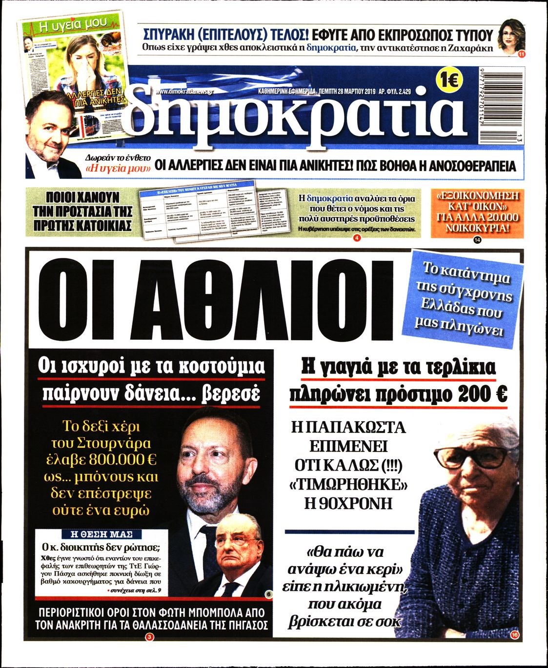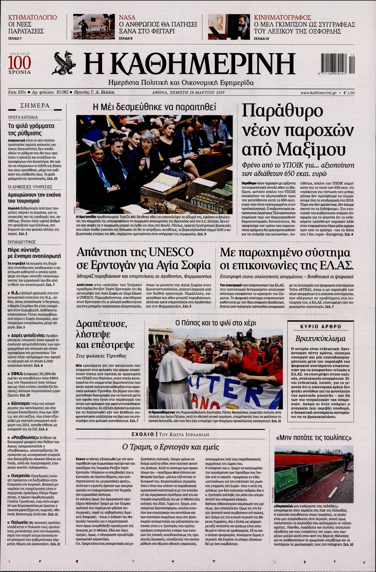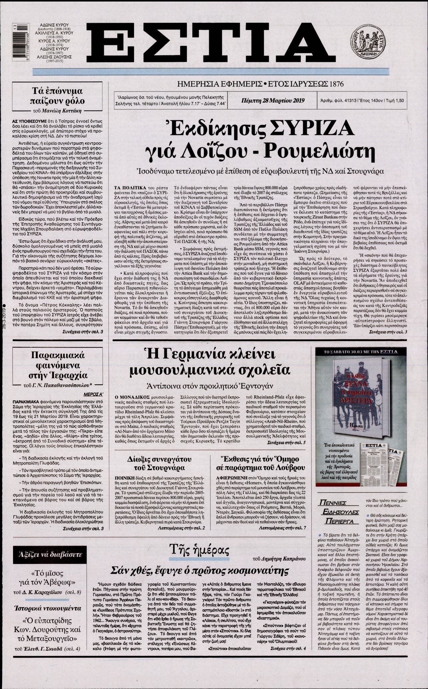 Οι πολιτικές εφημερίδες 28/3/2019 Enikos Newsroom 06:49, Πέμπτη 28 Μαρτίου 2019 Media Διαβάστε τα πρωτοσέλιδα των πολιτικών εφημερίδων: ΠΟΛΙΤΙΚΕΣ ΕΦΗΜΕΡΙΔΕΣ ΠΡΩΤΟΣΕΛΙΔΑ Μοιράσου το: σχολίασε κι εσύ (0 σχόλια) Ακολουθήστε το enikos.gr στο Google News και μάθετε πρώτοι όλες τις ειδήσεις Δείτε όλες τις τελευταίες ειδήσεις από την Ελλάδα και τον Κόσμο στο enikos.gr Ειδήσεις Ροή Ειδήσεων 5 ώρες πριν Χριστούγεννα στα μπλόκα: Επιμένουν στις κινητοποιήσεις τους οι αγρότες – Ανοίγουν τα διόδια το Σαββατοκύριακο 5 ώρες πριν Ουκρανία: Η άνευ προηγουμένου επίθεση σε ρωσικό τάνκερ στη Μεσόγειο και το μήνυμα προς στον Πούτιν – Το «μακρύ χέρι» του Κιέβου 4 ώρες πριν Πούτιν: Τα μηνύματα σε Ευρώπη και ΝΑΤΟ από το μαραθώνιο «σόου» του – Η απαίτηση για «σεβασμό» και η ειρήνη «με τους όρους» της Μόσχας 5 ώρες πριν Τραμπ: Δεν αποκλείει την πιθανότητα ενός πολέμου στη Βενεζουέλα – «Ο Μαδούρο ξέρει καλύτερα από τον καθένα τι ακριβώς θέλω» 6 ώρες πριν Συνεχίζει να προκαλεί ο Μίτσκοσκι: «Για μένα το όνομα Μακεδονία είναι ιερό» 4 ώρες πριν Ανακαλύφθηκαν αρχαία χρυσά νομίσματα 2.200 ετών που απεικονίζουν τον θεό Απόλλωνα – Η άγνωστη σύνδεση με τον Φίλιππο Β΄ της Μακεδονίας 5 ώρες πριν Ύπνος: Μια κρυφή κατάσταση του εγκεφάλου πριν από τον ύπνο μπορεί να είναι το “κλειδί” για υψηλή ευφυΐα και δημιουργικότητα 6 ώρες πριν Αριθμολογία: Οι άνθρωποι που έχουν γεννηθεί αυτές τις 4 ημερομηνίες, συχνά παρεξηγούνται – «Η καλοσύνη τους κρύβει τεράστια δύναμη» 7 ώρες πριν Ξεχάστε το καθάρισμα το Σαββατοκύριακο: Ο «κανόνας των 20 λεπτών» που θα σας λύσει τα χέρια 15 λεπτά πριν Η Ελλάδα προσχωρεί στη Διεθνή Επιτροπή Αποζημιώσεων για την Ουκρανία 30 λεπτά πριν GNTM: Η Ξένια Τσίρκοβα αναδείχθηκε μεγάλη νικήτρια και πήρε τις 50.000 ευρώ – Ποιος βρέθηκε σε απόσταση αναπνοής; 45 λεπτά πριν Θεσσαλονίκη: Εξαφανίστηκε 13χρονος από χώρο φιλοξενίας ασυνόδευτων ανηλίκων στο Ωραιόκαστρο 55 λεπτά πριν Ντόναλντ Τραμπ: «Πολύ βαριά αντίποινα» στη Συρία – «Πλήττουμε πολύ δυνατά οχυρά του Ισλαμικού Κράτους» 1 ώρα πριν Εξάρχεια: Ένταση με μολότοφ, χημικά και κρότου λάμψης ENIKOS NETWORK Το ΕΚΑΒ τιμήθηκε από την Ακαδημία Αθηνών για τα 40 χρόνια προσφοράς του Έχετε πραγματικά μεγάλη καρδιά; 10 χαρακτηριστικά όσων έχουν καλοσύνη Αναστολή μέτρων αναγκαστικής εκτέλεσης για κτηνοτρόφους που πλήττονται από την ευλογιά των αιγοπροβάτων Πλήρης επάρκεια προϊόντων στις λαϊκές της Αττικής, παρά τις αγροτικές κινητοποιήσεις – Τι απαντούν οι πωλητές Χαρτογραφώντας το «σημείο χωρίς επιστροφή»: Για πρώτη φορά αποκαλύπτεται με λεπτομέρεια το ακανθώδες όριο της ατμόσφαιρας τ... Η Google καταργεί τη λειτουργία «dark web report» – Πώς θα μπορούν οι χρήστες να διαγράφουν τα δεδομένα τους περισσότερα 02:50 , Σάββατο 20 Δεκεμβρίου 2025 GNTM: Η Ξένια Τσίρκοβα αναδείχθηκε μεγάλη νικήτρια και πήρε τις 50.000 ευρώ – Ποιος βρέθηκε σε απόσταση αναπνοής; Με φαντασμαγορικό τρόπο ολοκληρώθηκε το βράδυ της Παρασκευής ο μεγάλος τελικός του GNTM, μέσα ... 22:42 , Παρασκευή 19 Δεκεμβρίου 2025 Γιώργος Γιαννόπουλος για “Το σόι σου”: “Είναι ευτυχία και ευλογία αυτή η σειρά” «Είναι ευτυχία και ευλογία η συγκυρία αυτής της σειράς», θα πει ο Γιώργος Γιαννόπουλος -ο αγαπ... 20:37 , Παρασκευή 19 Δεκεμβρίου 2025 Don’t Forget The Lyrics: Η Έλλη Κοκκίνου υποδέχεται 4 παίκτες που θα κάνουν τα πάντα για να μη χάσουν ούτε… μισή λέξη από τους στίχους Το «Don’t Forget The Lyrics» επιστρέφει απόψε, Παρασκευή 19 Δεκεμβρίου, στις 21:00 με νέο επει... 19: