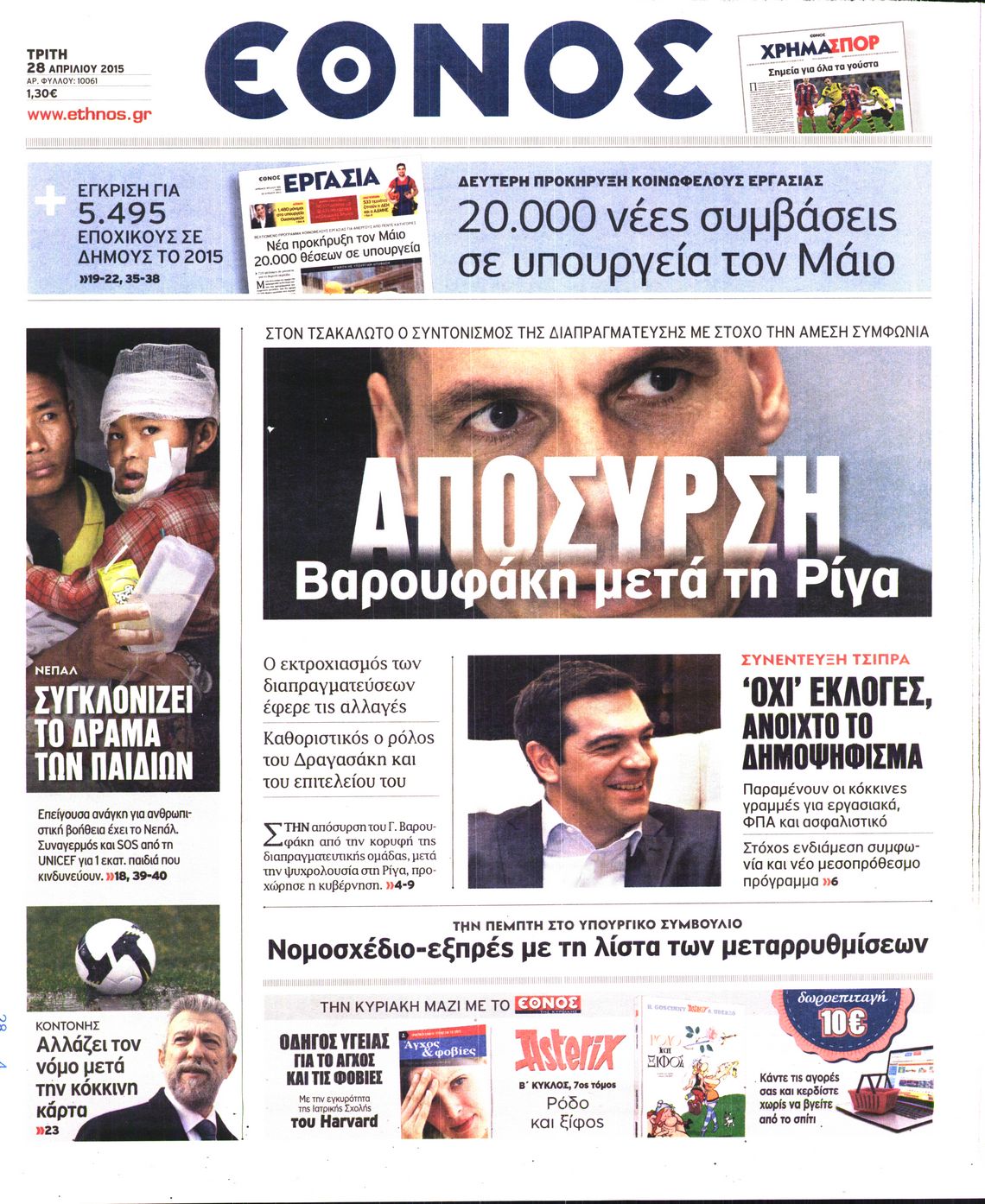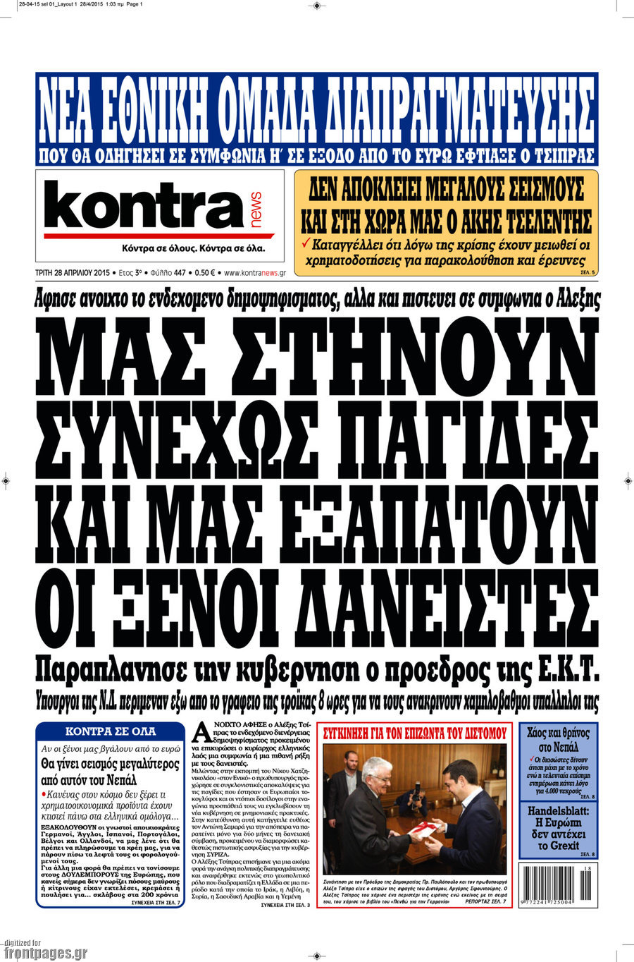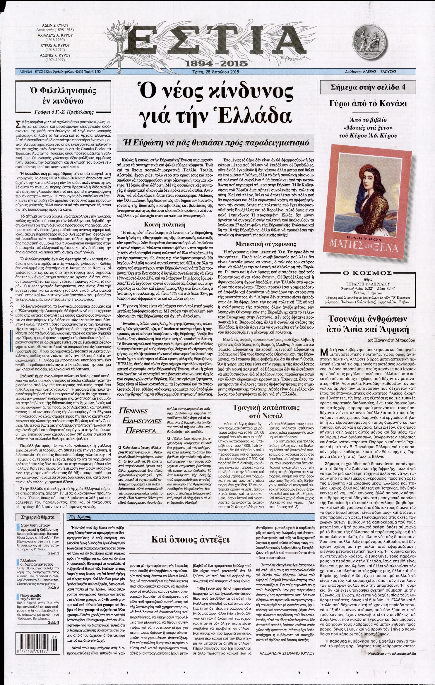 Οι πολιτικές εφημερίδες 28/4/2015 Enikos Newsroom 06:52, Τρίτη 28 Απριλίου 2015 Media Διαβάστε τα σημερινά πρωτοσέλιδα των πολιτικών εφημερίδων: ΕΦΗΜΕΡΙΔΕΣ ΠΟΛΙΤΙΚΕΣ ΕΦΗΜΕΡΙΔΕΣ ΠΡΩΤΟΣΕΛΙΔΑ ΠΡΩΤΟΣΕΛΙΔΑ ΕΦΗΜΕΡΙΔΩΝ Μοιράσου το: σχολίασε κι εσύ (0 σχόλια) Ακολουθήστε το enikos.gr στο Google News και μάθετε πρώτοι όλες τις ειδήσεις Δείτε όλες τις τελευταίες ειδήσεις από την Ελλάδα και τον Κόσμο στο enikos.gr Ειδήσεις Ροή Ειδήσεων 24 λεπτά πριν Ευρωπαϊκή Ένωση: Συμφωνία για δάνειο 90 δισ. ευρώ στην Ουκρανία τη διετία 2026-2027 5 ώρες πριν ΟΠΕΚΕΠΕ: Προφυλακιστέος ο φερόμενος αρχηγός και ο λογιστής της εγκληματικής οργάνωσης 6 ώρες πριν Αυξάνουν την πίεση προς την κυβέρνηση οι αγρότες: Κλείνουν παρακαμπτήριους και ανοίγουν διόδια – Τι θα γίνει τις γιορτές 6 ώρες πριν Φοινικούντα: Το Σάββατο απολογείται ο 30χρονος γιος γνωστού επιχειρηματία της Πλάκας που παραδόθηκε – Όσα είπε στους αστυνομικούς και ο ρόλος του στο έγκλημα 5 ώρες πριν ΑΕΚ – Κραϊόβα 3-2: Επική ανατροπή και πρόκριση στους «16» του Conference League η Ένωση 6 ώρες πριν Αρχαιολόγοι ανακάλυψαν ρωμαϊκά τεχνουργήματα από μια πόλη που δεν υπήρξε ποτέ – Τα τρία εντυπωσιακά κτίρια και ο αμφορέας με τις… σαρδέλες 7 ώρες πριν Ύπνος: Η απλή βραδινή ρουτίνα για να προστατεύσετε τα μαλλιά σας από το κρύο κατά τη διάρκεια του χειμώνα 8 ώρες πριν Manifesting: Πώς να συναντήσετε τον σύντροφο της ζωής σας, ανάλογα με τον μήνα γέννησής σας 2 ημέρες πριν 20 χρόνια τα Χριστούγεννα ξεκινούν στα Public με μεγάλη ποικιλία σε δώρα! 12 λεπτά πριν Γουατεμάλα: Εξαρθρώθηκε κύκλωμα διακίνησης μεταναστών προς τις ΗΠΑ – Συνελήφθησαν 14 άτομα 17 λεπτά πριν Βουλγαρία: Χιλιάδες πολίτες στους δρόμους κατά της απερχόμενης κυβέρνησης και της διαφθοράς 24 λεπτά πριν Ευρωπαϊκή Ένωση: Συμφωνία για δάνειο 90 δισ. ευρώ στην Ουκρανία τη διετία 2026-2027 47 λεπτά πριν Αιματηρή βομβιστική επίθεση στην Υεμένη: Τουλάχιστον τρεις νεκροί και 13 τραυματίες 51 λεπτά πριν Στη Φλόριντα σήμερα οι διαβουλεύσεις σχετικά με τα επόμενα στάδια για τη Λωρίδα της Γάζας ENIKOS NETWORK Σε περίοδο αυξημένης δραστηριότητας η γρίπη στην Ελλάδα-Μέτρα προστασίας από τον ΕΟΔΥ Σκέφτεστε συνέχεια συζητήσεις που έχετε κάνει; Τι σημαίνει αυτό, σύμφωνα με ειδικό Στεγαστικό: Τι λέει η ΠΟΜΙΔΑ για τα νέα μέτρα που ανακοίνωσε ο Κυριάκος Μητσοτάκης Λαγκάρντ: Αισιόδοξη για την ανάπτυξη της Ευρωζώνης, αβέβαιη για τον πληθωρισμό Χαρτογραφώντας το «σημείο χωρίς επιστροφή»: Για πρώτη φορά αποκαλύπτεται με λεπτομέρεια το ακανθώδες όριο της ατμόσφαιρας τ... Η Google καταργεί τη λειτουργία «dark web report» – Πώς θα μπορούν οι χρήστες να διαγράφουν τα δεδομένα τους περισσότερα 02:50 , Παρασκευή 19 Δεκεμβρίου 2025 GNTM: «Κλείδωσαν» οι τέσσερις φιναλίστ – Μεγάλη ανατροπή στις τελευταίες αποχωρήσεις Για προτελευταία φορά εμφανίστηκαν στο πλατό του GNTM οι φιναλίστ του φετινού κύκλου, το βράδυ... 17:45 , Πέμπτη 18 Δεκεμβρίου 2025 ROUK ZOUK: Εορταστικό επεισόδιο με καλεσμένους τους πρωταγωνιστές του «Γιατί ρε πατέρα» Το Σάββατο 20 Δεκεμβρίου στις 21:00, η Ζέτα Μακρυπούλια υποδέχεται εκλεκτούς ηθοποιούς που όλο... 17:20 , Πέμπτη 18 Δεκεμβρίου 2025 Άγιος έρωτας: Η Χριστίνα εξομολογείται στον πατέρα Νικόλαο, απόψε στις 21:00 στον Alpha Η Νότα αποφασίζει να εκδικηθεί τον Πέτρο και τον Στέφανο, για χάρη του Λούη, όμως τα πράγματα ... 16:50 , Πέμπτη 18 Δεκεμβρίου 2025 Να μ’ αγαπάς: Ζωή και Φωτεινή συμφιλιώνονται ως μάνα με κόρη, απόψε στις 20:00 Η ταυτότητα του Άγγελου αποκαλύπτεται στο νέο επεισόδιο 