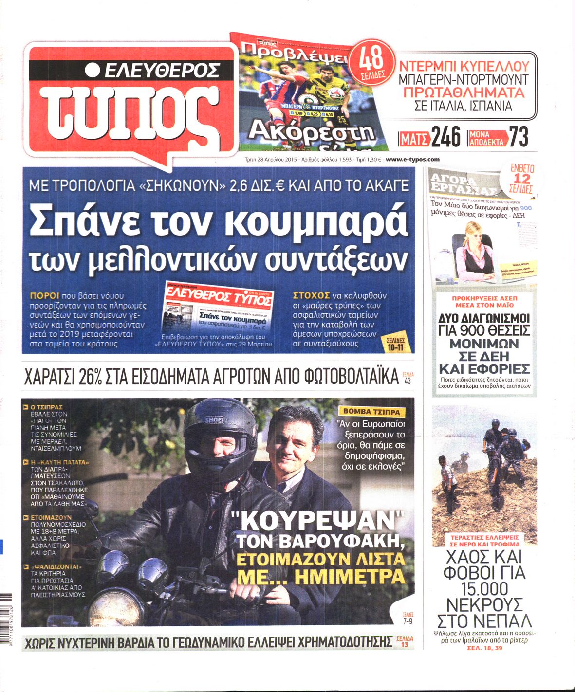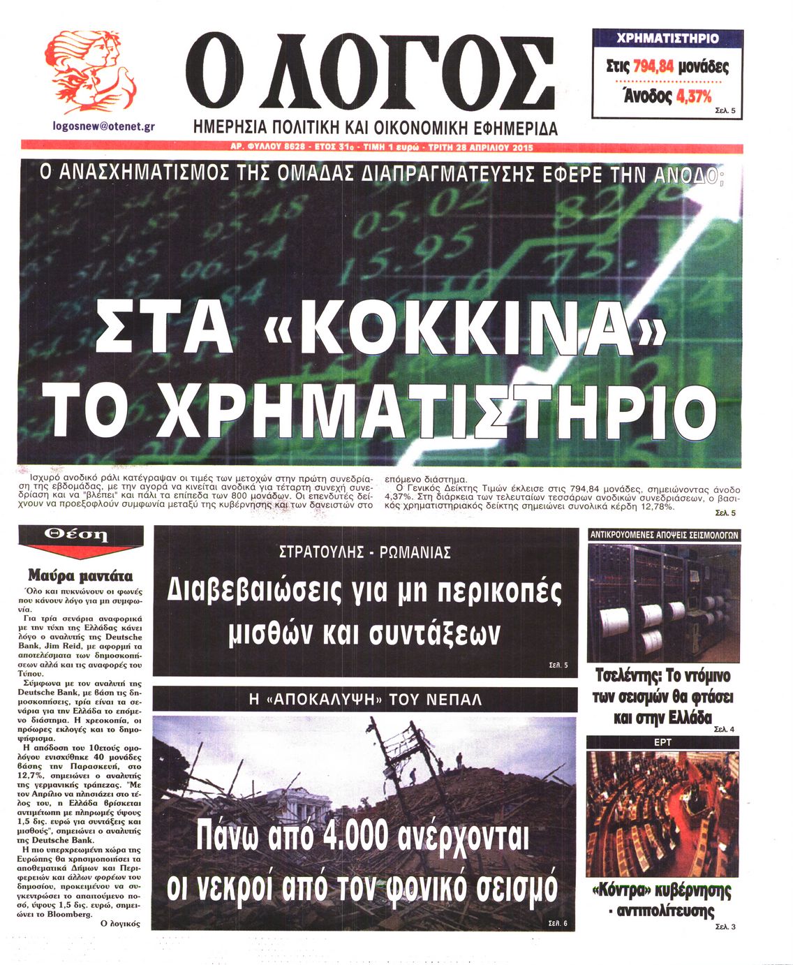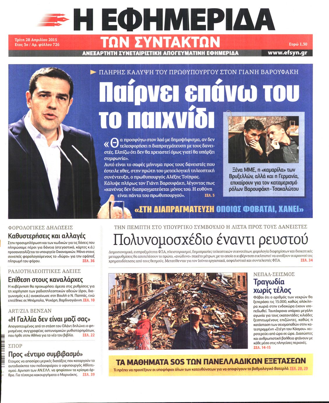 Οι πολιτικές εφημερίδες 28/4/2015 Enikos Newsroom 06:52, Τρίτη 28 Απριλίου 2015 Media Διαβάστε τα σημερινά πρωτοσέλιδα των πολιτικών εφημερίδων: ΕΦΗΜΕΡΙΔΕΣ ΠΟΛΙΤΙΚΕΣ ΕΦΗΜΕΡΙΔΕΣ ΠΡΩΤΟΣΕΛΙΔΑ ΠΡΩΤΟΣΕΛΙΔΑ ΕΦΗΜΕΡΙΔΩΝ Μοιράσου το: σχολίασε κι εσύ (0 σχόλια) Ακολουθήστε το enikos.gr στο Google News και μάθετε πρώτοι όλες τις ειδήσεις Δείτε όλες τις τελευταίες ειδήσεις από την Ελλάδα και τον Κόσμο στο enikos.gr Ειδήσεις Ροή Ειδήσεων 24 λεπτά πριν Ευρωπαϊκή Ένωση: Συμφωνία για δάνειο 90 δισ. ευρώ στην Ουκρανία τη διετία 2026-2027 5 ώρες πριν ΟΠΕΚΕΠΕ: Προφυλακιστέος ο φερόμενος αρχηγός και ο λογιστής της εγκληματικής οργάνωσης 6 ώρες πριν Αυξάνουν την πίεση προς την κυβέρνηση οι αγρότες: Κλείνουν παρακαμπτήριους και ανοίγουν διόδια – Τι θα γίνει τις γιορτές 6 ώρες πριν Φοινικούντα: Το Σάββατο απολογείται ο 30χρονος γιος γνωστού επιχειρηματία της Πλάκας που παραδόθηκε – Όσα είπε στους αστυνομικούς και ο ρόλος του στο έγκλημα 5 ώρες πριν ΑΕΚ – Κραϊόβα 3-2: Επική ανατροπή και πρόκριση στους «16» του Conference League η Ένωση 6 ώρες πριν Αρχαιολόγοι ανακάλυψαν ρωμαϊκά τεχνουργήματα από μια πόλη που δεν υπήρξε ποτέ – Τα τρία εντυπωσιακά κτίρια και ο αμφορέας με τις… σαρδέλες 7 ώρες πριν Ύπνος: Η απλή βραδινή ρουτίνα για να προστατεύσετε τα μαλλιά σας από το κρύο κατά τη διάρκεια του χειμώνα 8 ώρες πριν Manifesting: Πώς να συναντήσετε τον σύντροφο της ζωής σας, ανάλογα με τον μήνα γέννησής σας 2 ημέρες πριν 20 χρόνια τα Χριστούγεννα ξεκινούν στα Public με μεγάλη ποικιλία σε δώρα! 12 λεπτά πριν Γουατεμάλα: Εξαρθρώθηκε κύκλωμα διακίνησης μεταναστών προς τις ΗΠΑ – Συνελήφθησαν 14 άτομα 17 λεπτά πριν Βουλγαρία: Χιλιάδες πολίτες στους δρόμους κατά της απερχόμενης κυβέρνησης και της διαφθοράς 24 λεπτά πριν Ευρωπαϊκή Ένωση: Συμφωνία για δάνειο 90 δισ. ευρώ στην Ουκρανία τη διετία 2026-2027 47 λεπτά πριν Αιματηρή βομβιστική επίθεση στην Υεμένη: Τουλάχιστον τρεις νεκροί και 13 τραυματίες 51 λεπτά πριν Στη Φλόριντα σήμερα οι διαβουλεύσεις σχετικά με τα επόμενα στάδια για τη Λωρίδα της Γάζας ENIKOS NETWORK Σε περίοδο αυξημένης δραστηριότητας η γρίπη στην Ελλάδα-Μέτρα προστασίας από τον ΕΟΔΥ Σκέφτεστε συνέχεια συζητήσεις που έχετε κάνει; Τι σημαίνει αυτό, σύμφωνα με ειδικό Στεγαστικό: Τι λέει η ΠΟΜΙΔΑ για τα νέα μέτρα που ανακοίνωσε ο Κυριάκος Μητσοτάκης Λαγκάρντ: Αισιόδοξη για την ανάπτυξη της Ευρωζώνης, αβέβαιη για τον πληθωρισμό Χαρτογραφώντας το «σημείο χωρίς επιστροφή»: Για πρώτη φορά αποκαλύπτεται με λεπτομέρεια το ακανθώδες όριο της ατμόσφαιρας τ... Η Google καταργεί τη λειτουργία «dark web report» – Πώς θα μπορούν οι χρήστες να διαγράφουν τα δεδομένα τους περισσότερα 02:50 , Παρασκευή 19 Δεκεμβρίου 2025 GNTM: «Κλείδωσαν» οι τέσσερις φιναλίστ – Μεγάλη ανατροπή στις τελευταίες αποχωρήσεις Για προτελευταία φορά εμφανίστηκαν στο πλατό του GNTM οι φιναλίστ του φετινού κύκλου, το βράδυ... 17:45 , Πέμπτη 18 Δεκεμβρίου 2025 ROUK ZOUK: Εορταστικό επεισόδιο με καλεσμένους τους πρωταγωνιστές του «Γιατί ρε πατέρα» Το Σάββατο 20 Δεκεμβρίου στις 21:00, η Ζέτα Μακρυπούλια υποδέχεται εκλεκτούς ηθοποιούς που όλο... 17:20 , Πέμπτη 18 Δεκεμβρίου 2025 Άγιος έρωτας: Η Χριστίνα εξομολογείται στον πατέρα Νικόλαο, απόψε στις 21:00 στον Alpha Η Νότα αποφασίζει να εκδικηθεί τον Πέτρο και τον Στέφανο, για χάρη του Λούη, όμως τα πράγματα ... 16:50 , Πέμπτη 18 Δεκεμβρίου 2025 Να μ’ αγαπάς: Ζωή και Φωτεινή συμφιλιώνονται ως μάνα με κόρη, απόψε στις 20:00 Η ταυτότητα του Άγγελου αποκαλύπτεται στο νέο επεισόδιο 