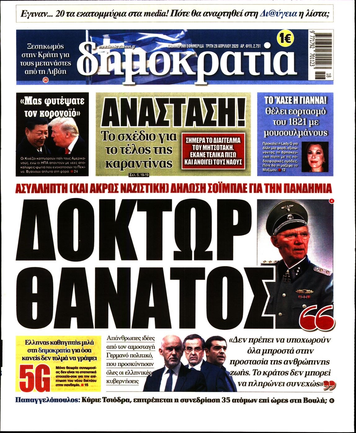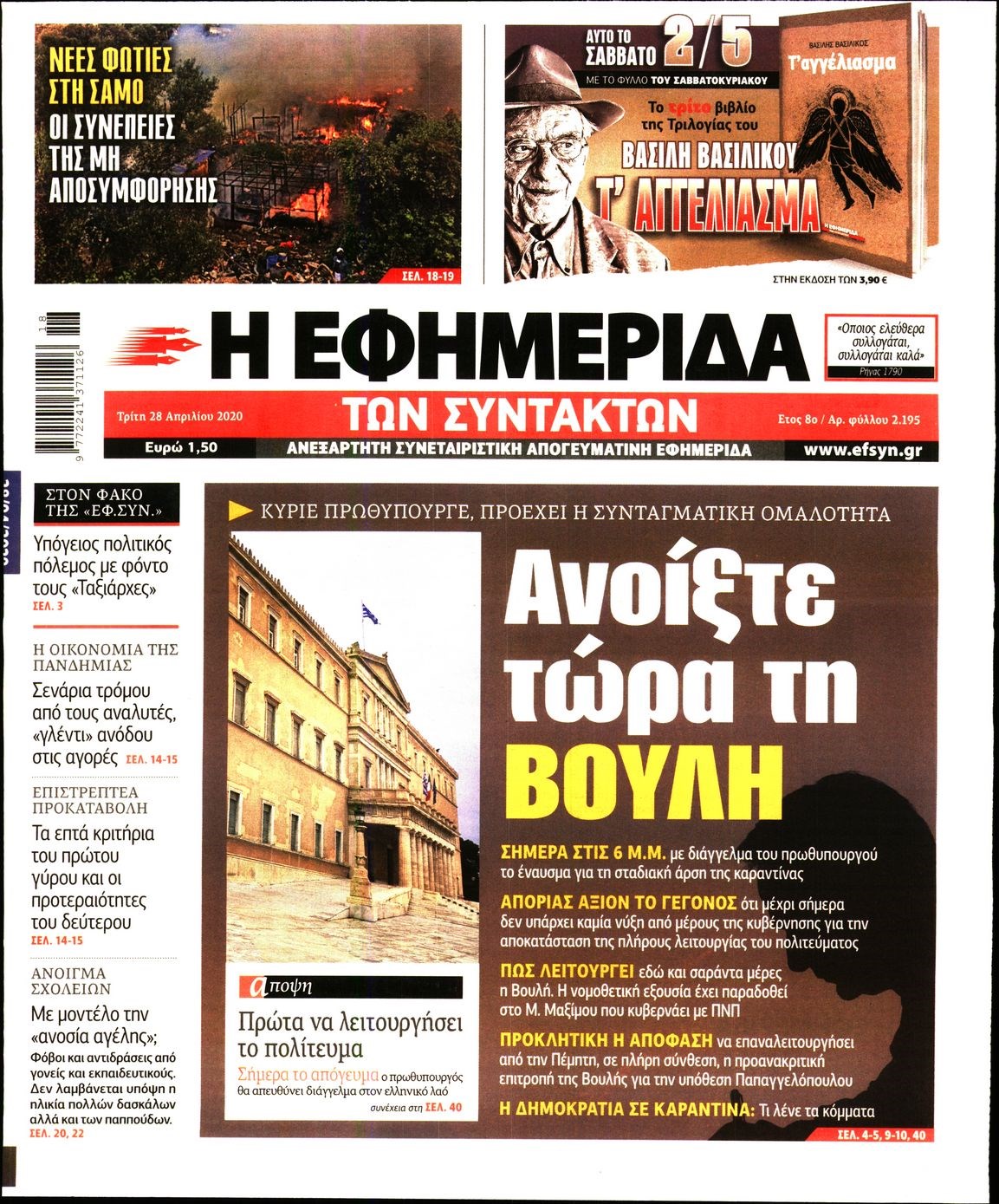 Οι πολιτικές εφημερίδες 28/4/2020 Διονύσης Νίκκας 06:08, Τρίτη 28 Απριλίου 2020 Media Διαβάστε τα πρωτοσέλιδα των πολιτικών εφημερίδων… ΠΟΛΙΤΙΚΕΣ ΕΦΗΜΕΡΙΔΕΣ ΠΡΩΤΟΣΕΛΙΔΑ Μοιράσου το: σχολίασε κι εσύ (0 σχόλια) Ακολουθήστε το enikos.gr στο Google News και μάθετε πρώτοι όλες τις ειδήσεις Δείτε όλες τις τελευταίες ειδήσεις από την Ελλάδα και τον Κόσμο στο enikos.gr Ειδήσεις Ροή Ειδήσεων 3 ώρες πριν Χριστούγεννα στα μπλόκα: Επιμένουν στις κινητοποιήσεις τους οι αγρότες – Ανοίγουν τα διόδια το Σαββατοκύριακο 3 ώρες πριν Ουκρανία: Η άνευ προηγουμένου επίθεση σε ρωσικό τάνκερ στη Μεσόγειο και το μήνυμα προς στον Πούτιν – Το «μακρύ χέρι» του Κιέβου 2 ώρες πριν Πούτιν: Τα μηνύματα σε Ευρώπη και ΝΑΤΟ από το μαραθώνιο «σόου» του – Η απαίτηση για «σεβασμό» και η ειρήνη «με τους όρους» της Μόσχας 3 ώρες πριν Τραμπ: Δεν αποκλείει την πιθανότητα ενός πολέμου στη Βενεζουέλα – «Ο Μαδούρο ξέρει καλύτερα από τον καθένα τι ακριβώς θέλω» 4 ώρες πριν Συνεχίζει να προκαλεί ο Μίτσκοσκι: «Για μένα το όνομα Μακεδονία είναι ιερό» 2 ώρες πριν Ανακαλύφθηκαν αρχαία χρυσά νομίσματα 2.200 ετών που απεικονίζουν τον θεό Απόλλωνα – Η άγνωστη σύνδεση με τον Φίλιππο Β΄ της Μακεδονίας 3 ώρες πριν Ύπνος: Μια κρυφή κατάσταση του εγκεφάλου πριν από τον ύπνο μπορεί να είναι το “κλειδί” για υψηλή ευφυΐα και δημιουργικότητα 4 ώρες πριν Αριθμολογία: Οι άνθρωποι που έχουν γεννηθεί αυτές τις 4 ημερομηνίες, συχνά παρεξηγούνται – «Η καλοσύνη τους κρύβει τεράστια δύναμη» 5 ώρες πριν Ξεχάστε το καθάρισμα το Σαββατοκύριακο: Ο «κανόνας των 20 λεπτών» που θα σας λύσει τα χέρια 5 λεπτά πριν Συρία: Μαζικά πλήγματα των ΗΠΑ σε θέσεις του Ισλαμικού Κράτους – Χέγκσεθ: «Δεν είναι αρχή πολέμου, είναι μια δήλωση εκδίκησης» για το θάνατο των στρατιωτών μας 17 λεπτά πριν Ουκρανία: Ολοκληρώθηκαν οι συνομιλίες με τους Αμερικανούς κι Ευρωπαίους διαπραγματευτές 33 λεπτά πριν Μπαρτσελόνα – Μπασκόνια 134-124: Οι «μπλαουγκράνα» πήραν το ματς της χρονιάς ύστερα από τρεις παρατάσεις 47 λεπτά πριν Φαίη Σκορδά: «Παλιότερα τα κομπλιμέντα τα προσπερνούσα, τώρα τα έχω ανάγκη» 1 ώρα πριν Βασίλης Σπανούλης: Δεν εμφανίστηκε ούτε ένας δημοσιογράφος στην συνέντευξη Τύπου – «Καλησπέρα στον… κανέναν», δείτε βίντεο ENIKOS NETWORK Το ΕΚΑΒ τιμήθηκε από την Ακαδημία Αθηνών για τα 40 χρόνια προσφοράς του Έχετε πραγματικά μεγάλη καρδιά; 10 χαρακτηριστικά όσων έχουν καλοσύνη Αναστολή μέτρων αναγκαστικής εκτέλεσης για κτηνοτρόφους που πλήττονται από την ευλογιά των αιγοπροβάτων Πλήρης επάρκεια προϊόντων στις λαϊκές της Αττικής, παρά τις αγροτικές κινητοποιήσεις – Τι απαντούν οι πωλητές Χαρτογραφώντας το «σημείο χωρίς επιστροφή»: Για πρώτη φορά αποκαλύπτεται με λεπτομέρεια το ακανθώδες όριο της ατμόσφαιρας τ... Η Google καταργεί τη λειτουργία «dark web report» – Πώς θα μπορούν οι χρήστες να διαγράφουν τα δεδομένα τους περισσότερα 22:42 , Παρασκευή 19 Δεκεμβρίου 2025 Γιώργος Γιαννόπουλος για “Το σόι σου”: “Είναι ευτυχία και ευλογία αυτή η σειρά” «Είναι ευτυχία και ευλογία η συγκυρία αυτής της σειράς», θα πει ο Γιώργος Γιαννόπουλος -ο αγαπ... 20:37 , Παρασκευή 19 Δεκεμβρίου 2025 Don’t Forget The Lyrics: Η Έλλη Κοκκίνου υποδέχεται 4 παίκτες που θα κάνουν τα πάντα για να μη χάσουν ούτε… μισή λέξη από τους στίχους Το «Don’t Forget The Lyrics» επιστρέφει απόψε, Παρασκευή 19 Δεκεμβρίου, στις 21:00 με νέο επει... 19:31 , Παρασκευή 19 Δεκεμβρίου 2025 GNTM: Απόψε ο μεγάλος τελικός για τους 4 φιναλίστ Έπειτα από μήνες γεμάτο