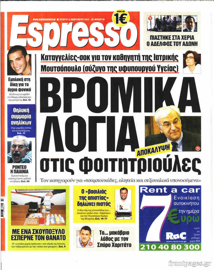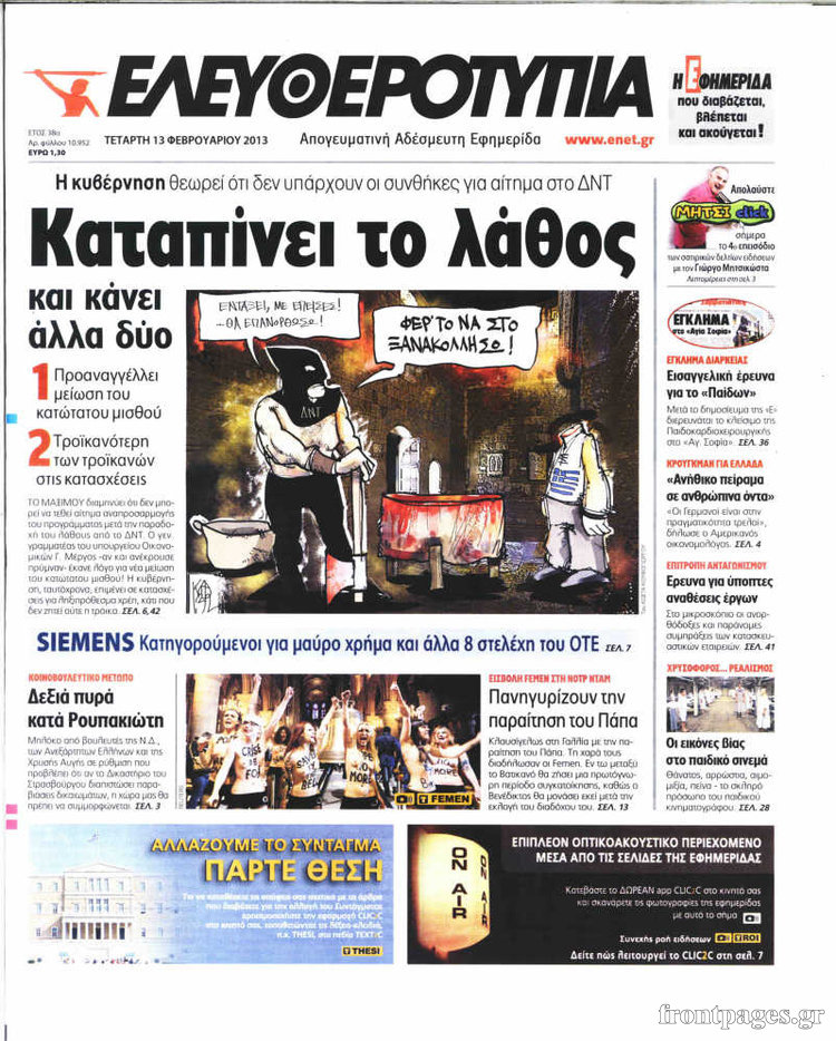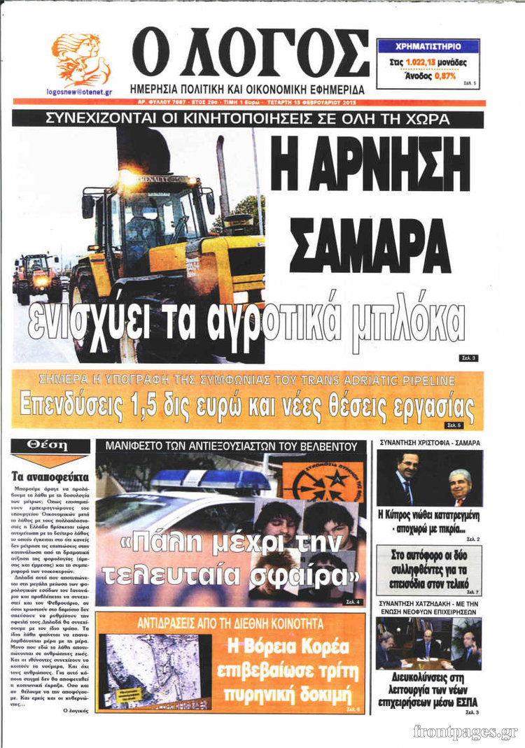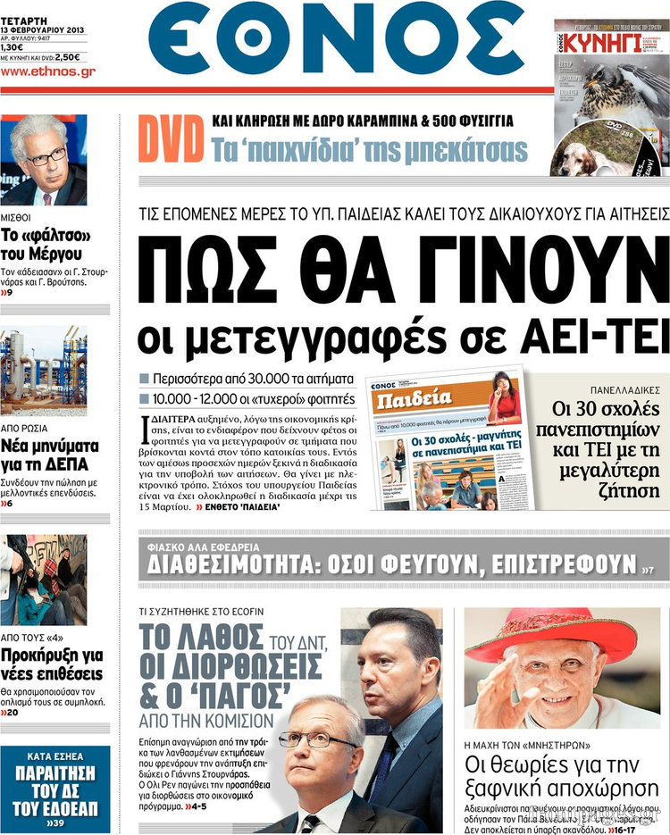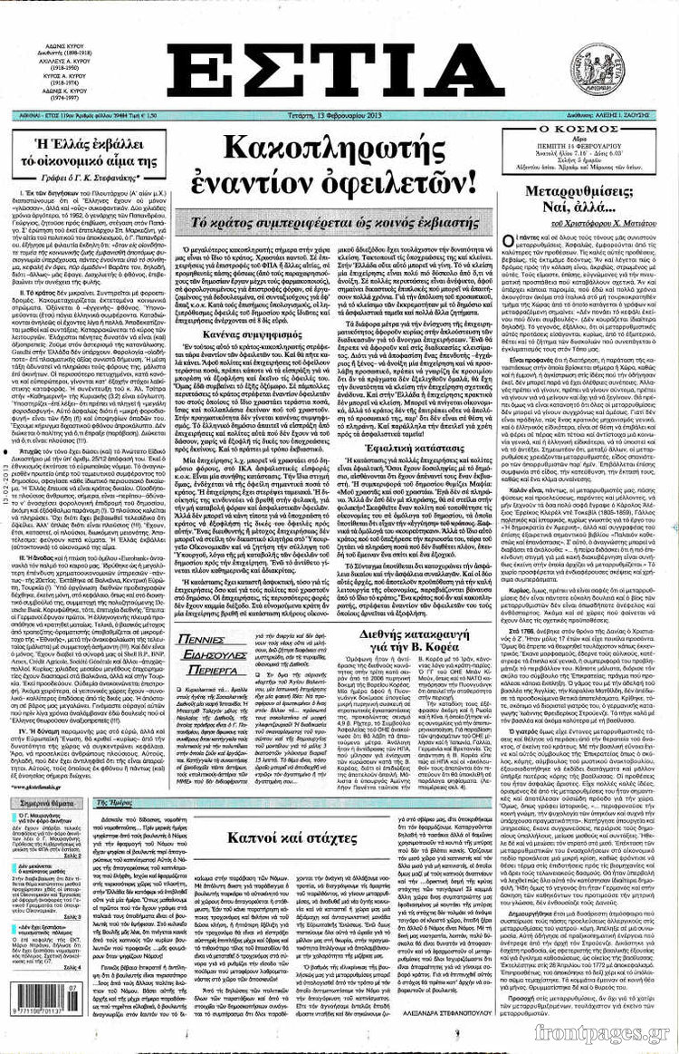 Οι πολιτικές εφημερίδες Enikos Newsroom 08:44, Τετάρτη 13 Φεβρουαρίου 2013 Media Οι πολιτικές εφημερίδες ΕΦΗΜΕΡΙΔΕΣ ΠΟΛΙΤΙΚΕΣ ΕΦΗΜΕΡΙΔΕΣ ΠΡΩΤΟΣΕΛΙΔΑ Μοιράσου το: σχολίασε κι εσύ (0 σχόλια) Ακολουθήστε το enikos.gr στο Google News και μάθετε πρώτοι όλες τις ειδήσεις Δείτε όλες τις τελευταίες ειδήσεις από την Ελλάδα και τον Κόσμο στο enikos.gr Ειδήσεις Ροή Ειδήσεων 2 ώρες πριν Αγρότες: Σήκωσαν τις μπάρες στα διόδια των Αφιδνών – ΦΩΤΟ και ΒΙΝΤΕΟ 5 ώρες πριν Διάλογοι-σοκ από το κύκλωμα που διακινούσε ναρκωτικά σε σχολεία – «Αν δεν είσαι εκεί σε 5 λεπτά, θα φας πολύ ξύλο μπρο» 3 ώρες πριν Κωνσταντίνος Ανεστίδης: «Είμαι αθώος, είμαι καθαρός σαν αστραπή και η αστραπή θα πέσει στο κεφάλι τους» – ΒΙΝΤΕΟ 3 ώρες πριν Εγκαινιάστηκε ο αρχαιολογικός χώρος του Ανακτόρου της Πέλλας – Παρουσιάστηκαν για πρώτη φορά δύο ελληνιστικά αγάλματα 3 ώρες πριν Δήμος Αθηναίων: Ξεκινά τη Δευτέρα η επιστροφή πινακίδων οχημάτων από τη Δημοτική Αστυνομία 5 ώρες πριν Αν ανήκετε σε ένα από αυτά τα 3 ζώδια, το 2026 θα είναι η χρονιά σας – «Η ζωή σας βελτιώνεται σε όλους τους τομείς» 2 ώρες πριν Είσοδος σπιτιού: Πώς να οργανώσετε το χώρο πριν έρθουν οι καλεσμένοι σας – Η ρουτίνα 3 βημάτων 54 λεπτά πριν Οι άνθρωποι που βιώνουν χρόνια μοναξιά, κάνουν αυτά τα 7 πράγματα τα Χριστούγεννα, χωρίς να το καταλαβαίνουν 1 ημέρα πριν Enerwave: Το νέο «ρεύμα» στη λιανική ενέργειας που αλλάζει την εμπειρία του καταναλωτή 4 λεπτά πριν Αποχώρησε από το Κίνημα Δημοκρατίας η Κυριακή Μάλαμα – Οι αιχμές για τον Στέφανο Κασσελάκη 13 λεπτά πριν ΑΕΛ – Ατρόμητος 0-0: Το απόλυτο… μηδέν στη Λάρισα 21 λεπτά πριν Λίβανος: Ένας νεκρός και ένας τραυματίας από ισραηλινά πλήγματα 32 λεπτά πριν Αγρότες: Αποκλεισμένη η διέλευση οχημάτων στα Πράσινα Φανάρια – Κλειστός για μεταφορές ο Προμαχώνας 40 λεπτά πριν Τι λέει η ΑΑΔΕ για τον έλεγχο στα γραφεία του Συλλόγου Θυμάτων Τεμπών: «Ουδείς είναι υπεράνω του νόμου» ENIKOS NETWORK Οι γυναίκες έχουν βρει μια νέα απόλαυση στην κρεβατοκάμαρα που οι περισσότεροι άνδρες αγνοούν Christmas glow: 5 χρυσές συμβουλές για επιδερμίδα που λάμπει από ομορφιά τα Χριστούγεννα Λιανεμπόριο: Οι προσδοκίες της αγοράς για τα Χριστούγεννα – Στόχος ο τζίρος να ξεπεράσει τα 4,5 δισ. ευρώ τον Δεκέμβριο Ηλεκτρονικές πληρωμές: Δεύτερη η Ελλάδα στην Ε.Ε. στην εξάπλωση της χρήσης καρτών τη δεκαετία 2015-2024 – Τα στοιχεία ανά κ... Χαρτογραφώντας το «σημείο χωρίς επιστροφή»: Για πρώτη φορά αποκαλύπτεται με λεπτομέρεια το ακανθώδες όριο της ατμόσφαιρας τ... Η Google καταργεί τη λειτουργία «dark web report» – Πώς θα μπορούν οι χρήστες να διαγράφουν τα δεδομένα τους περισσότερα 17:18 , Κυριακή 21 Δεκεμβρίου 2025 «Η Μεγάλη Χίμαιρα»: Μάγεψε το κοινό κατά την avant-première της προβολής της Την Πρωτοχρονιά (Πέμπτη 1η Ιανουαρίου 2026) στο ERTFLIX θα γίνει η πρεμιέρα της πολυαναμενόμεν... 15:08 , Κυριακή 21 Δεκεμβρίου 2025 Μια νύχτα μόνο: Η Αρετή και ο Οδυσσέας έρχονται και πάλι κοντά Το νέο επεισόδιο της δραματικής σειράς του MEGA «Μια νύχτα μόνο», θα προβληθεί απόψε Κυριακή 2... 14:24 , Κυριακή 21 Δεκεμβρίου 2025 IQ 160: Ο φάκελος με το τεστ πατρότητας ανοίγει, απόψε στις 21:00 στο Star Ανατρεπτικό το νέο διπλό επεισόδιο της σειράς “IQ 160” στις 21:00 στο Star. Ο Τηλέ... 09:43 , Κυριακή 21 Δεκεμβρίου 2025 Το λάθος στην ταινία Die Hard που άφησε άναυδους τους θαυμαστές του Μπρους Γουίλις Ένας φανατικός των ταινιών άφησε άναυδους τους θαυμαστές του Die Hard, επισημαίνοντας τρία βασ... ΤΕΛΕΥΤΑΙΕΣ ΕΙΔΗΣΕΙΣ 4 λεπτά πριν Αποχώρησε από το Κίνη
