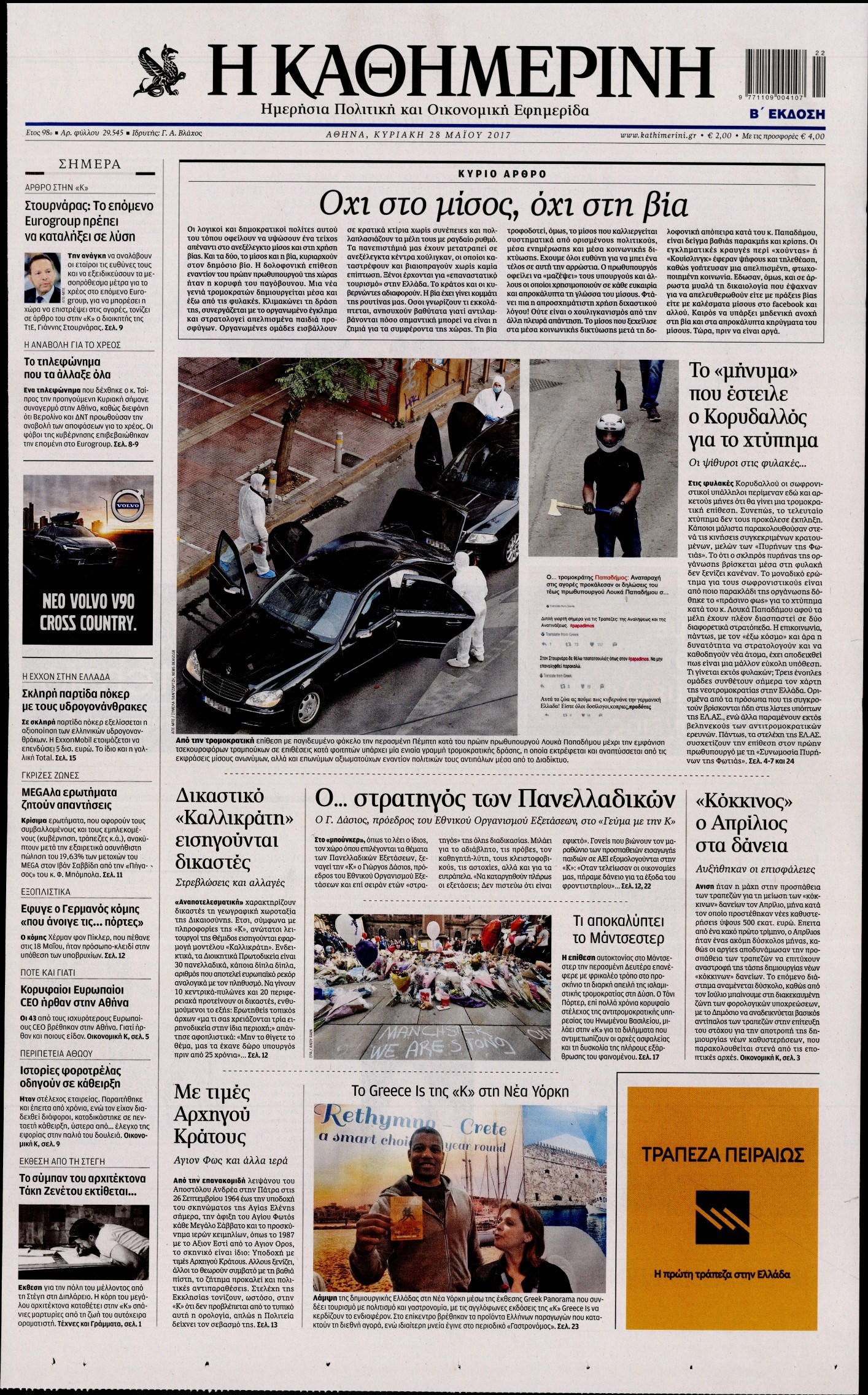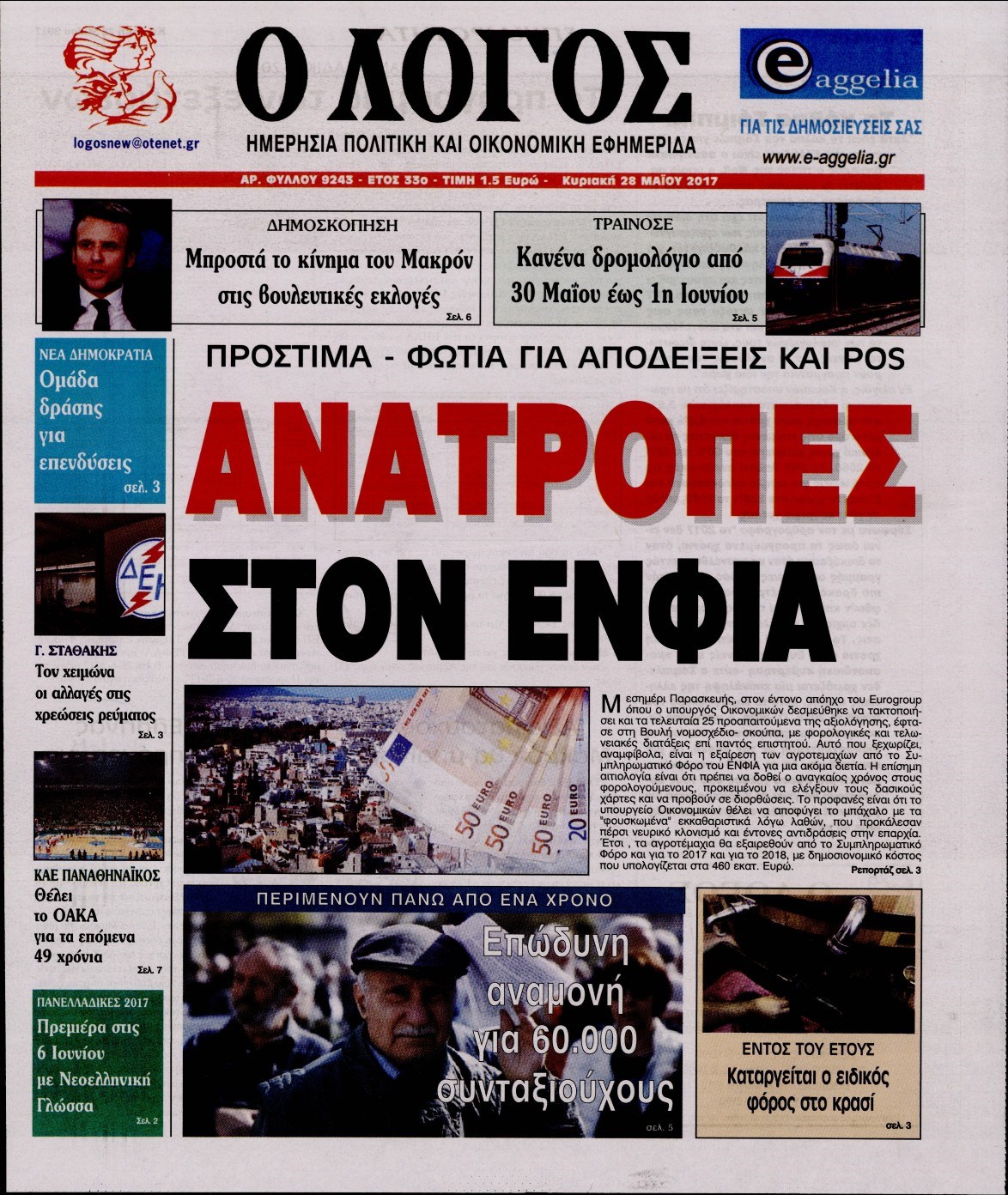 Οι πολιτικές εφημερίδες 28/5/2017 Enikos Newsroom 00:00, Δευτέρα 01 Ιανουαρίου 0001 Media Διαβάστε τα σημερινά πρωτοσέλιδα των πολιτικών εφημερίδων: ΠΟΛΙΤΙΚΕΣ ΕΦΗΜΕΡΙΔΕΣ ΠΡΩΤΟΣΕΛΙΔΑ Μοιράσου το: σχολίασε κι εσύ (0 σχόλια) Ακολουθήστε το enikos.gr στο Google News και μάθετε πρώτοι όλες τις ειδήσεις Δείτε όλες τις τελευταίες ειδήσεις από την Ελλάδα και τον Κόσμο στο enikos.gr Ειδήσεις Ροή Ειδήσεων 24 λεπτά πριν Νίκος Παππάς: Το παρασκήνιο της αποπομπής του – Οι μπουνιές, τα μηνύματα μετά την επίθεση και η διαγραφή από τον ΣΥΡΙΖΑ 1 ώρα πριν Φοροδιαφυγή: Ποιοι φορολογούμενοι κινδυνεύουν να πληρώσουν «τσουχτερά» πρόστιμα 51 λεπτά πριν Φοινικούντα: Παραδόθηκε 30χρονος στην Καλαμάτα για τη διπλή δολοφονία 1 ώρα πριν Αγρότες: Ανυποχώρητοι στα μπλόκα – Στις Σέρρες σήμερα η κρίσιμη συνεδρίαση της Πανελλαδικής Επιτροπής 1 ώρα πριν Τα επίσημα χρονοδιαγράμματα που η Τουρκία θα παραλάβει τα Eurofighter 3 ώρες πριν Καούρα: Το μπαχαρικό που είναι «εξίσου αποτελεσματικό» με την ομεπραζόλη, σύμφωνα με ειδικούς 3 ώρες πριν Τα ζώδια σήμερα, Πέμπτη 18 Δεκεμβρίου: Λέοντες, η καρδιά σας θέλει να εκφραστεί 3 ώρες πριν Οπτική ψευδαίσθηση: Μόνο οι πιο έξυπνοι άνθρωποι θα βρουν 7 ξωτικά 15 δευτερόλεπτα 23 ώρες πριν 20 χρόνια τα Χριστούγεννα ξεκινούν στα Public με μεγάλη ποικιλία σε δώρα! 8 λεπτά πριν Μαρία Αλιφέρη: «Καλή σου ξεκούραση ακριβέ μου φίλε και αδελφέ» – Η συγκινητική ανάρτηση για τον Αλμπέρτο Εσκενάζυ 12 λεπτά πριν Οφειλές προς το Δημόσιο: Τι απαντά το υπουργείο στα σενάρια για νέα ρύθμιση 17 λεπτά πριν Συνταγή του Gordon Ramsay για σπιτικές πατάτες φούρνου 22 λεπτά πριν Δώρο Χριστουγέννων: Έως αύριο η καταβολή του – Πώς υπολογίζεται και τι πρέπει να κάνουν οι εργαζόμενοι που δεν θα το λάβουν 24 λεπτά πριν Νίκος Παππάς: Το παρασκήνιο της αποπομπής του – Οι μπουνιές, τα μηνύματα μετά την επίθεση και η διαγραφή από τον ΣΥΡΙΖΑ ENIKOS NETWORK Ουρική αρθρίτιδα: Μεγάλη μελέτη αποκαλύπτει τι μπορεί να προκαλεί τη νόσο Τι σημαίνει όταν ο σκύλος σας σάς φέρνει τυχαία αντικείμενα, σύμφωνα με εκπαιδεύτρια Οφειλές προς το Δημόσιο: «Φρένο» στα σενάρια για νέα ρύθμιση – Τι απαντά το υπουργείο Εθνικής Οικονομίας και Οικονομικών Φοροδιαφυγή: Ποιοι φορολογούμενοι κινδυνεύουν να πληρώσουν «τσουχτερά» πρόστιμα Χαρτογραφώντας το «σημείο χωρίς επιστροφή»: Για πρώτη φορά αποκαλύπτεται με λεπτομέρεια το ακανθώδες όριο της ατμόσφαιρας τ... Η Google καταργεί τη λειτουργία «dark web report» – Πώς θα μπορούν οι χρήστες να διαγράφουν τα δεδομένα τους περισσότερα 08:00 , Πέμπτη 18 Δεκεμβρίου 2025 Την Κυριακή με τη Realnews: Δωροεπιταγή 10€ Δωροεπιταγή αξίας 10€ για αγορές άνω των 60€ από τα πολυκαταστήματα FactoryOutlet H προσφορά ι... 07:50 , Πέμπτη 18 Δεκεμβρίου 2025 «Το σόι σου»: Backstage στα γυρίσματα για το εορταστικό επεισόδιο «Το σόι σου» φορά τα γιορτινά του για τα Χριστούγεννα και η Όλγα Λαφαζάνη, με την κάμερα του «... 07:36 , Πέμπτη 18 Δεκεμβρίου 2025 Οι αθλητικές μεταδόσεις 18/12/2025 – Πού θα δείτε τον αγώνα της ΑΕΚ με την Κραϊόβα για το Conference League Τα ματς ΑΕΚ – Ουνιβερσιτάτεα Κραϊόβα για το Conference League και Παναθηναϊκός – Χάποελ Τελ Αβ... 05:48 , Πέμπτη 18 Δεκεμβρίου 2025 Οι οικονομικές εφημερίδες 18/12/2025 Διαβάστε τα πρωτοσέλιδα από τις οικονομικές εφημερίδες, σήμερα 18/12/2025. ΤΕΛΕΥΤΑΙΕΣ ΕΙΔΗΣΕΙΣ 8 λεπτά πριν Μαρία Αλιφέρη: «Καλή σου ξεκούραση ακριβέ μου φίλε και... 12 λεπτά πριν Οφειλές προς το Δημόσιο: Τι απαντά το υπουργείο στα... 17 λεπτά πριν Συνταγή του Gordon Ramsay για σπιτικές πατάτες φούρνου 22