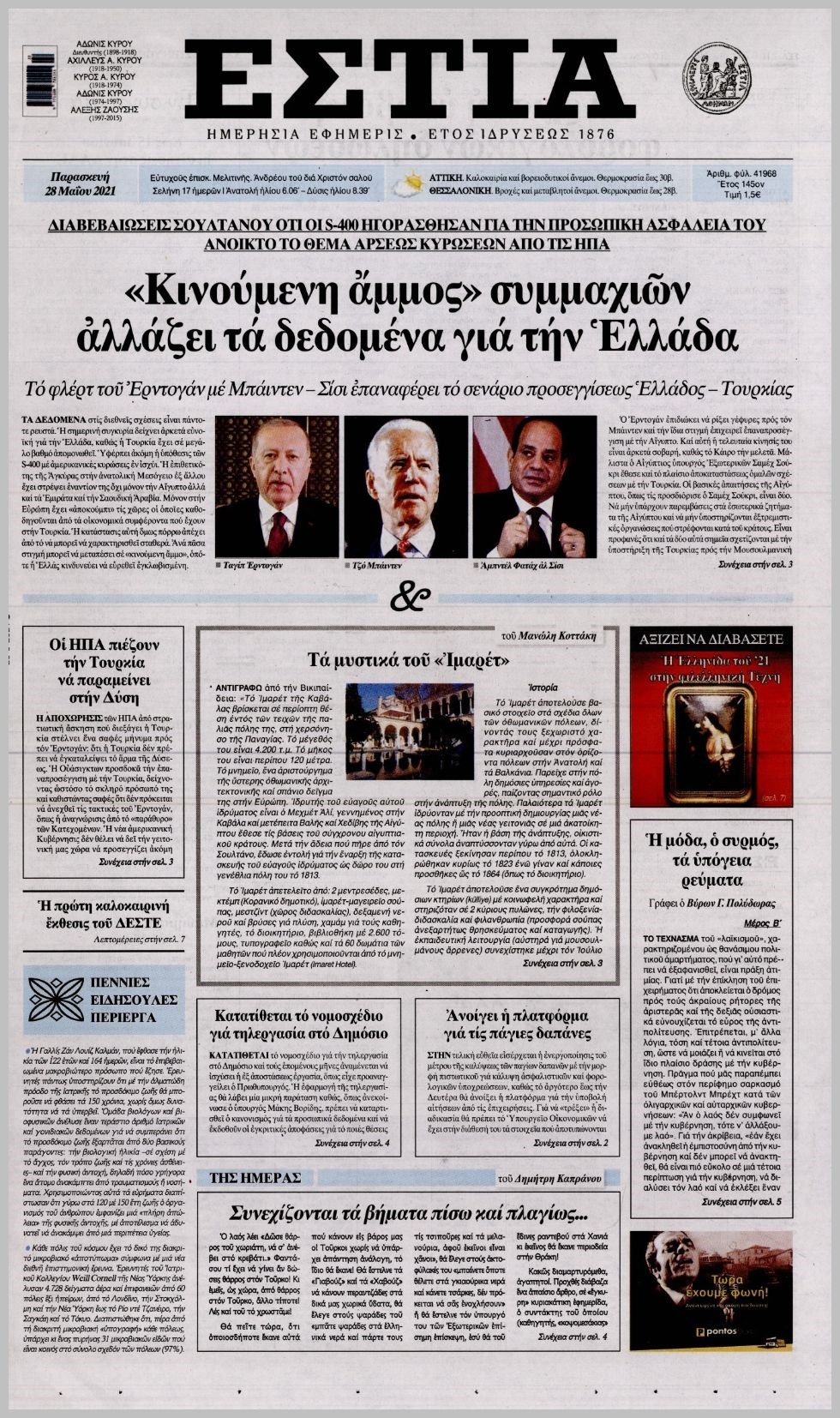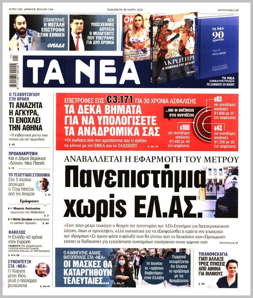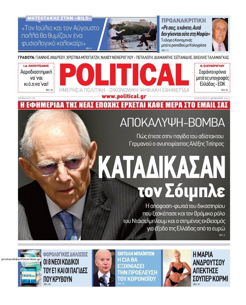 Οι πολιτικές εφημερίδες 28/5/2021 Διονύσης Νίκκας 06:13, Παρασκευή 28 Μαΐου 2021 Media Διαβάστε τα πρωτοσέλιδα των πολιτικών εφημερίδων… ΕΦΗΜΕΡΙΔΕΣ ΠΡΩΤΟΣΕΛΙΔΑ Μοιράσου το: σχολίασε κι εσύ (0 σχόλια) Ακολουθήστε το enikos.gr στο Google News και μάθετε πρώτοι όλες τις ειδήσεις Δείτε όλες τις τελευταίες ειδήσεις από την Ελλάδα και τον Κόσμο στο enikos.gr Ειδήσεις Ροή Ειδήσεων 8 ώρες πριν LIVE – Οι ΗΠΑ συνέλαβαν τον Μαδούρο: «Ήταν μια εξαιρετική στρατιωτική επιχείρηση», είπε ο Τραμπ στη συνέντευξη Τύπου – Όλες οι εξελίξεις 8 λεπτά πριν Νικολάς Μαδούρο: Στη δημοσιότητα φωτογραφίες και βίντεο μετά την σύλληψή του – Με χειροπέδες και μάσκα στα μάτια 1 ώρα πριν Πρόκληση: Τουρκικό πολεμικό πλοίο παρενόχλησε ελληνικό πλοίο πόντισης καλωδίου ανάμεσα από Αμοργό – Αστυπάλαια 4 ώρες πριν Σέρρες: Στον 45χρονο διοικητή της Πυροσβεστικής ανήκει η σορός που εντοπίστηκε – Η ανακοίνωση της Εθελοντικής Ομάδας Έρευνας και Διάσωσης 2 ώρες πριν Μετ’ εμποδίων η επιστροφή των εκδρομέων – Χαμηλές ταχύτητες στην εθνική οδό από το Μαρτίνο έως τη Θήβα 3 ώρες πριν Η ζωή θα βελτιωθεί πολύ για 3 ζώδια από τα τέλη Ιανουαρίου – «Μετά την έντονη πίεση, επιτέλους θα χαλαρώσετε» 13 ώρες πριν Μακροζωία: Καθηγητής αποκαλύπτει ποια τροφή πρέπει να καταναλώνετε με μέτρο για να «παραμείνετε νέοι» 10 ώρες πριν Εκδικήθηκε τα αδέλφια του επειδή ο πατέρας του τον άφησε εκτός διαθήκης – «Ξαφνικά έμαθαν πόσα μου χρωστούσε η εταιρεία που κληρονόμησαν» 7 ώρες πριν «Σταμάτησα να χρησιμοποιώ το ασανσέρ και έχασα 1,5 κιλό χωρίς προσπάθεια» – Η συνήθεια που σαμποτάρει τον μεταβολισμό σας 2 λεπτά πριν Ισραήλ: Χαιρετίζει την σύλληψη του Μαδούρο από τις ΗΠΑ – «Ο λαός υπέφερε υπό την παράνομη τυραννία του» 8 λεπτά πριν Νικολάς Μαδούρο: Στη δημοσιότητα φωτογραφίες και βίντεο μετά την σύλληψή του – Με χειροπέδες και μάσκα στα μάτια 14 λεπτά πριν Τροχαίο στο Ξυλόκαστρο – Τραυματίστηκε σοβαρά ο οδηγός 20 λεπτά πριν Κίνα: Η ενέργεια των ΗΠΑ στη Βενεζουέλα παραβιάζει το διεθνές δίκαιο 25 λεπτά πριν Χανιά: Επεισόδιο με 10 τραυματίες στον χώρο κράτησης μεταναστών στην Αγυιά ENIKOS NETWORK 5 τύποι ναρκισσιστή που μπορεί να υπάρχουν στη ζωή σας – Πώς να τους αναγνωρίσετε Εκρηκτική άνοδος της γρίπης-Υπερδιπλασιασμός εισαγωγών στα νοσοκομεία Θεσσαλονίκη: Στο στόχαστρο επενδυτών χρυσές ευκαιρίες ακινήτων έως 50.000 ευρώ Θεσσαλονίκη: Τροποποιείται από τη Δευτέρα το πρόγραμμα των δρομολογίων του μετρό Ο Google Assistant θα παραμείνει λίγο περισσότερο για ορισμένους χρήστες Android Τεστ προσωπικότητας: Το βάζο που θα επιλέξετε αποκαλύπτει πώς λύνετε προβλήματα στη ζωή σας περισσότερα 18:00 , Σάββατο 03 Ιανουαρίου 2026 Η Realnews στο www.pressreader.com Διαβάστε την ψηφιακή έκδοση της εφημερίδας στην οθόνη του κινητού, του tablet και του υπολογισ... 16:05 , Σάββατο 03 Ιανουαρίου 2026 Στο real taste & style που κυκλοφορεί με τη Realnews Η δημοσιογράφος Σίσσυ Νίκα ταξιδεύει στη Γενεύη, την κοσμοπολίτικη πόλη όπου η γεύση συναντά τ... 14:50 , Σάββατο 03 Ιανουαρίου 2026 Αυτή την Κυριακή με τη Realnews: «Μια φορά και… ένας φόνος», της Samantha Larsen – Μαζί Real taste & style Αυτή την Κυριακή με τη Realnews: Μια φορά και… ένας φόνος, της Samantha Larsen – Μαζί Re... 14:02 , Σάββατο 03 Ιανουαρίου 2026 Η Realnews αυτής της Κυριακής Με τίτλο: «Ολες οι αλλαγές σε συντάξεις και εισφορές» κυκλοφορεί, αυτήν την Κυριακή, η Realnew... ΤΕΛΕΥΤΑΙΕΣ ΕΙΔΗΣΕΙΣ 8 λεπτά πριν Νικολάς Μαδούρο: Στη δημοσιότητα φωτογραφίες και... 14 λεπτά πριν Τροχαίο στο Ξυλόκαστρο – Τραυματ