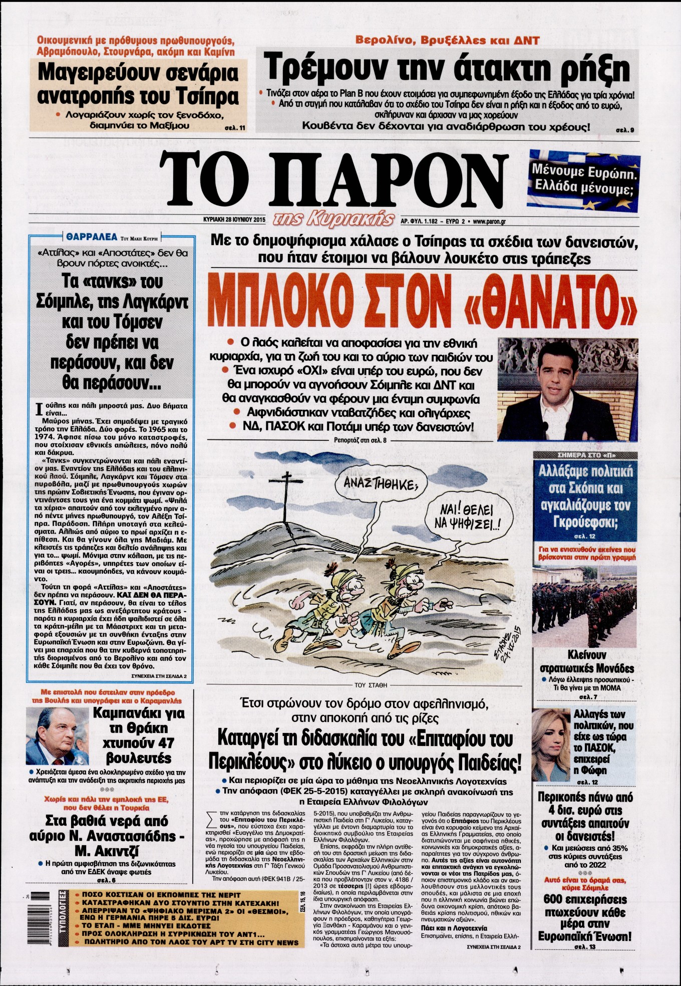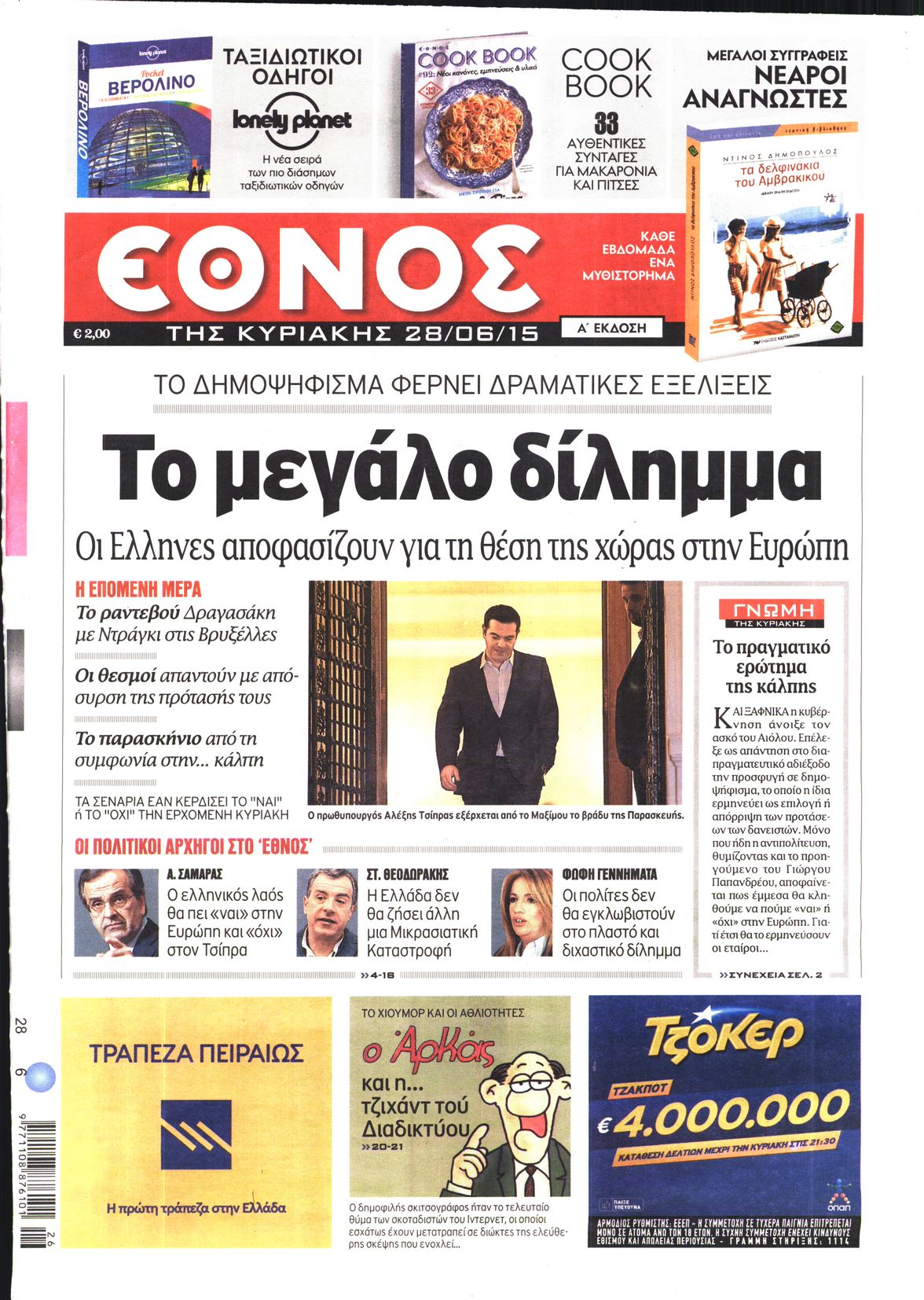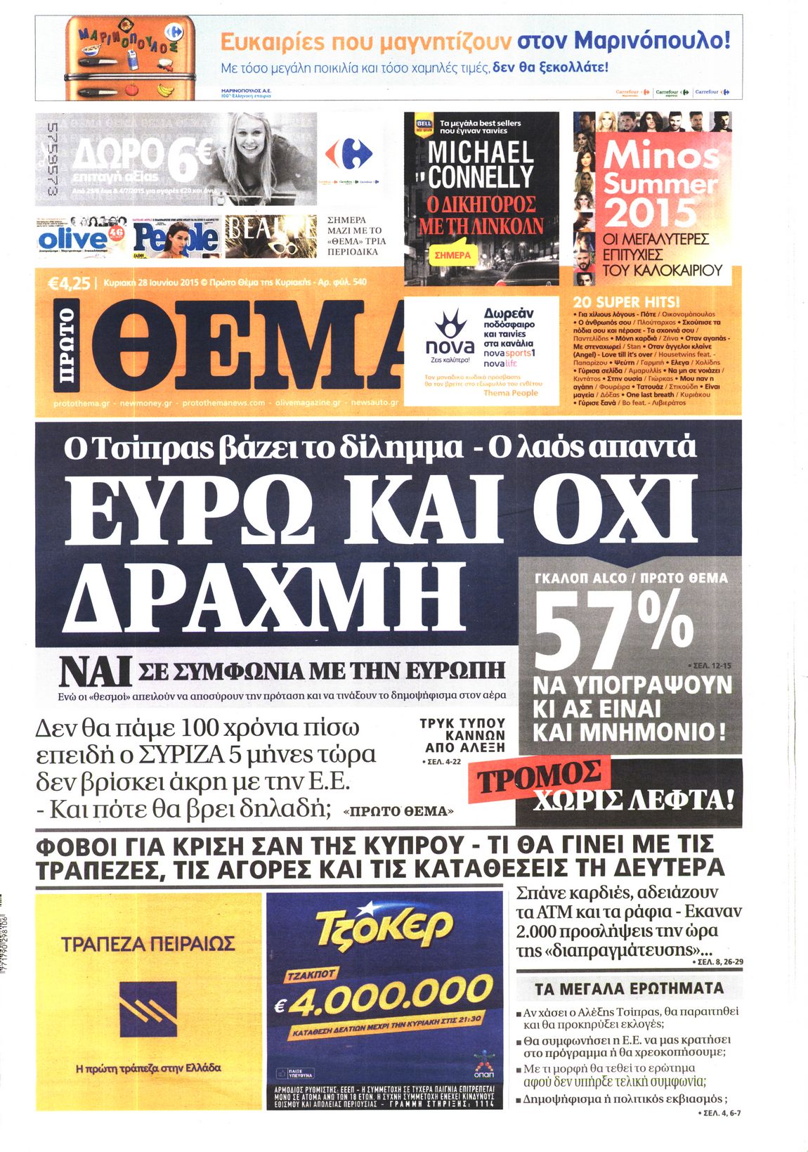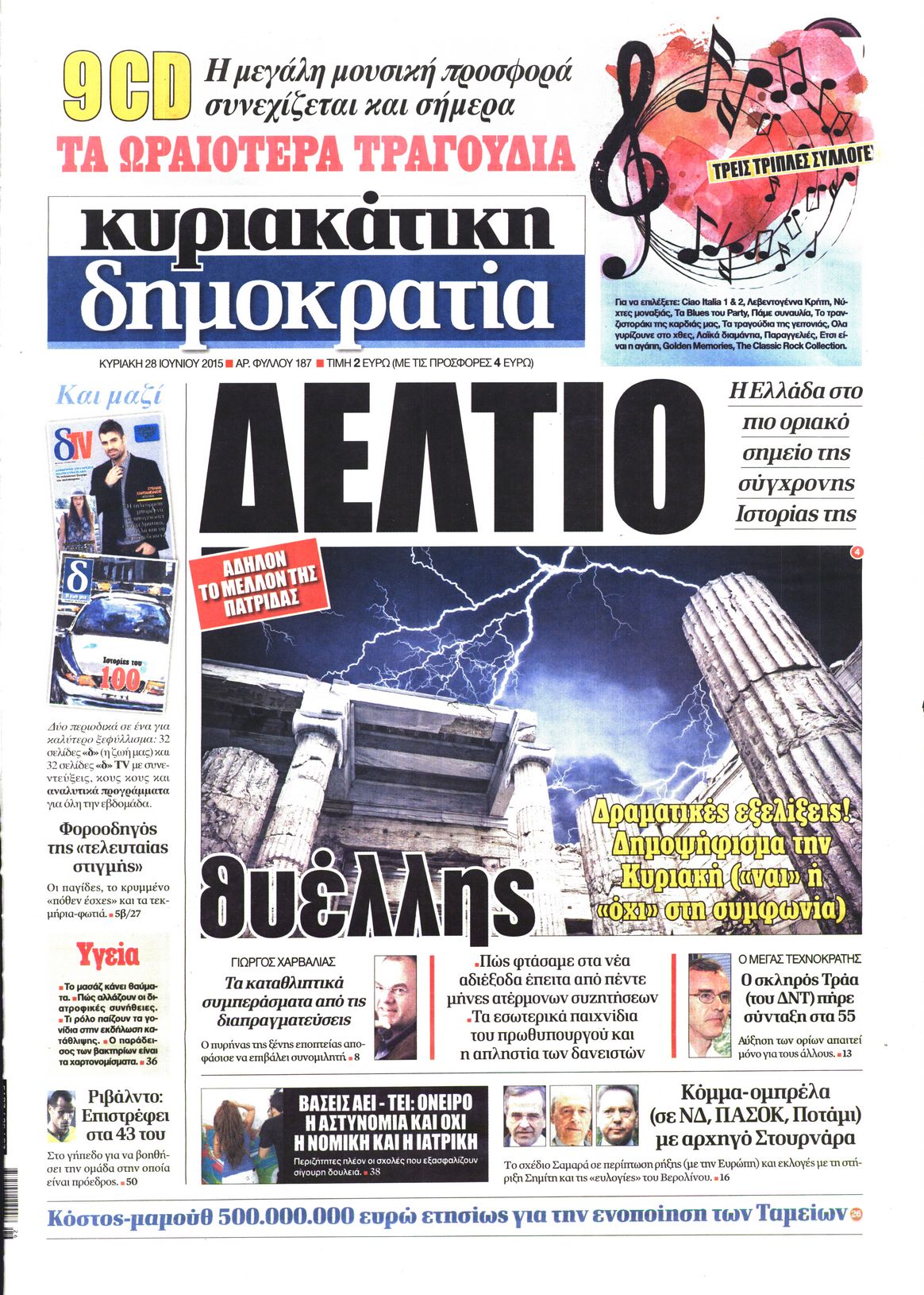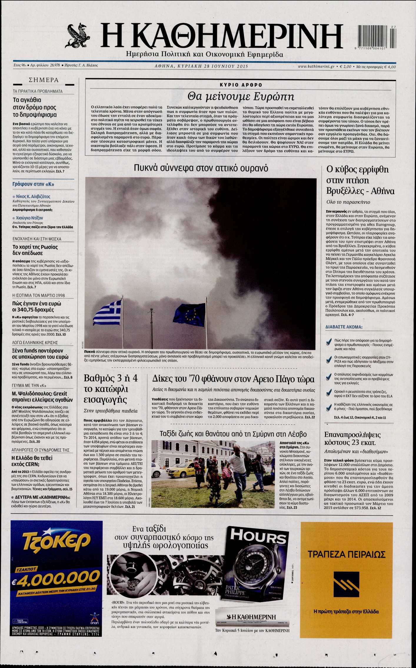 Οι πολιτικές εφημερίδες 28/6/2015 Enikos Newsroom 07:27, Κυριακή 28 Ιουνίου 2015 Media Διαβάστε τα σημερινά πρωτοσέλιδα των πολιτικών εφημερίδων: ΠΟΛΙΤΙΚΕΣ ΕΦΗΜΕΡΙΔΕΣ ΠΡΩΤΟΣΕΛΙΔΑ Μοιράσου το: σχολίασε κι εσύ (0 σχόλια) Ακολουθήστε το enikos.gr στο Google News και μάθετε πρώτοι όλες τις ειδήσεις Δείτε όλες τις τελευταίες ειδήσεις από την Ελλάδα και τον Κόσμο στο enikos.gr Ειδήσεις Ροή Ειδήσεων 49 λεπτά πριν Χριστούγεννα στα μπλόκα: Επιμένουν στις κινητοποιήσεις τους οι αγρότες – Ανοίγουν τα διόδια το Σαββατοκύριακο 1 ώρα πριν Ουκρανία: Η άνευ προηγουμένου επίθεση σε ρωσικό τάνκερ στη Μεσόγειο και το μήνυμα προς στον Πούτιν – Το «μακρύ χέρι» του Κιέβου 27 λεπτά πριν Πούτιν: Τα μηνύματα σε Ευρώπη και ΝΑΤΟ από το μαραθώνιο «σόου» του – Η απαίτηση για «σεβασμό» και η ειρήνη «με τους όρους» της Μόσχας 1 ώρα πριν Τραμπ: Δεν αποκλείει την πιθανότητα ενός πολέμου στη Βενεζουέλα – «Ο Μαδούρο ξέρει καλύτερα από τον καθένα τι ακριβώς θέλω» 2 ώρες πριν Συνεχίζει να προκαλεί ο Μίτσκοσκι: «Για μένα το όνομα Μακεδονία είναι ιερό» 4 ώρες πριν Πούτιν: «Ναι, είμαι ερωτευμένος» – Βίντεο από τη σπάνια προσωπική παραδοχή του 2 ώρες πριν Αριθμολογία: Οι άνθρωποι που έχουν γεννηθεί αυτές τις 4 ημερομηνίες, συχνά παρεξηγούνται – «Η καλοσύνη τους κρύβει τεράστια δύναμη» 1 ώρα πριν Ύπνος: Μια κρυφή κατάσταση του εγκεφάλου πριν από τον ύπνο μπορεί να είναι το “κλειδί” για υψηλή ευφυΐα και δημιουργικότητα 3 ώρες πριν Ξεχάστε το καθάρισμα το Σαββατοκύριακο: Ο «κανόνας των 20 λεπτών» που θα σας λύσει τα χέρια 28 λεπτά πριν Ανακαλύφθηκαν αρχαία χρυσά νομίσματα 2.200 ετών που απεικονίζουν τον θεό Απόλλωνα – Η άγνωστη σύνδεση με τον Φίλιππο Β΄ της Μακεδονίας 12 λεπτά πριν Ολυμπιακός – Βιλερμπάν 107-84: Επιστροφή στις νίκες με… προπόνηση 18 λεπτά πριν Νέος Κόσμος: Συνελήφθη 41χρονος με ένταλμα από την Τουρκία για εμπόριο ναρκωτικών και ληστεία 27 λεπτά πριν Πούτιν: Τα μηνύματα σε Ευρώπη και ΝΑΤΟ από το μαραθώνιο «σόου» του – Η απαίτηση για «σεβασμό» και η ειρήνη «με τους όρους» της Μόσχας 28 λεπτά πριν Ανακαλύφθηκαν αρχαία χρυσά νομίσματα 2.200 ετών που απεικονίζουν τον θεό Απόλλωνα – Η άγνωστη σύνδεση με τον Φίλιππο Β΄ της Μακεδονίας 33 λεπτά πριν Νίκος Ξυλούρης: Συγκινεί η χήρα του σπουδαίου καλλιτέχνη – «Ευχαριστώ όλο τον κόσμο που τον κρατάει ζωντανό 45 χρόνια» ENIKOS NETWORK Το ΕΚΑΒ τιμήθηκε από την Ακαδημία Αθηνών για τα 40 χρόνια προσφοράς του Έχετε πραγματικά μεγάλη καρδιά; 10 χαρακτηριστικά όσων έχουν καλοσύνη Αναστολή μέτρων αναγκαστικής εκτέλεσης για κτηνοτρόφους που πλήττονται από την ευλογιά των αιγοπροβάτων Πλήρης επάρκεια προϊόντων στις λαϊκές της Αττικής, παρά τις αγροτικές κινητοποιήσεις – Τι απαντούν οι πωλητές Χαρτογραφώντας το «σημείο χωρίς επιστροφή»: Για πρώτη φορά αποκαλύπτεται με λεπτομέρεια το ακανθώδες όριο της ατμόσφαιρας τ... Η Google καταργεί τη λειτουργία «dark web report» – Πώς θα μπορούν οι χρήστες να διαγράφουν τα δεδομένα τους περισσότερα 22:42 , Παρασκευή 19 Δεκεμβρίου 2025 Γιώργος Γιαννόπουλος για “Το σόι σου”: “Είναι ευτυχία και ευλογία αυτή η σειρά” «Είναι ευτυχία και ευλογία η συγκυρία αυτής της σειράς», θα πει ο Γιώργος Γιαννόπουλος -ο αγαπ... 20:37 , Παρασκευή 19 Δεκεμβρίου 2025 Don’t Forget The Lyrics: Η Έλλη Κοκκίνου υποδέχεται 4 παίκτες που θα κάνουν τα πάντα για να μη χάσουν ούτε… μισή λέξη από τους στίχους Το «Don’t Forget The Lyrics» επιστρέφει απόψε, Παρασκευή 19 Δεκεμβρίου, στις 21:00 με νέο επει... 19:31 , Παρασκευή 1