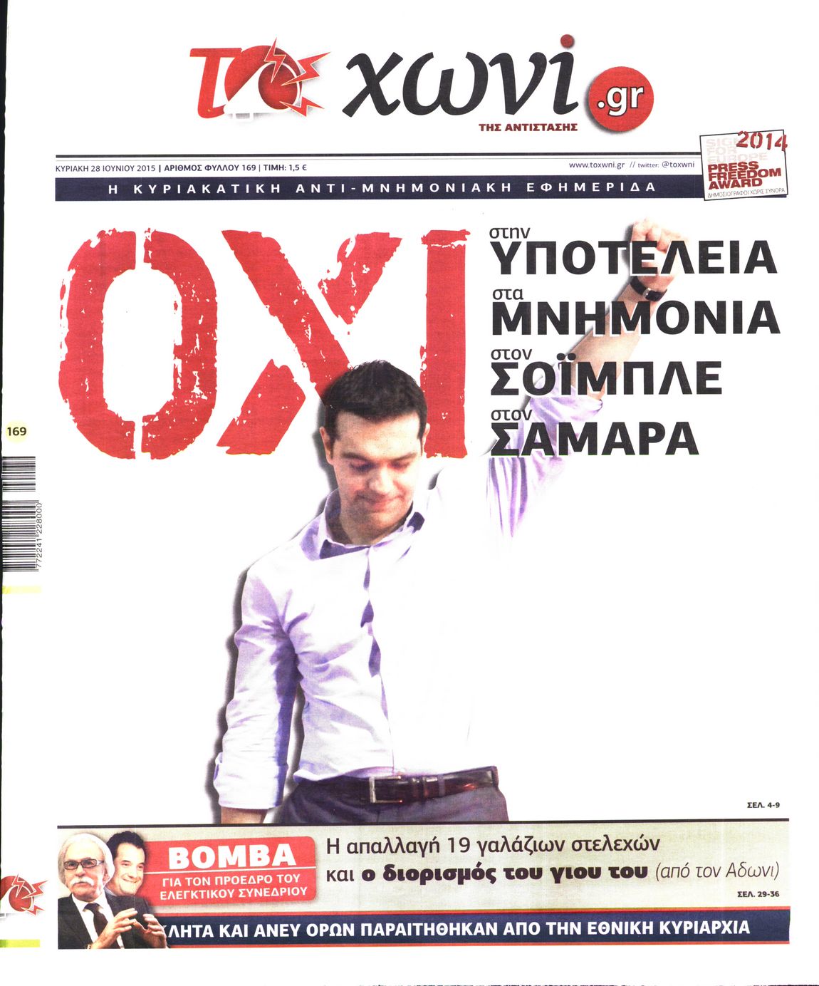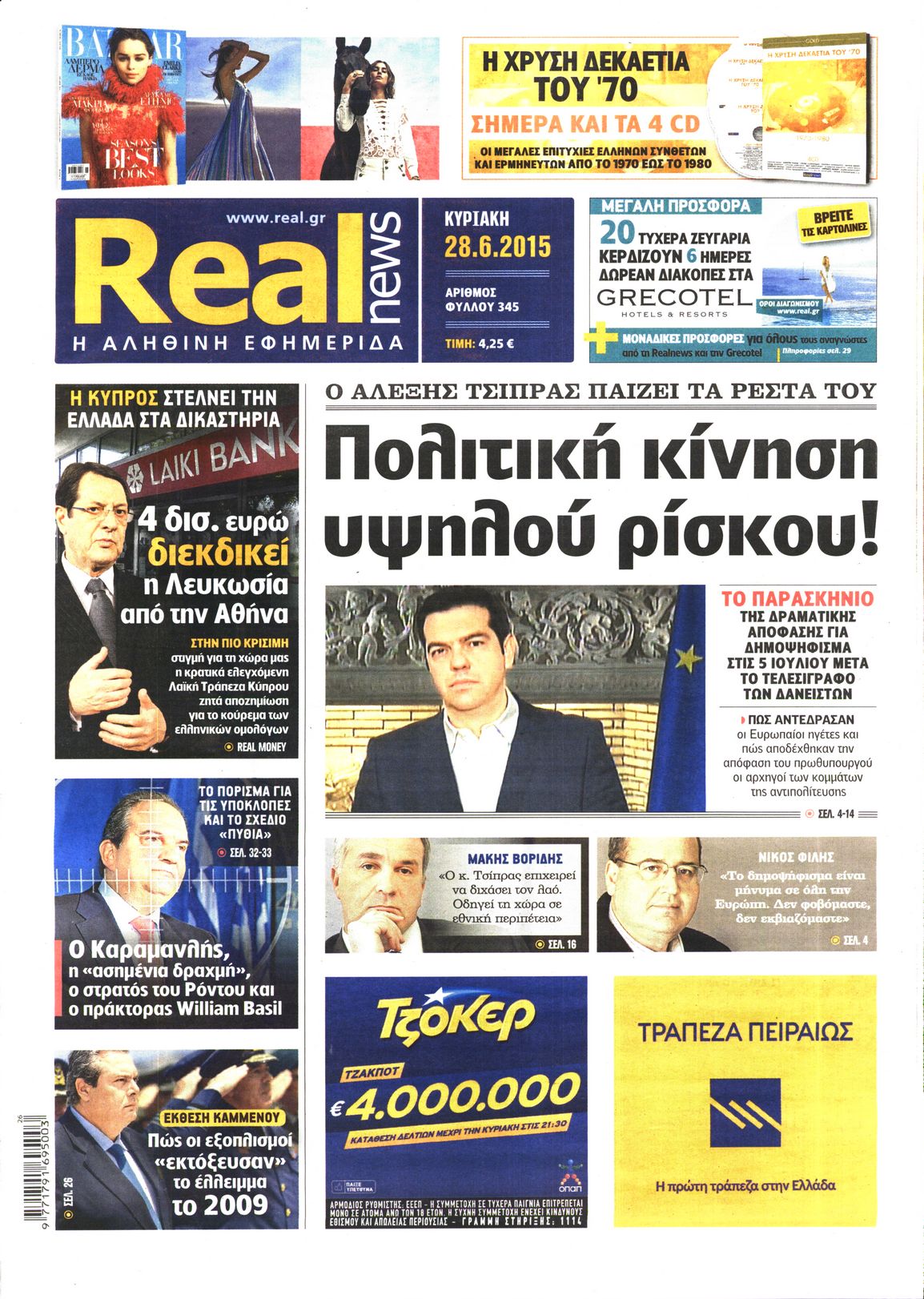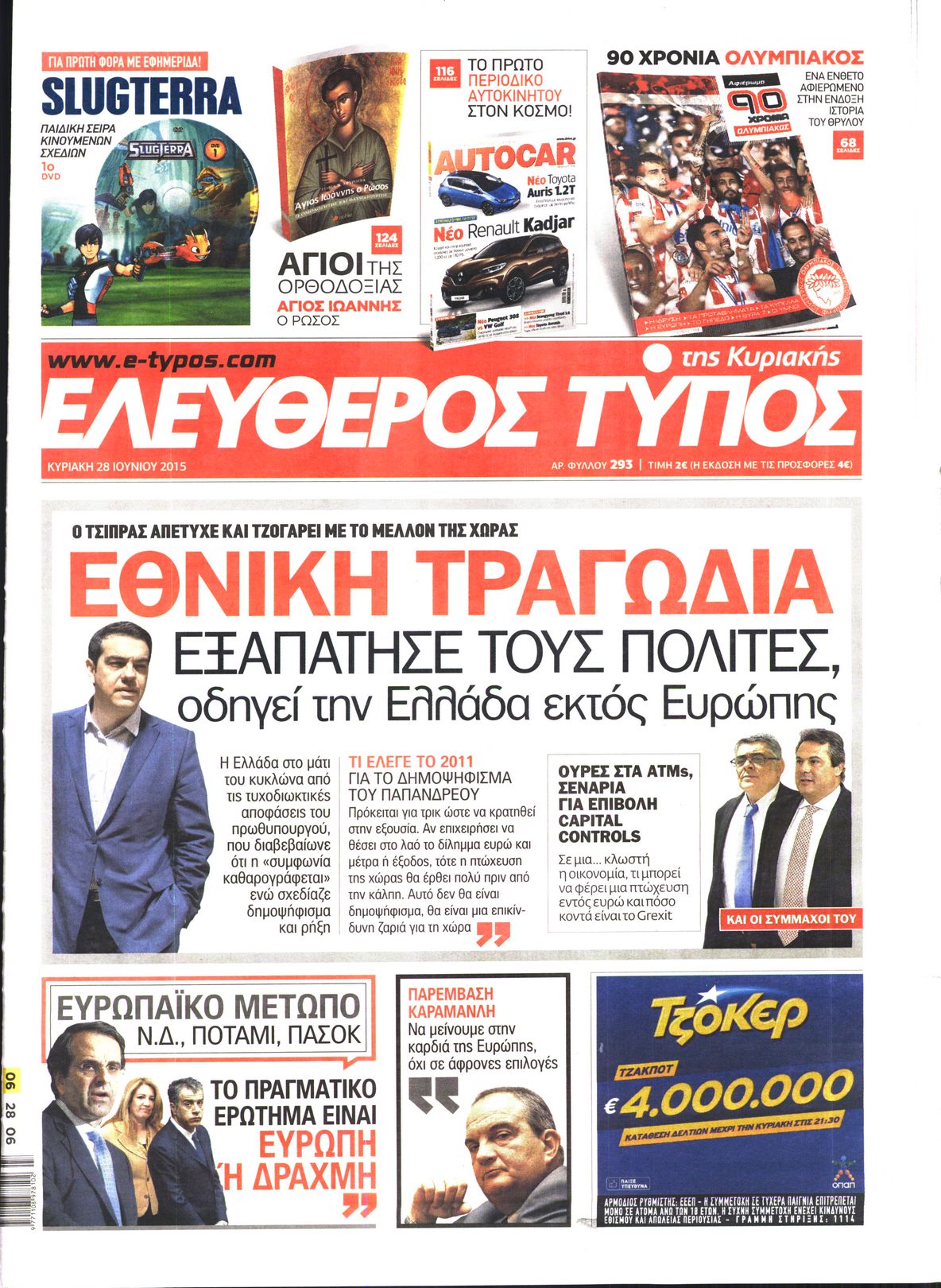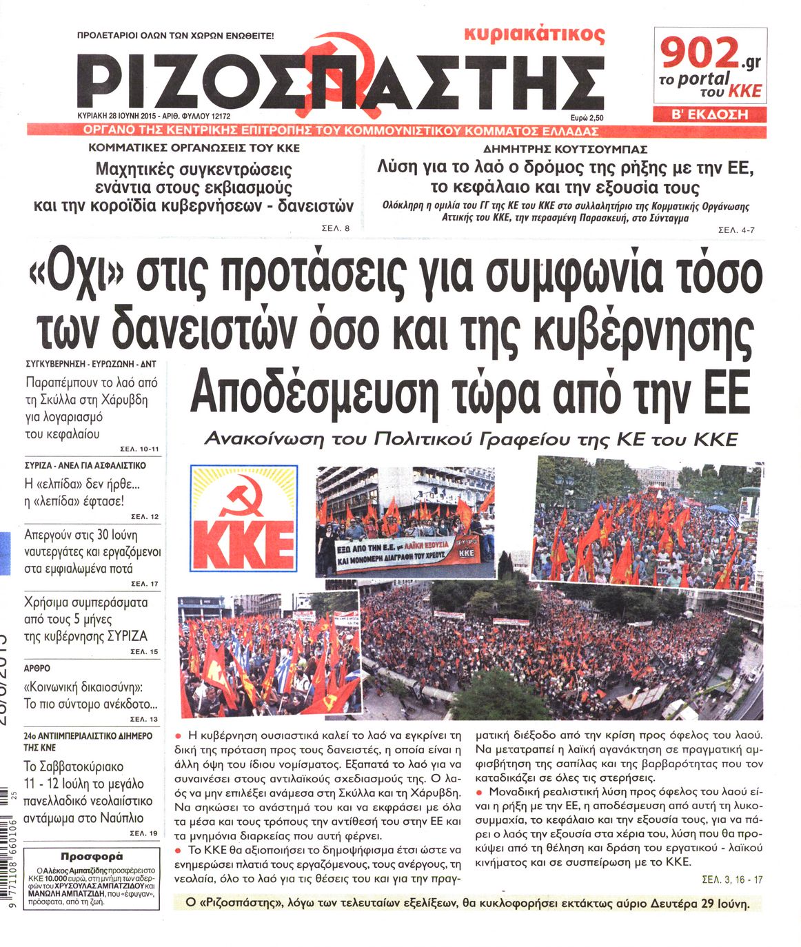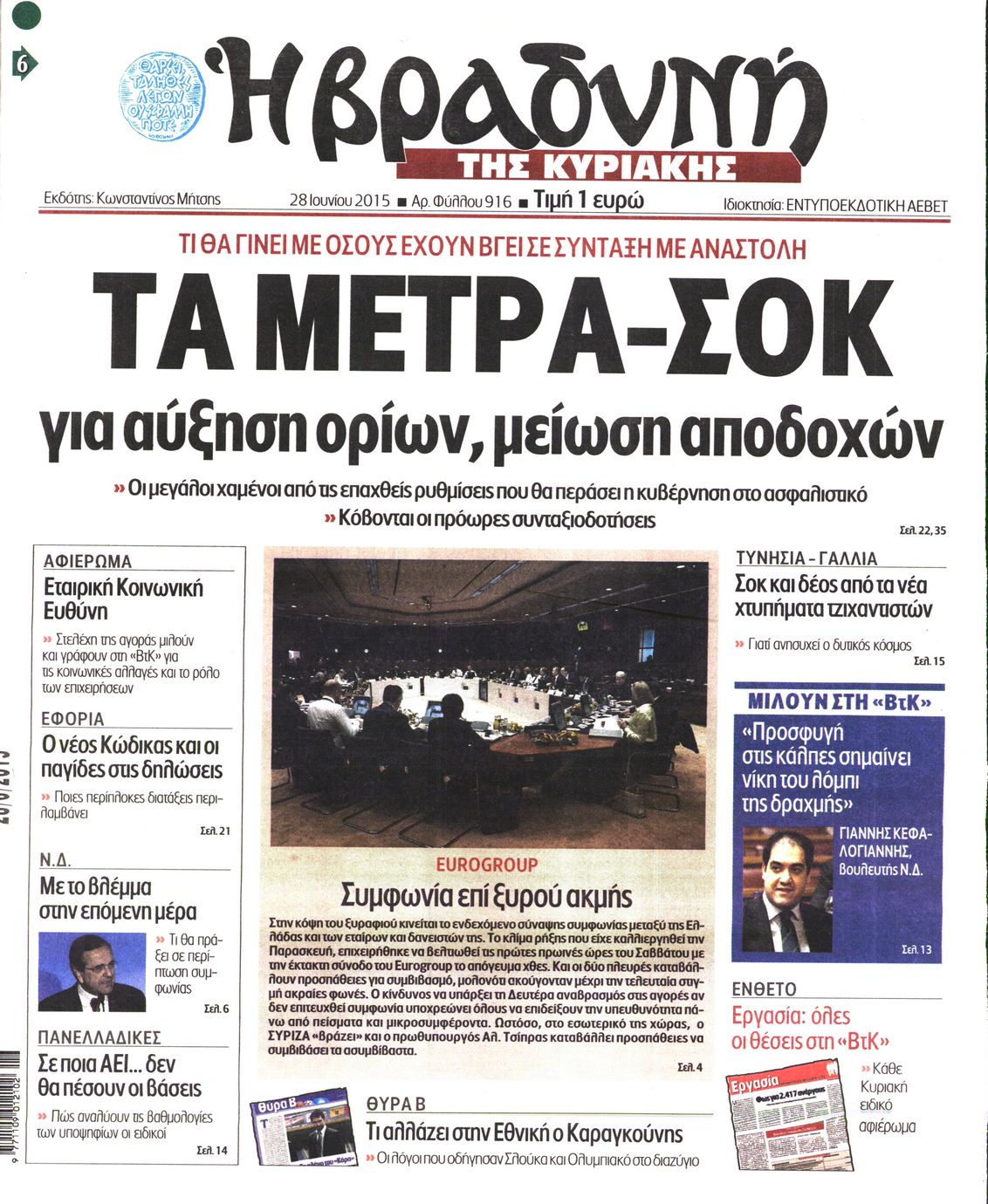 Οι πολιτικές εφημερίδες 28/6/2015 Enikos Newsroom 07:27, Κυριακή 28 Ιουνίου 2015 Media Διαβάστε τα σημερινά πρωτοσέλιδα των πολιτικών εφημερίδων: ΠΟΛΙΤΙΚΕΣ ΕΦΗΜΕΡΙΔΕΣ ΠΡΩΤΟΣΕΛΙΔΑ Μοιράσου το: σχολίασε κι εσύ (0 σχόλια) Ακολουθήστε το enikos.gr στο Google News και μάθετε πρώτοι όλες τις ειδήσεις Δείτε όλες τις τελευταίες ειδήσεις από την Ελλάδα και τον Κόσμο στο enikos.gr Ειδήσεις Ροή Ειδήσεων 49 λεπτά πριν Χριστούγεννα στα μπλόκα: Επιμένουν στις κινητοποιήσεις τους οι αγρότες – Ανοίγουν τα διόδια το Σαββατοκύριακο 1 ώρα πριν Ουκρανία: Η άνευ προηγουμένου επίθεση σε ρωσικό τάνκερ στη Μεσόγειο και το μήνυμα προς στον Πούτιν – Το «μακρύ χέρι» του Κιέβου 27 λεπτά πριν Πούτιν: Τα μηνύματα σε Ευρώπη και ΝΑΤΟ από το μαραθώνιο «σόου» του – Η απαίτηση για «σεβασμό» και η ειρήνη «με τους όρους» της Μόσχας 1 ώρα πριν Τραμπ: Δεν αποκλείει την πιθανότητα ενός πολέμου στη Βενεζουέλα – «Ο Μαδούρο ξέρει καλύτερα από τον καθένα τι ακριβώς θέλω» 2 ώρες πριν Συνεχίζει να προκαλεί ο Μίτσκοσκι: «Για μένα το όνομα Μακεδονία είναι ιερό» 4 ώρες πριν Πούτιν: «Ναι, είμαι ερωτευμένος» – Βίντεο από τη σπάνια προσωπική παραδοχή του 2 ώρες πριν Αριθμολογία: Οι άνθρωποι που έχουν γεννηθεί αυτές τις 4 ημερομηνίες, συχνά παρεξηγούνται – «Η καλοσύνη τους κρύβει τεράστια δύναμη» 1 ώρα πριν Ύπνος: Μια κρυφή κατάσταση του εγκεφάλου πριν από τον ύπνο μπορεί να είναι το “κλειδί” για υψηλή ευφυΐα και δημιουργικότητα 3 ώρες πριν Ξεχάστε το καθάρισμα το Σαββατοκύριακο: Ο «κανόνας των 20 λεπτών» που θα σας λύσει τα χέρια 28 λεπτά πριν Ανακαλύφθηκαν αρχαία χρυσά νομίσματα 2.200 ετών που απεικονίζουν τον θεό Απόλλωνα – Η άγνωστη σύνδεση με τον Φίλιππο Β΄ της Μακεδονίας 12 λεπτά πριν Ολυμπιακός – Βιλερμπάν 107-84: Επιστροφή στις νίκες με… προπόνηση 18 λεπτά πριν Νέος Κόσμος: Συνελήφθη 41χρονος με ένταλμα από την Τουρκία για εμπόριο ναρκωτικών και ληστεία 27 λεπτά πριν Πούτιν: Τα μηνύματα σε Ευρώπη και ΝΑΤΟ από το μαραθώνιο «σόου» του – Η απαίτηση για «σεβασμό» και η ειρήνη «με τους όρους» της Μόσχας 28 λεπτά πριν Ανακαλύφθηκαν αρχαία χρυσά νομίσματα 2.200 ετών που απεικονίζουν τον θεό Απόλλωνα – Η άγνωστη σύνδεση με τον Φίλιππο Β΄ της Μακεδονίας 33 λεπτά πριν Νίκος Ξυλούρης: Συγκινεί η χήρα του σπουδαίου καλλιτέχνη – «Ευχαριστώ όλο τον κόσμο που τον κρατάει ζωντανό 45 χρόνια» ENIKOS NETWORK Το ΕΚΑΒ τιμήθηκε από την Ακαδημία Αθηνών για τα 40 χρόνια προσφοράς του Έχετε πραγματικά μεγάλη καρδιά; 10 χαρακτηριστικά όσων έχουν καλοσύνη Αναστολή μέτρων αναγκαστικής εκτέλεσης για κτηνοτρόφους που πλήττονται από την ευλογιά των αιγοπροβάτων Πλήρης επάρκεια προϊόντων στις λαϊκές της Αττικής, παρά τις αγροτικές κινητοποιήσεις – Τι απαντούν οι πωλητές Χαρτογραφώντας το «σημείο χωρίς επιστροφή»: Για πρώτη φορά αποκαλύπτεται με λεπτομέρεια το ακανθώδες όριο της ατμόσφαιρας τ... Η Google καταργεί τη λειτουργία «dark web report» – Πώς θα μπορούν οι χρήστες να διαγράφουν τα δεδομένα τους περισσότερα 22:42 , Παρασκευή 19 Δεκεμβρίου 2025 Γιώργος Γιαννόπουλος για “Το σόι σου”: “Είναι ευτυχία και ευλογία αυτή η σειρά” «Είναι ευτυχία και ευλογία η συγκυρία αυτής της σειράς», θα πει ο Γιώργος Γιαννόπουλος -ο αγαπ... 20:37 , Παρασκευή 19 Δεκεμβρίου 2025 Don’t Forget The Lyrics: Η Έλλη Κοκκίνου υποδέχεται 4 παίκτες που θα κάνουν τα πάντα για να μη χάσουν ούτε… μισή λέξη από τους στίχους Το «Don’t Forget The Lyrics» επιστρέφει απόψε, Παρασκευή 19 Δεκεμβρίου, στις 21:00 με νέο επει... 19:31 , Παρασκευή 1