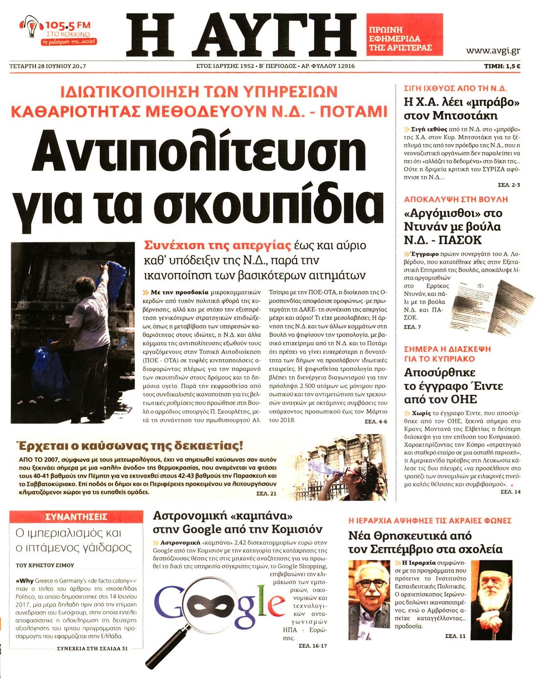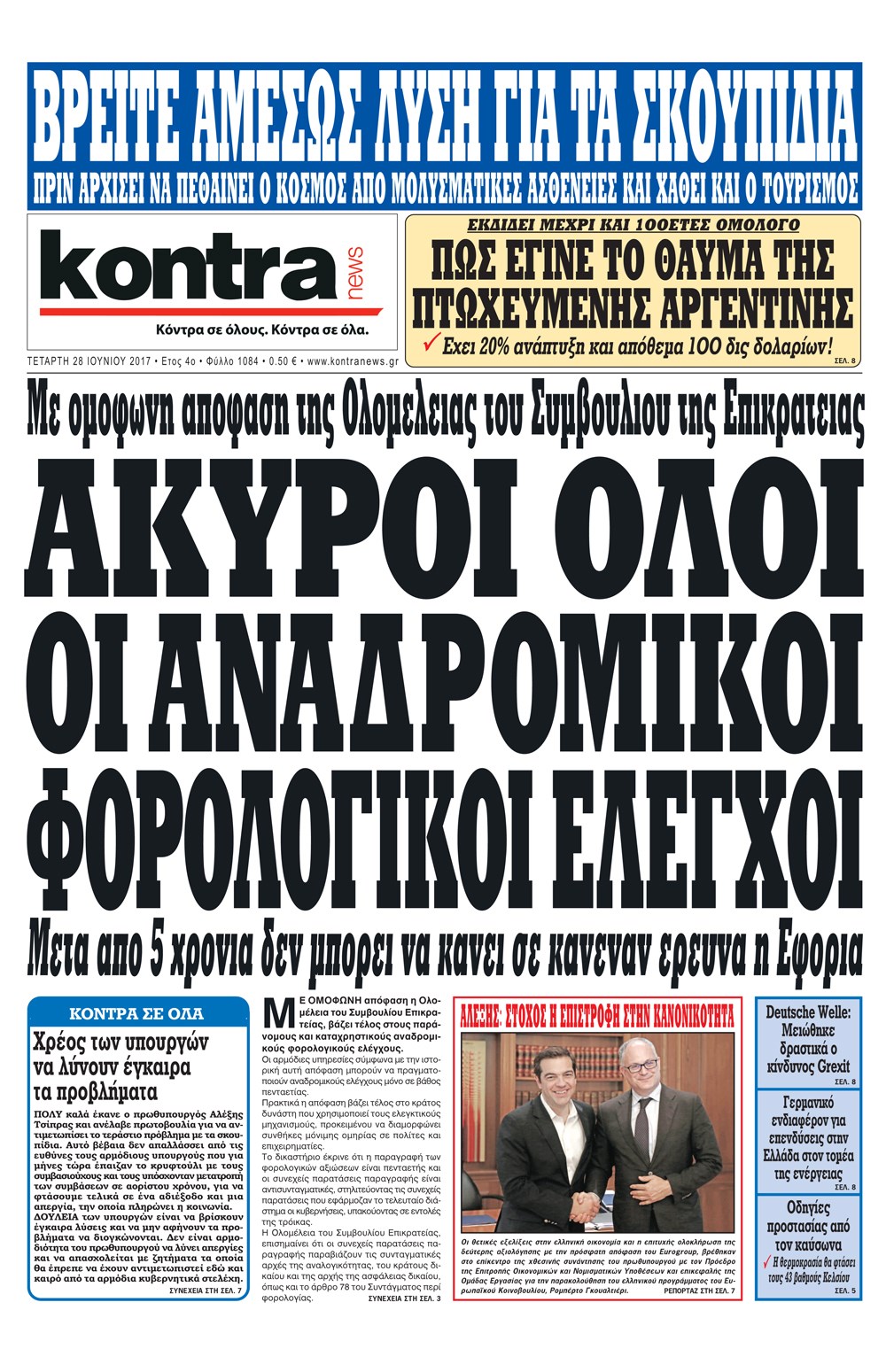 Οι πολιτικές εφημερίδες 28/6/2017 Enikos Newsroom 07:35, Τετάρτη 28 Ιουνίου 2017 Media Διαβάστε τα σημερινά πρωτοσέλιδα των πολιτικών εφημερίδων… ΠΟΛΙΤΙΚΕΣ ΕΦΗΜΕΡΙΔΕΣ ΠΡΩΤΟΣΕΛΙΔΑ Μοιράσου το: σχολίασε κι εσύ (0 σχόλια) Ακολουθήστε το enikos.gr στο Google News και μάθετε πρώτοι όλες τις ειδήσεις Δείτε όλες τις τελευταίες ειδήσεις από την Ελλάδα και τον Κόσμο στο enikos.gr Ειδήσεις Ροή Ειδήσεων 8 ώρες πριν Χριστούγεννα στα μπλόκα: Επιμένουν στις κινητοποιήσεις τους οι αγρότες – Ανοίγουν τα διόδια το Σαββατοκύριακο 9 ώρες πριν Ουκρανία: Η άνευ προηγουμένου επίθεση σε ρωσικό τάνκερ στη Μεσόγειο και το μήνυμα προς στον Πούτιν – Το «μακρύ χέρι» του Κιέβου 8 ώρες πριν Πούτιν: Τα μηνύματα σε Ευρώπη και ΝΑΤΟ από το μαραθώνιο «σόου» του – Η απαίτηση για «σεβασμό» και η ειρήνη «με τους όρους» της Μόσχας 7 ώρες πριν ΗΠΑ: Η κυβέρνηση του Ντόναλντ Τραμπ άρχισε να δημοσιοποιεί τα αρχεία Έπσταϊν 7 ώρες πριν Άνω Λιόσια: Πυροβολισμοί σε επιχείρηση με χαλιά – Εντοπίστηκαν 10 κάλυκες 56 λεπτά πριν Αυγά: Πόσα μπορείτε να τρώτε την ημέρα με ασφάλεια για μέγιστη πρόσληψη πρωτεΐνης 1 ώρα πριν Τα ζώδια σήμερα, Σάββατο 20 Δεκεμβρίου: Παρθένοι, το σύμπαν σας δίνει το κλειδί 8 ώρες πριν Ανακαλύφθηκαν αρχαία χρυσά νομίσματα 2.200 ετών που απεικονίζουν τον θεό Απόλλωνα – Η άγνωστη σύνδεση με τον Φίλιππο Β΄ της Μακεδονίας 9 ώρες πριν Ύπνος: Μια κρυφή κατάσταση του εγκεφάλου πριν από τον ύπνο μπορεί να είναι το “κλειδί” για υψηλή ευφυΐα και δημιουργικότητα 2 λεπτά πριν Αναβολή συμφωνίας ΕΕ-Mercosur: Ο χρόνος «δεν είναι απεριόριστος» προειδοποιεί η Παραγουάη 17 λεπτά πριν Κίριλ Ντμίτριεφ: Στις ΗΠΑ ο απεσταλμένος της Ρωσίας για συνομιλίες με τους ομολόγους του, Γουίτκοφ και Κούσνερ 25 λεπτά πριν ΔΕΔΔΗΕ: Διακοπές ρεύματος σήμερα (20/12) στην Αθήνα και σε άλλες 7 περιοχές της Αττικής 33 λεπτά πριν Κολομβία: Είκοσι χρόνια κάθειρξη σε πρώην ανώτερο αξιωματικό για 72 εκτελέσεις αμάχων 41 λεπτά πριν Οπτική ψευδαίσθηση: Μόνο αν είσαι ο Σέρλοκ Χολμς θα βρεις τον αριθμό «87» σε 7 δευτερόλεπτα ENIKOS NETWORK Πρέπει να αποδέχεστε ή να απορρίπτετε όλα τα cookies; Ένας ειδικός εξηγεί Η αγαπημένη λιχουδιά των πόνι που μπορεί να ενισχύσει όραση, εγκέφαλο και ανοσοποιητικό Αναστολή μέτρων αναγκαστικής εκτέλεσης για κτηνοτρόφους που πλήττονται από την ευλογιά των αιγοπροβάτων Πλήρης επάρκεια προϊόντων στις λαϊκές της Αττικής, παρά τις αγροτικές κινητοποιήσεις – Τι απαντούν οι πωλητές Χαρτογραφώντας το «σημείο χωρίς επιστροφή»: Για πρώτη φορά αποκαλύπτεται με λεπτομέρεια το ακανθώδες όριο της ατμόσφαιρας τ... Η Google καταργεί τη λειτουργία «dark web report» – Πώς θα μπορούν οι χρήστες να διαγράφουν τα δεδομένα τους περισσότερα 05:48 , Σάββατο 20 Δεκεμβρίου 2025 Οι οικονομικές εφημερίδες 20/12/2025 Διαβάστε τα πρωτοσέλιδα από τις οικονομικές εφημερίδες, σήμερα 20/12/2025. 05:43 , Σάββατο 20 Δεκεμβρίου 2025 Οι αθλητικές εφημερίδες 20/12/2025 Διαβάστε τα πρωτοσέλιδα από τις αθλητικές εφημερίδες, σήμερα 20/12/2025. 05:38 , Σάββατο 20 Δεκεμβρίου 2025 Οι πολιτικές εφημερίδες 20/12/2025 Διαβάστε τα πρωτοσέλιδα από τις πολιτικές εφημερίδες, σήμερα 20/12/2025. 04:20 , Σάββατο 20 Δεκεμβρίου 2025 Αγγελική Νικολούλη: Τα συλλυπητήρια για την απώλεια της Ειρήνης Μαρινάκη Τα συλληπητήρια στον πρόεδρο του Mega, τον Βαγγέλη Μαρινάκη, για την απώλεια της μητέρας του Ε... ΤΕΛΕΥΤΑΙΕΣ ΕΙΔΗΣΕΙΣ 17 λεπτά πριν Κίριλ Ντμίτριεφ: Στις ΗΠΑ ο απεσταλμένος της Ρωσίας... 25 λεπτά πριν ΔΕΔΔΗΕ: Διακοπές ρεύματος σήμερα (20/12) στην Αθήνα κα