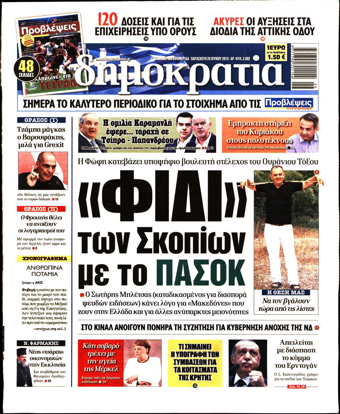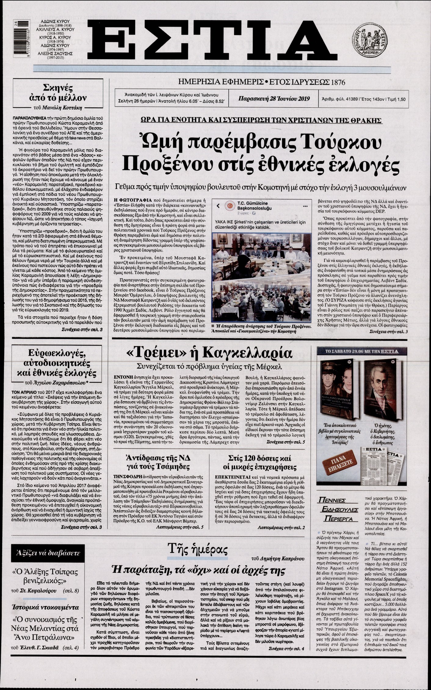 Οι πολιτικές εφημερίδες 28/6/2019 Enikos Newsroom 06:34, Παρασκευή 28 Ιουνίου 2019 Media Διαβάστε τα πρωτοσέλιδα των πολιτικών εφημερίδων: ΠΟΛΙΤΙΚΕΣ ΕΦΗΜΕΡΙΔΕΣ ΠΡΩΤΟΣΕΛΙΔΑ Μοιράσου το: σχολίασε κι εσύ (0 σχόλια) Ακολουθήστε το enikos.gr στο Google News και μάθετε πρώτοι όλες τις ειδήσεις Δείτε όλες τις τελευταίες ειδήσεις από την Ελλάδα και τον Κόσμο στο enikos.gr Ειδήσεις Ροή Ειδήσεων 1 ώρα πριν Υπόθεση Έπσταϊν: Το Υπουργείο Δικαιοσύνης δημοσιοποίησε μια σειρά από εξαιρετικά επεξεργασμένα αρχεία – «Λείπουν τα πιο σημαντικά έγγραφα», λένε οι Δημοκρατικοί 36 λεπτά πριν Ο «χάρτης» με τις αυξήσεις και τις φοροελαφρύνσεις του 2026 – Ποιοι και πόσα κερδίζουν 11 ώρες πριν Χριστούγεννα στα μπλόκα: Επιμένουν στις κινητοποιήσεις τους οι αγρότες – Ανοίγουν τα διόδια το Σαββατοκύριακο 2 ώρες πριν ΟΝΕΧ – MEGATUGS: Ξεκίνησε η ναυπήγηση ρυμουλκών στην Ελλάδα – Προθάλαμος πολεμικών πλοίων – Δείτε φωτογραφίες και βίντεο 1 ώρα πριν Καιρός: Αλλαγή σκηνικού σήμερα με βροχές και πτώση της θερμοκρασίας – Οι προβλέψεις των μετεωρολόγων για τα Χριστούγεννα 3 ώρες πριν Αυγά: Πόσα μπορείτε να τρώτε την ημέρα με ασφάλεια για μέγιστη πρόσληψη πρωτεΐνης 4 ώρες πριν Τα ζώδια σήμερα, Σάββατο 20 Δεκεμβρίου: Παρθένοι, το σύμπαν σας δίνει το κλειδί 3 ώρες πριν Οπτική ψευδαίσθηση: Μόνο αν είσαι ο Σέρλοκ Χολμς θα βρεις τον αριθμό «87» σε 7 δευτερόλεπτα 1 ώρα πριν Αρχαιολόγοι ανακάλυψαν σε χωράφι απεικόνιση 600 ετών ενός Αγίου – Τα στοιχεία που δείχνουν ότι μαρτύρησε 7 λεπτά πριν Παιδική υπέρταση: Μια σιωπηλή απειλή που αυξάνεται διεθνώς 8 λεπτά πριν Αγχώνεται για το χριστουγεννιάτικο δώρο που πήρε στην πλούσια σύντροφό του – «Φοβάμαι πως θα το βρει φθηνιάρικο, φοράει βραχιόλια Cartier» 15 λεπτά πριν Enerwave: Το νέο «ρεύμα» στη λιανική ενέργειας που αλλάζει την εμπειρία του καταναλωτή 19 λεπτά πριν Γιώργος Μαζωνάκης: Τη Δευτέρα η μήνυση του τραγουδιστή κατά του 22χρονου 28 λεπτά πριν Αμαλία Κωστοπούλου: Το μήνυμα για το χειρουργείο στο γόνατο – «Αυτός ο τραυματισμός μού στέρησε πολλά…» ENIKOS NETWORK Πόσα κιλά παίρνουμε πραγματικά τα Χριστούγεννα, σύμφωνα με την επιστήμη – Πώς να το αποτρέψουμε; Το δημοφιλές ρόφημα που αυξάνει την πίεση πιο γρήγορα και από το αλάτι Mega χριστουγεννιάτικη φορολοταρία: «Κλείδωσε» η ημερομηνία για την κλήρωση – Ερωτήσεις και απαντήσεις Αναστολή μέτρων αναγκαστικής εκτέλεσης για κτηνοτρόφους που πλήττονται από την ευλογιά των αιγοπροβάτων Χαρτογραφώντας το «σημείο χωρίς επιστροφή»: Για πρώτη φορά αποκαλύπτεται με λεπτομέρεια το ακανθώδες όριο της ατμόσφαιρας τ... Η Google καταργεί τη λειτουργία «dark web report» – Πώς θα μπορούν οι χρήστες να διαγράφουν τα δεδομένα τους περισσότερα 08:14 , Σάββατο 20 Δεκεμβρίου 2025 Τρομεροί γονείς: Η Μαρία Καβογιάννη εισβάλλει στο σπίτι της οικογένειας Στεφανίδη Όσα θα δούμε στο νέο διπλό επεισόδιο της σειράς «Τρομεροί γονείς», σήμερα Σάββατο 20 Δεκεμβρίο... 05:48 , Σάββατο 20 Δεκεμβρίου 2025 Οι οικονομικές εφημερίδες 20/12/2025 Διαβάστε τα πρωτοσέλιδα από τις οικονομικές εφημερίδες, σήμερα 20/12/2025. 05:43 , Σάββατο 20 Δεκεμβρίου 2025 Οι αθλητικές εφημερίδες 20/12/2025 Διαβάστε τα πρωτοσέλιδα από τις αθλητικές εφημερίδες, σήμερα 20/12/2025. 05:38 , Σάββατο 20 Δεκεμβρίου 2025 Οι πολιτικές εφημερίδες 20/12/2025 Διαβάστε τα πρωτοσέλιδα από τις πολιτικές εφημερίδες, σήμερα 20/12/2025. ΤΕΛΕΥΤΑΙΕΣ ΕΙΔΗΣΕΙΣ 7 λεπτά πριν Παιδική υπέρταση: Μια σιωπηλή απειλή που αυξάνεται... 8 λεπτά πριν Αγχώνεται για το χριστουγεννιάτικο