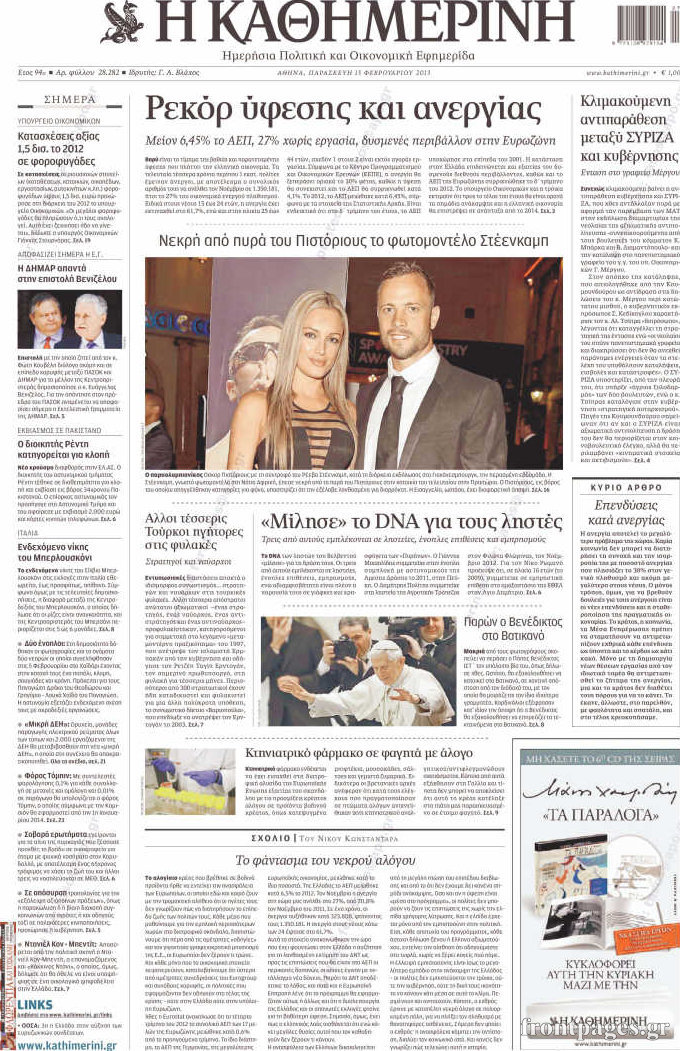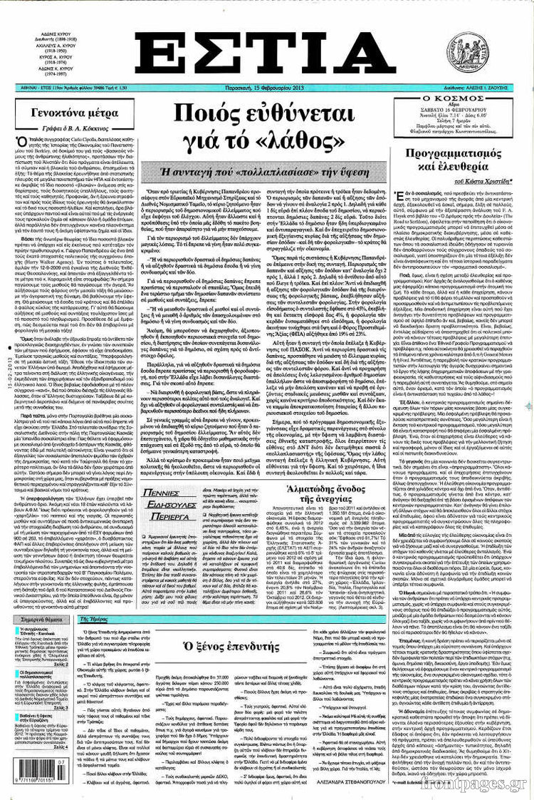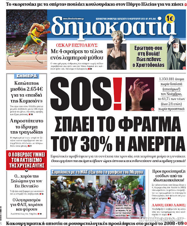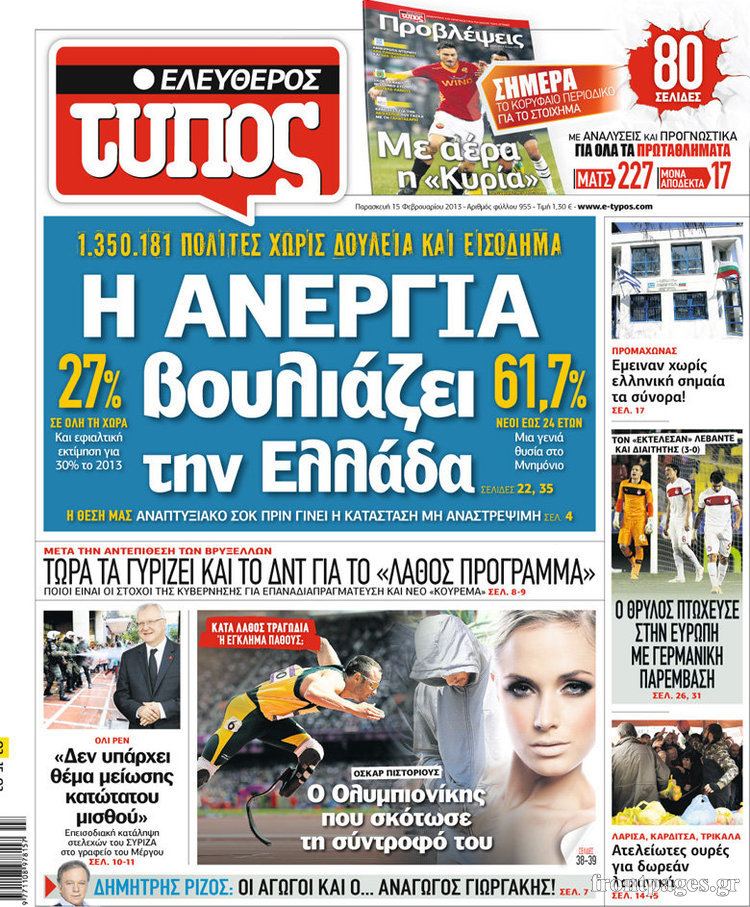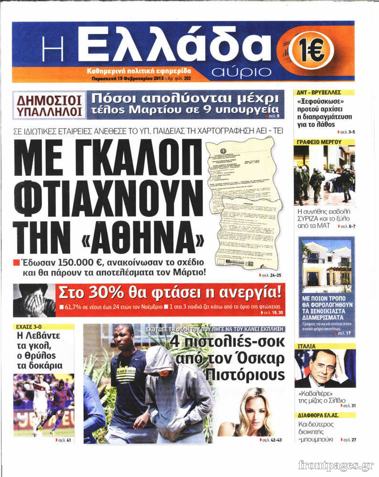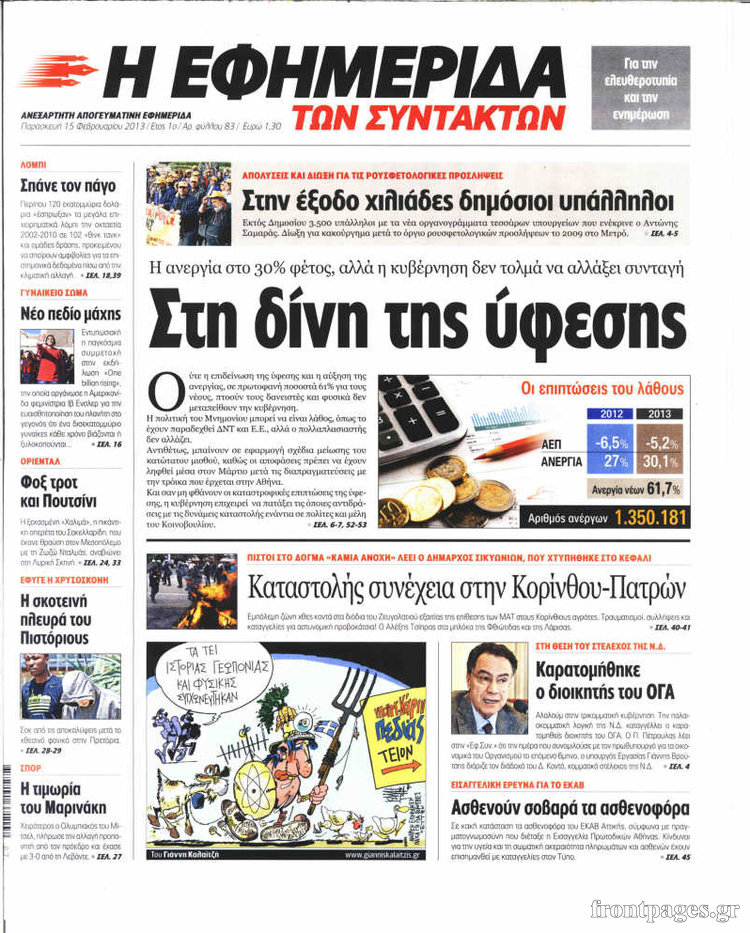 Οι πολιτικές εφημερίδες Enikos Newsroom 08:50, Παρασκευή 15 Φεβρουαρίου 2013 Media Οι πολιτικές εφημερίδες Τα πρωτοσέλιδα των πολιτικών εφημερίδων. ΕΦΗΜΕΡΙΔΕΣ ΠΟΛΙΤΙΚΕΣ ΕΦΗΜΕΡΙΔΕΣ ΠΡΩΤΟΣΕΛΙΔΑ Μοιράσου το: σχολίασε κι εσύ (0 σχόλια) Ακολουθήστε το enikos.gr στο Google News και μάθετε πρώτοι όλες τις ειδήσεις Δείτε όλες τις τελευταίες ειδήσεις από την Ελλάδα και τον Κόσμο στο enikos.gr Ειδήσεις Ροή Ειδήσεων 2 ώρες πριν Γιορτές με μπλόκα για τους αγρότες: Ανοίγουν διόδια και μοιράζουν προϊόντα στους ταξιδιώτες 2 ώρες πριν Τα αρχεία του Έπσταϊν αποκαλύπτουν φωτογραφία του έκπτωτου πρίγκιπα Άντριου – Είναι ξαπλωμένος στην αγκαλιά 5 γυναικών 1 ώρα πριν Νέες ταυτότητες: Μεγάλη αναμονή για ραντεβού στην Αττική – Τέλος τα ταξίδια εκτός Ελλάδος από τον Αύγουστο για όσους δεν έχουν αλλάξει 3 ώρες πριν Εξαφάνιση 33χρονου γιατρού στην Κρήτη: «Άναψα τα φώτα, τρόμαξε και άρχισε να τρέχει στα χωράφια» – Η τελευταία διαδρομή και η μαρτυρία «κλειδί» 37 λεπτά πριν Ινδία: Επτά ελέφαντες σκοτώθηκαν κατά τη σύγκρουση επιβατικού τρένου με κοπάδι 2 ώρες πριν Μία νέα «χρυσή» περίοδος αρχίζει για 3 ζώδια από σήμερα – «Μία αναπάντεχη ευκαιρία οδηγεί στην επιτυχία» 4 ώρες πριν Αρχαιολόγοι ανακάλυψαν σε χωράφι απεικόνιση 600 ετών ενός Αγίου – Τα στοιχεία που δείχνουν ότι μαρτύρησε 3 ώρες πριν Αγχώνεται για το χριστουγεννιάτικο δώρο που πήρε στην πλούσια σύντροφό του – «Φοβάμαι πως θα το βρει φθηνιάρικο, φοράει βραχιόλια Cartier» 34 λεπτά πριν Διαιτολόγος αποκαλύπτει 9 πρωινές συνήθειες που «λιώνουν» το κοιλιακό λίπος – «Υποστηρίζουν την υγιεινή απώλεια βάρους» 5 λεπτά πριν Αρχεία Έπσταϊν: Οι συγκλονιστικές φωτογραφίες – Ο Μάικλ Τζάκσον, ο Μικ Τζάγκερ και ο Κέβιν Σπέισι ανάμεσα στους διάσημους που απεικονίζονται 14 λεπτά πριν Χρήστος Μάντακας: «Θα μπορούσα να είχα φύγει από τη ζωή, δεν μπορούσα να περπατήσω…» 21 λεπτά πριν Εντυπωσιακό βίντεο από «τσουνάμι» πάγου στη Σιβηρία – Πώς προκαλείται το σπάνιο φαινόμενο 29 λεπτά πριν Μυλωνάκης κατά Τζάκρη: Την καλώ να ανασκευάσει το αδιανόητο ψέμα της. Η ανοχή έχει και τα όρια της» 34 λεπτά πριν Διαιτολόγος αποκαλύπτει 9 πρωινές συνήθειες που «λιώνουν» το κοιλιακό λίπος – «Υποστηρίζουν την υγιεινή απώλεια βάρους» ENIKOS NETWORK Είστε μόνιμα απρόσεκτοι; 3 σημάδια που δείχνουν ότι μπορεί να είναι σύμπτωμα πάθησης Πόσα κιλά παίρνουμε πραγματικά τα Χριστούγεννα, σύμφωνα με την επιστήμη – Πώς να το αποτρέψουμε; Χριστούγεννα και Πρωτοχρονιά: Πώς αμείβονται όσοι εργαστούν e-ΕΦΚΑ και ΔΥΠΑ: Έρχονται νέες πληρωμές έως τις 24 Δεκεμβρίου – Ποιοι πάνε ταμείο Χαρτογραφώντας το «σημείο χωρίς επιστροφή»: Για πρώτη φορά αποκαλύπτεται με λεπτομέρεια το ακανθώδες όριο της ατμόσφαιρας τ... Η Google καταργεί τη λειτουργία «dark web report» – Πώς θα μπορούν οι χρήστες να διαγράφουν τα δεδομένα τους περισσότερα 11:41 , Σάββατο 20 Δεκεμβρίου 2025 «Η αγάπη δεν χάνεται ποτέ»: Η μικρού μήκους ταινία κινουμένων σχεδίων που θέτει ερωτήματα για τη ζωή και τον θάνατο Ο θάνατος είναι ένα από τα πιο σκληρά θέματα που καλείται να διαχειριστεί κάποιος στη διάρκεια... 09:30 , Σάββατο 20 Δεκεμβρίου 2025 «Porto Leone: Στη γειτονιά με τα κόκκινα φανάρια» – Ο Χρόνης αποκαλύπτει στην Αλεξάνδρα το μυστικό για το παιδί της Λένας Η μεγάλη δραματική σειρά του Apha «Porto Leone: Στη γειτονιά με τα κόκκινα φανάρια» μας μεταφέ... 08:14 , Σάββατο 20 Δεκεμβρίου 2025 Τρομεροί γονείς: Η Μαρία Καβογιάννη εισβάλλει στο σπίτι της οικογένειας Στεφανίδη
