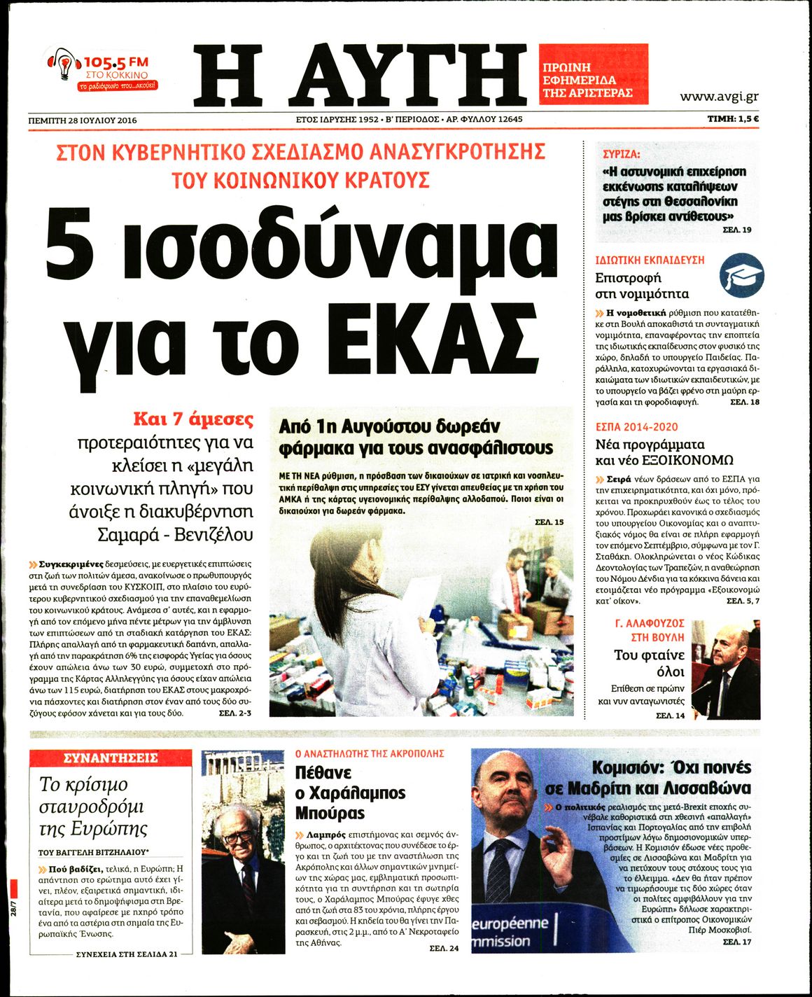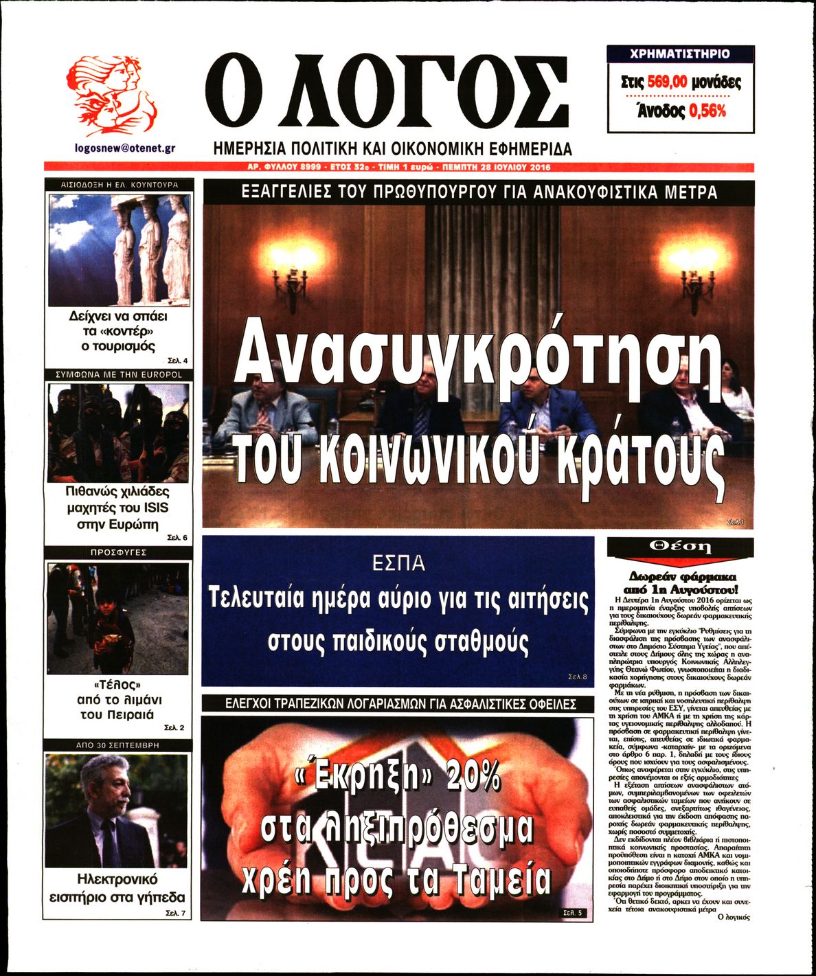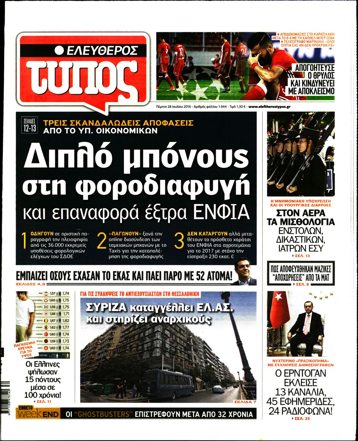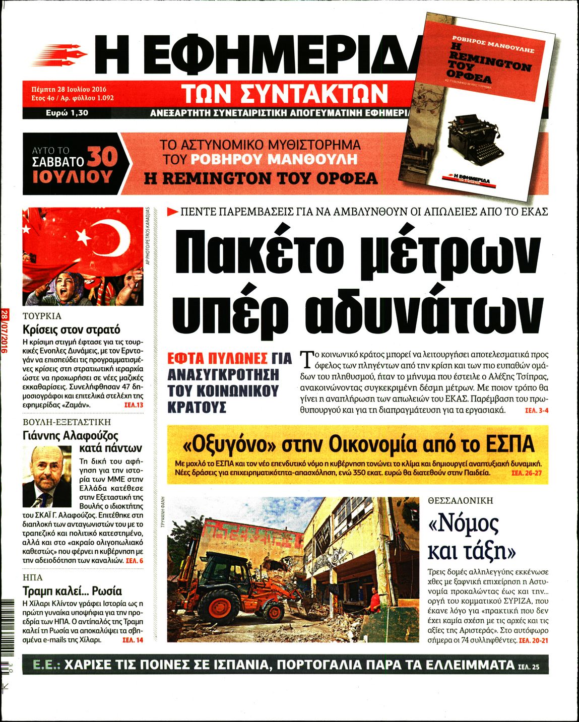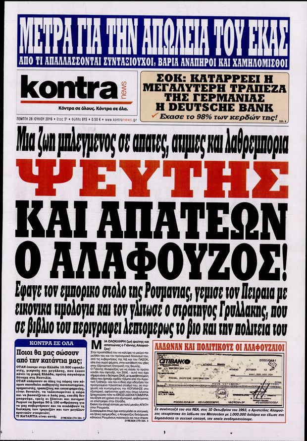 Οι πολιτικές εφημερίδες 28/7/2016 Enikos Newsroom 05:06, Πέμπτη 28 Ιουλίου 2016 Media Διαβάστε τα σημερινά πρωτοσέλιδα των πολιτικών εφημερίδων: ΠΟΛΙΤΙΚΕΣ ΕΦΗΜΕΡΙΔΕΣ ΠΡΩΤΟΣΕΛΙΔΑ Μοιράσου το: σχολίασε κι εσύ (0 σχόλια) Ακολουθήστε το enikos.gr στο Google News και μάθετε πρώτοι όλες τις ειδήσεις Δείτε όλες τις τελευταίες ειδήσεις από την Ελλάδα και τον Κόσμο στο enikos.gr Ειδήσεις Ροή Ειδήσεων 2 ώρες πριν Αγρότες: «Όχι στον διάλογο, μας εμπαίζει η κυβέρνηση» – Αποφάσισαν κλιμάκωση των κινητοποιήσεων, τι θα γίνει τα Χριστούγεννα 2 ώρες πριν Την πρώτη Belharra παρέλαβε η χώρα μας, υψώθηκε η ελληνική σημαία στη φρεγάτα «Κίμων» – Δένδιας: «Το ισχυρότερο Πολεμικό Ναυτικό που είχε ποτέ ο ελληνισμός» 8 λεπτά πριν Γιώργος Μαζωνάκης: «Έχει υποστεί ένα σωρό εκβιαστικές πρακτικές – Του είπαν ότι θα του βάλουν τον συγκεκριμένο άνθρωπο να τον καταγγείλει» 1 ώρα πριν Μιχάλης Χουρδάκης: «Είμαι διαθέσιμος να συμβάλω στην προσωρινή κάλυψη του ιατρείου της Ψερίμου» – Η επιστολή στον Άδωνι Γεωργιάδη 2 ώρες πριν Εξώδικο Γεωργιάδη στην Κωνσταντοπούλου – «Με κατηγόρησε ότι έχω καταδικαστεί για παιδεραστία» 3 ώρες πριν Τα 5 ζώδια που θα ευνοηθούν στα οικονομικά τους το 2026 – «Τραβούν το χρήμα σαν μαγνήτες» 8 ώρες πριν Αν κάνετε συνεχώς αυτά τα 8 πράγματα με τα κατοικίδιά σας, σας λείπει η ανθρώπινη επαφή 4 ώρες πριν Αυτό που κρύβεται κάτω από τη Γροιλανδία θα μπορούσε να ανατρέψει όσα γνωρίζουμε για την άνοδο της στάθμης των θαλασσών 1 ημέρα πριν 20 χρόνια τα Χριστούγεννα ξεκινούν στα Public με μεγάλη ποικιλία σε δώρα! 8 λεπτά πριν Γιώργος Μαζωνάκης: «Έχει υποστεί ένα σωρό εκβιαστικές πρακτικές – Του είπαν ότι θα του βάλουν τον συγκεκριμένο άνθρωπο να τον καταγγείλει» 14 λεπτά πριν Μητσοτάκης: Η φρεγάτα «Κίμων» είναι η καλύτερη απόδειξη ότι οι Ένοπλες Δυνάμεις μας περνούν πια σε μια νέα εποχή – ΒΙΝΤΕΟ 19 λεπτά πριν Πάμε Στοίχημα: Περισσότερα από 29 εκατομμύρια ευρώ σε κέρδη μοίρασε την προηγούμενη εβδομάδα 24 λεπτά πριν Το Ισλαμικό Κράτος αποκαλεί τις δολοφονίες στην Αυστραλία «πηγή υπερηφάνειας» – Δεν αναλαμβάνει την ευθύνη για την επίθεση 28 λεπτά πριν Εύβοια: Πτώμα άνδρα εντοπίστηκε σε πυλωτή ENIKOS NETWORK ΕΟΔΥ: Δωρεάν τεστ για HIV, Ηπατίτιδες, Σύφιλη, Χλαμύδια, Γονόρροια 100 χρόνια ΠΙΣ: Ένας αιώνας προσφοράς στην Ιατρική και την κοινωνία Αμετάβλητα για τέταρτη συνεχόμενη φορά τα επιτόκια της ΕΚΤ – Ποιες είναι οι προβλέψεις για τον πληθωρισμό και την οικονομία... Χριστούγεννα και Πρωτοχρονιά: Δείτε πόσα χρήματα θα πάρουν ως αμοιβή όσοι εργαστούν Χαρτογραφώντας το «σημείο χωρίς επιστροφή»: Για πρώτη φορά αποκαλύπτεται με λεπτομέρεια το ακανθώδες όριο της ατμόσφαιρας τ... Η Google καταργεί τη λειτουργία «dark web report» – Πώς θα μπορούν οι χρήστες να διαγράφουν τα δεδομένα τους περισσότερα 17:45 , Πέμπτη 18 Δεκεμβρίου 2025 ROUK ZOUK: Εορταστικό επεισόδιο με καλεσμένους τους πρωταγωνιστές του «Γιατί ρε πατέρα» Το Σάββατο 20 Δεκεμβρίου στις 21:00, η Ζέτα Μακρυπούλια υποδέχεται εκλεκτούς ηθοποιούς που όλο... 17:20 , Πέμπτη 18 Δεκεμβρίου 2025 Άγιος έρωτας: Η Χριστίνα εξομολογείται στον πατέρα Νικόλαο, απόψε στις 21:00 στον Alpha Η Νότα αποφασίζει να εκδικηθεί τον Πέτρο και τον Στέφανο, για χάρη του Λούη, όμως τα πράγματα ... 16:50 , Πέμπτη 18 Δεκεμβρίου 2025 Να μ’ αγαπάς: Ζωή και Φωτεινή συμφιλιώνονται ως μάνα με κόρη, απόψε στις 20:00 Η ταυτότητα του Άγγελου αποκαλύπτεται στο νέο επεισόδιο της σειράς “Να μ’ αγαπάς... 15:52 , Πέμπτη 18 Δεκεμβρίου 2025 Το Σπίτι Δί