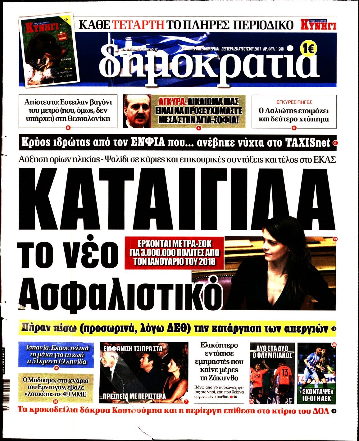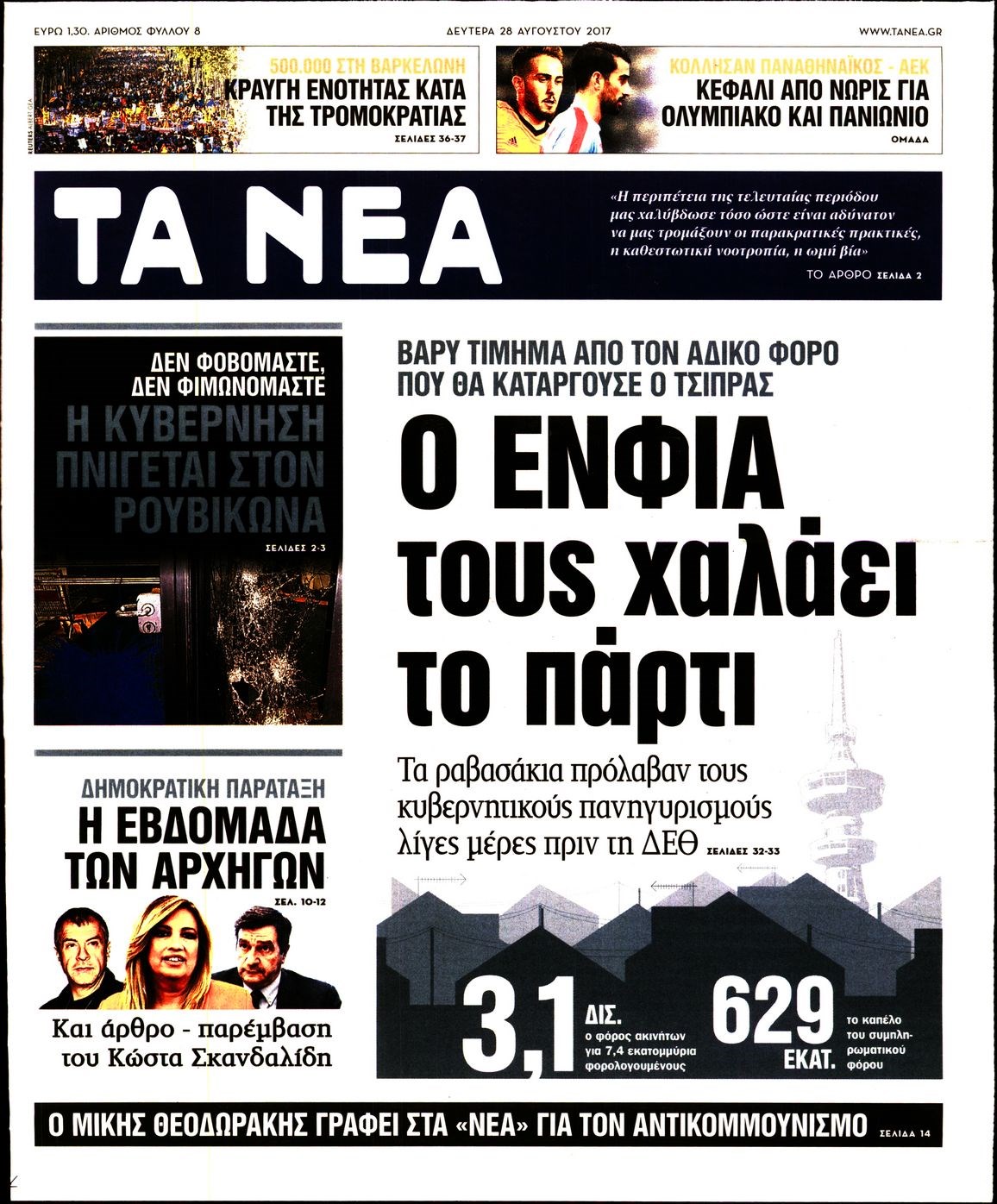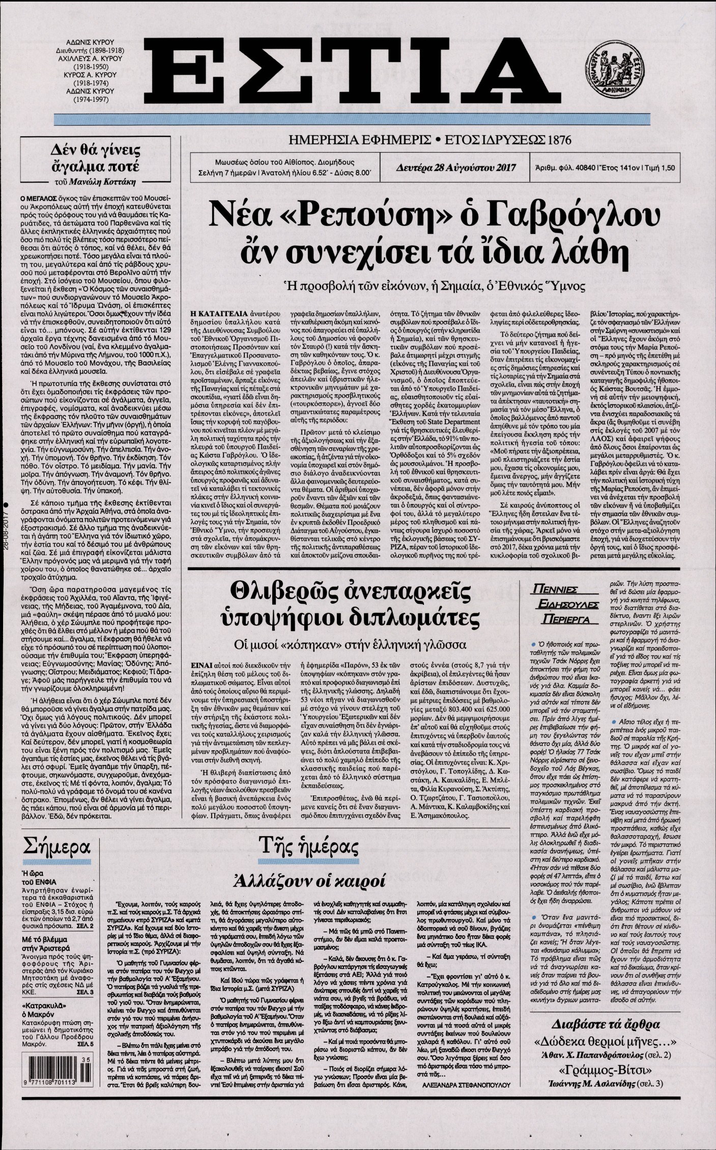 Οι πολιτικές εφημερίδες 28/8/2017 Enikos Newsroom 07:35, Δευτέρα 28 Αυγούστου 2017 Media Διαβάστε τα σημερινά πρωτοσέλιδα των πολιτικών εφημερίδων: ΠΟΛΙΤΙΚΕΣ ΕΦΗΜΕΡΙΔΕΣ ΠΡΩΤΟΣΕΛΙΔΑ Μοιράσου το: σχολίασε κι εσύ (0 σχόλια) Ακολουθήστε το enikos.gr στο Google News και μάθετε πρώτοι όλες τις ειδήσεις Δείτε όλες τις τελευταίες ειδήσεις από την Ελλάδα και τον Κόσμο στο enikos.gr Ειδήσεις Ροή Ειδήσεων 2 ώρες πριν Η Ουκρανία χτύπησε τάνκερ του σκιώδους στόλου της Ρωσίας στη Μεσόγειο – Έπλεε νότια της Κρήτης 4 ώρες πριν Πούτιν: Η Ουκρανία δεν είναι έτοιμη για ειρηνευτικές συνομιλίες – Ο ρωσικός στρατός προελαύνει σε όλα τα μέτωπα 42 λεπτά πριν Θεσσαλονίκη: Στη φυλακή ο 44χρονος που κατηγορείται ότι προσπάθησε να πνίξει με κορδόνι την 34χρονη σύντροφό του 59 λεπτά πριν Εξώδικο επιχειρηματία στον Γιώργο Μαζωνάκη – Τι απαντά στις καταγγελίες του τραγουδιστή 2 ώρες πριν Βουλή: Υπερψηφίστηκε το νομοσχέδιο για την ένταξη του ΟΠΕΚΕΠΕ στην ΑΑΔΕ 6 ώρες πριν Αλλαγή σελίδας για 3 ζώδια – «Μία δύσκολη περίοδος φτάνει στο τέλος της» 2 ημέρες πριν 20 χρόνια τα Χριστούγεννα ξεκινούν στα Public με μεγάλη ποικιλία σε δώρα! 5 ώρες πριν Γεμάτος νεροχύτης; 5 σοβαρές ευθύνες που «φοβίζουν» όσους αφήνουν άπλυτα πιάτα 4 ώρες πριν Ειδικός μοιράζεται 6 κόλπα για να διατηρείστε σε φόρμα με πάνω από 40 ώρες εργασίας την εβδομάδα: «Προπονηθείτε πριν από τη δουλειά, όχι μετά» 4 λεπτά πριν Πούτιν: Σαρκαστικά μηνύματα, παράπονα και απρόοπτα στη συνέντευξη Τύπου – Η πρόταση γάμου on air και οι ερωτήσεις για τα αγγούρια και τους… εξωγήινους 12 λεπτά πριν Κρήτη: Ένοχος ο 54χρονος «ερευνητής» για απάτη στην υπόθεση του 33χρονου γιατρού που αγνοείται 12 λεπτά πριν Νίκος Κούρκουλος: Αυτός ο αλύγιστος και ασυμβίβαστος «Αστραπόγιαννος» 17 λεπτά πριν Παναθηναϊκός: Θα προτείνει στη Λάτσιο 4 εκατ. ευρώ και συνιδιοκτησία για τον Μανδά 23 λεπτά πριν Η απάντηση της κυβέρνησης στα αιτήματα των αγροτών: 16+4 υλοποιούνται ή βρίσκονται υπό επεξεργασία για να βρεθεί λύση – 7 δεν μπορούν να επιλυθούν ENIKOS NETWORK Τάξη στις ιατρικές διαφημίσεις για την προστασία των πολιτών βάζει ο ΙΣΑ Μακροζωία: Τι παίζει πιο σημαντικό ρόλο ακόμα και από την διατροφή και την άσκηση, σύμφωνα με μελέτη Βουλή: Υπερψηφίστηκε το νομοσχέδιο για τη μετάβαση του ΟΠΕΚΕΠΕ στην ΑΑΔΕ ΕΥΔΑΠ: Οδηγός για τις αλλαγές στα τιμολόγια του νερού – 17 ερωτήσεις και απαντήσεις Χαρτογραφώντας το «σημείο χωρίς επιστροφή»: Για πρώτη φορά αποκαλύπτεται με λεπτομέρεια το ακανθώδες όριο της ατμόσφαιρας τ... Η Google καταργεί τη λειτουργία «dark web report» – Πώς θα μπορούν οι χρήστες να διαγράφουν τα δεδομένα τους περισσότερα 15:15 , Παρασκευή 19 Δεκεμβρίου 2025 Την Κυριακή με τη Realnews: Ό,τι και αν αγοράσεις, σκανάρεις και κερδίζεις! Την Κυριακή με τη Realnews: Ό,τι και αν αγοράσεις, σκανάρεις και κερδίζεις! Με το PADU app, το... 08:00 , Παρασκευή 19 Δεκεμβρίου 2025 Την Κυριακή με τη Realnews: Δωροεπιταγή 10€ Δωροεπιταγή αξίας 10€ για αγορές άνω των 60€ από τα πολυκαταστήματα FactoryOutlet H προσφορά ι... 05:48 , Παρασκευή 19 Δεκεμβρίου 2025 Οι οικονομικές εφημερίδες 19/12/2025 Διαβάστε τα πρωτοσέλιδα από τις οικονομικές εφημερίδες, σήμερα 19/12/2025. 05:43 , Παρασκευή 19 Δεκεμβρίου 2025 Οι αθλητικές εφημερίδες 19/12/2025 Διαβάστε τα πρωτοσέλιδα από τις αθλητικές εφημερίδες, σήμερα 19/12/2025. ΤΕΛΕΥΤΑΙΕΣ ΕΙΔΗΣΕΙΣ 4 λεπτά πριν Πούτιν: Σαρκαστικά μηνύματα, παράπονα και απρόοπτα... 12 λεπτά πριν Κρήτη: Ένοχος ο 54χρονος «ερευνητής» για απάτη στην... 12 λεπτά πριν Νίκος Κούρκουλος