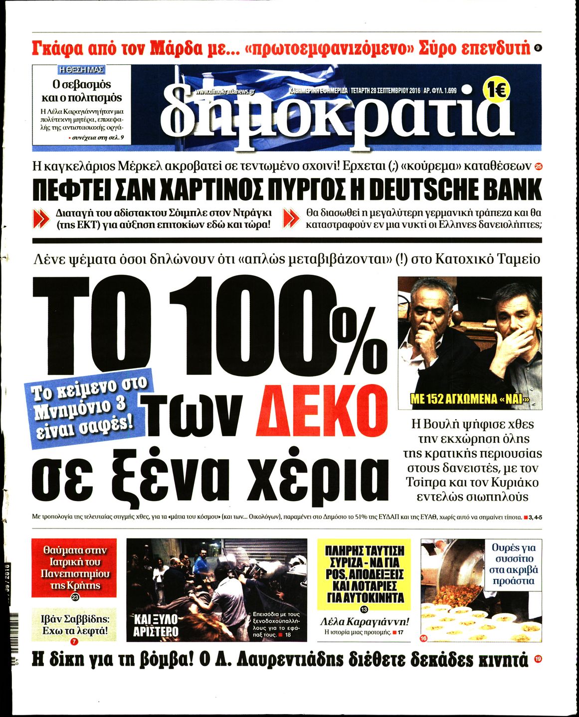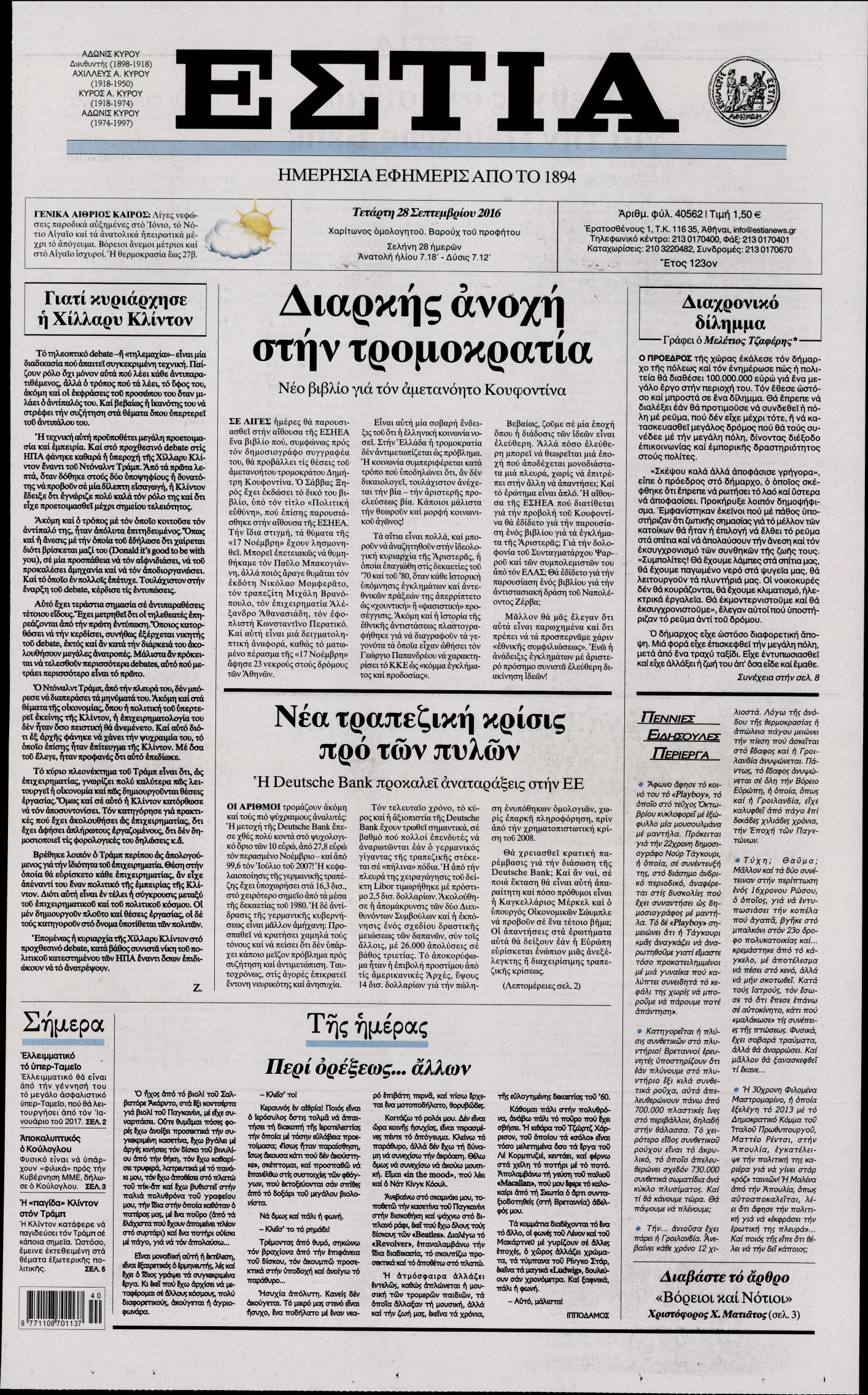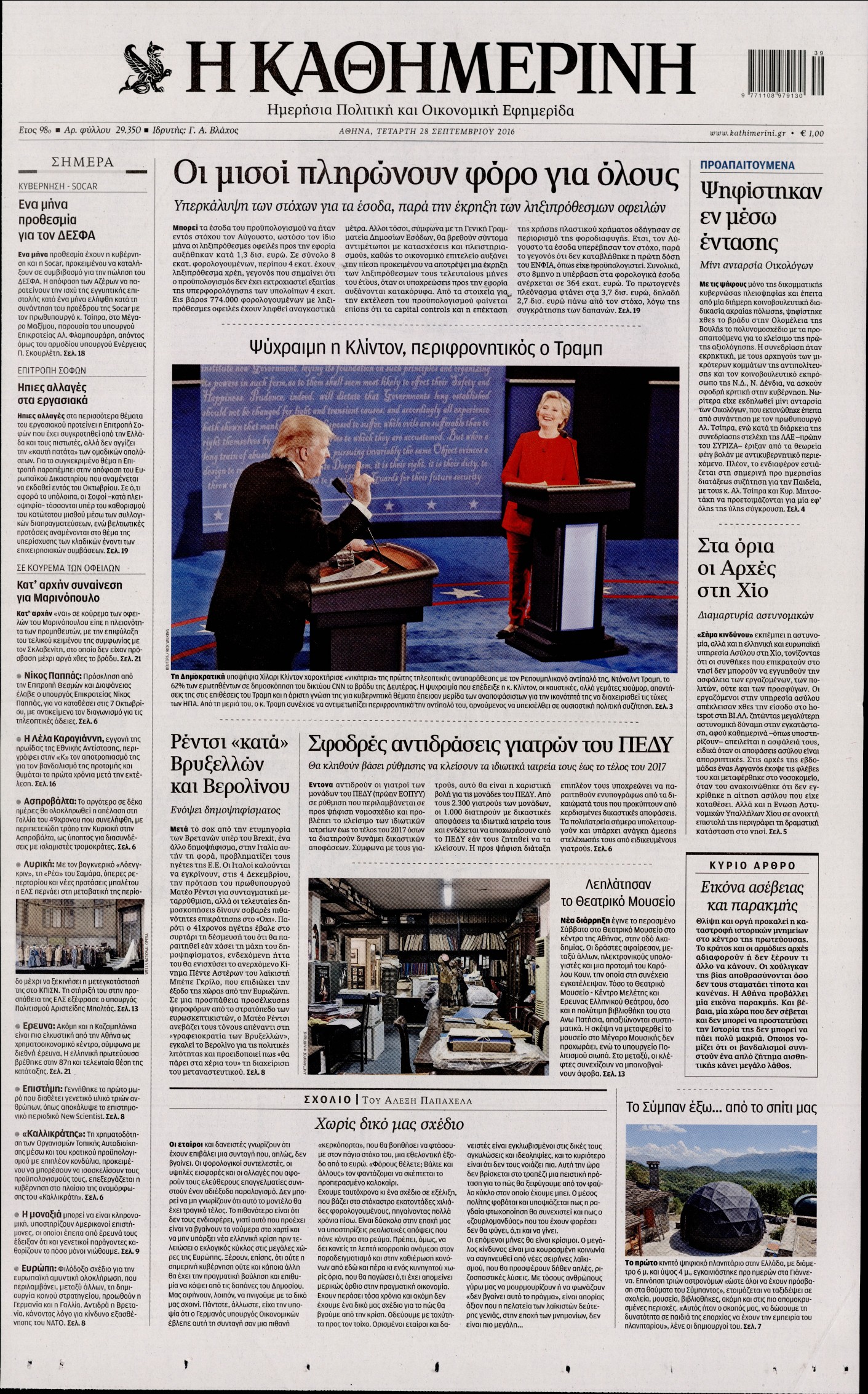 Oι πολιτικές εφημερίδες 28/9/2016 Enikos Newsroom 05:06, Τετάρτη 28 Σεπτεμβρίου 2016 Media Διαβάστε τα σημερινά πρωτοσέλιδα των πολιτικών εφημερίδων: ΠΟΛΙΤΙΚΕΣ ΕΦΗΜΕΡΙΔΕΣ ΠΡΩΤΟΣΕΛΙΔΑ Μοιράσου το: σχολίασε κι εσύ (0 σχόλια) Ακολουθήστε το enikos.gr στο Google News και μάθετε πρώτοι όλες τις ειδήσεις Δείτε όλες τις τελευταίες ειδήσεις από την Ελλάδα και τον Κόσμο στο enikos.gr Ειδήσεις Ροή Ειδήσεων 1 ώρα πριν Ζελένσκι: Μόνο οι ΗΠΑ και ο Τραμπ μπορούν να πιέσουν τη Ρωσία να βάλει τέλος στον πόλεμο 2 ώρες πριν Φοινικούντα: Προφυλακιστέος ο 30χρονος για συνέργεια στη διπλή δολοφονία – Και άλλα πρόσωπα στο «μικροσκόπιο» 3 ώρες πριν Κυριάκος Μητσοτάκης: Στην Ιερουσαλήμ την Τρίτη ο Πρωθυπουργός για την τριμερή Ελλάδας, Κύπρου, Ισραήλ – Θα συναντηθεί και με τον Αμπάς 6 ώρες πριν Πώς δρούσε το κύκλωμα που διακινούσε ναρκωτικά σε σχολεία – Υπέβαλαν σε βασανιστήρια όσους δεν τηρούσαν τους «κανόνες πειθαρχίας» 2 ώρες πριν Πάπας Λέων: Όταν έχει αϋπνίες επενδύει παραγωγικά τον χρόνο του – Ποιο παιχνίδι παίζει στο κινητό 1 ώρα πριν Αριθμολογία: Ο αριθμός του φύλακα αγγέλου σας, με βάση τον μήνα γέννησής σας – «Έτσι σας στέλνει σημάδια το σύμπαν» 2 ώρες πριν Πώς να απαλλαγείτε από τη μυρωδιά του τηγανητού φαγητού: Το μυστικό βρίσκεται στην κουζίνα σας 3 ώρες πριν Μήπως οι γιορτές σας δεν είναι τόσο τέλειες; 7 χριστουγεννιάτικες συνήθειες που μαρτυρούν ότι μια οικογένεια είναι δυσλειτουργική 13 ώρες πριν Enerwave: Το νέο «ρεύμα» στη λιανική ενέργειας που αλλάζει την εμπειρία του καταναλωτή 7 λεπτά πριν Χαβιέρ Μιλέι: Ο πρόεδρος της Αργεντινής χαιρετίζει την «πίεση των ΗΠΑ» στη Βενεζουέλα 14 λεπτά πριν Ξένια Τσίρκοβα: Έμαθε από την τηλεόραση ότι είναι η μεγάλη νικήτρια του GNTM – Η αντίδρασή της – ΒΙΝΤΕΟ 23 λεπτά πριν Ύπνος: Η διατροφή που μπορεί να σας βοηθήσει να κοιμάστε καλύτερα και να ζήσετε περισσότερο 34 λεπτά πριν Ιταλία: Επεισόδια και τραυματίες σε διαδήλωση μελών ακροαριστερού “κοινωνικού κέντρου ” στο Τορίνο 47 λεπτά πριν Γαλλία: Αστυνομικοί πυροβόλησαν και σκότωσαν έναν 26χρονο που απειλούσε περαστικούς με μαχαίρι – BINTEO ENIKOS NETWORK Οι γυναίκες αποκαλύπτουν το πιο ελκυστικό πράγμα που μπορεί να κάνει ένας άνδρας Ομορφιά και αντιγήρανση: Ειδικοί μιλούν για συσκευές περιποίησης του δέρματος Ρεύμα: Πώς μπορείτε να αλλάξετε πάροχο γρήγορα και εύκολα – Τα βήματα της διαδικασίας Εφορία: 7 αλλαγές σε δηλώσεις και ελέγχους ακινήτων – Όλα όσα πρέπει να γνωρίζετε Χαρτογραφώντας το «σημείο χωρίς επιστροφή»: Για πρώτη φορά αποκαλύπτεται με λεπτομέρεια το ακανθώδες όριο της ατμόσφαιρας τ... Η Google καταργεί τη λειτουργία «dark web report» – Πώς θα μπορούν οι χρήστες να διαγράφουν τα δεδομένα τους περισσότερα 20:30 , Σάββατο 20 Δεκεμβρίου 2025 Αυτή την Κυριακή με τη Realnews: Instyle, μαζί Drive και Realnews Geopolitics Αυτή την Κυριακή με τη Realnews: Instyle, μαζί Drive και Realnews Geopolitics Instyle Η Άννα Ρ... 20:28 , Σάββατο 20 Δεκεμβρίου 2025 Ο ΑΝΤ1 γεμίζει τις γιορτές με μουσική – Ποιους καλλιτέχνες θα απολαύσουμε Φέτος στον ΑΝΤ1 γιορτάζουμε τις νύχτες μας παρέα με αγαπημένους καλλιτέχνες και μεγάλες μουσι... 18:19 , Σάββατο 20 Δεκεμβρίου 2025 HOTΕΛ ΕΛVIRA: Η Ελβίρα μαθαίνει πως ο Χάρι μένει κρυφά στο ξενοδοχείο του Παντελή Συνεχίζονται οι εκλογές για πρόεδρο, στο νέο επεισόδιο της κωμικής σειράς του MEGA, HOTΕΛ ΕΛVI... 14:04 , Σάββατο 20 Δεκεμβρίου 2025 Η Realnews αυτής της Κυριακής (21/12/2025) Με τίτλο: «Ασπίδα προστασίας για την Ελλάδα» κυκλοφορεί, αυτήν την Κυριακή, η Realnews. Σημαντ... ΤΕΛ