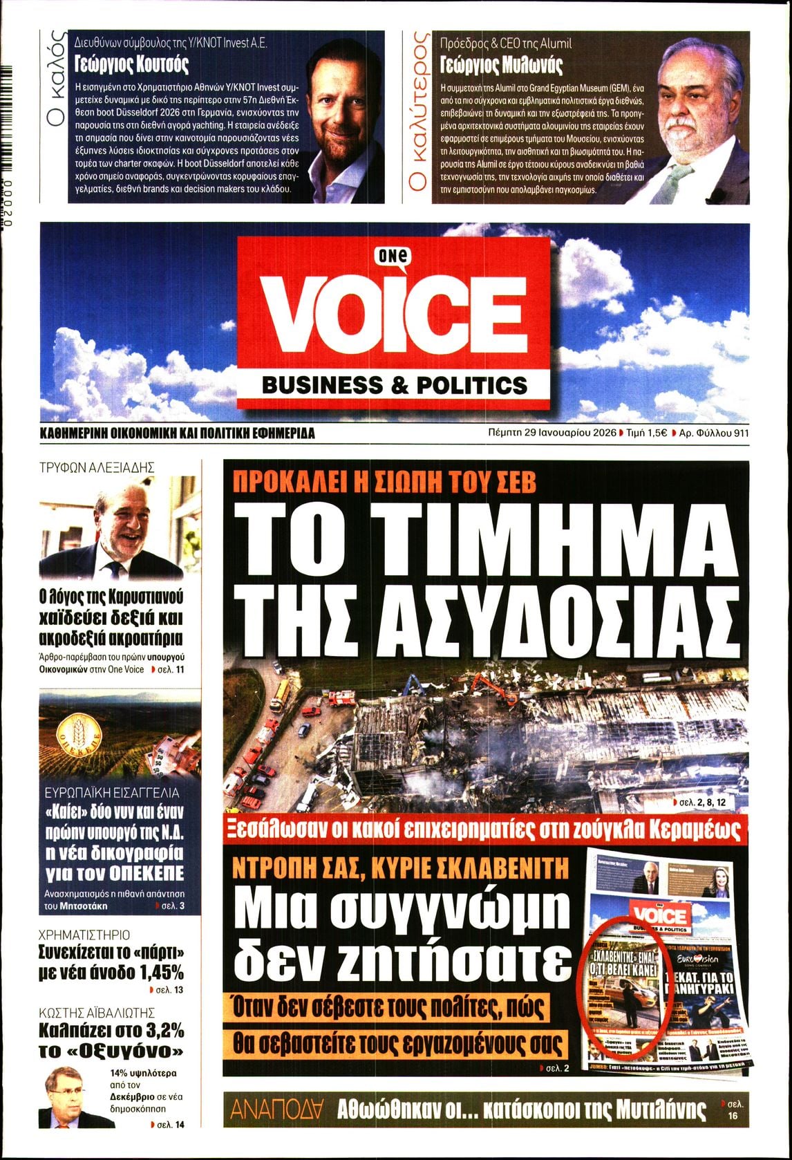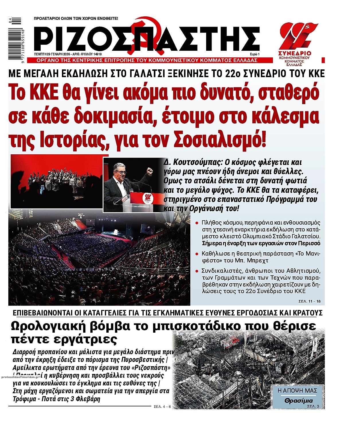 Οι πολιτικές εφημερίδες 29/1/2026 Enikos Newsroom 05:38, Πέμπτη 29 Ιανουαρίου 2026 Media Διαβάστε τα πρωτοσέλιδα από τις πολιτικές εφημερίδες, σήμερα 29/1/2026. ΕΦΗΜΕΡΙΔΕΣ ΠΟΛΙΤΙΚΕΣ ΕΦΗΜΕΡΙΔΕΣ ΠΡΩΤΟΣΕΛΙΔΑ Μοιράσου το: Τρίκαλα: Τα νέα δεδομένα για τη «φονική» διαρροή μετά το πόρισμα της Πυροσβεστικής – Την Πέμπτη και την Παρασκευή οι κηδείες των 5 αδικοχαμένων γυναικών Γεραπετρίτης μετά τη συνάντηση με Γκουτέρες στη Νέα Υόρκη: «Διευρυμένη συνάντηση στο Κυπριακό θα γίνει όταν ωριμάσουν οι συνθήκες» Τηλεφώνημα για βόμβα στο OPEN – Δείτε βίντεο με τον Μπογδάνο να το αναφέρει στον “αέρα” σχολίασε κι εσύ (0 σχόλια) Ακολουθήστε το enikos.gr στο Google News και μάθετε πρώτοι όλες τις ειδήσεις Δείτε όλες τις τελευταίες ειδήσεις από την Ελλάδα και τον Κόσμο στο enikos.gr Ειδήσεις Ροή Ειδήσεων 15 λεπτά πριν Τα αναπάντητα ερωτήματα για την τραγωδία στη «Βιολάντα»: Τι αναφέρεται στην έκθεση του ΤΕΕΜ – Σήμερα οι κηδείες τριών εργατριών 39 λεπτά πριν Τραγωδία στη Ρουμανία: Επαναπατρίζονται οι σοροί των φιλάθλων του ΠΑΟΚ – «Ραντεβού στο αεροδρόμιο Μακεδονία» 13 λεπτά πριν Ιράν: Συμφωνία ή σύγκρουση το μήνυμα του Τραμπ στην Τεχεράνη – Οι 3 απαιτήσεις των ΗΠΑ για να μην επιτεθούν «με ταχύτητα και βία» 1 ώρα πριν Επαγγελματίες, έμποροι και βιοτέχνες: Ζητούν να επανέλθει η ρύθμιση σε 120 δόσεις για οφειλές σε εφορία και ασφαλιστικά ταμεία 1 ώρα πριν Η Πορτογαλία επενδύει στην άμυνά της μέσω της Τουρκίας: Πλοία και UAV’s – Το «made in Europe» που κλυδωνίζεται 2 ώρες πριν Οπτική ψευδαίσθηση: Μόνο αν έχετε παρατηρητικότητα ντετέκτιβ, θα εντοπίσετε τη γάτα στην εικόνα σε 15 δευτερόλεπτα 2 ώρες πριν Ξηρά και σκασμένα χέρια: Τα 3 συστατικά που χρειάζεστε για άμεση ανακούφιση, σύμφωνα με ειδικούς 5 ώρες πριν Τα ζώδια σήμερα, Πέμπτη 29 Ιανουαρίου 2026: Σκορπιοί, δεν θα βρείτε τη λύση ακολουθώντας έτοιμες συνταγές 10 ώρες πριν Ύπνος: Το βραδινό σνακ που μπορεί να σας κρατήσει ξύπνιους – Υγιεινές εναλλακτικές για ποιοτική ξεκούραση 6 λεπτά πριν Δύσκολες ώρες για τον Γρηγόρη Αρναούτογλου: Πέθανε η μητέρα του – «Πήγαινε να ξεκουραστείς, συγχώρα με για όσα δεν κατάφερα» 8 λεπτά πριν Μπρους Σπρίνγκστιν: Το νέο τραγούδι «Streets of Minneapolis» για τα θύματα της ICE 13 λεπτά πριν Ιράν: Συμφωνία ή σύγκρουση το μήνυμα του Τραμπ στην Τεχεράνη – Οι 3 απαιτήσεις των ΗΠΑ για να μην επιτεθούν «με ταχύτητα και βία» 14 λεπτά πριν Μπορεί η Πυραμίδα του Χέοπα να είναι αρχαιότερη απ’ ό,τι νομίζουμε; – Νέα μελέτη ανατρέπει τα δεδομένα 15 λεπτά πριν Τα αναπάντητα ερωτήματα για την τραγωδία στη «Βιολάντα»: Τι αναφέρεται στην έκθεση του ΤΕΕΜ – Σήμερα οι κηδείες τριών εργατριών ENIKOS NETWORK Ημικρανία το πρωί: Τι μπορεί να την προκαλεί και πώς να την αντιμετωπίσετε, σύμφωνα με το Cleveland Το κόλπο με το μαλακτικό που θα διώξει την υγρασία από τα παράθυρα σας Επίδομα «μετακόμισης»: Οδηγός με όλες τις τελευταίες πληροφορίες για τους δικαιούχους και τα ποσά Επαγγελματίες, έμποροι και βιοτέχνες: Ζητούν να επανέλθει η ρύθμιση σε 120 δόσεις για οφειλές σε εφορία και ασφαλιστικά ταμ... Η Google αλλάζει το Gmail έπειτα από 20 χρόνια – Προσέξτε μην χάσετε τον λογαριασμό σας Γνωστός προπονητής ποδοσφαίρου απολύθηκε επειδή χρησιμοποιούσε το ChatGPT για «κρίσιμες αποφάσεις» περισσότερα 07:00 , Πέμπτη 29 Ιανουαρίου 2026 Την Κυριακή με τη Realnews: Ό,τι και αν αγοράσεις, σκανάρεις και κερδίζεις! Την Κυριακή με τη Realnews: Ό,τι και αν αγοράσεις, σκανάρεις και κερδίζεις! Με το PADU app, το... 22:50 , Τετάρτη 28 Ιαν
