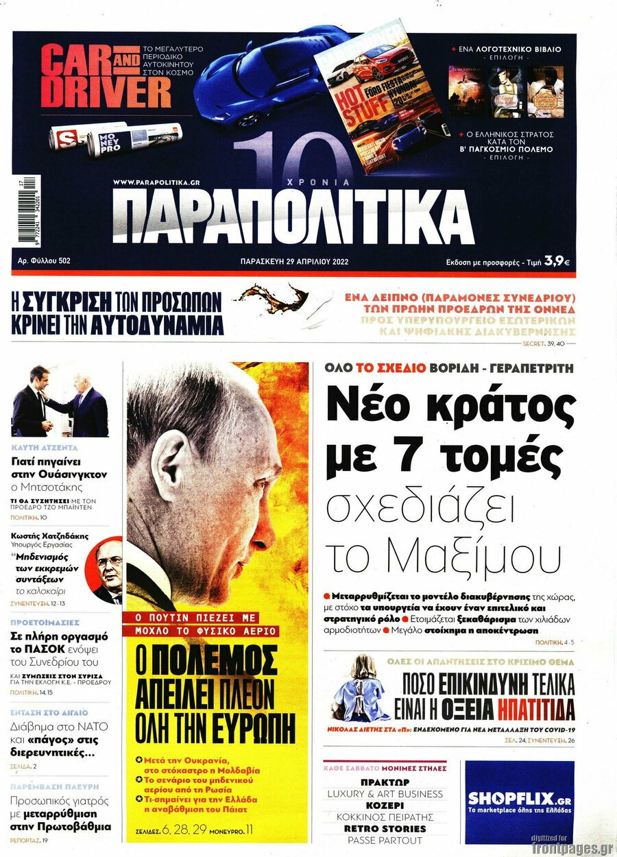 Οι πολιτικές εφημερίδες 29/4/2022 Σταύρος Ιωακείμ 06:21, Παρασκευή 29 Απριλίου 2022 Media Διαβάστε τα πρωτοσέλιδα από τις πολιτικές εφημερίδες… ΕΦΗΜΕΡΙΔΕΣ ΠΟΛΙΤΙΚΕΣ ΕΦΗΜΕΡΙΔΕΣ ΠΡΩΤΟΣΕΛΙΔΑ Μοιράσου το: σχολίασε κι εσύ (0 σχόλια) Ακολουθήστε το enikos.gr στο Google News και μάθετε πρώτοι όλες τις ειδήσεις Δείτε όλες τις τελευταίες ειδήσεις από την Ελλάδα και τον Κόσμο στο enikos.gr Ειδήσεις Ροή Ειδήσεων 44 λεπτά πριν Ουκρανία: Συμφωνία για εγγυήσεις ασφαλείας στο Παρίσι – Γαλλία και Βρετανία θα αναπτύξουν στρατεύματα μετά την επίτευξη ειρηνευτικής συμφωνίας 4 ώρες πριν Σέρρες: Δικογραφία για ανθρωποκτονία από πρόθεση σε βάρος του 16χρονου – Είχε διαταχθεί έρευνα για τις συνθήκες διαβίωσής του 2 ώρες πριν Πάτρα: Προθεσμία να απολογηθούν την Παρασκευή έλαβαν οι τρεις εμπλεκόμενοι στην υπόθεση θανάτου του 30χρονου 3 ώρες πριν Μετ’ εμποδίων η επιστροφή των εκδρομέων μέσω παραδρόμων – Πού έχουν δημιουργηθεί ουρές χιλιομέτρων 4 ώρες πριν Μαρία Κορίνα Ματσάδο: Υπόσχεται ότι θα επιστρέψει σύντομα στη Βενεζουέλα και δηλώνει έτοιμη για εκλογές 6 ώρες πριν Τα 3 ζώδια που προσελκύουν τύχη έως τις 11 Ιανουαρίου – «Αφοσιωθείτε στην εξέλιξή σας» 3 ώρες πριν Αν θέλετε να διατηρήσετε την αγάπη ζωντανή για δεκαετίες, πείτε αντίο σε αυτές τις 8 μικρές αλλά καταστροφικές συνήθειες 2 ώρες πριν Γυάλινα βάζα: Το έξυπνο κόλπο με μαγνήτες για να τα καθαρίζετε χωρίς κόπο 7 ώρες πριν Η Γη «ταΐζει» τη Σελήνη εδώ και δισεκατομμύρια χρόνια – Έρευνα αποκαλύπτει πως το φεγγάρι «κατέχει» το χημικό αρχείο του πλανήτη μας 7 λεπτά πριν Ύπνος: Νευροεπιστήμονας αποκαλύπτει το πρώτο πράγμα που πρέπει να κάνετε κάθε πρωί μόλις ξυπνήσετε 14 λεπτά πριν Μάρκο Ρούμπιο: Γροιλανδία και Δανία ζητούν συνάντηση με τον ΥΠΕΞ των ΗΠΑ έπειτα από τις δηλώσεις Τραμπ 21 λεπτά πριν Φενέρμπαχτσε – Ολυμπιακός 88-80: Λύγισε στο φινάλε 27 λεπτά πριν Μαρία Τζομπανάκη: «Πιστεύω ότι τον πλήγωσε τον Ορφέα πολύ ο χωρισμός μας με τον μπαμπά του» 35 λεπτά πριν Βενεζουέλα – Κούβα: Δημοσιοποίησαν τα ονόματα 55 στρατιωτικών που σκοτώθηκαν κατά την επιχείρηση των ΗΠΑ στο Καράκας ENIKOS NETWORK 7 πράγματα που πρέπει να κρατάτε πάντα μυστικά, ακόμη και από τους φίλους σας Απώλεια βάρους: Γιατί κάποιοι δυσκολεύονται περισσότερο να χάσουν κιλά Κέλλας: Η Κυβέρνηση αναλαμβάνει τη δική της ευθύνη και η κοινωνία αναμένει από τους αγρότες να πράξουν το ίδιο Πιερρακάκης: «Έμπρακτη στήριξη των ελληνορθόδοξων κοινοτήτων από την κυβέρνηση με 600 οργανικές θέσεις κληρικών» Ο Google Assistant θα παραμείνει λίγο περισσότερο για ορισμένους χρήστες Android Τεστ προσωπικότητας: Το βάζο που θα επιλέξετε αποκαλύπτει πώς λύνετε προβλήματα στη ζωή σας περισσότερα 09:36 , Τρίτη 06 Ιανουαρίου 2026 Αυτή την Κυριακή με τη Realnews: Μυστηριώδης εξαφάνιση – Ένα καθηλωτικό θρίλερ γεμάτο αγωνία από τον διεθνώς αναγνωρισμένο συγγραφέα Rick Mofina Αυτή την Κυριακή με τη Realnews: Μυστηριώδης εξαφάνιση –Ένα καθηλωτικό θρίλερ γεμάτο αγω... 07:53 , Τρίτη 06 Ιανουαρίου 2026 Την Κυριακή με τη Realnews: Ό,τι και αν αγοράσεις, σκανάρεις και κερδίζεις! Την Κυριακή με τη Realnews: Ό,τι και αν αγοράσεις, σκανάρεις και κερδίζεις! Με το PADU app, το... 07:28 , Τρίτη 06 Ιανουαρίου 2026 Την Κυριακή με τη Realnews: Δωροεπιταγή 10€ Την Κυριακή με τη Realnews: Δωροεπιταγή 10€ Δωροεπιταγή αξίας 10€ για αγορές άνω των 60€ από τ... 21:30 , Δευτέρα 05 Ιανουαρίου 2026 ΑΝΤ1: Εφαρμόζει το μοντέλο της επανάληψης για τις φετινές σειρές του Το μοντέλο της επανάληψης εφαρμόζ