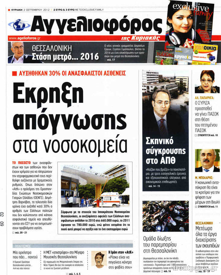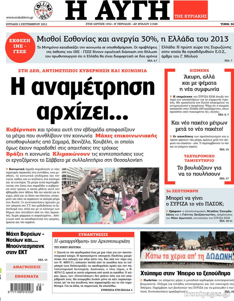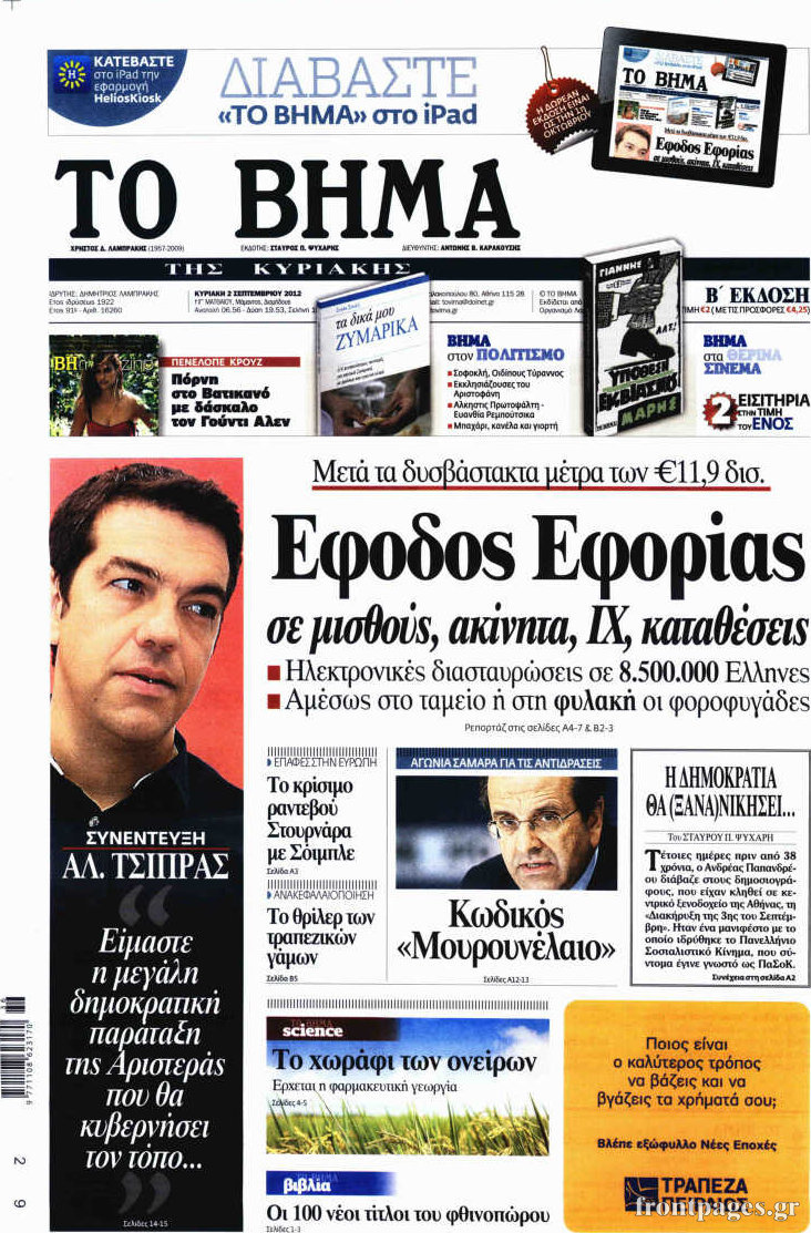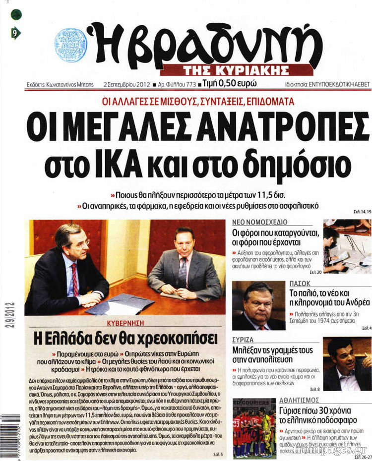 Διαβάστε τα πρωτοσέλιδα του κυριακάτικου Τύπου…