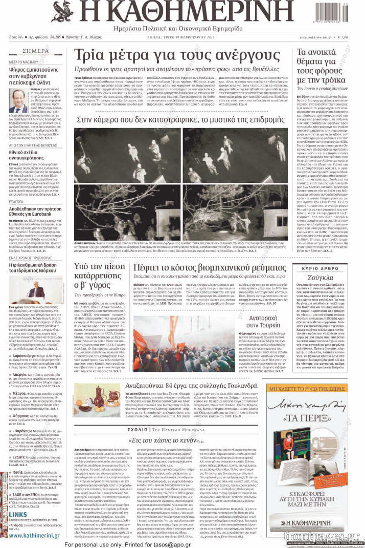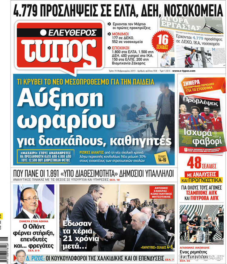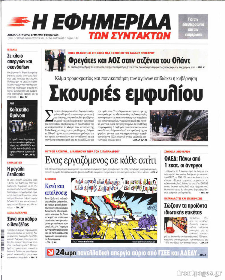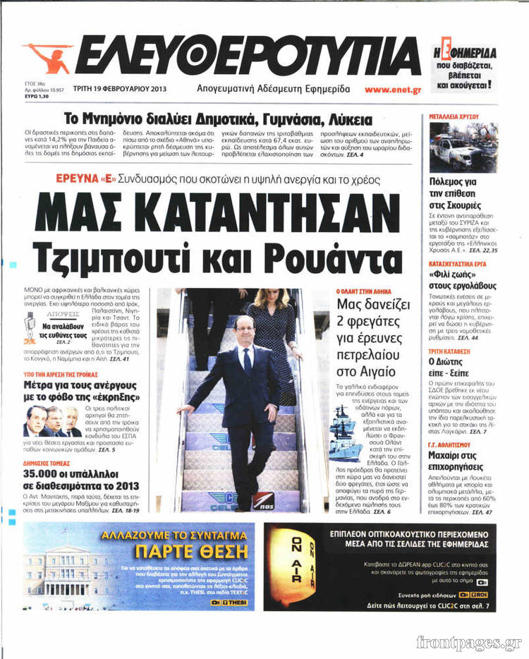 Οι πολιτικές εφημερίδες Enikos Newsroom 08:51, Τρίτη 19 Φεβρουαρίου 2013 Media Οι πολιτικές εφημερίδες ΕΦΗΜΕΡΙΔΕΣ ΠΟΛΙΤΙΚΕΣ ΕΦΗΜΕΡΙΔΕΣ ΠΡΩΤΟΣΕΛΙΔΑ Μοιράσου το: σχολίασε κι εσύ (0 σχόλια) Ακολουθήστε το enikos.gr στο Google News και μάθετε πρώτοι όλες τις ειδήσεις Δείτε όλες τις τελευταίες ειδήσεις από την Ελλάδα και τον Κόσμο στο enikos.gr Ειδήσεις Ροή Ειδήσεων 3 ώρες πριν Διάλογοι-σοκ από το κύκλωμα που διακινούσε ναρκωτικά σε σχολεία – «Αν δεν είσαι εκεί σε 5 λεπτά, θα φας πολύ ξύλο μπρο» 4 ώρες πριν Αγρότες από το μπλόκο Νίκαιας κλείνουν τη Δευτέρα τις σήραγγες των Τεμπών για τα φορτηγά – Τι αποφάσισαν 2 ώρες πριν «Πλημμύρισε» με κόσμο η Ερμού ενόψει των Χριστουγέννων – Ουρές στα καταστήματα – ΦΩΤΟ και ΒΙΝΤΕΟ 4 ώρες πριν Ζελένσκι: Τάχθηκε σήμερα υπέρ της διεξαγωγής ευρύτερων διαβουλεύσεων με Ευρωπαίους εταίρους 2 ώρες πριν Super League 2: Ο Σεμπά πέτυχε το γκολ της χρονιάς με ανάποδο ψαλίδι – ΒΙΝΤΕΟ 2 ώρες πριν Αν ανήκετε σε ένα από αυτά τα 3 ζώδια, το 2026 θα είναι η χρονιά σας – «Η ζωή σας βελτιώνεται σε όλους τους τομείς» 6 ώρες πριν Οι άνθρωποι που στρώνουν το κρεβάτι τους κάθε πρωί, διαθέτουν αυτές τις 8 κρυφές δυνάμεις 3 ώρες πριν Ένα πλάσμα στα βάθη της θάλασσας απορροφά άνθρακα από την ατμόσφαιρα – «Δεν είχαμε ιδέα για την ύπαρξή του» 1 ημέρα πριν Enerwave: Το νέο «ρεύμα» στη λιανική ενέργειας που αλλάζει την εμπειρία του καταναλωτή 3 λεπτά πριν Θεσσαλονίκη: Συνελήφθη 27χρονος που έκανε επικίνδυνο ελιγμό για να αποφύγει έλεγχο και παραλίγο να τραυματίσει αστυνομικό 14 λεπτά πριν Εγκαινιάστηκε ο αρχαιολογικός χώρος του Ανακτόρου της Πέλλας – Παρουσιάστηκαν για πρώτη φορά δύο ελληνιστικά αγάλματα 28 λεπτά πριν Βλαδίμηρος Κυριακίδης για Έφη Μουρίκη: «Δεν υπάρχει ανταγωνισμός στη σχέση μας, αλλά συναγωνισμός» 40 λεπτά πριν Δήμος Αθηναίων: Ξεκινά τη Δευτέρα η επιστροφή πινακίδων οχημάτων από τη Δημοτική Αστυνομία 52 λεπτά πριν Μαρία Καρυστιανού: «Δόλιο χτύπημα της κυβέρνησης – Έφοδος της ΑΑΔΕ στα γραφεία του Συλλόγου Θυμάτων Τεμπών» ENIKOS NETWORK «Όσοι απατούν τους συντρόφους τους έχουν ένα κοινό χαρακτηριστικό» αποκαλύπτει ειδικός στις σχέσεις Ο εγκέφαλός μας ξεπερνά ακόμα σε εξυπνάδα το ΑΙ – Ποιο είναι αυτό στο οποίο είμαστε καλύτεροι Λειψυδρία: Πού βρισκόμαστε σήμερα και πώς προετοιμάζεται η ΕΥΔΑΠ για το επόμενο κρίσιμο διάστημα Έρχεται ο Μοναδικός Αριθμός Ταυτότητας για τα ακίνητα: Τι είναι και από πού θα αντλούνται πληροφορίες – Πώς θα αλλάξει τις ... Χαρτογραφώντας το «σημείο χωρίς επιστροφή»: Για πρώτη φορά αποκαλύπτεται με λεπτομέρεια το ακανθώδες όριο της ατμόσφαιρας τ... Η Google καταργεί τη λειτουργία «dark web report» – Πώς θα μπορούν οι χρήστες να διαγράφουν τα δεδομένα τους περισσότερα 17:18 , Κυριακή 21 Δεκεμβρίου 2025 «Η Μεγάλη Χίμαιρα»: Μάγεψε το κοινό κατά την avant-première της προβολής της Την Πρωτοχρονιά (Πέμπτη 1η Ιανουαρίου 2026) στο ERTFLIX θα γίνει η πρεμιέρα της πολυαναμενόμεν... 15:08 , Κυριακή 21 Δεκεμβρίου 2025 Μια νύχτα μόνο: Η Αρετή και ο Οδυσσέας έρχονται και πάλι κοντά Το νέο επεισόδιο της δραματικής σειράς του MEGA «Μια νύχτα μόνο», θα προβληθεί απόψε Κυριακή 2... 14:24 , Κυριακή 21 Δεκεμβρίου 2025 IQ 160: Ο φάκελος με το τεστ πατρότητας ανοίγει, απόψε στις 21:00 στο Star Ανατρεπτικό το νέο διπλό επεισόδιο της σειράς “IQ 160” στις 21:00 στο Star. Ο Τηλέ... 09:43 , Κυριακή 21 Δεκεμβρίου 2025 Το λάθος στην ταινία Die Hard που άφησε άναυδους τους θαυμαστές του Μπρους Γουίλις Ένας φανατικός των ταινιών άφησε άναυδους τ