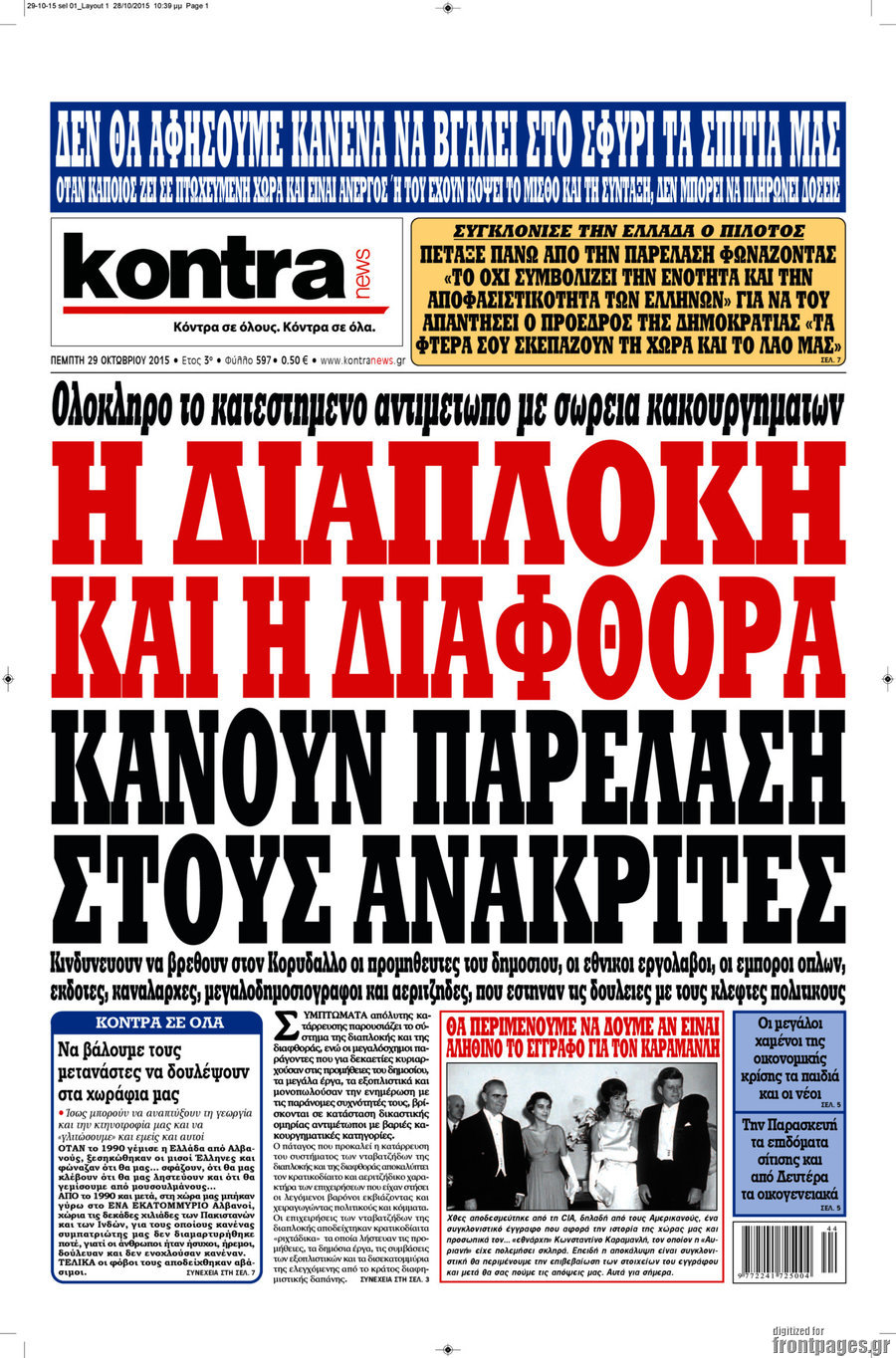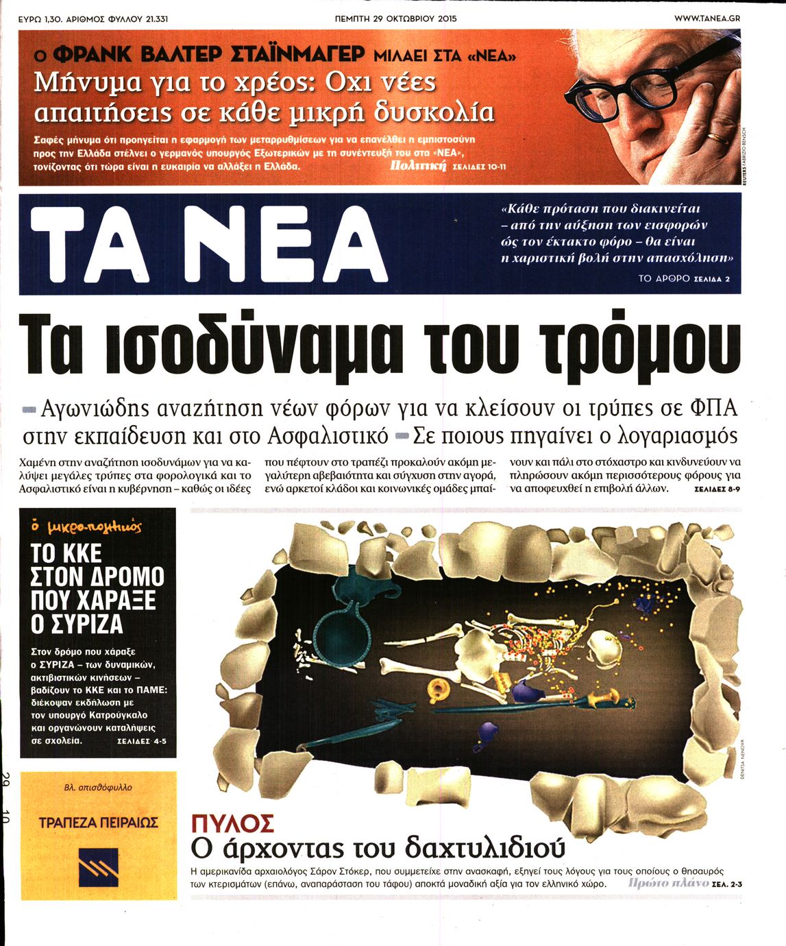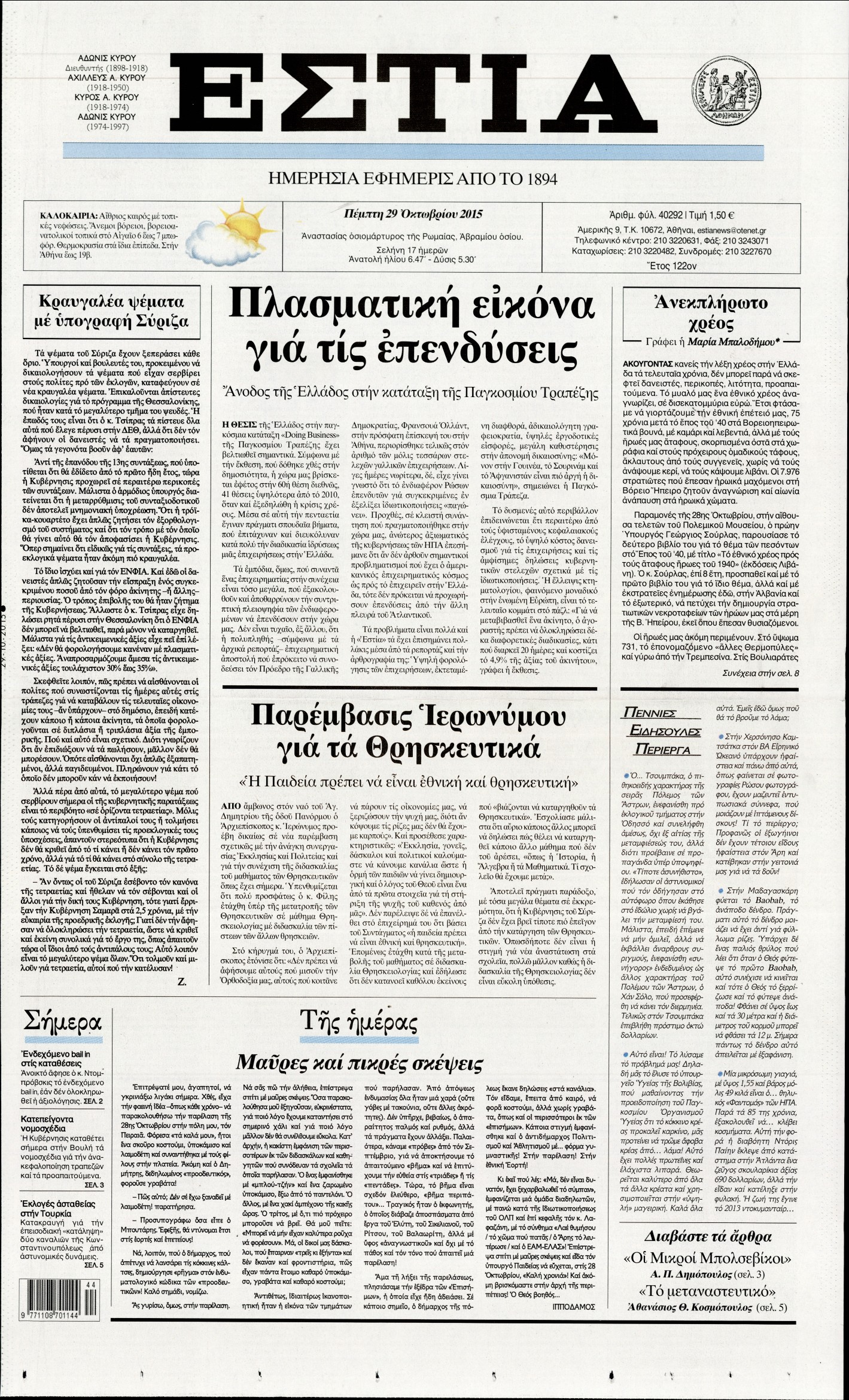 Οι πολιτικές εφημερίδες 29/10/2015 Enikos Newsroom 06:28, Πέμπτη 29 Οκτωβρίου 2015 Media Διαβάστε τα σημερινά πρωτοσέλιδα των πολιτικών εφημερίδων: ΠΟΛΙΤΙΚΕΣ ΕΦΗΜΕΡΙΔΕΣ ΠΡΩΤΟΣΕΛΙΔΑ Μοιράσου το: σχολίασε κι εσύ (0 σχόλια) Ακολουθήστε το enikos.gr στο Google News και μάθετε πρώτοι όλες τις ειδήσεις Δείτε όλες τις τελευταίες ειδήσεις από την Ελλάδα και τον Κόσμο στο enikos.gr Ειδήσεις Ροή Ειδήσεων 5 ώρες πριν Χριστούγεννα στα μπλόκα: Επιμένουν στις κινητοποιήσεις τους οι αγρότες – Ανοίγουν τα διόδια το Σαββατοκύριακο 5 ώρες πριν Ουκρανία: Η άνευ προηγουμένου επίθεση σε ρωσικό τάνκερ στη Μεσόγειο και το μήνυμα προς στον Πούτιν – Το «μακρύ χέρι» του Κιέβου 4 ώρες πριν Πούτιν: Τα μηνύματα σε Ευρώπη και ΝΑΤΟ από το μαραθώνιο «σόου» του – Η απαίτηση για «σεβασμό» και η ειρήνη «με τους όρους» της Μόσχας 5 ώρες πριν Τραμπ: Δεν αποκλείει την πιθανότητα ενός πολέμου στη Βενεζουέλα – «Ο Μαδούρο ξέρει καλύτερα από τον καθένα τι ακριβώς θέλω» 6 ώρες πριν Συνεχίζει να προκαλεί ο Μίτσκοσκι: «Για μένα το όνομα Μακεδονία είναι ιερό» 4 ώρες πριν Ανακαλύφθηκαν αρχαία χρυσά νομίσματα 2.200 ετών που απεικονίζουν τον θεό Απόλλωνα – Η άγνωστη σύνδεση με τον Φίλιππο Β΄ της Μακεδονίας 5 ώρες πριν Ύπνος: Μια κρυφή κατάσταση του εγκεφάλου πριν από τον ύπνο μπορεί να είναι το “κλειδί” για υψηλή ευφυΐα και δημιουργικότητα 6 ώρες πριν Αριθμολογία: Οι άνθρωποι που έχουν γεννηθεί αυτές τις 4 ημερομηνίες, συχνά παρεξηγούνται – «Η καλοσύνη τους κρύβει τεράστια δύναμη» 7 ώρες πριν Ξεχάστε το καθάρισμα το Σαββατοκύριακο: Ο «κανόνας των 20 λεπτών» που θα σας λύσει τα χέρια 2 λεπτά πριν Ταμίλα Κουλίεβα: «Δεν θέλω να είμαι κάποια που πορεύεται συνεχώς με τις ίδιες αναφορές» 17 λεπτά πριν Η Ελλάδα προσχωρεί στη Διεθνή Επιτροπή Αποζημιώσεων για την Ουκρανία 32 λεπτά πριν GNTM: Η Ξένια Τσίρκοβα αναδείχθηκε μεγάλη νικήτρια και πήρε τις 50.000 ευρώ – Ποιος βρέθηκε σε απόσταση αναπνοής; 47 λεπτά πριν Θεσσαλονίκη: Εξαφανίστηκε 13χρονος από χώρο φιλοξενίας ασυνόδευτων ανηλίκων στο Ωραιόκαστρο 57 λεπτά πριν Ντόναλντ Τραμπ: «Πολύ βαριά αντίποινα» στη Συρία – «Πλήττουμε πολύ δυνατά οχυρά του Ισλαμικού Κράτους» ENIKOS NETWORK Το ΕΚΑΒ τιμήθηκε από την Ακαδημία Αθηνών για τα 40 χρόνια προσφοράς του Έχετε πραγματικά μεγάλη καρδιά; 10 χαρακτηριστικά όσων έχουν καλοσύνη Αναστολή μέτρων αναγκαστικής εκτέλεσης για κτηνοτρόφους που πλήττονται από την ευλογιά των αιγοπροβάτων Πλήρης επάρκεια προϊόντων στις λαϊκές της Αττικής, παρά τις αγροτικές κινητοποιήσεις – Τι απαντούν οι πωλητές Χαρτογραφώντας το «σημείο χωρίς επιστροφή»: Για πρώτη φορά αποκαλύπτεται με λεπτομέρεια το ακανθώδες όριο της ατμόσφαιρας τ... Η Google καταργεί τη λειτουργία «dark web report» – Πώς θα μπορούν οι χρήστες να διαγράφουν τα δεδομένα τους περισσότερα 02:50 , Σάββατο 20 Δεκεμβρίου 2025 GNTM: Η Ξένια Τσίρκοβα αναδείχθηκε μεγάλη νικήτρια και πήρε τις 50.000 ευρώ – Ποιος βρέθηκε σε απόσταση αναπνοής; Με φαντασμαγορικό τρόπο ολοκληρώθηκε το βράδυ της Παρασκευής ο μεγάλος τελικός του GNTM, μέσα ... 22:42 , Παρασκευή 19 Δεκεμβρίου 2025 Γιώργος Γιαννόπουλος για “Το σόι σου”: “Είναι ευτυχία και ευλογία αυτή η σειρά” «Είναι ευτυχία και ευλογία η συγκυρία αυτής της σειράς», θα πει ο Γιώργος Γιαννόπουλος -ο αγαπ... 20:37 , Παρασκευή 19 Δεκεμβρίου 2025 Don’t Forget The Lyrics: Η Έλλη Κοκκίνου υποδέχεται 4 παίκτες που θα κάνουν τα πάντα για να μη χάσουν ούτε… μισή λέξη από τους στίχους Το «Don’t Forget The Lyrics» επιστρέφει απόψ