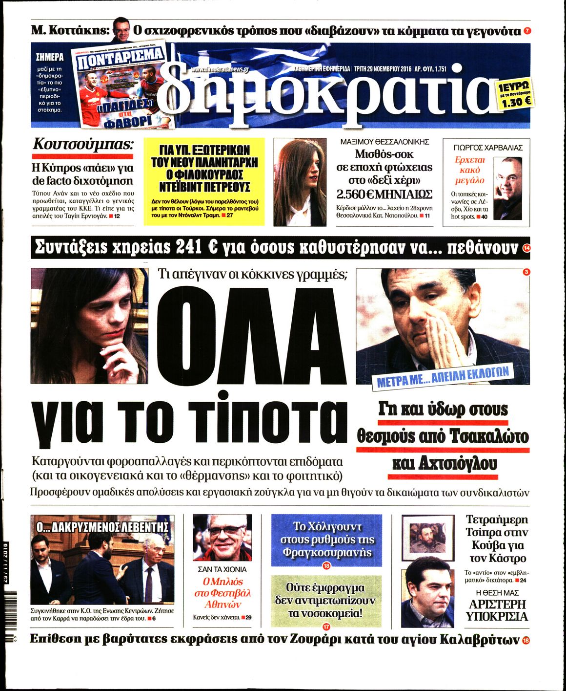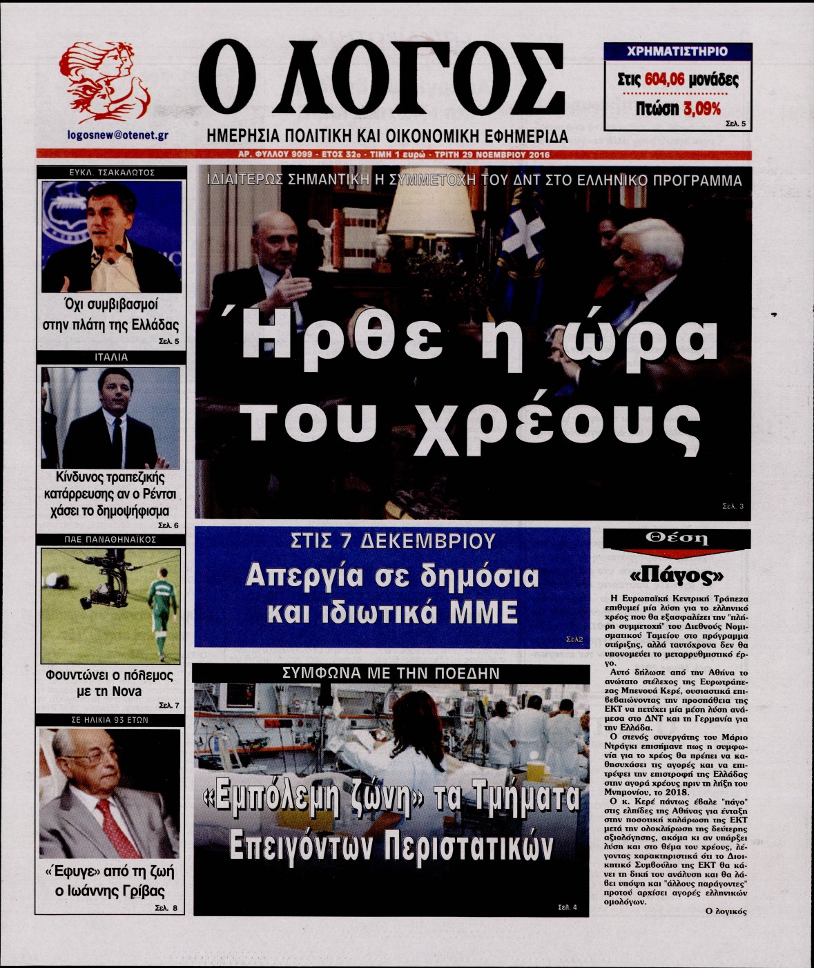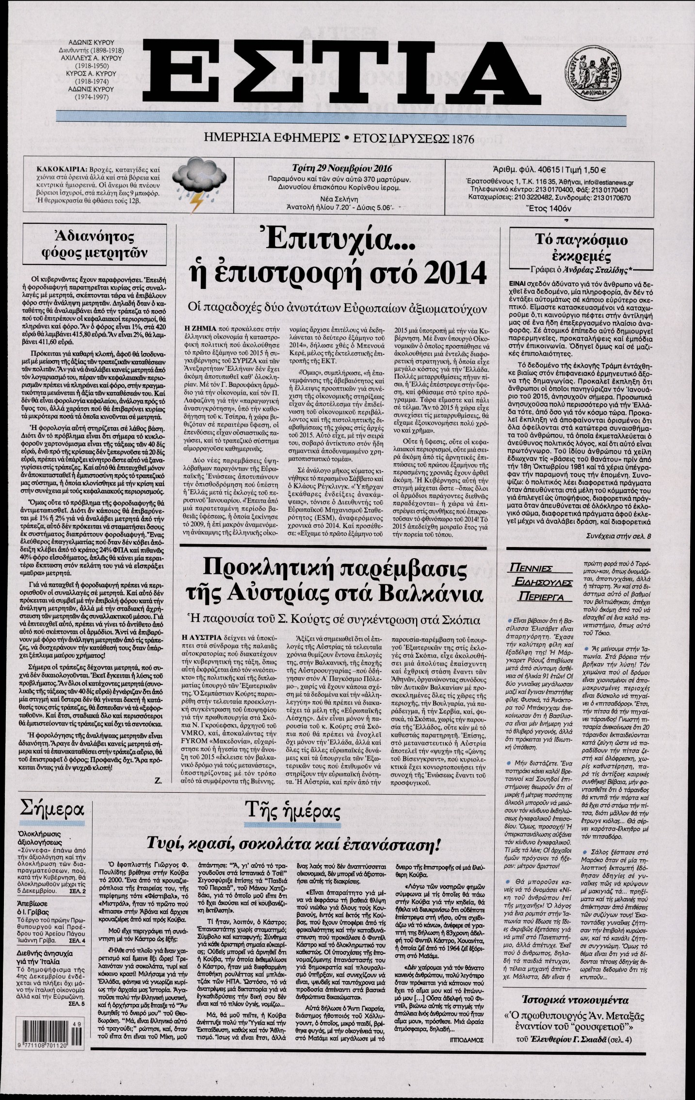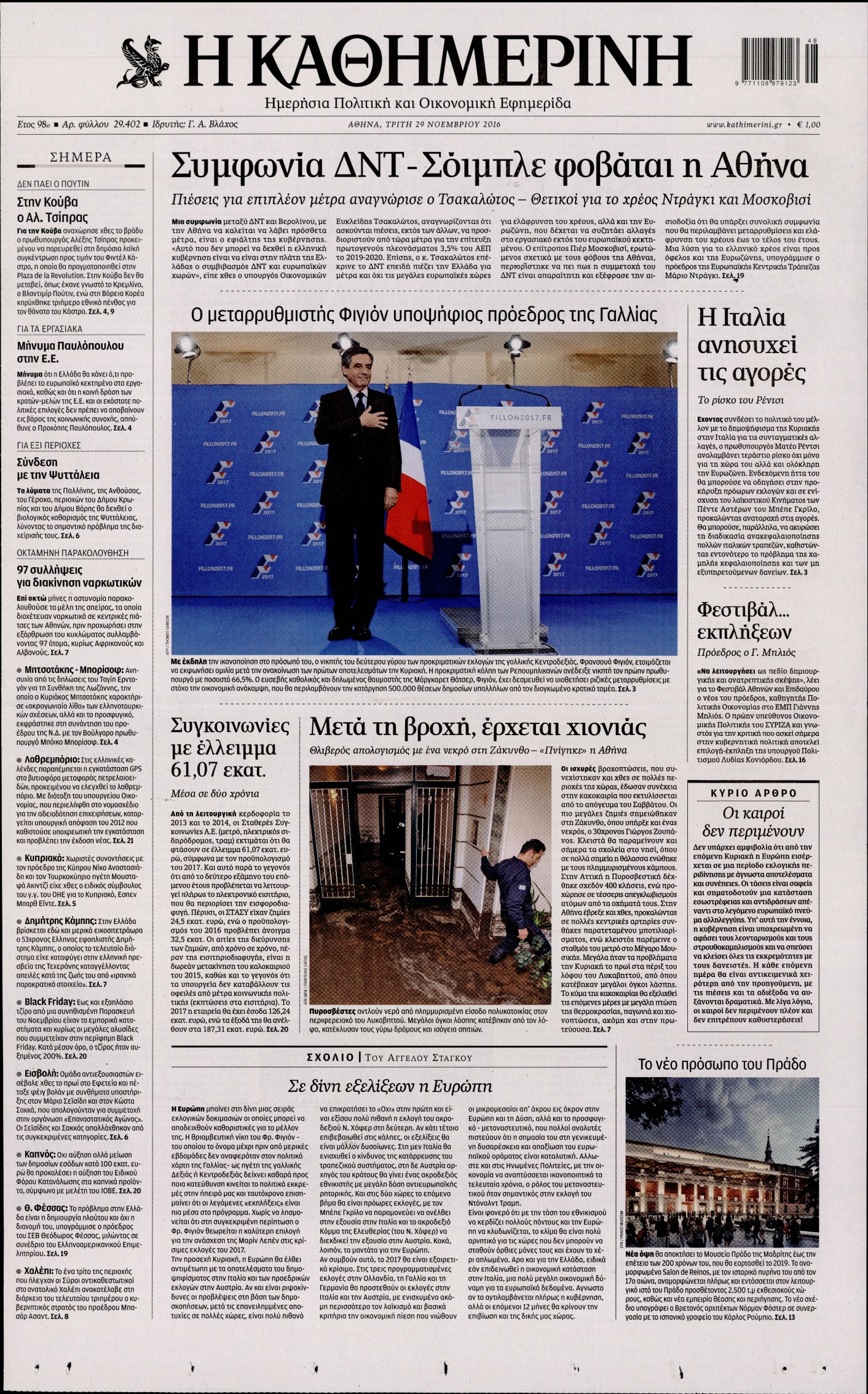 Οι πολιτικές εφημερίδες 29/11/2016 Enikos Newsroom 06:18, Τρίτη 29 Νοεμβρίου 2016 Media Διαβάστε τα σημερινά πρωτοσέλιδα των πολιτικών εφημερίδων: ΠΟΛΙΤΙΚΕΣ ΕΦΗΜΕΡΙΔΕΣ ΠΡΩΤΟΣΕΛΙΔΑ Μοιράσου το: σχολίασε κι εσύ (0 σχόλια) Ακολουθήστε το enikos.gr στο Google News και μάθετε πρώτοι όλες τις ειδήσεις Δείτε όλες τις τελευταίες ειδήσεις από την Ελλάδα και τον Κόσμο στο enikos.gr Ειδήσεις Ροή Ειδήσεων 6 ώρες πριν Χριστούγεννα στα μπλόκα οι αγρότες: Άνοιξαν στα διόδια και μοίρασαν προϊόντα στους πολίτες – Νέα σύσκεψη την Κυριακή στη Νίκαια 7 ώρες πριν Κύκλωμα διακίνησης ναρκωτικών σε σχολεία: Τηλεφωνούσαν στους ανηλίκους την ώρα του μαθήματος – Οι διάλογοι-σοκ, τα «ψευδώνυμα» και τα βασανιστήρια 6 ώρες πριν Αρχεία Επστάιν: Οι 500 σελίδες που λείπουν, τα αναπάντητα ερωτήματα και οι επώνυμοι – Τι έπεται 8 ώρες πριν Ζελένσκι: Μόνο οι ΗΠΑ και ο Τραμπ μπορούν να πιέσουν τη Ρωσία να βάλει τέλος στον πόλεμο 8 ώρες πριν Φοινικούντα: Προφυλακιστέος ο 30χρονος για συνέργεια στη διπλή δολοφονία – Και άλλα πρόσωπα στο «μικροσκόπιο» 6 ώρες πριν Αποκαλύφθηκε το άγνωστο «GPS» της αρχαιότητας – Πώς οι ναοί «φώτιζαν» τον δρόμο των ναυτικών πριν από την εφεύρεση των φάρων 7 ώρες πριν Ύπνος: Η διατροφή που μπορεί να σας βοηθήσει να κοιμάστε καλύτερα και να ζήσετε περισσότερο 8 ώρες πριν Αριθμολογία: Ο αριθμός του φύλακα αγγέλου σας, με βάση τον μήνα γέννησής σας – «Έτσι σας στέλνει σημάδια το σύμπαν» 20 ώρες πριν Enerwave: Το νέο «ρεύμα» στη λιανική ενέργειας που αλλάζει την εμπειρία του καταναλωτή 18 δευτερόλεπτα πριν Σήμερα με τη Realnews: Δωροεπιταγή 10€ 8 λεπτά πριν Χριστουγεννιάτικο τραπέζι: Την… ανηφόρα έχουν πάρει οι τιμές στα αμνοερίφια – Σε έτοιμα παρασκευάσματα κρέατος καταλήγουν οι καταναλωτές 24 λεπτά πριν «Εσκεμμένη παράλυση» της διαδικασίας καταμέτρησης των αποτελεσμάτων των εκλογών στην Ονδούρα, καταγγέλλει η αποστολή παρατηρητών της ΕΕ 39 λεπτά πριν Λευτέρης Πετρούνιας – Βασιλική Μιλλούση: Οι μαγευτικές φωτογραφίες από το ταξίδι τους στο Στρασβούργο με τις κόρες τους 53 λεπτά πριν Βενεζουέλα: Καταδικάζει την «κλοπή και την απαγωγή» δεύτερου πετρελαιοφόρου δεξαμενόπλοιου από τις ΗΠΑ ENIKOS NETWORK Οι γυναίκες αποκαλύπτουν το πιο ελκυστικό πράγμα που μπορεί να κάνει ένας άνδρας Ομορφιά και αντιγήρανση: Ειδικοί μιλούν για συσκευές περιποίησης του δέρματος «Πολεμική» προετοιμασία από την ευρωπαϊκή βιομηχανία ενέργειας – Η Eurelectric ζητεί «ομπρέλα» προστασίας για τις υποδομές Ακύρωση ΑΦΜ για απάτες – Ποιους βάζει στο στόχαστρο η ΑΑΔΕ Χαρτογραφώντας το «σημείο χωρίς επιστροφή»: Για πρώτη φορά αποκαλύπτεται με λεπτομέρεια το ακανθώδες όριο της ατμόσφαιρας τ... Η Google καταργεί τη λειτουργία «dark web report» – Πώς θα μπορούν οι χρήστες να διαγράφουν τα δεδομένα τους περισσότερα 04:08 , Κυριακή 21 Δεκεμβρίου 2025 Σήμερα με τη Realnews: Ό,τι και αν αγοράσεις, σκανάρεις και κερδίζεις! Σήμερα με τη Realnews: Ό,τι και αν αγοράσεις, σκανάρεις και κερδίζεις! Με το PADU app, το κορυ... 03:08 , Κυριακή 21 Δεκεμβρίου 2025 Σήμερα με τη Realnews: Instyle, μαζί Drive και Realnews Geopolitics Σήμερα με τη Realnews: Instyle, μαζί Drive και Realnews Geopolitics Instyle Η Άννα Ρεζάν, η Ch... 01:30 , Κυριακή 21 Δεκεμβρίου 2025 Άννα Βίσση: Τα… Social Media «προσκύνησαν» την «απόλυτη» για την συναυλία της στο Καλλιμάρμαρο που προβλήθηκε από το Mega Την ημέρα των γενεθλίων της Άννας Βίσση, το MEGA τίμησε τη διαχρονική παρουσία της «απόλυτης Ε... 00:00 , Κυριακή 21 Δεκεμβρίου 2025 The Voice: Η επιστροφή της Έλενας Παπαρίζου και η ατάκ