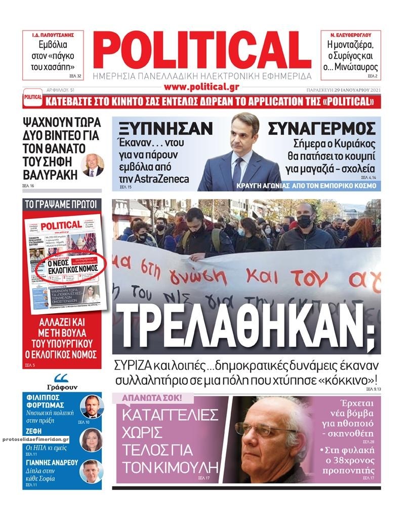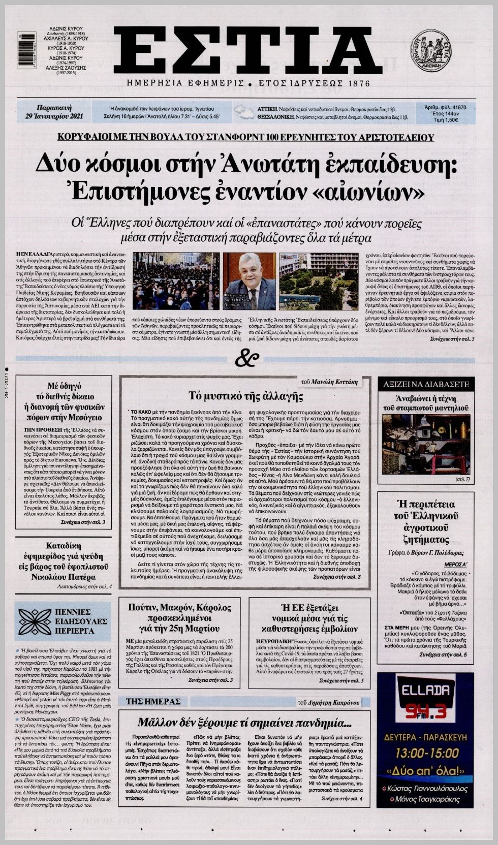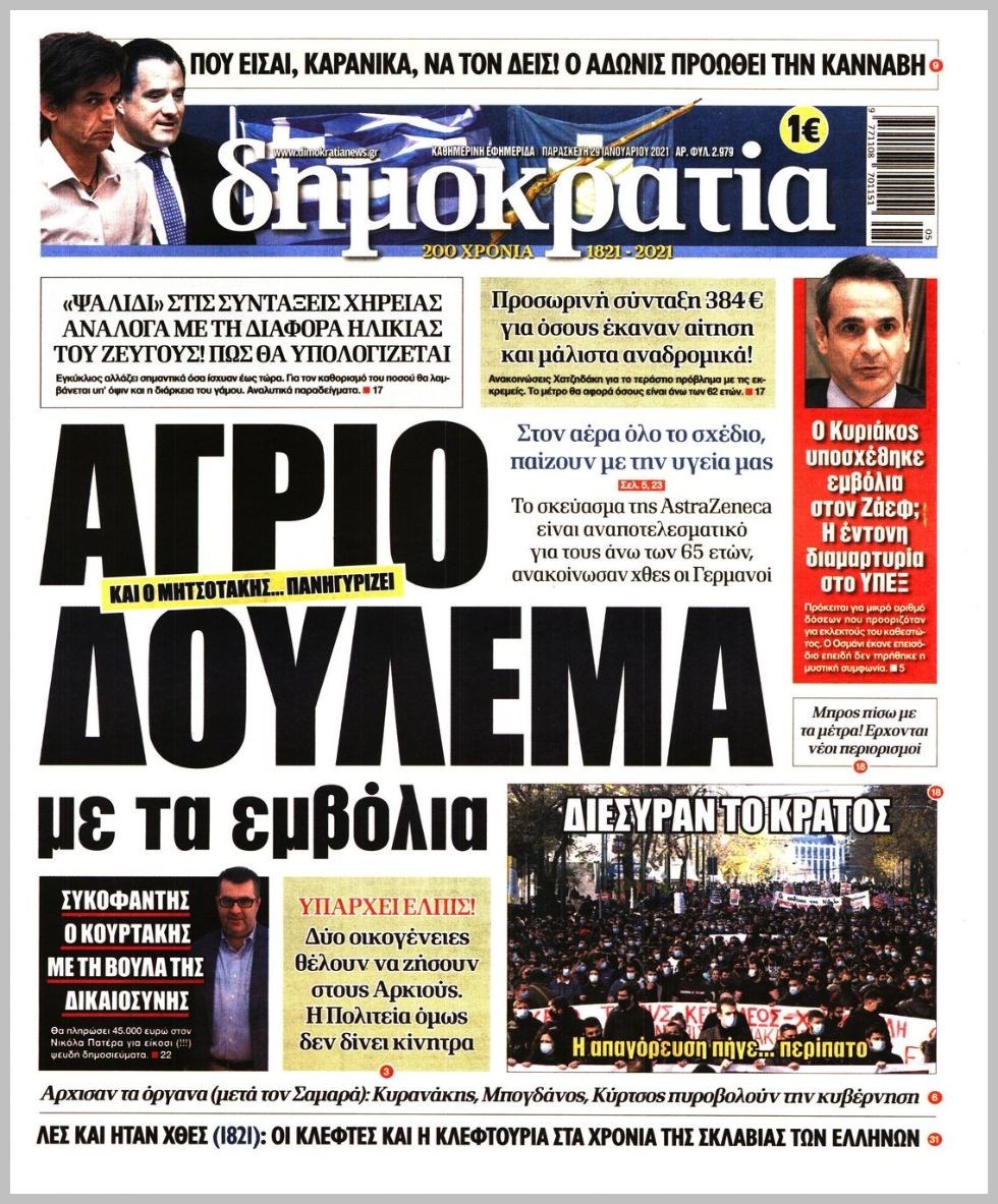 Οι πολιτικές εφημερίδες 29/1/2021 Διονύσης Νίκκας 06:12, Παρασκευή 29 Ιανουαρίου 2021 Media Διαβάστε τα πρωτοσέλιδα των πολιτικών εφημερίδων… ΕΦΗΜΕΡΙΔΕΣ ΠΟΛΙΤΙΚΕΣ ΕΦΗΜΕΡΙΔΕΣ ΠΡΩΤΟΣΕΛΙΔΑ Μοιράσου το: σχολίασε κι εσύ (0 σχόλια) Ακολουθήστε το enikos.gr στο Google News και μάθετε πρώτοι όλες τις ειδήσεις Δείτε όλες τις τελευταίες ειδήσεις από την Ελλάδα και τον Κόσμο στο enikos.gr Ειδήσεις Ροή Ειδήσεων 8 ώρες πριν Χριστούγεννα στα μπλόκα: Επιμένουν στις κινητοποιήσεις τους οι αγρότες – Ανοίγουν τα διόδια το Σαββατοκύριακο 9 ώρες πριν Ουκρανία: Η άνευ προηγουμένου επίθεση σε ρωσικό τάνκερ στη Μεσόγειο και το μήνυμα προς στον Πούτιν – Το «μακρύ χέρι» του Κιέβου 8 ώρες πριν Πούτιν: Τα μηνύματα σε Ευρώπη και ΝΑΤΟ από το μαραθώνιο «σόου» του – Η απαίτηση για «σεβασμό» και η ειρήνη «με τους όρους» της Μόσχας 7 ώρες πριν ΗΠΑ: Η κυβέρνηση του Ντόναλντ Τραμπ άρχισε να δημοσιοποιεί τα αρχεία Έπσταϊν 7 ώρες πριν Άνω Λιόσια: Πυροβολισμοί σε επιχείρηση με χαλιά – Εντοπίστηκαν 10 κάλυκες 53 λεπτά πριν Αυγά: Πόσα μπορείτε να τρώτε την ημέρα με ασφάλεια για μέγιστη πρόσληψη πρωτεΐνης 1 ώρα πριν Τα ζώδια σήμερα, Σάββατο 20 Δεκεμβρίου: Παρθένοι, το σύμπαν σας δίνει το κλειδί 8 ώρες πριν Ανακαλύφθηκαν αρχαία χρυσά νομίσματα 2.200 ετών που απεικονίζουν τον θεό Απόλλωνα – Η άγνωστη σύνδεση με τον Φίλιππο Β΄ της Μακεδονίας 9 ώρες πριν Ύπνος: Μια κρυφή κατάσταση του εγκεφάλου πριν από τον ύπνο μπορεί να είναι το “κλειδί” για υψηλή ευφυΐα και δημιουργικότητα 14 λεπτά πριν Κίριλ Ντμίτριεφ: Στις ΗΠΑ ο απεσταλμένος της Ρωσίας για συνομιλίες με τους ομολόγους του, Γουίτκοφ και Κούσνερ 21 λεπτά πριν ΔΕΔΔΗΕ: Διακοπές ρεύματος σήμερα (20/12) στην Αθήνα και σε άλλες 7 περιοχές της Αττικής 30 λεπτά πριν Κολομβία: Είκοσι χρόνια κάθειρξη σε πρώην ανώτερο αξιωματικό για 72 εκτελέσεις αμάχων 37 λεπτά πριν Οπτική ψευδαίσθηση: Μόνο αν είσαι ο Σέρλοκ Χολμς θα βρεις τον αριθμό «87» σε 7 δευτερόλεπτα 44 λεπτά πριν Σαρωτικοί οι έλεγχοι στους δρόμους ενόψει εορτών – Μπλόκα της τροχαίας σε κεντρικές αρτηρίες της Αττικής ENIKOS NETWORK Το ΕΚΑΒ τιμήθηκε από την Ακαδημία Αθηνών για τα 40 χρόνια προσφοράς του Έχετε πραγματικά μεγάλη καρδιά; 10 χαρακτηριστικά όσων έχουν καλοσύνη Αναστολή μέτρων αναγκαστικής εκτέλεσης για κτηνοτρόφους που πλήττονται από την ευλογιά των αιγοπροβάτων Πλήρης επάρκεια προϊόντων στις λαϊκές της Αττικής, παρά τις αγροτικές κινητοποιήσεις – Τι απαντούν οι πωλητές Χαρτογραφώντας το «σημείο χωρίς επιστροφή»: Για πρώτη φορά αποκαλύπτεται με λεπτομέρεια το ακανθώδες όριο της ατμόσφαιρας τ... Η Google καταργεί τη λειτουργία «dark web report» – Πώς θα μπορούν οι χρήστες να διαγράφουν τα δεδομένα τους περισσότερα 05:48 , Σάββατο 20 Δεκεμβρίου 2025 Οι οικονομικές εφημερίδες 20/12/2025 Διαβάστε τα πρωτοσέλιδα από τις οικονομικές εφημερίδες, σήμερα 20/12/2025. 05:43 , Σάββατο 20 Δεκεμβρίου 2025 Οι αθλητικές εφημερίδες 20/12/2025 Διαβάστε τα πρωτοσέλιδα από τις αθλητικές εφημερίδες, σήμερα 20/12/2025. 05:38 , Σάββατο 20 Δεκεμβρίου 2025 Οι πολιτικές εφημερίδες 20/12/2025 Διαβάστε τα πρωτοσέλιδα από τις πολιτικές εφημερίδες, σήμερα 20/12/2025. 04:20 , Σάββατο 20 Δεκεμβρίου 2025 Αγγελική Νικολούλη: Τα συλλυπητήρια για την απώλεια της Ειρήνης Μαρινάκη Τα συλληπητήρια στον πρόεδρο του Mega, τον Βαγγέλη Μαρινάκη, για την απώλεια της μητέρας του Ε... ΤΕΛΕΥΤΑΙΕΣ ΕΙΔΗΣΕΙΣ 14 λεπτά πριν Κίριλ Ντμίτριεφ: Στις ΗΠΑ ο απεσταλμένος της Ρωσίας... 21 λεπτά πριν ΔΕΔΔΗΕ: Διακοπές ρεύματος σήμερα 