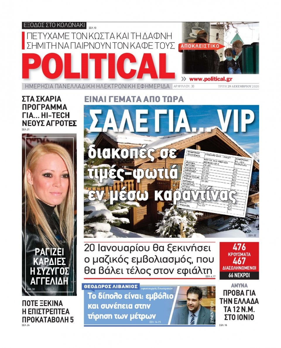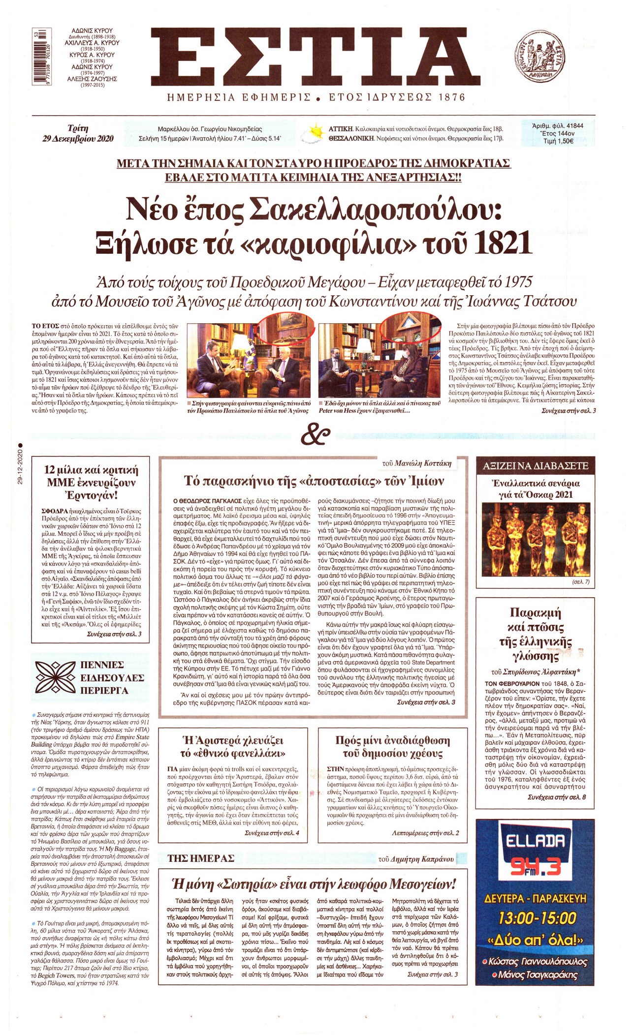 Οι πολιτικές εφημερίδες 29/12/2020 Σήφης Γαρυφαλάκης 06:40, Τρίτη 29 Δεκεμβρίου 2020 Media Διαβάστε τα πρωτοσέλιδα των πολιτικών εφημερίδων… ΕΦΗΜΕΡΙΔΕΣ ΠΟΛΙΤΙΚΕΣ ΕΦΗΜΕΡΙΔΕΣ ΠΡΩΤΟΣΕΛΙΔΑ ΠΡΩΤΟΣΕΛΙΔΑ ΕΦΗΜΕΡΙΔΩΝ Μοιράσου το: σχολίασε κι εσύ (0 σχόλια) Ακολουθήστε το enikos.gr στο Google News και μάθετε πρώτοι όλες τις ειδήσεις Δείτε όλες τις τελευταίες ειδήσεις από την Ελλάδα και τον Κόσμο στο enikos.gr Ειδήσεις Ροή Ειδήσεων 1 ώρα πριν Πούτιν: «Ανοησίες» και «υστερίες» οι ισχυρισμοί της Ευρώπης για πιθανή σύγκρουση με τη Ρωσία – «Κάνουν πλύση εγκεφάλου» 6 ώρες πριν Έρευνα MRB: Η πρόθεση ψήφου και τα σημαντικότερα προβλήματα – Οι «λέξεις» που εκφράζουν τους πολίτες 2 ώρες πριν Αμοργός: «Θα προσπαθήσω να το κάνω κάθε μέρα» – Ποιος είναι ο αγρότης που έστησε μόνος του το πρώτο μπλόκο στο νησί 34 λεπτά πριν Τραγωδία στην Αλεξανδρούπολη: Παιδάκι 3 ετών μεταφέρθηκε νεκρό από τη μητέρα του στο νοσοκομείο 1 ώρα πριν Συνάντηση Μητσοτάκη με την Κ.Ο. της ΝΔ: Οι αφίξεις των βουλευτών, τα γλυκά και τα «πηγαδάκια» 5 ώρες πριν Τα 4 ζώδια που ξαναβρίσκουν τον εαυτό τους – «Μπαίνετε επιτέλους στην ουσία των πραγμάτων» 6 ώρες πριν 20 χρόνια τα Χριστούγεννα ξεκινούν στα Public με μεγάλη ποικιλία σε δώρα! 5 ώρες πριν «Δεν είχα κλάψει από τότε που διαγνώστηκα με καρκίνο, ώσπου ένα τηλεφώνημα με έκανε να λυγίσω» – Η συγκλονιστική εξομολόγηση ενός άνδρα 4 ώρες πριν Τα 7 σπάνια χαρακτηριστικά που κάνουν κάποιους ανθρώπους ακαταμάχητους 58 δευτερόλεπτα πριν Εξεταστική για ΟΠΕΚΕΠΕ-Μυλωνάκης: Διαχρονικές, διακομματικές οι παθογένειες – Τι είπε για Μπουκώρο και Βάρρα 6 λεπτά πριν Παναθηναϊκός: Θέλει τον Κέπα της Άρσεναλ δανεικό για 6 μήνες 12 λεπτά πριν Το Λαϊκό Λαχείο στον ρυθμό των Χριστουγέννων: Μοιράζει μέχρι και 1.000.000 ευρώ στην ειδική κλήρωση της Παρασκευής 19 Δεκεμβρίου 17 λεπτά πριν Πετράλωνα: Εξαφανίστηκε 13χρονος από χώρο φιλοξενίας ασυνόδευτων ανηλίκων 22 λεπτά πριν Παραμένουν στα μπλόκα οι αγρότες της Μεσσηνίας – Κλειστή η εθνική οδός Καλαμάτας- Αθήνας ENIKOS NETWORK 5 πράγματα που αποφεύγει γαστρεντερολόγος για να μειώσει τον κίνδυνο καρκίνου του εντέρου Ανησυχητική αύξηση της υπέρτασης στα παιδιά – Πώς θα τα προστατέψουμε; ΕΛΕΤΑΕΝ: Πόσα χρήματα θα δοθούν σε δήμους και νοικοκυριά από τις ΑΠΕ «IRIS Παντού»: Στην κορυφή της Ευρώπης η Ελλάδα με 120 εκατ. ευρώ συναλλαγές το 2025 – Η σύγκριση με τις άλλες χώρες της Ευ... Σύγχρονος Νοστράδαμος: Προειδοποιεί για «μεγάλο γεγονός» τους επόμενους μήνες που θα συγκλονίσει τη Βρετανία και τον κόσμο Τεστ παρατηρητικότητας: Μπορείτε να βρείτε τις 3 διαφορές στις εικόνες με έναν πιγκουίνο σε 14 δευτερόλεπτα περισσότερα 12:35 , Τετάρτη 17 Δεκεμβρίου 2025 Μίρκα Παπακωνσταντίνου: «Δεν ήμουν αισιόδοξη για τα νούμερα – Είμαι ρεαλίστρια» Στα γυρίσματα του εορταστικού επεισοδίου της αγαπημένης σειράς “Το Σόι Σου”, βρέθηκε η κάμερα ... 12:12 , Τετάρτη 17 Δεκεμβρίου 2025 Ακούστε την εκπομπή του Νίκου Χατζηνικολάου 17/12/2025 Ακούστε την εκπομπή του Νίκου Χατζηνικολάου στον ραδιοφωνικό σταθμό RealFm 97,8, την Τετάρτη 1... 11:35 , Τετάρτη 17 Δεκεμβρίου 2025 Home Alone: Το σπίτι της ταινίας θα ανακαινιστεί – Επιστροφή στην αισθητική της δεκαετίας του ’90 Οι νέοι ιδιοκτήτες του πραγματικού σπιτιού που παρουσιάζεται στην κλασική ταινία του 1990 «Hom... 11:25 , Τετάρτη 17 Δεκεμβρίου 2025 Grand Hotel: Απόψε το τελευταίο επεισόδιο της χρονιάς – Όλα τα μυστικά μένουν εδώ Το τελευταίο επεισόδιο της χρονιάς της σειράς «Grand Hotel» θα π