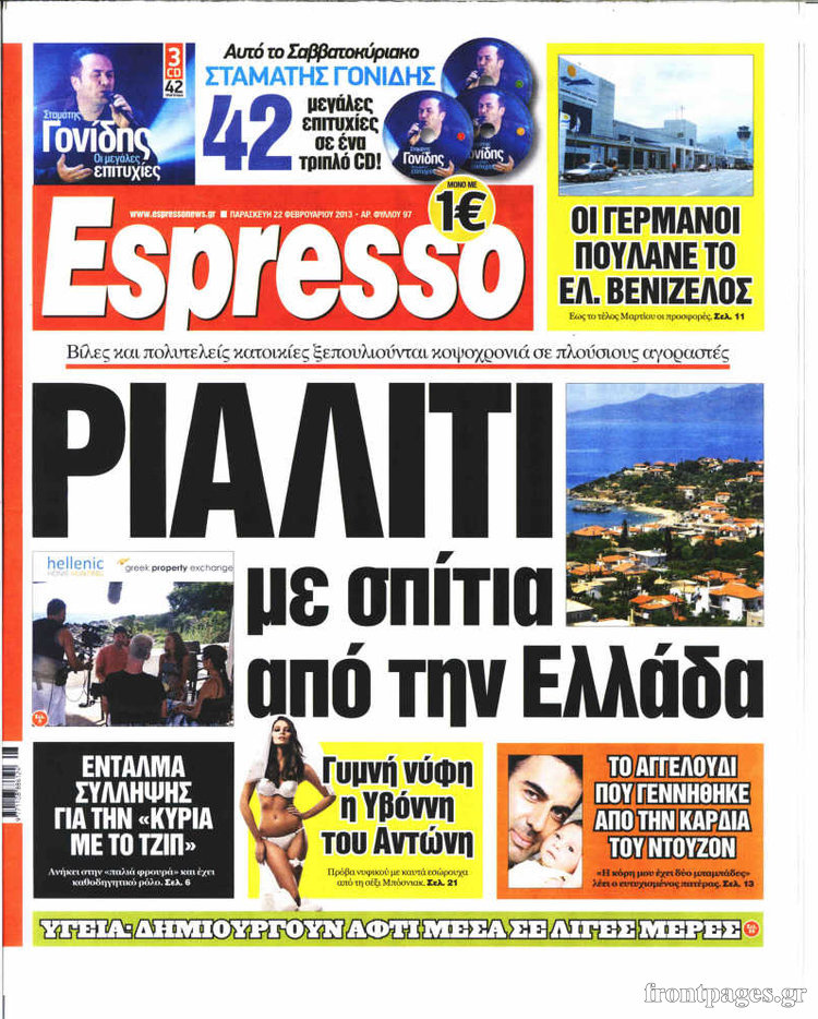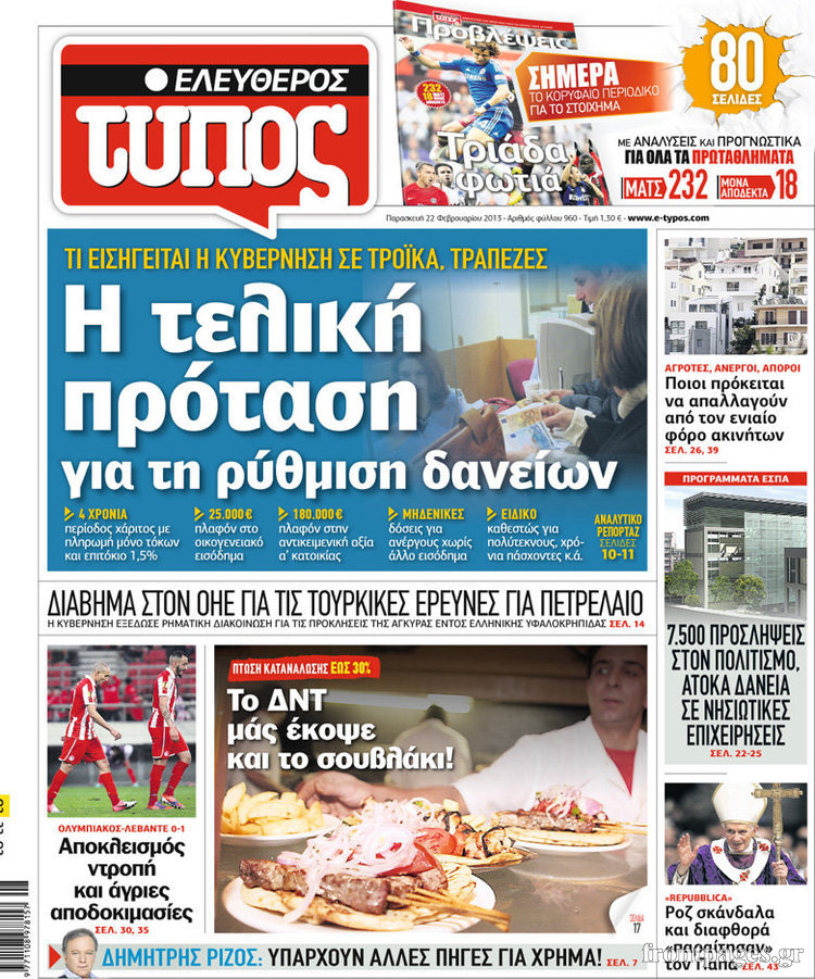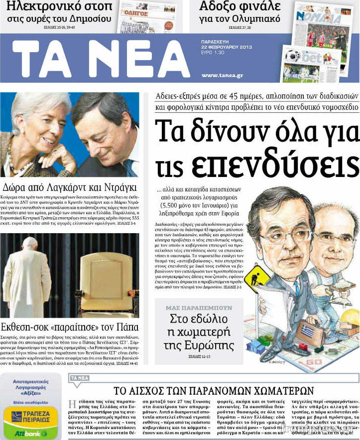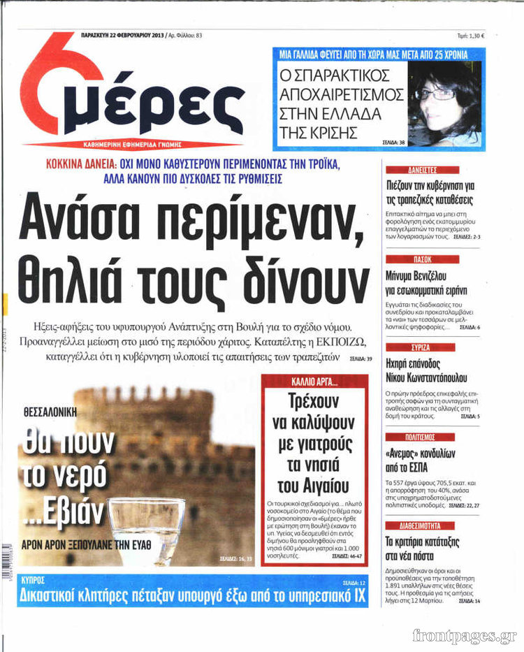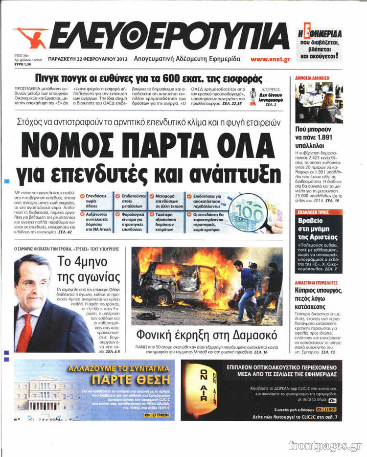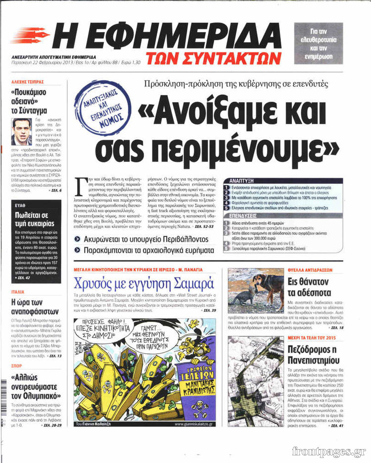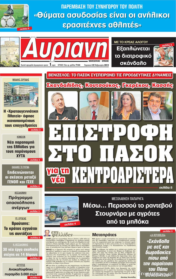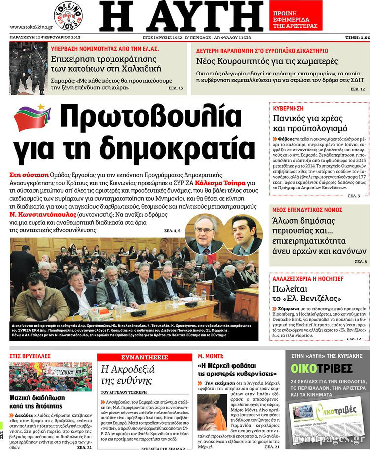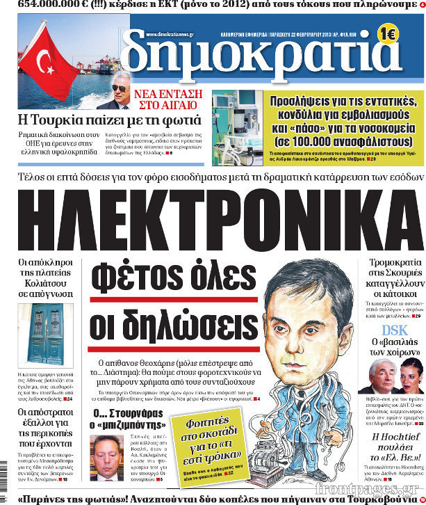 Οι πολιτικές εφημερίδες Enikos Newsroom 09:41, Παρασκευή 22 Φεβρουαρίου 2013 Media Οι πολιτικές εφημερίδες Τα πρωτοσέλιδα των πολιτικών εφημερίδων. ΕΦΗΜΕΡΙΔΕΣ ΠΟΛΙΤΙΚΕΣ ΕΦΗΜΕΡΙΔΕΣ ΠΡΩΤΟΣΕΛΙΔΑ Μοιράσου το: σχολίασε κι εσύ (0 σχόλια) Ακολουθήστε το enikos.gr στο Google News και μάθετε πρώτοι όλες τις ειδήσεις Δείτε όλες τις τελευταίες ειδήσεις από την Ελλάδα και τον Κόσμο στο enikos.gr Ειδήσεις Ροή Ειδήσεων 2 ώρες πριν Δημοσκόπηση Metron Analysis: Στις 10 μονάδες η διαφορά ΝΔ-ΠΑΣΟΚ, στην 3η θέση η Πλεύση Ελευθερίας – 8 στους 10 στηρίζουν τον αγώνα των αγροτών 6 ώρες πριν Αγρότες: «Όχι στον διάλογο, μας εμπαίζει η κυβέρνηση» – Αποφάσισαν κλιμάκωση των κινητοποιήσεων, τι θα γίνει τα Χριστούγεννα 1 ώρα πριν Νίκος Παππάς στον ΑΝΤ1: «Δεν κρύβομαι – Μετά το συμβάν ακολούθησα κανονικά το πρόγραμμά μου» – ΒΙΝΤΕΟ 3 ώρες πριν Αθήνα: Εξαρθρώθηκε εγκληματική οργάνωση που διακινούσε ναρκωτικά σε μορφή σοκολάτας – Δύο τράπερ ανάμεσα στους 4 συλληφθέντες – ΒΙΝΤΕΟ 1 ώρα πριν Διαμαντής Καραναστάσης: Οδηγούσε υπό την επήρεια αλκοόλ – Του αφαιρέθηκε το δίπλωμα και του επιβλήθηκε πρόστιμο 350 ευρώ 2 ώρες πριν Manifesting: Πώς να συναντήσετε τον σύντροφο της ζωής σας, ανάλογα με τον μήνα γέννησής σας 4 ώρες πριν Γάμος: 11 ψυχρές αλλά ευγενικές φράσεις, που λέει ένας άνδρας όταν σκέφτεται τον χωρισμό 3 ώρες πριν Σφουγγάρισμα: Η συνήθεια που θα σας βοηθήσει να διατηρήσετε το σπίτι σας καθαρό και τακτοποιημένο 2 ημέρες πριν 20 χρόνια τα Χριστούγεννα ξεκινούν στα Public με μεγάλη ποικιλία σε δώρα! 9 λεπτά πριν Αυξάνουν την πίεση προς την κυβέρνηση οι αγρότες: Κλείνουν παρακαμπτήριους και ανοίγουν διόδια – Τι θα γίνει τις γιορτές 14 λεπτά πριν Ελισάβετ Κωνσταντινίδου για τον Γεράσιμο Μιχελή και την Πόπη Χριστοδούλου: «Ξέρω ότι έχουν πάει απλώς κάπου αλλού, ότι δεν είναι ο θάνατος έτσι όπως τον έχουμε στο μυαλό μας» 19 λεπτά πριν Κρήτη: Νέες αποκαλύψεις για τον 54χρονο που κατηγορείται ότι εξαπάτησε τους γονείς του 33χρονου – Ζητούσε τρίχες αγνοουμένων 26 λεπτά πριν Τσιάρας: Δεν θα κινδυνέψουν οι πληρωμές των αγροτών – Χρειαζόμαστε μια νέα πολιτική, ένα restart 32 λεπτά πριν Δέσποινα Βανδή: Το βίντεο που δημοσίευσε με τον Γιώργο Νικολαΐδη – «Έχουμε καταστραφεί από τα μελομακάρονά σου» ENIKOS NETWORK Σε περίοδο αυξημένης δραστηριότητας η γρίπη στην Ελλάδα-Μέτρα προστασίας από τον ΕΟΔΥ Σκέφτεστε συνέχεια συζητήσεις που έχετε κάνει; Τι σημαίνει αυτό, σύμφωνα με ειδικό Λαγκάρντ: Αισιόδοξη για την ανάπτυξη της Ευρωζώνης, αβέβαιη για τον πληθωρισμό ΑΣΕΠ 2ΓΒ/2025: Σήμερα αρχίζει η υποβολή ενστάσεων – Πότε θα βγουν τα οριστικά αποτελέσματα Χαρτογραφώντας το «σημείο χωρίς επιστροφή»: Για πρώτη φορά αποκαλύπτεται με λεπτομέρεια το ακανθώδες όριο της ατμόσφαιρας τ... Η Google καταργεί τη λειτουργία «dark web report» – Πώς θα μπορούν οι χρήστες να διαγράφουν τα δεδομένα τους περισσότερα 17:45 , Πέμπτη 18 Δεκεμβρίου 2025 ROUK ZOUK: Εορταστικό επεισόδιο με καλεσμένους τους πρωταγωνιστές του «Γιατί ρε πατέρα» Το Σάββατο 20 Δεκεμβρίου στις 21:00, η Ζέτα Μακρυπούλια υποδέχεται εκλεκτούς ηθοποιούς που όλο... 17:20 , Πέμπτη 18 Δεκεμβρίου 2025 Άγιος έρωτας: Η Χριστίνα εξομολογείται στον πατέρα Νικόλαο, απόψε στις 21:00 στον Alpha Η Νότα αποφασίζει να εκδικηθεί τον Πέτρο και τον Στέφανο, για χάρη του Λούη, όμως τα πράγματα ... 16:50 , Πέμπτη 18 Δεκεμβρίου 2025 Να μ’ αγαπάς: Ζωή και Φωτεινή συμφιλιώνονται ως μάνα με κόρη, απόψε στις 20:00 Η ταυτότητα του Άγγελου αποκαλύπτεται στο νέο επεισόδι