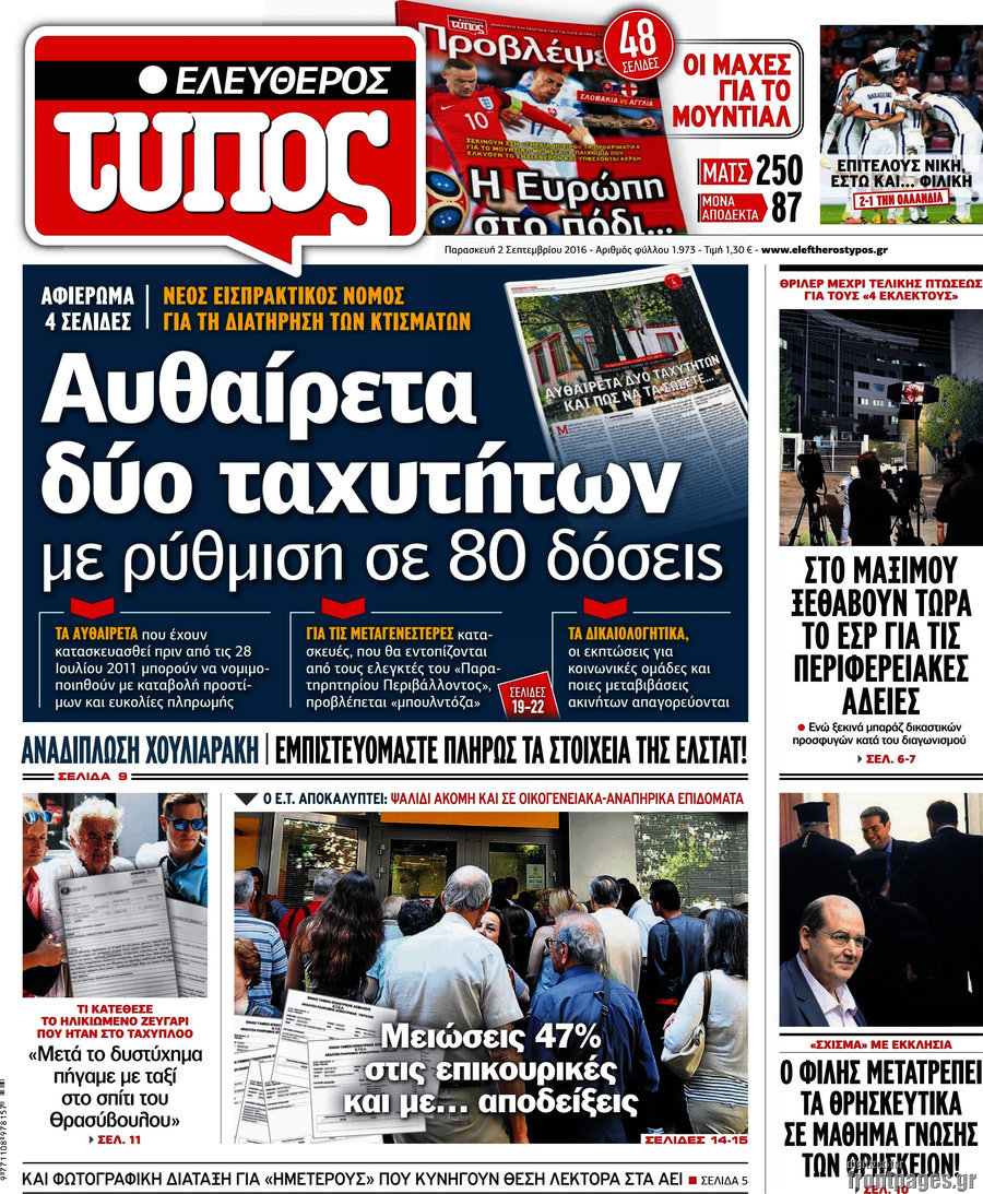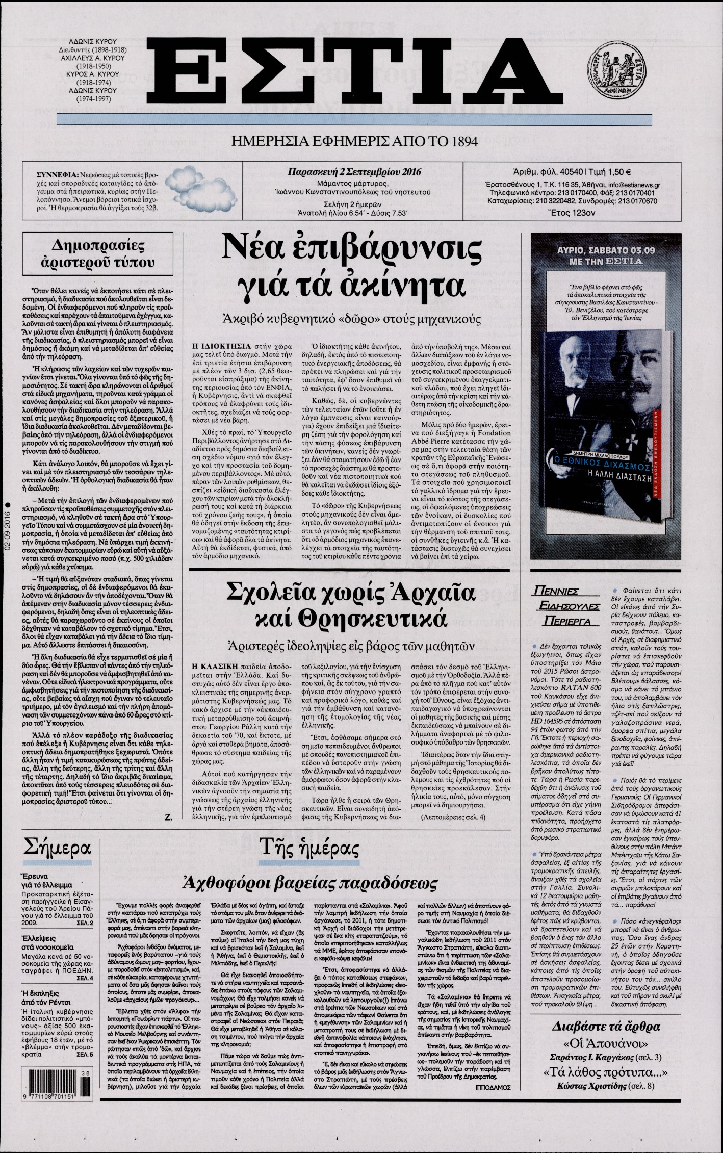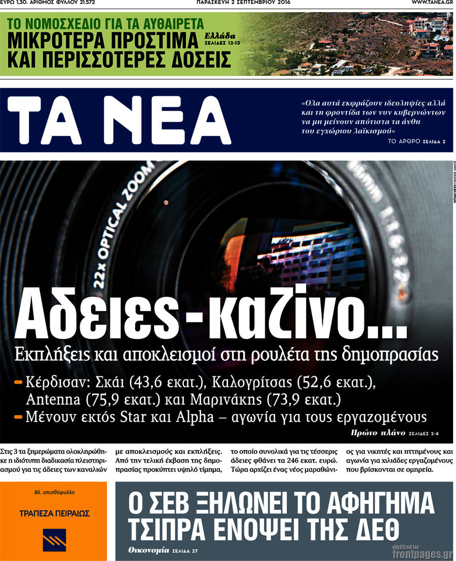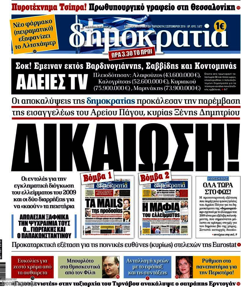 Οι πολιτικές εφημερίδες 2/9/2016 Enikos Newsroom 06:13, Παρασκευή 02 Σεπτεμβρίου 2016 Media Διαβάστε τα σημερινά πρωτοσέλιδα των πολιτικών εφημερίδων: ΠΟΛΙΤΙΚΕΣ ΕΦΗΜΕΡΙΔΕΣ ΠΡΩΤΟΣΕΛΙΔΑ Μοιράσου το: σχολίασε κι εσύ (0 σχόλια) Ακολουθήστε το enikos.gr στο Google News και μάθετε πρώτοι όλες τις ειδήσεις Δείτε όλες τις τελευταίες ειδήσεις από την Ελλάδα και τον Κόσμο στο enikos.gr Ειδήσεις Ροή Ειδήσεων 5 ώρες πριν Εκτός ευρωομάδας ΣΥΡΙΖΑ ο Νίκος Παππάς μετά την επίθεση στον δημοσιογράφο Νίκο Γιαννόπουλο – Η μήνυση και οι νέες δηλώσεις 6 ώρες πριν «Αγριεύουν» οι αγρότες: «Δεν συντρέχει λόγος συνάντησης με τον πρωθυπουργό» – Ώρα αποφάσεων στη σύσκεψη της Πέμπτης 6 ώρες πριν Κυψέλη: Χωρίς την οικογένειά της δίπλα της απολογήθηκε η 16χρονη – «Της είχε επιτεθεί κάποιος για να την βιάσει, φοβήθηκε και κυκλοφορούσε με μαχαίρι» 5 ώρες πριν Politico: Το πρόβλημα της Ευρώπης δεν είναι το Βέλγιο αλλά ο Ντόναλντ Τραμπ 7 ώρες πριν Αλεξανδρούπολη: Πολυοργανική ανεπάρκεια λόγω υποσιτισμού η αιτία θανάτου του 3χρονου αγοριού 6 ώρες πριν Μυστήριο με τεράστιες κυκλικές πέτρες 200 κιλών – Ανακαλύφθηκαν τυχαία κατά τη διάρκεια οδικών έργων και κανείς δεν ξέρει από πού προέρχονται 7 ώρες πριν Ύπνος: Ειδικός εξηγεί τον πραγματικό λόγο που ξυπνάτε στις 4 τα ξημερώματα – Ο ρόλος των ορμονών και του κιρκάδιου ρυθμού 8 ώρες πριν Αριθμολογία: Οι άνθρωποι που έχουν γεννηθεί αυτές τις 4 ημερομηνίες, είναι τρυφεροί και αγαπούν ανιδιοτελώς 19 ώρες πριν 20 χρόνια τα Χριστούγεννα ξεκινούν στα Public με μεγάλη ποικιλία σε δώρα! 10 λεπτά πριν Κτηνοτρόφοι: Με δάκρυα στα μάτια ζουν τον εφιάλτη των άδειων στάβλων – «Καταστράφηκαν οι ζωές μας» 25 λεπτά πριν Νέο αμερικανικό πλήγμα σε σκάφος που φέρεται να μετέφερε ναρκωτικά στον Ειρηνικό – Τέσσερις νεκροί 40 λεπτά πριν Αλ Τσαντίρι Νιουζ: «Λύγισε» ο Δημήτρης Λάλος για τον Δημήτρη Ήμελλο – «Τον μνημονεύω, να ‘ναι καλά εκεί που είναι» 55 λεπτά πριν GNTM: Με δάκρυα τον αποχαιρέτησε η Ηλιάνα Παπαγεωργίου πριν από τον ημιτελικό – «Αισθάνομαι πολύ παράξενα» 1 ώρα πριν Αμερικανικά στρατεύματα στον Ισημερινό για «προσωρινή» επιχείρηση κατά των ναρκωτικών ENIKOS NETWORK Αϋπνία: Το κόλπο που θα σας βοηθήσει να κοιμηθείτε απόψε – Είναι απλό και έχει αποτέλεσμα 2,6 εκατομμύρια πολίτες έχουν ήδη εμβολιαστεί κατά της γρίπης ΕΛΣΤΑΤ: Τι δείχνουν τα νέα στοιχεία για τις ηλεκτρονικές παραγγελίες των επιχειρήσεων ΚΕΠΕ: Οι 3 διακριτές συμβολές των ΜμΕ και της μεταποίησης στην ελληνική οικονομία Χαρτογραφώντας το «σημείο χωρίς επιστροφή»: Για πρώτη φορά αποκαλύπτεται με λεπτομέρεια το ακανθώδες όριο της ατμόσφαιρας τ... Η Google καταργεί τη λειτουργία «dark web report» – Πώς θα μπορούν οι χρήστες να διαγράφουν τα δεδομένα τους περισσότερα 02:30 , Πέμπτη 18 Δεκεμβρίου 2025 Αλ Τσαντίρι Νιουζ: Η κόρη της Πάολα στο κοινό – Η ατάκα Λαζόπουλου που την έκανε να «κοκκινήσει» Γιορτινή διάθεση και ευχάριστες στιγμές γέμισε η αποψινή, τελευταία για το 2025, εκπομπή του «... 22:24 , Τετάρτη 17 Δεκεμβρίου 2025 Το Σπίτι Δίπλα Στο Ποτάμι: Σε κίνδυνο η υγεία του Απόστολου – Τι θα δούμε απόψε “Το Σπίτι Δίπλα στο Ποτάμι” ξετυλίγει το νήμα της ζωής των πέντε αδελφών με καταισ... 21:14 , Τετάρτη 17 Δεκεμβρίου 2025 Παιχνίδια Εκδίκησης: Θα καταφέρει ο Χρήστος να κλονίσει την εμπιστοσύνη της Μάγιας απέναντι στον Άγη; Τα «Παιχνίδια Εκδίκησης» έρχονται απόψε στις 22:30, στον Αντ1, με το τελευταίο επεισόδιο της χ... 20:57 , Τετάρτη 17 Δεκεμβρίου 2025 Άγιος Έρωτας: Η Χ