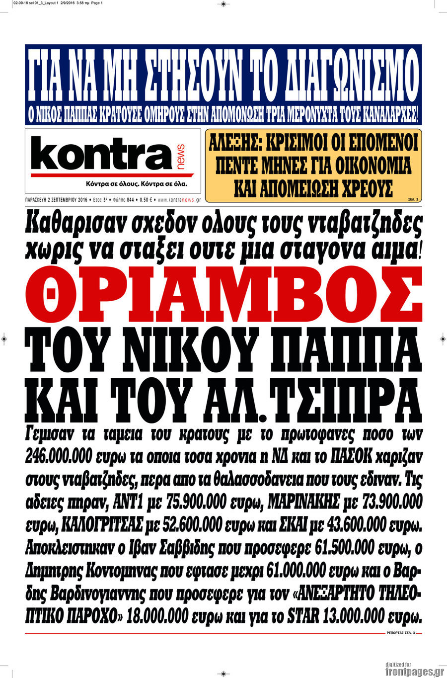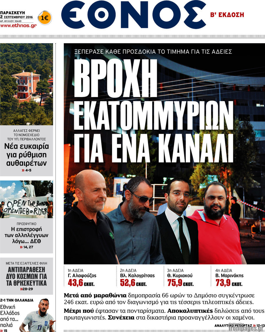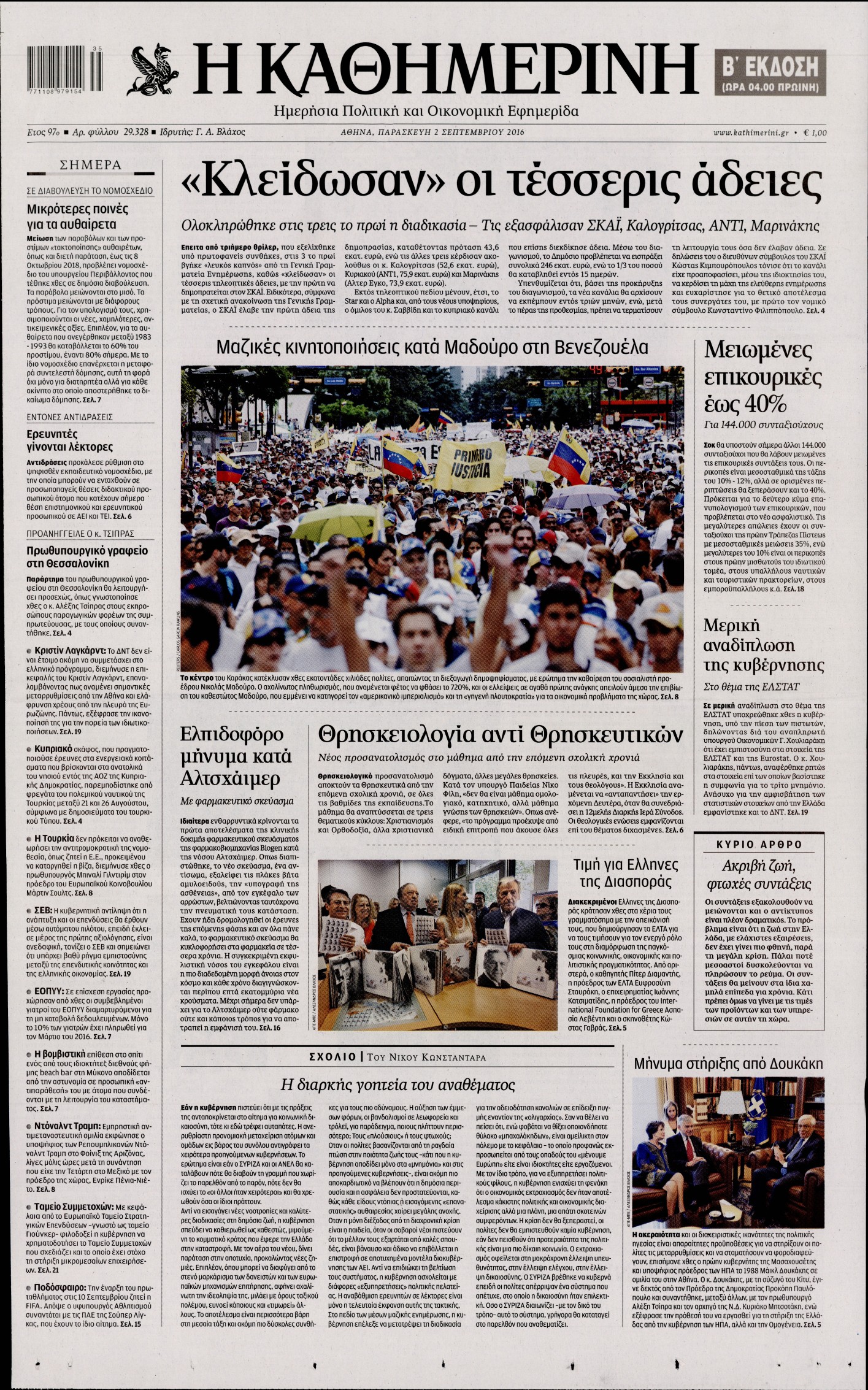 Οι πολιτικές εφημερίδες 2/9/2016 Enikos Newsroom 06:13, Παρασκευή 02 Σεπτεμβρίου 2016 Media Διαβάστε τα σημερινά πρωτοσέλιδα των πολιτικών εφημερίδων: ΠΟΛΙΤΙΚΕΣ ΕΦΗΜΕΡΙΔΕΣ ΠΡΩΤΟΣΕΛΙΔΑ Μοιράσου το: σχολίασε κι εσύ (0 σχόλια) Ακολουθήστε το enikos.gr στο Google News και μάθετε πρώτοι όλες τις ειδήσεις Δείτε όλες τις τελευταίες ειδήσεις από την Ελλάδα και τον Κόσμο στο enikos.gr Ειδήσεις Ροή Ειδήσεων 5 ώρες πριν Εκτός ευρωομάδας ΣΥΡΙΖΑ ο Νίκος Παππάς μετά την επίθεση στον δημοσιογράφο Νίκο Γιαννόπουλο – Η μήνυση και οι νέες δηλώσεις 6 ώρες πριν «Αγριεύουν» οι αγρότες: «Δεν συντρέχει λόγος συνάντησης με τον πρωθυπουργό» – Ώρα αποφάσεων στη σύσκεψη της Πέμπτης 6 ώρες πριν Κυψέλη: Χωρίς την οικογένειά της δίπλα της απολογήθηκε η 16χρονη – «Της είχε επιτεθεί κάποιος για να την βιάσει, φοβήθηκε και κυκλοφορούσε με μαχαίρι» 5 ώρες πριν Politico: Το πρόβλημα της Ευρώπης δεν είναι το Βέλγιο αλλά ο Ντόναλντ Τραμπ 7 ώρες πριν Αλεξανδρούπολη: Πολυοργανική ανεπάρκεια λόγω υποσιτισμού η αιτία θανάτου του 3χρονου αγοριού 6 ώρες πριν Μυστήριο με τεράστιες κυκλικές πέτρες 200 κιλών – Ανακαλύφθηκαν τυχαία κατά τη διάρκεια οδικών έργων και κανείς δεν ξέρει από πού προέρχονται 7 ώρες πριν Ύπνος: Ειδικός εξηγεί τον πραγματικό λόγο που ξυπνάτε στις 4 τα ξημερώματα – Ο ρόλος των ορμονών και του κιρκάδιου ρυθμού 8 ώρες πριν Αριθμολογία: Οι άνθρωποι που έχουν γεννηθεί αυτές τις 4 ημερομηνίες, είναι τρυφεροί και αγαπούν ανιδιοτελώς 19 ώρες πριν 20 χρόνια τα Χριστούγεννα ξεκινούν στα Public με μεγάλη ποικιλία σε δώρα! 10 λεπτά πριν Κτηνοτρόφοι: Με δάκρυα στα μάτια ζουν τον εφιάλτη των άδειων στάβλων – «Καταστράφηκαν οι ζωές μας» 25 λεπτά πριν Νέο αμερικανικό πλήγμα σε σκάφος που φέρεται να μετέφερε ναρκωτικά στον Ειρηνικό – Τέσσερις νεκροί 40 λεπτά πριν Αλ Τσαντίρι Νιουζ: «Λύγισε» ο Δημήτρης Λάλος για τον Δημήτρη Ήμελλο – «Τον μνημονεύω, να ‘ναι καλά εκεί που είναι» 55 λεπτά πριν GNTM: Με δάκρυα τον αποχαιρέτησε η Ηλιάνα Παπαγεωργίου πριν από τον ημιτελικό – «Αισθάνομαι πολύ παράξενα» 1 ώρα πριν Αμερικανικά στρατεύματα στον Ισημερινό για «προσωρινή» επιχείρηση κατά των ναρκωτικών ENIKOS NETWORK Αϋπνία: Το κόλπο που θα σας βοηθήσει να κοιμηθείτε απόψε – Είναι απλό και έχει αποτέλεσμα 2,6 εκατομμύρια πολίτες έχουν ήδη εμβολιαστεί κατά της γρίπης ΕΛΣΤΑΤ: Τι δείχνουν τα νέα στοιχεία για τις ηλεκτρονικές παραγγελίες των επιχειρήσεων ΚΕΠΕ: Οι 3 διακριτές συμβολές των ΜμΕ και της μεταποίησης στην ελληνική οικονομία Χαρτογραφώντας το «σημείο χωρίς επιστροφή»: Για πρώτη φορά αποκαλύπτεται με λεπτομέρεια το ακανθώδες όριο της ατμόσφαιρας τ... Η Google καταργεί τη λειτουργία «dark web report» – Πώς θα μπορούν οι χρήστες να διαγράφουν τα δεδομένα τους περισσότερα 02:30 , Πέμπτη 18 Δεκεμβρίου 2025 Αλ Τσαντίρι Νιουζ: Η κόρη της Πάολα στο κοινό – Η ατάκα Λαζόπουλου που την έκανε να «κοκκινήσει» Γιορτινή διάθεση και ευχάριστες στιγμές γέμισε η αποψινή, τελευταία για το 2025, εκπομπή του «... 22:24 , Τετάρτη 17 Δεκεμβρίου 2025 Το Σπίτι Δίπλα Στο Ποτάμι: Σε κίνδυνο η υγεία του Απόστολου – Τι θα δούμε απόψε “Το Σπίτι Δίπλα στο Ποτάμι” ξετυλίγει το νήμα της ζωής των πέντε αδελφών με καταισ... 21:14 , Τετάρτη 17 Δεκεμβρίου 2025 Παιχνίδια Εκδίκησης: Θα καταφέρει ο Χρήστος να κλονίσει την εμπιστοσύνη της Μάγιας απέναντι στον Άγη; Τα «Παιχνίδια Εκδίκησης» έρχονται απόψε στις 22:30, στον Αντ1, με το τελευταίο επεισόδιο της χ... 20:57 , Τετάρτη 17 Δεκεμβρίου 2025 Άγιος Έρωτας: Η Χ