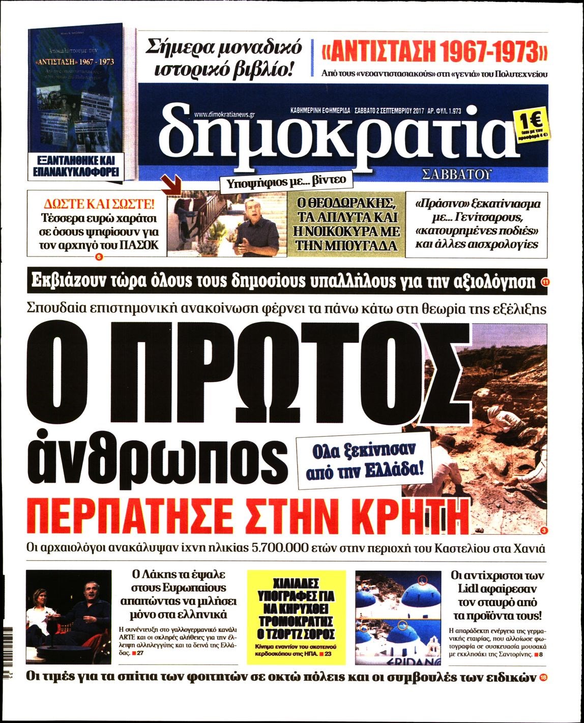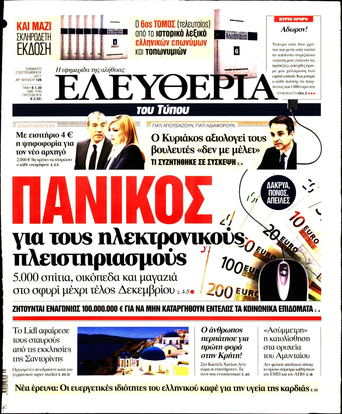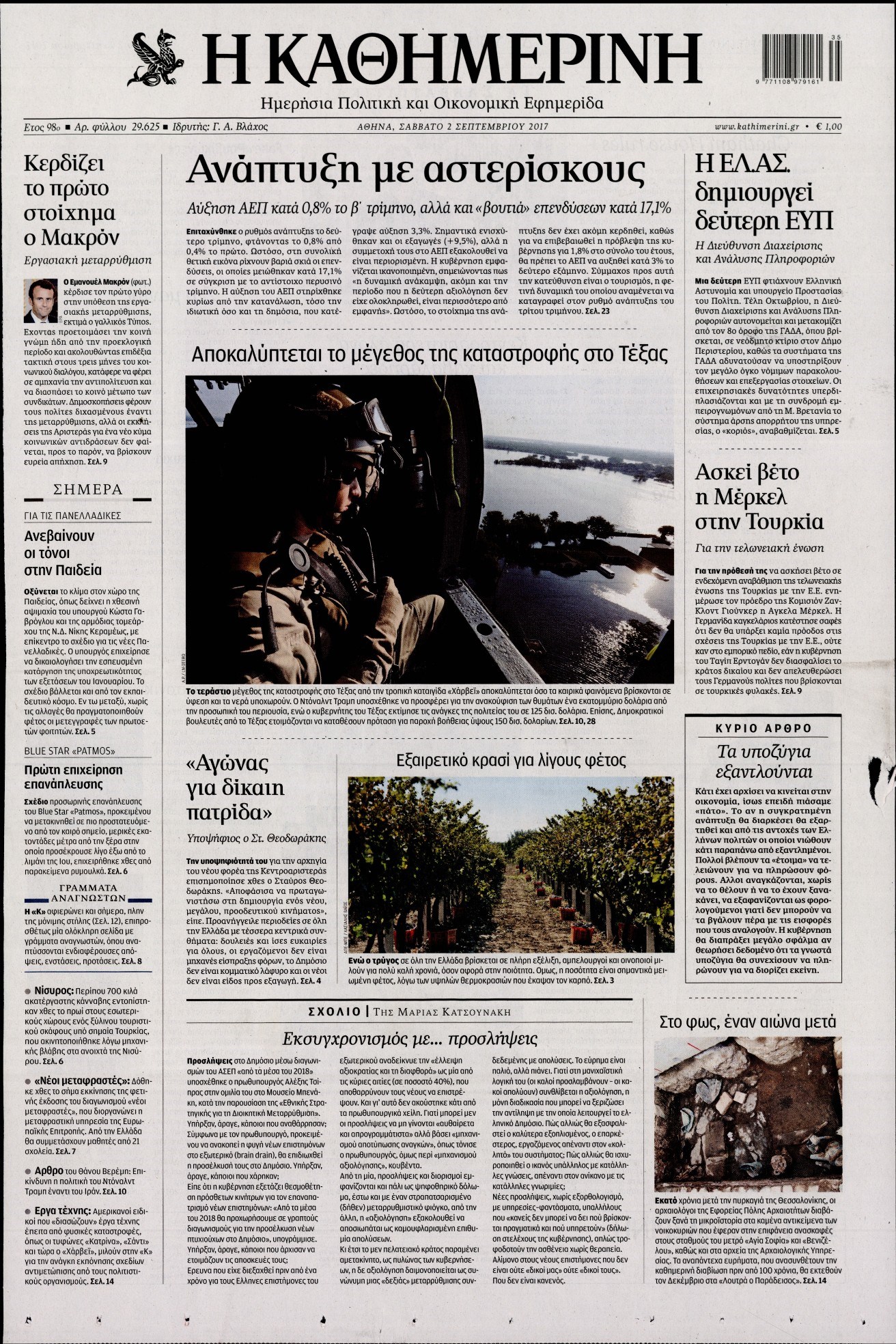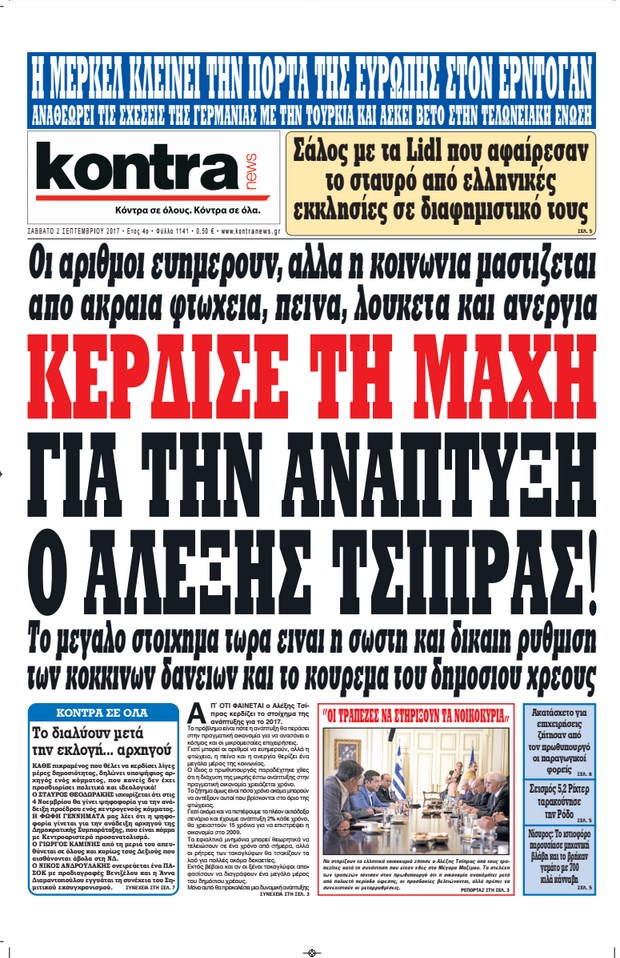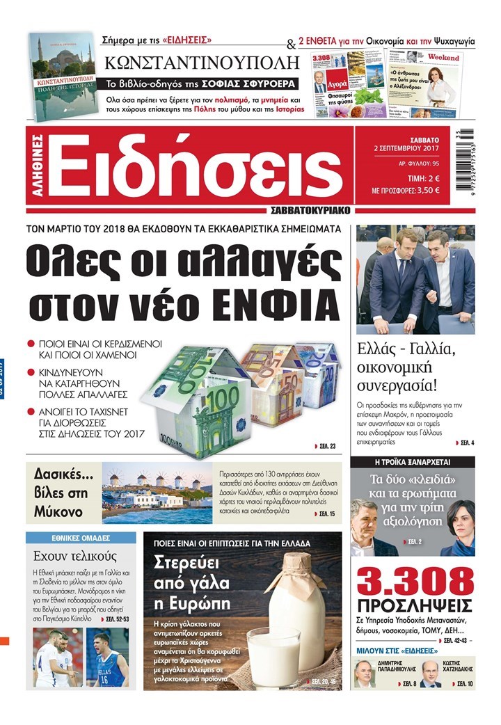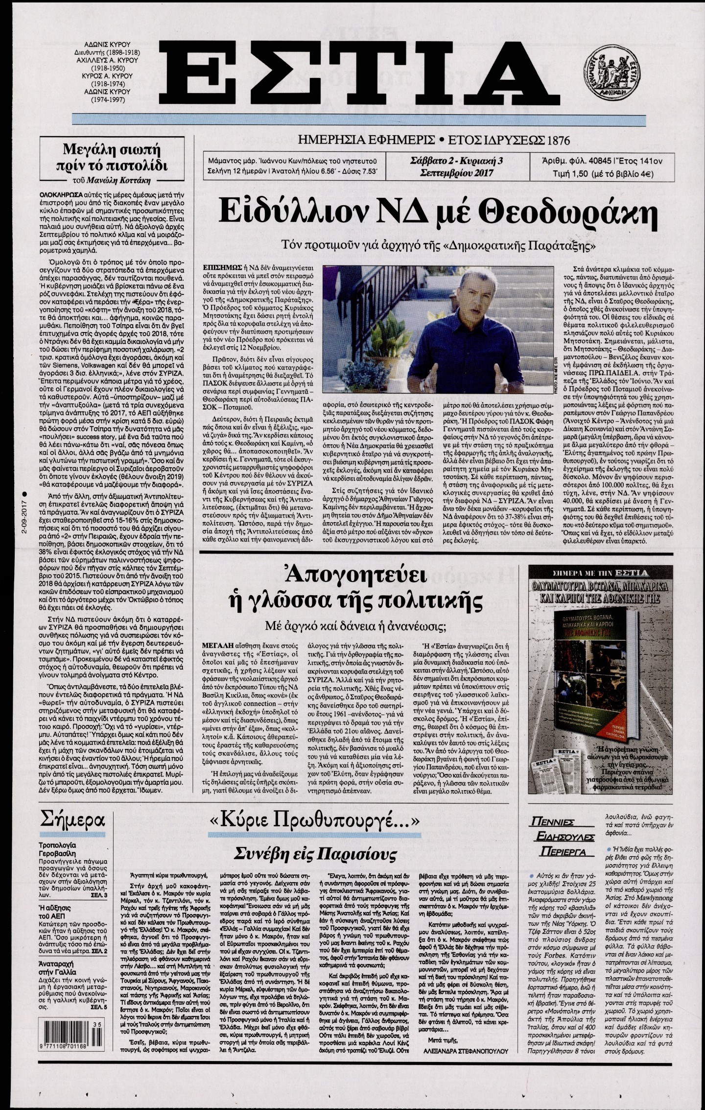 Οι πολιτικές εφημερίδες 2/9/2017 Enikos Newsroom 07:35, Σάββατο 02 Σεπτεμβρίου 2017 Media Διαβάστε τα σημερινά πρωτοσέλιδα των πολιτικών εφημερίδων: ΠΟΛΙΤΙΚΕΣ ΕΦΗΜΕΡΙΔΕΣ ΠΡΩΤΟΣΕΛΙΔΑ Μοιράσου το: σχολίασε κι εσύ (0 σχόλια) Ακολουθήστε το enikos.gr στο Google News και μάθετε πρώτοι όλες τις ειδήσεις Δείτε όλες τις τελευταίες ειδήσεις από την Ελλάδα και τον Κόσμο στο enikos.gr Ειδήσεις Ροή Ειδήσεων 2 ώρες πριν Χριστούγεννα στα μπλόκα: Επιμένουν στις κινητοποιήσεις τους οι αγρότες – Ανοίγουν τα διόδια το Σαββατοκύριακο 3 ώρες πριν Ουκρανία: Η άνευ προηγουμένου επίθεση σε ρωσικό τάνκερ στη Μεσόγειο και το μήνυμα προς στον Πούτιν – Το «μακρύ χέρι» του Κιέβου 2 ώρες πριν Πούτιν: Τα μηνύματα σε Ευρώπη και ΝΑΤΟ από το μαραθώνιο «σόου» του – Η απαίτηση για «σεβασμό» και η ειρήνη «με τους όρους» της Μόσχας 3 ώρες πριν Τραμπ: Δεν αποκλείει την πιθανότητα ενός πολέμου στη Βενεζουέλα – «Ο Μαδούρο ξέρει καλύτερα από τον καθένα τι ακριβώς θέλω» 3 ώρες πριν Συνεχίζει να προκαλεί ο Μίτσκοσκι: «Για μένα το όνομα Μακεδονία είναι ιερό» 2 ώρες πριν Ανακαλύφθηκαν αρχαία χρυσά νομίσματα 2.200 ετών που απεικονίζουν τον θεό Απόλλωνα – Η άγνωστη σύνδεση με τον Φίλιππο Β΄ της Μακεδονίας 3 ώρες πριν Ύπνος: Μια κρυφή κατάσταση του εγκεφάλου πριν από τον ύπνο μπορεί να είναι το “κλειδί” για υψηλή ευφυΐα και δημιουργικότητα 4 ώρες πριν Αριθμολογία: Οι άνθρωποι που έχουν γεννηθεί αυτές τις 4 ημερομηνίες, συχνά παρεξηγούνται – «Η καλοσύνη τους κρύβει τεράστια δύναμη» 5 ώρες πριν Ξεχάστε το καθάρισμα το Σαββατοκύριακο: Ο «κανόνας των 20 λεπτών» που θα σας λύσει τα χέρια 18 λεπτά πριν Φαίη Σκορδά: «Παλιότερα τα κομπλιμέντα τα προσπερνούσα, τώρα τα έχω ανάγκη» 34 λεπτά πριν Βασίλης Σπανούλης: Δεν εμφανίστηκε ούτε ένας δημοσιογράφος στην συνέντευξη Τύπου – «Καλησπέρα στον… κανέναν», δείτε βίντεο 45 λεπτά πριν Πόλεμος στην Ουκρανία: Εφτά νεκροί από ρωσική πυραυλική επίθεση στο λιμάνι της Οδησσού 49 λεπτά πριν ΗΠΑ: Η κυβέρνηση του Ντόναλντ Τραμπ άρχισε να δημοσιοποιεί τα αρχεία Έπσταϊν 1 ώρα πριν Σάμος: Άνοιξε το μπλόκο των αγροτών στον κόμβο Κοκκαρίου – Σε νέα συνεδρίαση θα καθορίσουν την στάση τους ENIKOS NETWORK Το ΕΚΑΒ τιμήθηκε από την Ακαδημία Αθηνών για τα 40 χρόνια προσφοράς του Έχετε πραγματικά μεγάλη καρδιά; 10 χαρακτηριστικά όσων έχουν καλοσύνη Αναστολή μέτρων αναγκαστικής εκτέλεσης για κτηνοτρόφους που πλήττονται από την ευλογιά των αιγοπροβάτων Πλήρης επάρκεια προϊόντων στις λαϊκές της Αττικής, παρά τις αγροτικές κινητοποιήσεις – Τι απαντούν οι πωλητές Χαρτογραφώντας το «σημείο χωρίς επιστροφή»: Για πρώτη φορά αποκαλύπτεται με λεπτομέρεια το ακανθώδες όριο της ατμόσφαιρας τ... Η Google καταργεί τη λειτουργία «dark web report» – Πώς θα μπορούν οι χρήστες να διαγράφουν τα δεδομένα τους περισσότερα 22:42 , Παρασκευή 19 Δεκεμβρίου 2025 Γιώργος Γιαννόπουλος για “Το σόι σου”: “Είναι ευτυχία και ευλογία αυτή η σειρά” «Είναι ευτυχία και ευλογία η συγκυρία αυτής της σειράς», θα πει ο Γιώργος Γιαννόπουλος -ο αγαπ... 20:37 , Παρασκευή 19 Δεκεμβρίου 2025 Don’t Forget The Lyrics: Η Έλλη Κοκκίνου υποδέχεται 4 παίκτες που θα κάνουν τα πάντα για να μη χάσουν ούτε… μισή λέξη από τους στίχους Το «Don’t Forget The Lyrics» επιστρέφει απόψε, Παρασκευή 19 Δεκεμβρίου, στις 21:00 με νέο επει... 19:31 , Παρασκευή 19 Δεκεμβρίου 2025 GNTM: Απόψε ο μεγάλος τελικός για τους 4 φιναλίστ Έπειτα από μήνες γεμάτους μόδα, δημιουργία και έντονες αναμετρήσεις, το GNTM 2025 κορυφώνεται,... 18:11 , Παρ