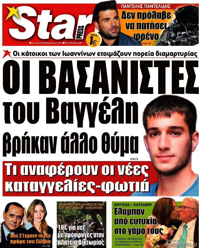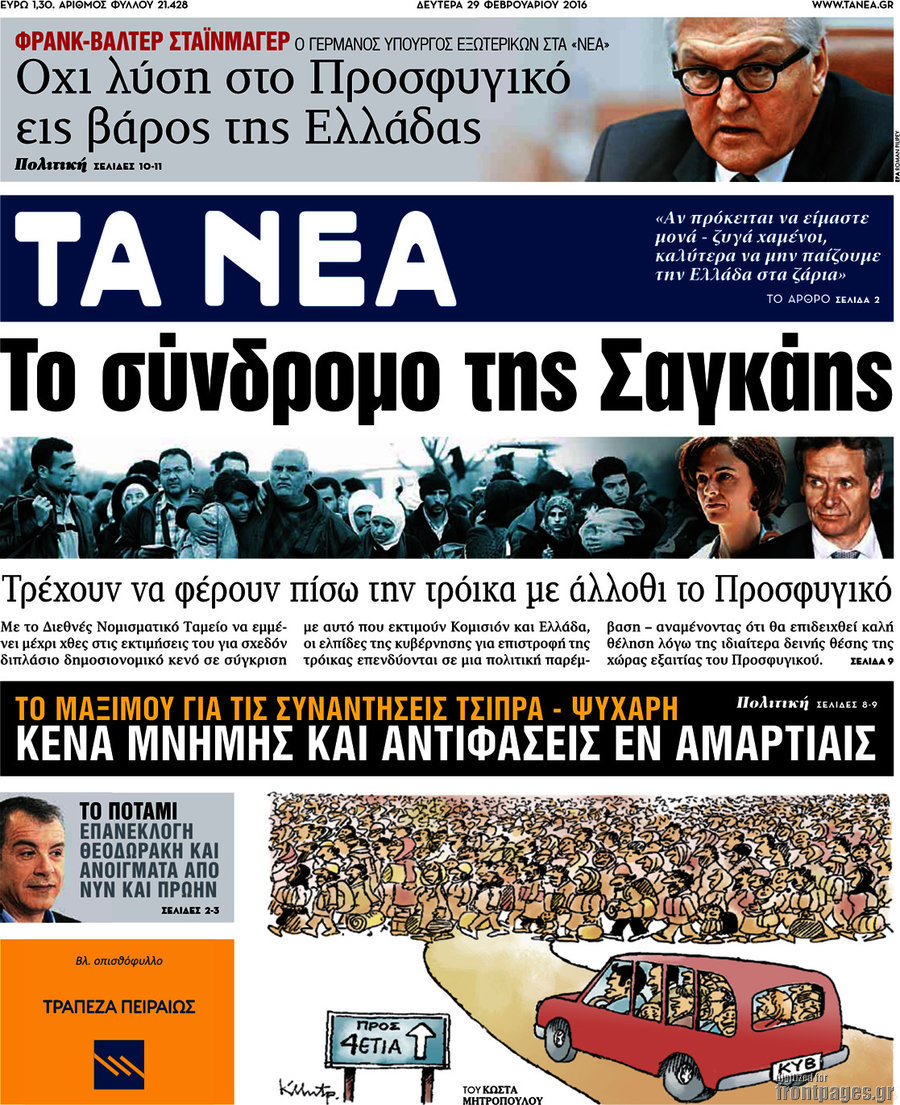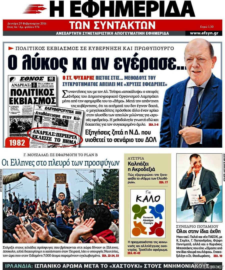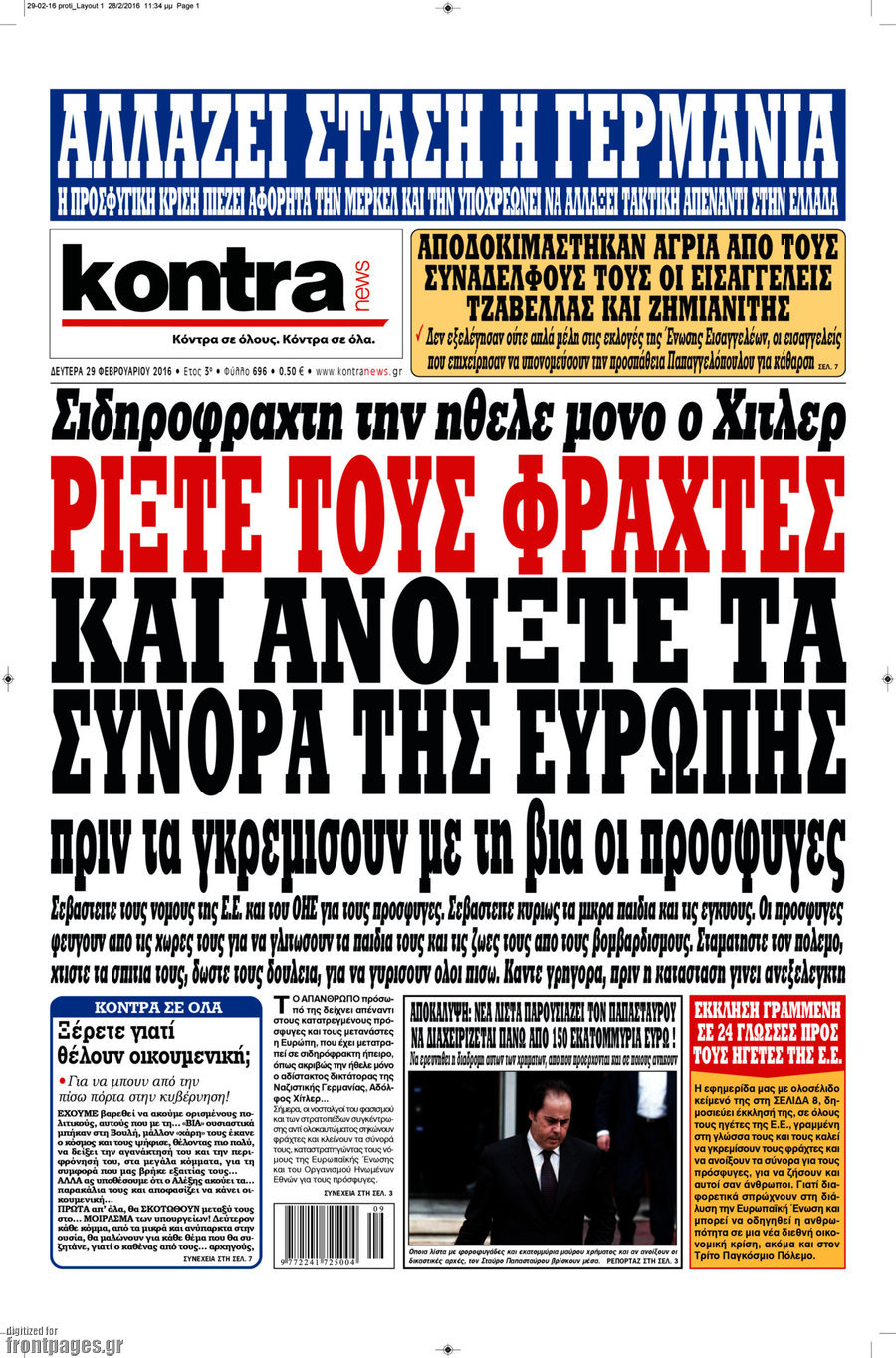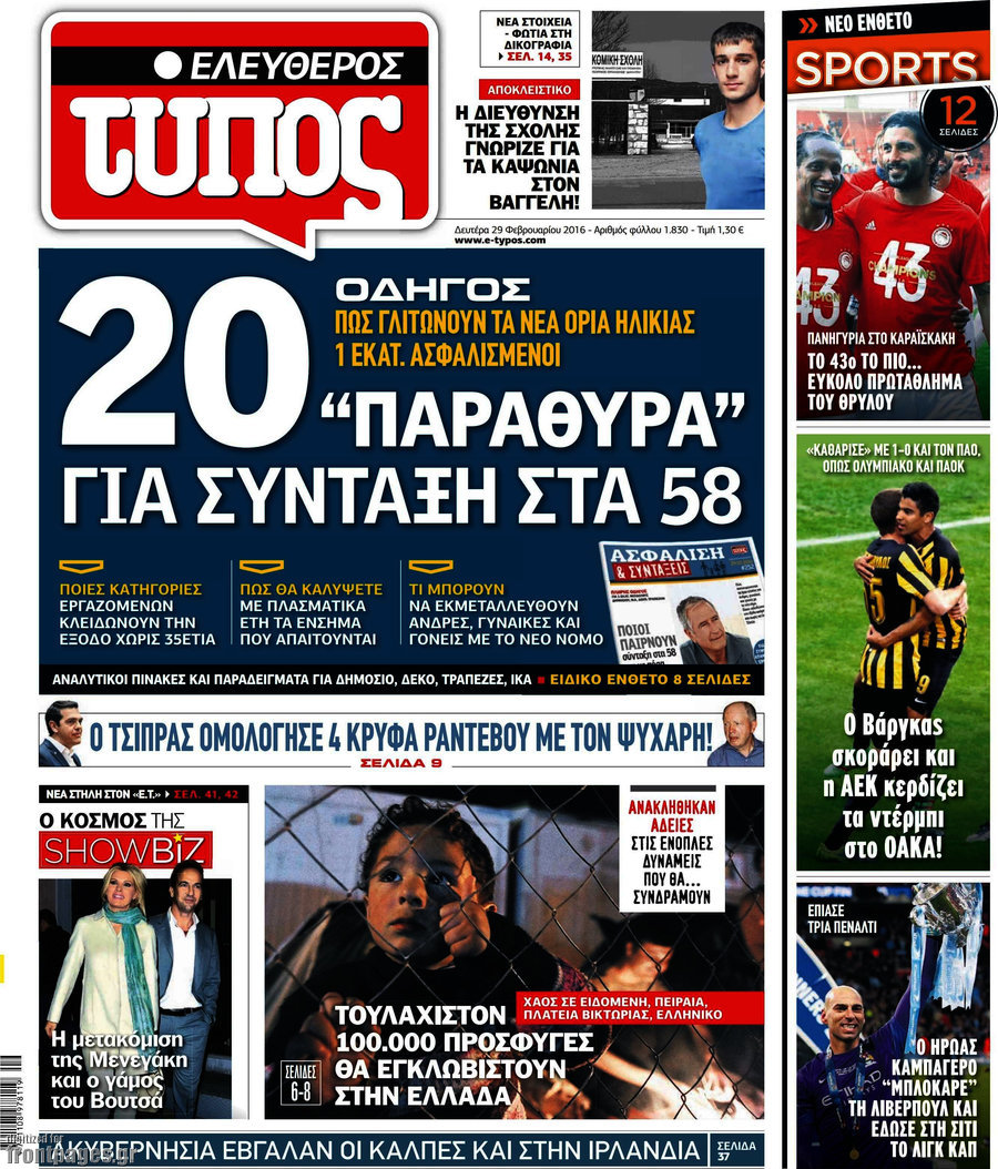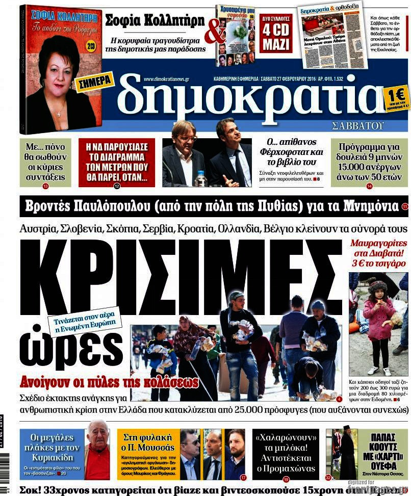 Οι πολιτικές εφημερίδες 29/2/2016 Enikos Newsroom 07:44, Δευτέρα 29 Φεβρουαρίου 2016 Media Διαβάστε τα σημερινά πρωτοσέλιδα των πολιτικών εφημερίδων: ΕΦΗΜΕΡΙΕΣ ΠΟΛΙΤΙΚΕΣ ΕΦΗΜΕΡΙΔΕΣ ΠΡΩΤΟΣΕΛΙΔΑ Μοιράσου το: σχολίασε κι εσύ (0 σχόλια) Ακολουθήστε το enikos.gr στο Google News και μάθετε πρώτοι όλες τις ειδήσεις Δείτε όλες τις τελευταίες ειδήσεις από την Ελλάδα και τον Κόσμο στο enikos.gr Ειδήσεις Ροή Ειδήσεων 10 ώρες πριν Παράνομες επιδοτήσεις 1,7 εκατ. ευρώ στον ΟΠΕΚΕΠΕ: Πώς έστησε την κομπίνα η εγκληματική οργάνωση – Οι ρόλοι, οι βαριές κατηγορίες και οι… κουμπαριές 11 λεπτά πριν Ουκρανία: Ο διπλωματικός «γρίφος» των συνομιλιών στο Βερολίνο – Η «ελεύθερη οικονομική ζώνη» του Τραμπ και το «χάσμα» που θέλει να γεφυρώσει η Ευρώπη 1 ώρα πριν Νέο τέλος για τα ακίνητα: Τι θα πληρώνουν οι ιδιοκτήτες από 1η Ιανουαρίου 2027 – Αναλυτικός οδηγός της ΚΕΔΕ με ερωτήσεις και απαντήσεις 47 λεπτά πριν Η λάβα του Πυροβολικού ξεχύθηκε στο Αιγαίο – Δείτε φωτογραφίες και βίντεο 10 ώρες πριν Αγρότες: Εν αναμονή της πανελλαδικής σύσκεψης στη Νίκαια το Σάββατο – Η διαμαρτυρία με σανό στη Λάρισα και η κινητοποίηση στο λιμάνι της Θεσσαλονίκης 27 λεπτά πριν Αποκρυπτογραφήθηκε κώδικας χιλιετιών: Ερευνητής έλυσε το μυστήριο και έφερε στο φως το μυστικό της γραφής των Χειρόγραφων της Νεκράς Θάλασσας 3 ώρες πριν Τα ζώδια σήμερα, Σάββατο 13 Δεκεμβρίου: Λέοντες, νιώθετε πιο τολμηροί 2 ώρες πριν Καρκίνος: Ογκολόγος αποκαλύπτει 4 τρόπους για να μειώσετε τον κίνδυνο και να ζήσετε περισσότερο 2 ώρες πριν Οπτική ψευδαίσθηση: Μόνο αν έχεις αετίσια ματιά θα βρεις τρία πάντα χωρίς γυαλιά σε 15 δευτερόλεπτα 2 λεπτά πριν Αυτή την Κυριακή με τη Realnews: Δωροεπιταγή 10€ 11 λεπτά πριν Ουκρανία: Ο διπλωματικός «γρίφος» των συνομιλιών στο Βερολίνο – Η «ελεύθερη οικονομική ζώνη» του Τραμπ και το «χάσμα» που θέλει να γεφυρώσει η Ευρώπη 19 λεπτά πριν Το θρίλερ που πρέπει να δεις σήμερα και θα σε κρατήσει σε αγωνία μέχρι το τέλος 27 λεπτά πριν Αποκρυπτογραφήθηκε κώδικας χιλιετιών: Ερευνητής έλυσε το μυστήριο και έφερε στο φως το μυστικό της γραφής των Χειρόγραφων της Νεκράς Θάλασσας 31 λεπτά πριν Peter Greene: Πέθανε ο εμβληματικός «κακός» των ταινιών του Χόλιγουντ σε ηλικία 60 ετών – Εντοπίστηκε νεκρός στο διαμέρισμά του ENIKOS NETWORK Βιταμίνη D: 6 διακριτικά σημάδια που μπορεί να δείχνουν ότι έχετε έλλειψη Έχετε υψηλό δείκτη νοημοσύνης; Μετρήστε πόσες χελώνες βλέπετε σε 17 δευτερόλεπτα – Δεν είναι 9 Νέο τέλος για τα ακίνητα: Τι θα πληρώνουν οι ιδιοκτήτες από 1η Ιανουαρίου 2027 – Αναλυτικός οδηγός της ΚΕΔΕ με ερωτήσεις κα... ΑΑΔΕ: Νέα σημαντική μείωση του κενού ΦΠΑ στην Ελλάδα – Υποχώρησε 61% σε έξι χρόνια Σύγχρονος Νοστράδαμος: Προειδοποιεί για «μεγάλο γεγονός» τους επόμενους μήνες που θα συγκλονίσει τη Βρετανία και τον κόσμο Τεστ παρατηρητικότητας: Μπορείτε να βρείτε τις 3 διαφορές στις εικόνες με έναν πιγκουίνο σε 14 δευτερόλεπτα περισσότερα 08:27 , Σάββατο 13 Δεκεμβρίου 2025 Αυτή την Κυριακή με τη Realnews: Δωροεπιταγή 10€ Δωροεπιταγή αξίας 10€ για αγορές άνω των 60€ από τα πολυκαταστήματα Factory Outlet. H προσφορά... 07:50 , Σάββατο 13 Δεκεμβρίου 2025 Την Κυριακή με τη Realnews: Σκάναρε & κέρδισε με το PaduApp Τo κορυφαίο app επιβράβευσης στην Ελλάδα που σε ανταμείβει για κάθε αγορά! Κέρδισε με 3 μόνο β... 07:34 , Σάββατο 13 Δεκεμβρίου 2025 Οι αθλητικές μεταδόσεις 13/12/2025 Tα παιχνίδια της 14ης αγωνιστικής του πρωταθλήματος της Super League, τα ματς της Greek Basket... 06:39 , Σάββατο 13 Δεκεμβρίου 2025 GNTM: Δεν τ