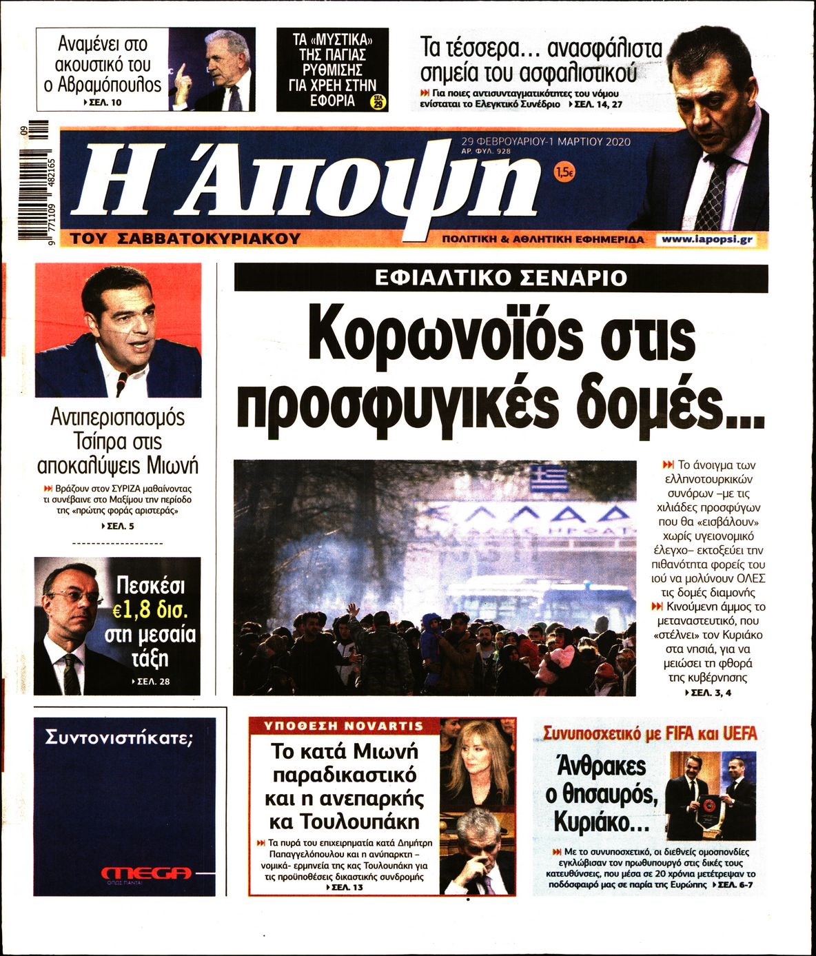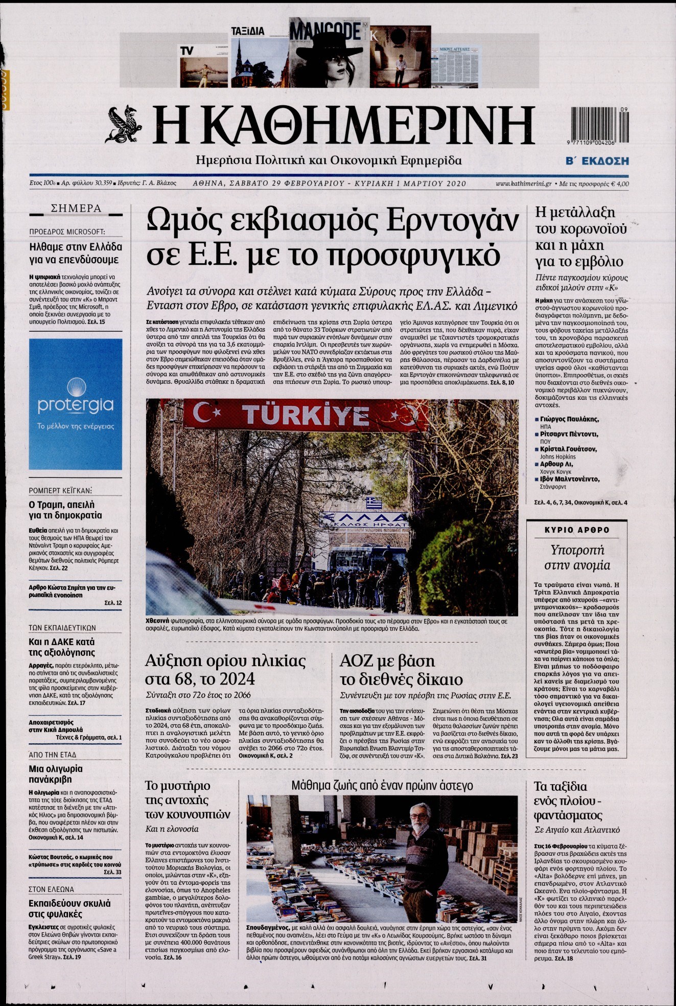 Οι πολιτικές εφημερίδες 29/2/2020 Διονύσης Νίκκας 07:08, Σάββατο 29 Φεβρουαρίου 2020 Media Διαβάστε τα πρωτοσέλιδα των πολιτικών εφημερίδων… ΠΟΛΙΤΙΚΕΣ ΕΦΗΜΕΡΙΔΕΣ ΠΡΩΤΟΣΕΛΙΔΑ Μοιράσου το: σχολίασε κι εσύ (0 σχόλια) Ακολουθήστε το enikos.gr στο Google News και μάθετε πρώτοι όλες τις ειδήσεις Δείτε όλες τις τελευταίες ειδήσεις από την Ελλάδα και τον Κόσμο στο enikos.gr Ειδήσεις Ροή Ειδήσεων 1 ώρα πριν Υπόθεση Έπσταϊν: Το Υπουργείο Δικαιοσύνης δημοσιοποίησε μια σειρά από εξαιρετικά επεξεργασμένα αρχεία – «Λείπουν τα πιο σημαντικά έγγραφα», λένε οι Δημοκρατικοί 38 λεπτά πριν Ο «χάρτης» με τις αυξήσεις και τις φοροελαφρύνσεις του 2026 – Ποιοι και πόσα κερδίζουν 11 ώρες πριν Χριστούγεννα στα μπλόκα: Επιμένουν στις κινητοποιήσεις τους οι αγρότες – Ανοίγουν τα διόδια το Σαββατοκύριακο 2 ώρες πριν ΟΝΕΧ – MEGATUGS: Ξεκίνησε η ναυπήγηση ρυμουλκών στην Ελλάδα – Προθάλαμος πολεμικών πλοίων – Δείτε φωτογραφίες και βίντεο 2 ώρες πριν Καιρός: Αλλαγή σκηνικού σήμερα με βροχές και πτώση της θερμοκρασίας – Οι προβλέψεις των μετεωρολόγων για τα Χριστούγεννα 3 ώρες πριν Αυγά: Πόσα μπορείτε να τρώτε την ημέρα με ασφάλεια για μέγιστη πρόσληψη πρωτεΐνης 4 ώρες πριν Τα ζώδια σήμερα, Σάββατο 20 Δεκεμβρίου: Παρθένοι, το σύμπαν σας δίνει το κλειδί 3 ώρες πριν Οπτική ψευδαίσθηση: Μόνο αν είσαι ο Σέρλοκ Χολμς θα βρεις τον αριθμό «87» σε 7 δευτερόλεπτα 1 ώρα πριν Αρχαιολόγοι ανακάλυψαν σε χωράφι απεικόνιση 600 ετών ενός Αγίου – Τα στοιχεία που δείχνουν ότι μαρτύρησε 2 λεπτά πριν Ουκρανία: Drones έπληξαν εξέδρα πετρελαίου και πολεμικό πλοίο της Ρωσίας στην Κασπία 10 λεπτά πριν Παιδική υπέρταση: Μια σιωπηλή απειλή που αυξάνεται διεθνώς 11 λεπτά πριν Αγχώνεται για το χριστουγεννιάτικο δώρο που πήρε στην πλούσια σύντροφό του – «Φοβάμαι πως θα το βρει φθηνιάρικο, φοράει βραχιόλια Cartier» 18 λεπτά πριν Enerwave: Το νέο «ρεύμα» στη λιανική ενέργειας που αλλάζει την εμπειρία του καταναλωτή 22 λεπτά πριν Γιώργος Μαζωνάκης: Τη Δευτέρα η μήνυση του τραγουδιστή κατά του 22χρονου ENIKOS NETWORK Πόσα κιλά παίρνουμε πραγματικά τα Χριστούγεννα, σύμφωνα με την επιστήμη – Πώς να το αποτρέψουμε; Το δημοφιλές ρόφημα που αυξάνει την πίεση πιο γρήγορα και από το αλάτι Mega χριστουγεννιάτικη φορολοταρία: «Κλείδωσε» η ημερομηνία για την κλήρωση – Ερωτήσεις και απαντήσεις Αναστολή μέτρων αναγκαστικής εκτέλεσης για κτηνοτρόφους που πλήττονται από την ευλογιά των αιγοπροβάτων Χαρτογραφώντας το «σημείο χωρίς επιστροφή»: Για πρώτη φορά αποκαλύπτεται με λεπτομέρεια το ακανθώδες όριο της ατμόσφαιρας τ... Η Google καταργεί τη λειτουργία «dark web report» – Πώς θα μπορούν οι χρήστες να διαγράφουν τα δεδομένα τους περισσότερα 08:14 , Σάββατο 20 Δεκεμβρίου 2025 Τρομεροί γονείς: Η Μαρία Καβογιάννη εισβάλλει στο σπίτι της οικογένειας Στεφανίδη Όσα θα δούμε στο νέο διπλό επεισόδιο της σειράς «Τρομεροί γονείς», σήμερα Σάββατο 20 Δεκεμβρίο... 05:48 , Σάββατο 20 Δεκεμβρίου 2025 Οι οικονομικές εφημερίδες 20/12/2025 Διαβάστε τα πρωτοσέλιδα από τις οικονομικές εφημερίδες, σήμερα 20/12/2025. 05:43 , Σάββατο 20 Δεκεμβρίου 2025 Οι αθλητικές εφημερίδες 20/12/2025 Διαβάστε τα πρωτοσέλιδα από τις αθλητικές εφημερίδες, σήμερα 20/12/2025. 05:38 , Σάββατο 20 Δεκεμβρίου 2025 Οι πολιτικές εφημερίδες 20/12/2025 Διαβάστε τα πρωτοσέλιδα από τις πολιτικές εφημερίδες, σήμερα 20/12/2025. ΤΕΛΕΥΤΑΙΕΣ ΕΙΔΗΣΕΙΣ 10 λεπτά πριν Παιδική υπέρταση: Μια σιωπηλή απειλή που αυξάνεται... 11 λεπτά πριν Αγχώνεται για το χριστουγεννιάτικο δώρο που 