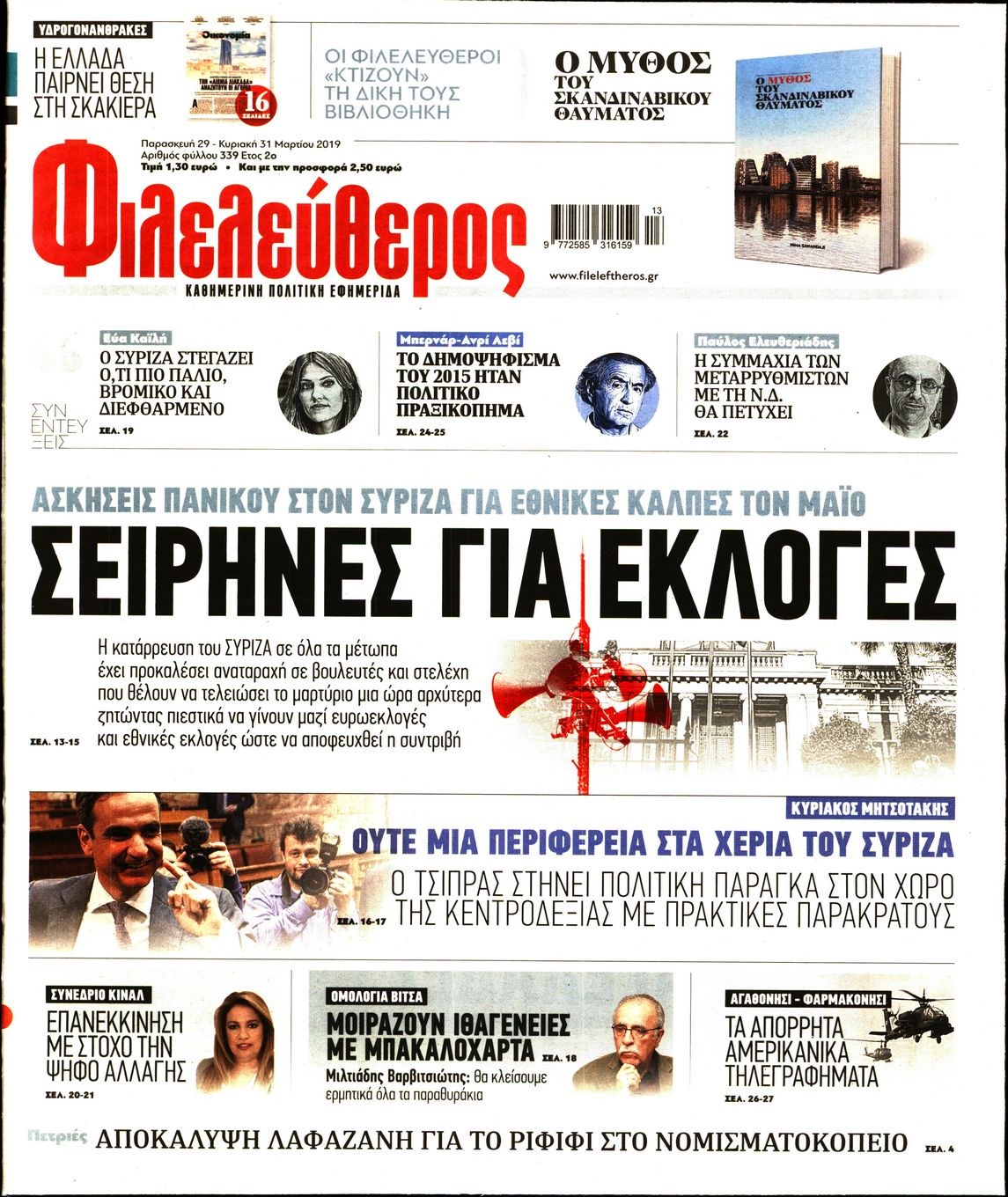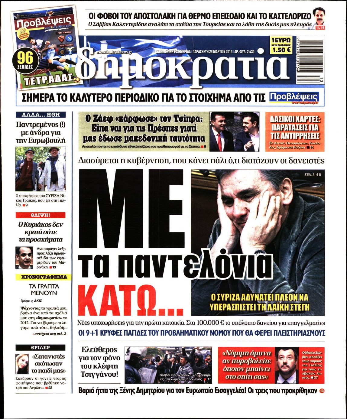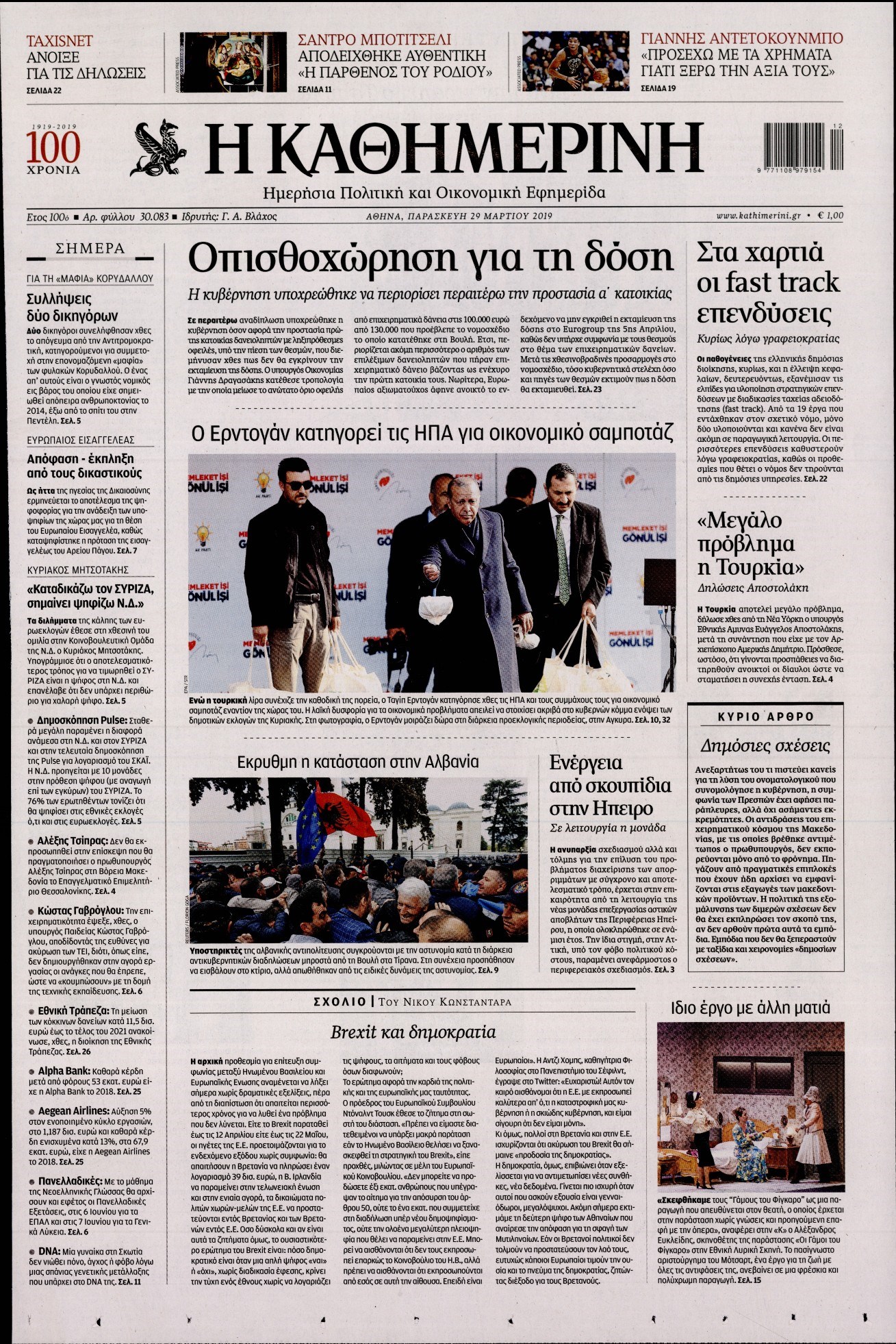 Οι πολιτικές εφημερίδες 29/3/2019 Enikos Newsroom 06:52, Παρασκευή 29 Μαρτίου 2019 Media Διαβάστε τα πρωτοσέλιδα των πολιτικών εφημερίδων: ΠΟΛΙΤΙΚΕΣ ΕΦΗΜΕΡΙΔΕΣ ΠΡΩΤΟΣΕΛΙΔΑ Μοιράσου το: σχολίασε κι εσύ (0 σχόλια) Ακολουθήστε το enikos.gr στο Google News και μάθετε πρώτοι όλες τις ειδήσεις Δείτε όλες τις τελευταίες ειδήσεις από την Ελλάδα και τον Κόσμο στο enikos.gr Ειδήσεις Ροή Ειδήσεων 2 ώρες πριν Χριστούγεννα στα μπλόκα: Επιμένουν στις κινητοποιήσεις τους οι αγρότες – Ανοίγουν τα διόδια το Σαββατοκύριακο 2 ώρες πριν Ουκρανία: Η άνευ προηγουμένου επίθεση σε ρωσικό τάνκερ στη Μεσόγειο και το μήνυμα προς στον Πούτιν – Το «μακρύ χέρι» του Κιέβου 1 ώρα πριν Πούτιν: Τα μηνύματα σε Ευρώπη και ΝΑΤΟ από το μαραθώνιο «σόου» του – Η απαίτηση για «σεβασμό» και η ειρήνη «με τους όρους» της Μόσχας 2 ώρες πριν Τραμπ: Δεν αποκλείει την πιθανότητα ενός πολέμου στη Βενεζουέλα – «Ο Μαδούρο ξέρει καλύτερα από τον καθένα τι ακριβώς θέλω» 3 ώρες πριν Συνεχίζει να προκαλεί ο Μίτσκοσκι: «Για μένα το όνομα Μακεδονία είναι ιερό» 1 ώρα πριν Ανακαλύφθηκαν αρχαία χρυσά νομίσματα 2.200 ετών που απεικονίζουν τον θεό Απόλλωνα – Η άγνωστη σύνδεση με τον Φίλιππο Β΄ της Μακεδονίας 2 ώρες πριν Ύπνος: Μια κρυφή κατάσταση του εγκεφάλου πριν από τον ύπνο μπορεί να είναι το “κλειδί” για υψηλή ευφυΐα και δημιουργικότητα 3 ώρες πριν Αριθμολογία: Οι άνθρωποι που έχουν γεννηθεί αυτές τις 4 ημερομηνίες, συχνά παρεξηγούνται – «Η καλοσύνη τους κρύβει τεράστια δύναμη» 4 ώρες πριν Ξεχάστε το καθάρισμα το Σαββατοκύριακο: Ο «κανόνας των 20 λεπτών» που θα σας λύσει τα χέρια 11 λεπτά πριν Πόλεμος στην Ουκρανία: Εφτά νεκροί από ρωσική πυραυλική επίθεση στο λιμάνι της Οδησσού 14 λεπτά πριν ΗΠΑ: Η κυβέρνηση του Ντόναλντ Τραμπ άρχισε να δημοσιοποιεί τα αρχεία Έπσταϊν 26 λεπτά πριν Σάμος: Άνοιξε το μπλόκο των αγροτών στον κόμβο Κοκκαρίου – Σε νέα συνεδρίαση θα καθορίσουν την στάση τους 34 λεπτά πριν Άνω Λιόσια: Πυροβολισμοί σε επιχείρηση με χαλιά – Εντοπίστηκαν 10 κάλυκες 41 λεπτά πριν Γάζα: Ισραηλινό πλήγμα σε σχολείο που είχαν καταφύγει εκτοπισμένοι – Τουλάχιστον έξι νεκροί ENIKOS NETWORK Το ΕΚΑΒ τιμήθηκε από την Ακαδημία Αθηνών για τα 40 χρόνια προσφοράς του Έχετε πραγματικά μεγάλη καρδιά; 10 χαρακτηριστικά όσων έχουν καλοσύνη Αναστολή μέτρων αναγκαστικής εκτέλεσης για κτηνοτρόφους που πλήττονται από την ευλογιά των αιγοπροβάτων Πλήρης επάρκεια προϊόντων στις λαϊκές της Αττικής, παρά τις αγροτικές κινητοποιήσεις – Τι απαντούν οι πωλητές Χαρτογραφώντας το «σημείο χωρίς επιστροφή»: Για πρώτη φορά αποκαλύπτεται με λεπτομέρεια το ακανθώδες όριο της ατμόσφαιρας τ... Η Google καταργεί τη λειτουργία «dark web report» – Πώς θα μπορούν οι χρήστες να διαγράφουν τα δεδομένα τους περισσότερα 22:42 , Παρασκευή 19 Δεκεμβρίου 2025 Γιώργος Γιαννόπουλος για “Το σόι σου”: “Είναι ευτυχία και ευλογία αυτή η σειρά” «Είναι ευτυχία και ευλογία η συγκυρία αυτής της σειράς», θα πει ο Γιώργος Γιαννόπουλος -ο αγαπ... 20:37 , Παρασκευή 19 Δεκεμβρίου 2025 Don’t Forget The Lyrics: Η Έλλη Κοκκίνου υποδέχεται 4 παίκτες που θα κάνουν τα πάντα για να μη χάσουν ούτε… μισή λέξη από τους στίχους Το «Don’t Forget The Lyrics» επιστρέφει απόψε, Παρασκευή 19 Δεκεμβρίου, στις 21:00 με νέο επει... 19:31 , Παρασκευή 19 Δεκεμβρίου 2025 GNTM: Απόψε ο μεγάλος τελικός για τους 4 φιναλίστ Έπειτα από μήνες γεμάτους μόδα, δημιουργία και έντονες αναμετρήσεις, το GNTM 2025 κορυφώνεται,... 18:11 , Παρασκευή 19 Δεκεμβρίου 2025 Το σόι σου: Ο Άρης έρχε