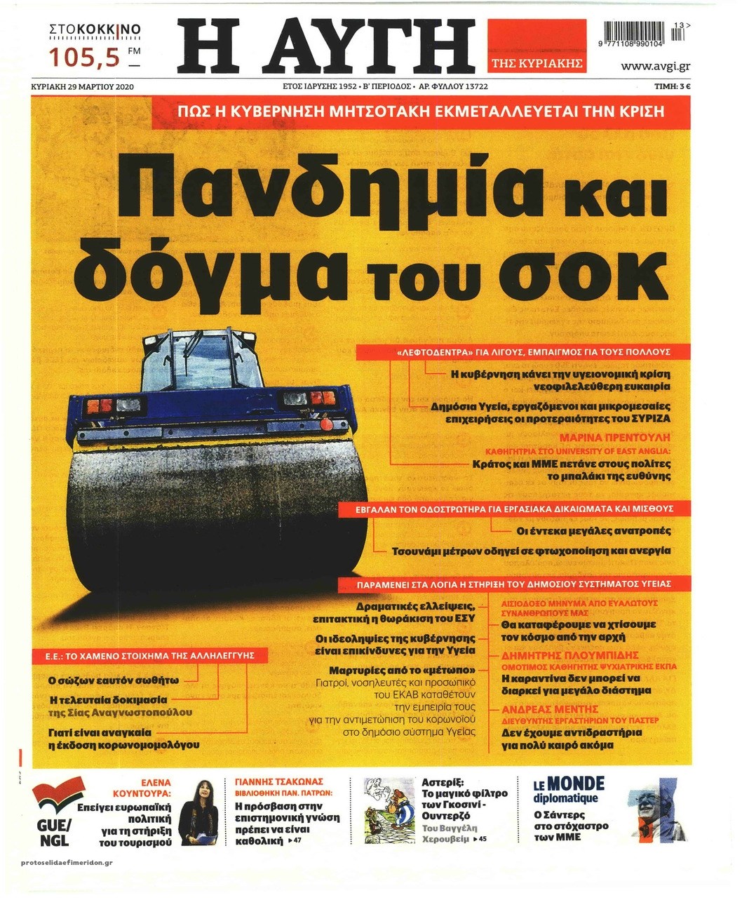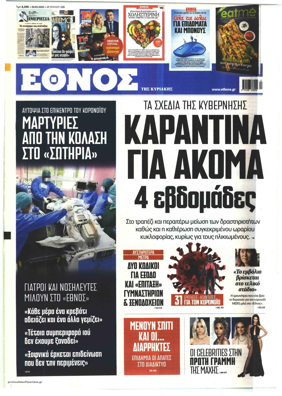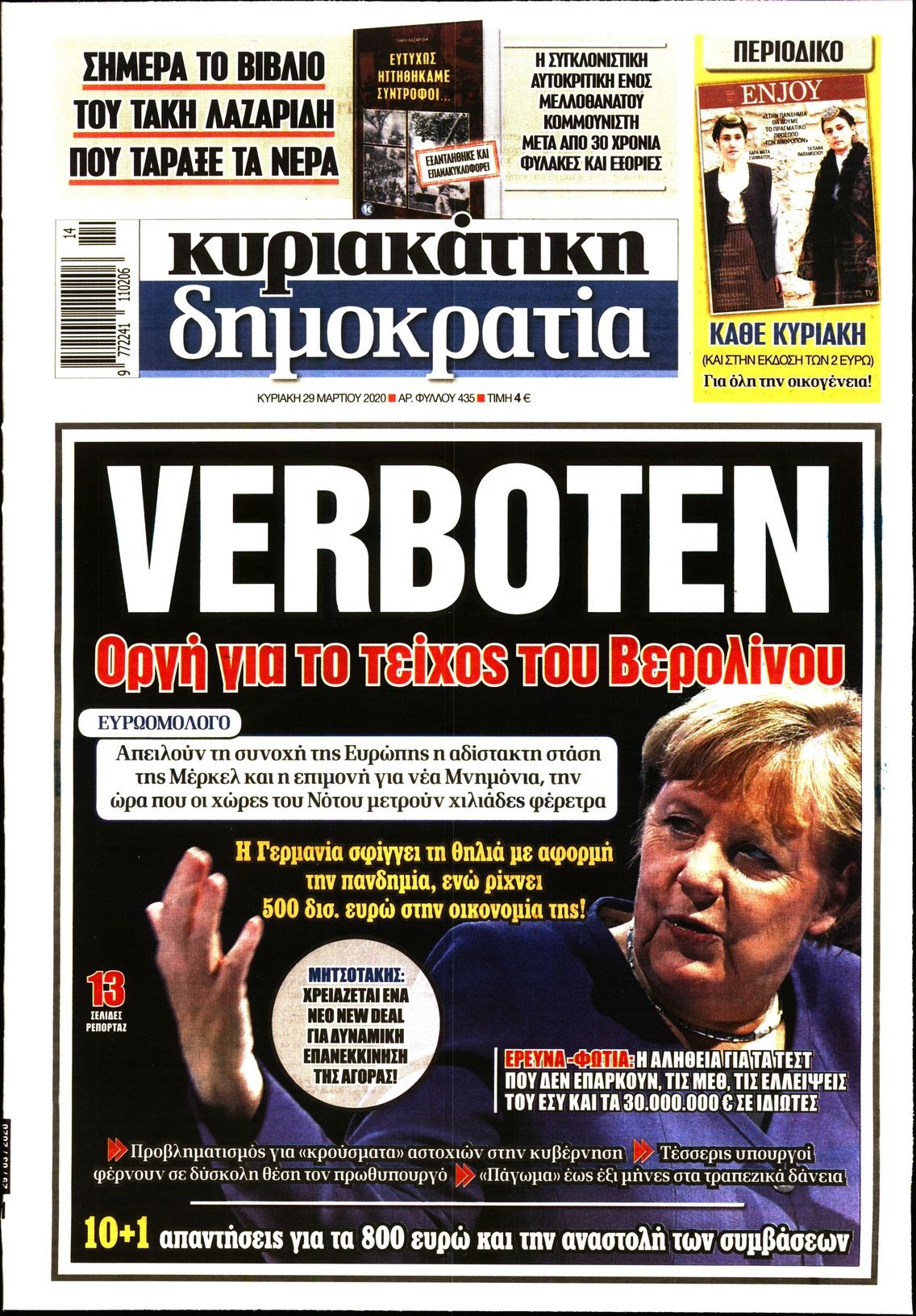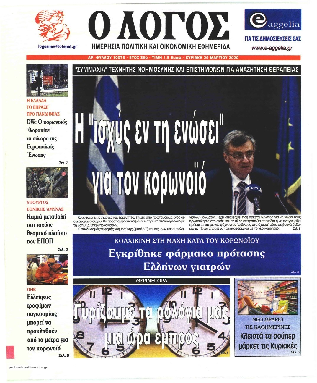 Οι πολιτικές εφημερίδες 29/3/2020 Σήφης Γαρυφαλάκης 07:20, Κυριακή 29 Μαρτίου 2020 Media Διαβάστε τα πρωτοσέλιδα των πολιτικών εφημερίδων… ΕΦΗΜΕΡΙΔΕΣ ΠΟΛΙΤΙΚΕΣ ΕΦΗΜΕΡΙΔΕΣ ΠΡΩΤΟΣΕΛΙΔΑ ΠΡΩΤΟΣΕΛΙΔΑ ΕΦΗΜΕΡΙΔΩΝ Μοιράσου το: σχολίασε κι εσύ (0 σχόλια) Ακολουθήστε το enikos.gr στο Google News και μάθετε πρώτοι όλες τις ειδήσεις Δείτε όλες τις τελευταίες ειδήσεις από την Ελλάδα και τον Κόσμο στο enikos.gr Ειδήσεις Ροή Ειδήσεων 55 λεπτά πριν Ευρωπαϊκή Ένωση: Συμφωνία για δάνειο 90 δισ. ευρώ στην Ουκρανία τη διετία 2026-2027 5 ώρες πριν ΟΠΕΚΕΠΕ: Προφυλακιστέος ο φερόμενος αρχηγός και ο λογιστής της εγκληματικής οργάνωσης 7 ώρες πριν Αυξάνουν την πίεση προς την κυβέρνηση οι αγρότες: Κλείνουν παρακαμπτήριους και ανοίγουν διόδια – Τι θα γίνει τις γιορτές 6 ώρες πριν Φοινικούντα: Το Σάββατο απολογείται ο 30χρονος γιος γνωστού επιχειρηματία της Πλάκας που παραδόθηκε – Όσα είπε στους αστυνομικούς και ο ρόλος του στο έγκλημα 5 ώρες πριν ΑΕΚ – Κραϊόβα 3-2: Επική ανατροπή και πρόκριση στους «16» του Conference League η Ένωση 6 ώρες πριν Αρχαιολόγοι ανακάλυψαν ρωμαϊκά τεχνουργήματα από μια πόλη που δεν υπήρξε ποτέ – Τα τρία εντυπωσιακά κτίρια και ο αμφορέας με τις… σαρδέλες 7 ώρες πριν Ύπνος: Η απλή βραδινή ρουτίνα για να προστατεύσετε τα μαλλιά σας από το κρύο κατά τη διάρκεια του χειμώνα 8 ώρες πριν Manifesting: Πώς να συναντήσετε τον σύντροφο της ζωής σας, ανάλογα με τον μήνα γέννησής σας 2 ημέρες πριν 20 χρόνια τα Χριστούγεννα ξεκινούν στα Public με μεγάλη ποικιλία σε δώρα! 4 λεπτά πριν Αλεξάντερ Λουκασένκο: Η Λευκορωσία βρίσκεται κοντά στην αποκατάσταση των σχέσεών της με τις ΗΠΑ 19 λεπτά πριν Αυστραλία: Κήρυξε την Κυριακή (21/12) ημέρα εθνικού πένθους για τη φονική επίθεση στην παραλία Μπόνταϊ 29 λεπτά πριν Ρόδος: Δάσκαλος καράτε καταδικάστηκε για ασέλγεια σε ανήλικες αθλήτριες – Μαρτυρίες για αγγίγματα σε ευαίσθητα σημεία 43 λεπτά πριν Γουατεμάλα: Εξαρθρώθηκε κύκλωμα διακίνησης μεταναστών προς τις ΗΠΑ – Συνελήφθησαν 14 άτομα 48 λεπτά πριν Βουλγαρία: Χιλιάδες πολίτες στους δρόμους κατά της απερχόμενης κυβέρνησης και της διαφθοράς ENIKOS NETWORK Σε περίοδο αυξημένης δραστηριότητας η γρίπη στην Ελλάδα-Μέτρα προστασίας από τον ΕΟΔΥ Σκέφτεστε συνέχεια συζητήσεις που έχετε κάνει; Τι σημαίνει αυτό, σύμφωνα με ειδικό Στεγαστικό: Τι λέει η ΠΟΜΙΔΑ για τα νέα μέτρα που ανακοίνωσε ο Κυριάκος Μητσοτάκης Λαγκάρντ: Αισιόδοξη για την ανάπτυξη της Ευρωζώνης, αβέβαιη για τον πληθωρισμό Χαρτογραφώντας το «σημείο χωρίς επιστροφή»: Για πρώτη φορά αποκαλύπτεται με λεπτομέρεια το ακανθώδες όριο της ατμόσφαιρας τ... Η Google καταργεί τη λειτουργία «dark web report» – Πώς θα μπορούν οι χρήστες να διαγράφουν τα δεδομένα τους περισσότερα 02:50 , Παρασκευή 19 Δεκεμβρίου 2025 GNTM: «Κλείδωσαν» οι τέσσερις φιναλίστ – Μεγάλη ανατροπή στις τελευταίες αποχωρήσεις Για προτελευταία φορά εμφανίστηκαν στο πλατό του GNTM οι φιναλίστ του φετινού κύκλου, το βράδυ... 17:45 , Πέμπτη 18 Δεκεμβρίου 2025 ROUK ZOUK: Εορταστικό επεισόδιο με καλεσμένους τους πρωταγωνιστές του «Γιατί ρε πατέρα» Το Σάββατο 20 Δεκεμβρίου στις 21:00, η Ζέτα Μακρυπούλια υποδέχεται εκλεκτούς ηθοποιούς που όλο... 17:20 , Πέμπτη 18 Δεκεμβρίου 2025 Άγιος έρωτας: Η Χριστίνα εξομολογείται στον πατέρα Νικόλαο, απόψε στις 21:00 στον Alpha Η Νότα αποφασίζει να εκδικηθεί τον Πέτρο και τον Στέφανο, για χάρη του Λούη, όμως τα πράγματα ... 16:50 , Πέμπτη 18 Δεκεμβρίου 2025 Να μ’ αγαπάς: Ζωή και Φωτεινή συμφιλιώνονται ως μάνα με κόρη, από