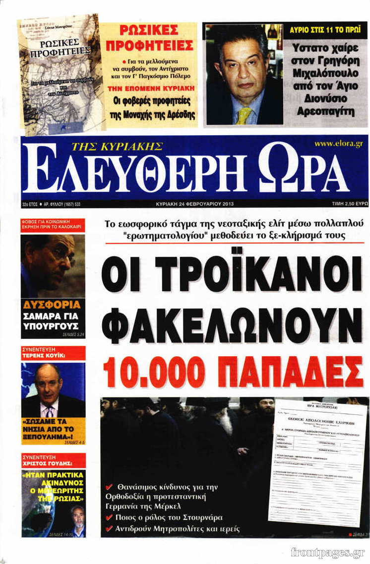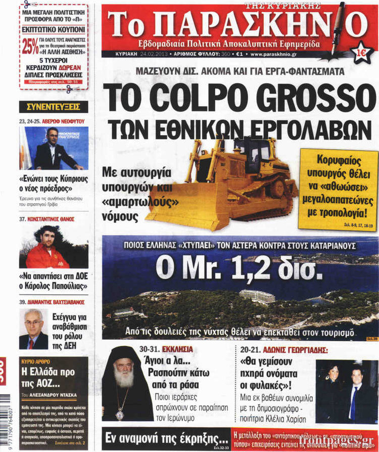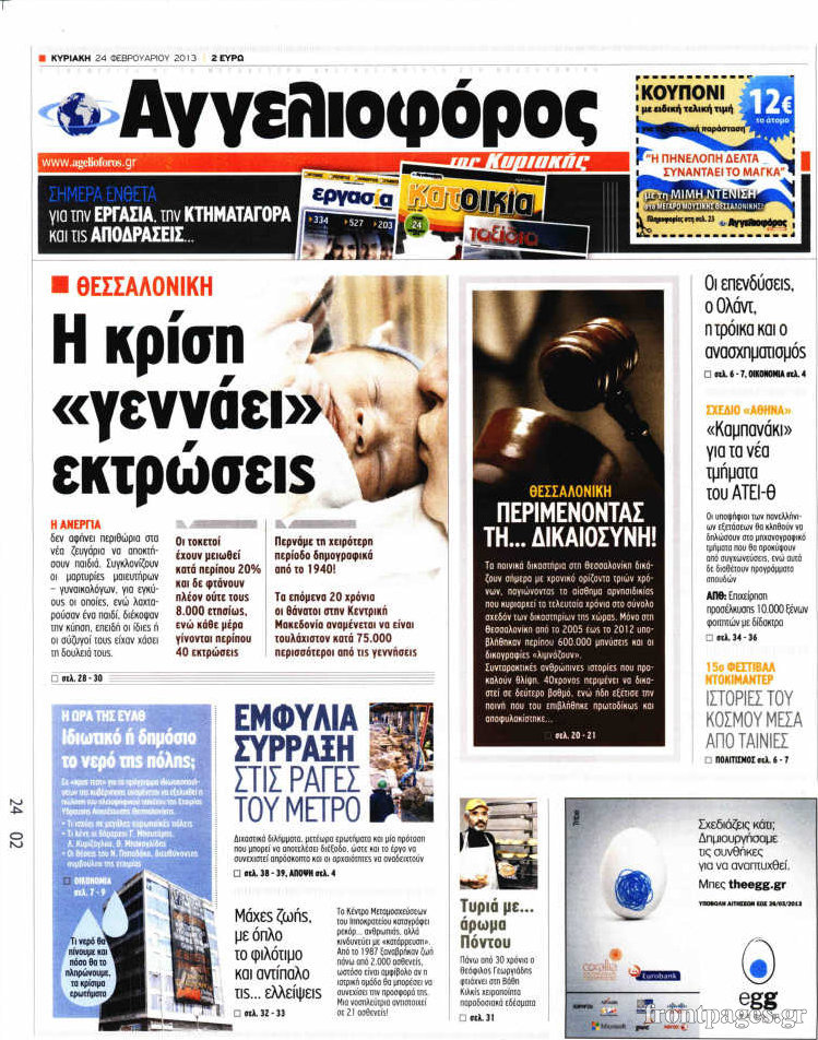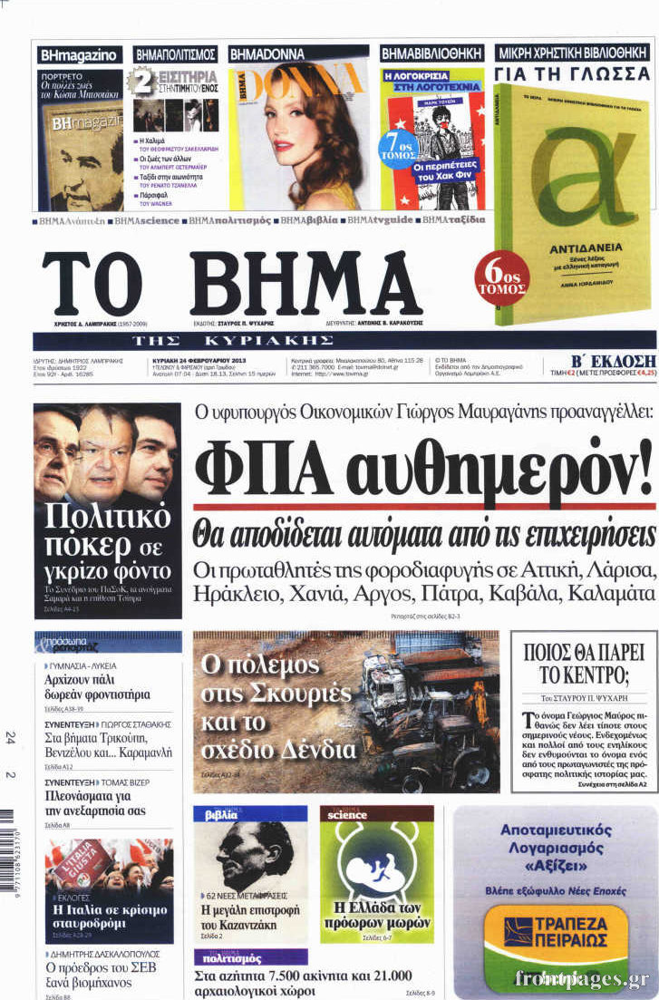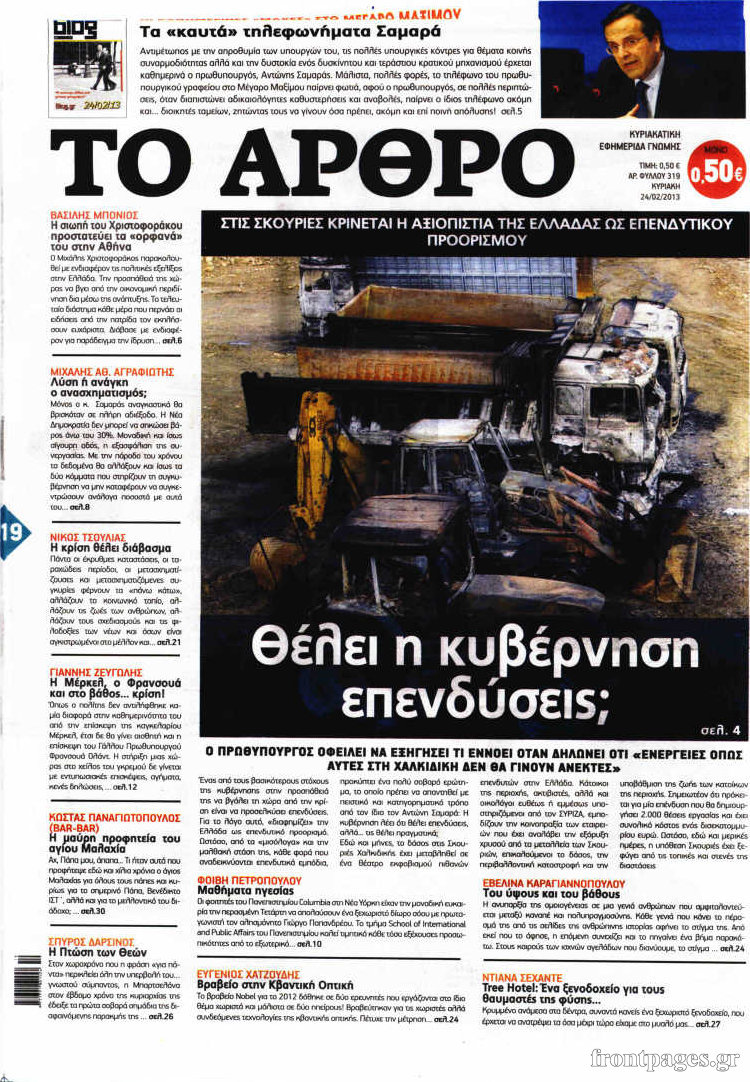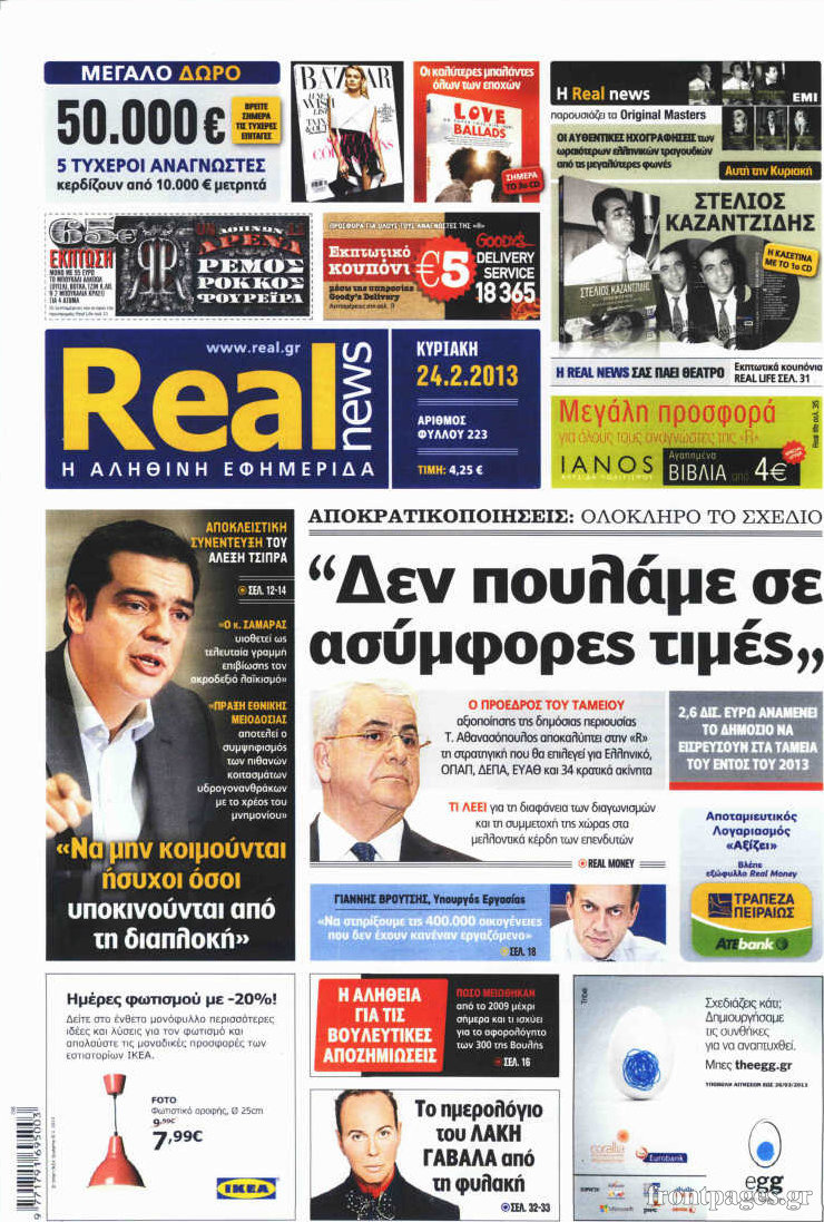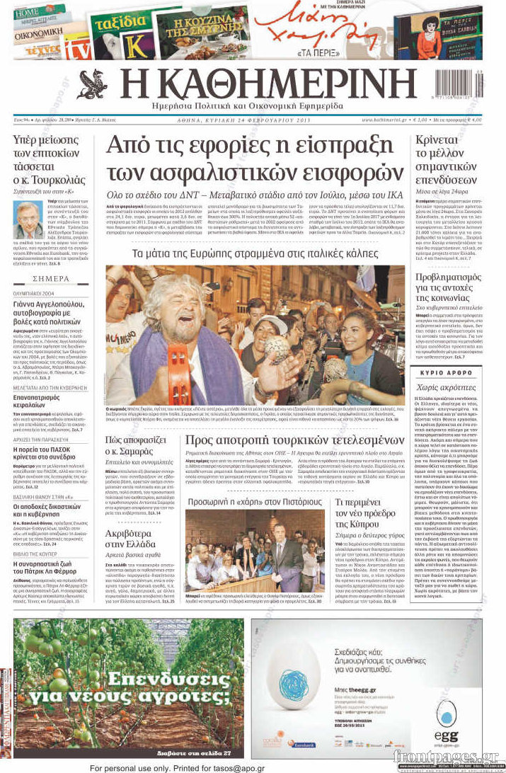 Οι πολιτικές εφημερίδες Enikos Newsroom 08:48, Κυριακή 24 Φεβρουαρίου 2013 Media Οι πολιτικές εφημερίδες Τα πρωτοσέλιδα των πολιτικών εφημερίδων. ΕΦΗΜΕΡΙΔΕΣ ΠΟΛΙΤΙΚΕΣ ΕΦΗΜΕΡΙΔΕΣ ΠΡΩΤΟΣΕΛΙΔΑ Μοιράσου το: σχολίασε κι εσύ (0 σχόλια) Ακολουθήστε το enikos.gr στο Google News και μάθετε πρώτοι όλες τις ειδήσεις Δείτε όλες τις τελευταίες ειδήσεις από την Ελλάδα και τον Κόσμο στο enikos.gr Ειδήσεις Ροή Ειδήσεων 4 ώρες πριν Υπόθεση Έπσταϊν: Το Υπουργείο Δικαιοσύνης δημοσιοποίησε μια σειρά από εξαιρετικά επεξεργασμένα αρχεία – «Λείπουν τα πιο σημαντικά έγγραφα», λένε οι Δημοκρατικοί 1 ώρα πριν Γιορτές με μπλόκα για τους αγρότες: Ανοίγουν διόδια και μοιράζουν προϊόντα στους ταξιδιώτες 2 ώρες πριν Εξαφάνιση 33χρονου γιατρού στην Κρήτη: «Άναψα τα φώτα, τρόμαξε και άρχισε να τρέχει στα χωράφια» – Η τελευταία διαδρομή και η μαρτυρία «κλειδί» 3 ώρες πριν Ο «χάρτης» με τις αυξήσεις και τις φοροελαφρύνσεις του 2026 – Ποιοι και πόσα κερδίζουν 1 ώρα πριν Τα αρχεία του Έπσταϊν αποκαλύπτουν φωτογραφία του έκπτωτου πρίγκιπα Άντριου – Είναι ξαπλωμένος στην αγκαλιά 5 γυναικών 1 ώρα πριν Μία νέα «χρυσή» περίοδος αρχίζει για 3 ζώδια από σήμερα – «Μία αναπάντεχη ευκαιρία οδηγεί στην επιτυχία» 6 ώρες πριν Αυγά: Πόσα μπορείτε να τρώτε την ημέρα με ασφάλεια για μέγιστη πρόσληψη πρωτεΐνης 4 ώρες πριν Αρχαιολόγοι ανακάλυψαν σε χωράφι απεικόνιση 600 ετών ενός Αγίου – Τα στοιχεία που δείχνουν ότι μαρτύρησε 3 ώρες πριν Αγχώνεται για το χριστουγεννιάτικο δώρο που πήρε στην πλούσια σύντροφό του – «Φοβάμαι πως θα το βρει φθηνιάρικο, φοράει βραχιόλια Cartier» 5 λεπτά πριν Στέφανος Παπαδόπουλος: Η συνέντευξη μετά τη μήνυση στον Γιώργο Μαζωνάκη – «Δεν θέλω να τα βρούμε εξωδικαστικά» 12 λεπτά πριν Τραγωδία στην άσφαλτο στα Χανιά: Νεκρός 37χρονος οδηγός ΙΧ – Τον βρήκαν ώρες μετά το τροχαίο 21 λεπτά πριν Τα Labubu «μετακομίζουν» στο Χόλιγουντ: Η Sony Pictures ετοιμάζει live-action ταινία με τον σκηνοθέτη του «Wonka» 28 λεπτά πριν Νέες ταυτότητες: Μεγάλη αναμονή για ραντεβού στην Αττική – Τέλος τα ταξίδια εκτός Ελλάδος από τον Αύγουστο για όσους δεν έχουν αλλάξει 37 λεπτά πριν Οι 7 φράσεις που δεν λένε ποτέ οι συναισθηματικά έξυπνοι άνθρωποι κατά τη διάρκεια ενός καβγά ENIKOS NETWORK Είστε μόνιμα απρόσεκτοι; 3 σημάδια που δείχνουν ότι μπορεί να είναι σύμπτωμα πάθησης Πόσα κιλά παίρνουμε πραγματικά τα Χριστούγεννα, σύμφωνα με την επιστήμη – Πώς να το αποτρέψουμε; e-ΕΦΚΑ και ΔΥΠΑ: Έρχονται νέες πληρωμές έως τις 24 Δεκεμβρίου – Ποιοι πάνε ταμείο Επίδομα παιδιού: Τι αλλάζει από το 2026 – Το όφελος από τις φορολογικές ελαφρύνσεις Χαρτογραφώντας το «σημείο χωρίς επιστροφή»: Για πρώτη φορά αποκαλύπτεται με λεπτομέρεια το ακανθώδες όριο της ατμόσφαιρας τ... Η Google καταργεί τη λειτουργία «dark web report» – Πώς θα μπορούν οι χρήστες να διαγράφουν τα δεδομένα τους περισσότερα 09:30 , Σάββατο 20 Δεκεμβρίου 2025 «Porto Leone: Στη γειτονιά με τα κόκκινα φανάρια» – Ο Χρόνης αποκαλύπτει στην Αλεξάνδρα το μυστικό για το παιδί της Λένας Η μεγάλη δραματική σειρά του Apha «Porto Leone: Στη γειτονιά με τα κόκκινα φανάρια» μας μεταφέ... 08:14 , Σάββατο 20 Δεκεμβρίου 2025 Τρομεροί γονείς: Η Μαρία Καβογιάννη εισβάλλει στο σπίτι της οικογένειας Στεφανίδη Όσα θα δούμε στο νέο διπλό επεισόδιο της σειράς «Τρομεροί γονείς», σήμερα Σάββατο 20 Δεκεμβρίο... 05:48 , Σάββατο 20 Δεκεμβρίου 2025 Οι οικονομικές εφημερίδες 20/12/2025 Διαβάστε τα πρωτοσέλιδα από τις οικονομικές εφημερίδες, σήμερα 20/12/2025. 05:43 , Σάββατο 20 Δ