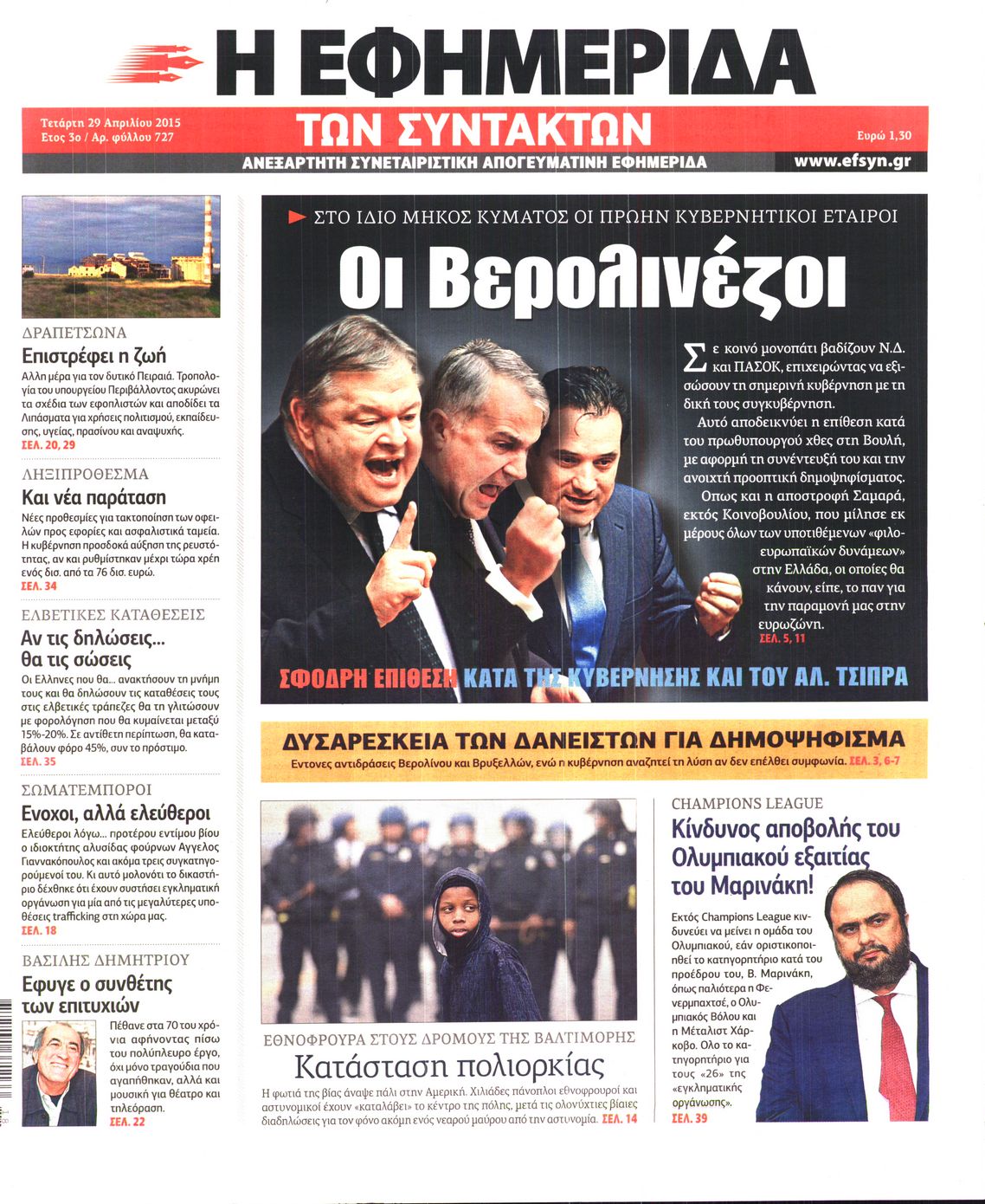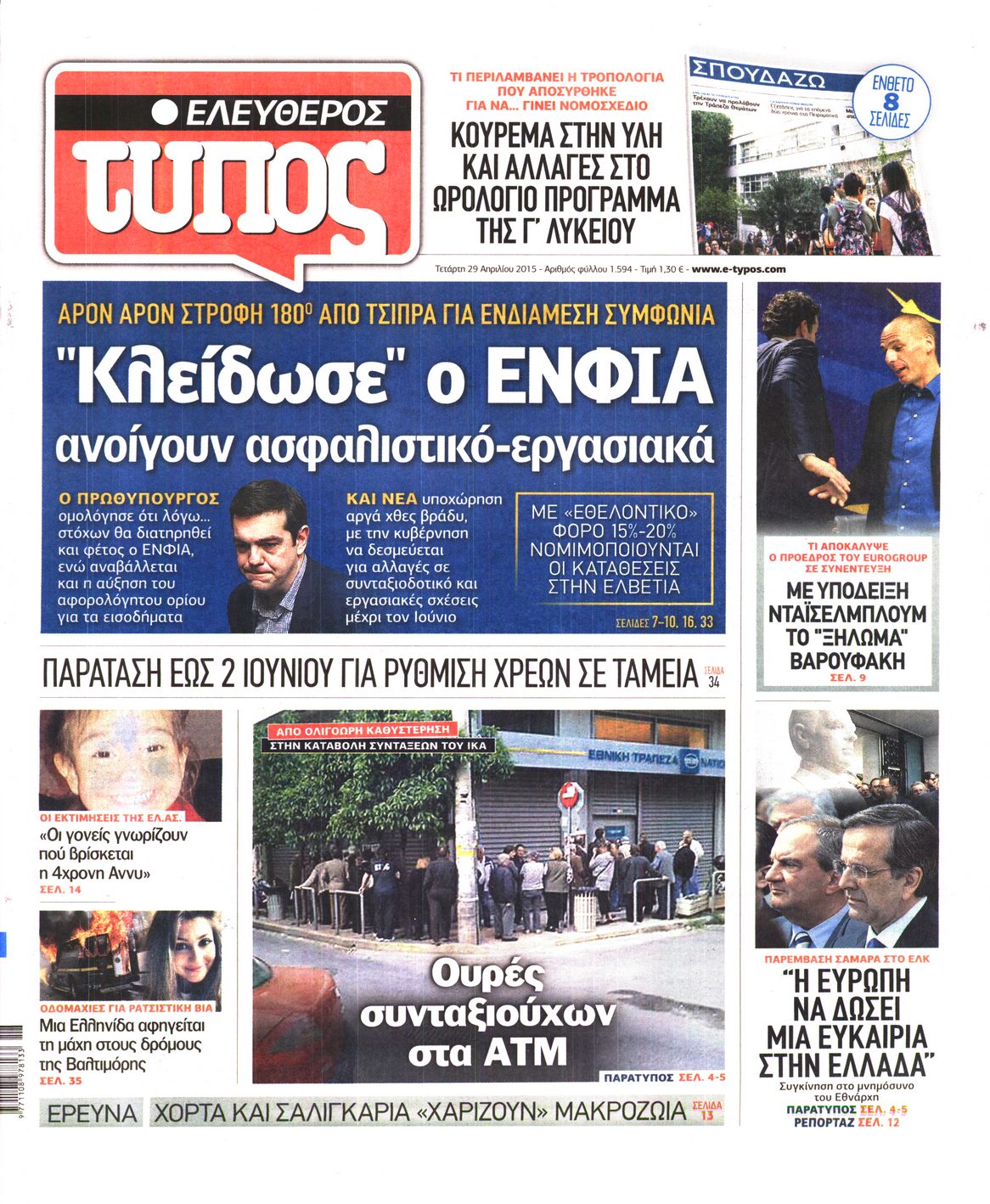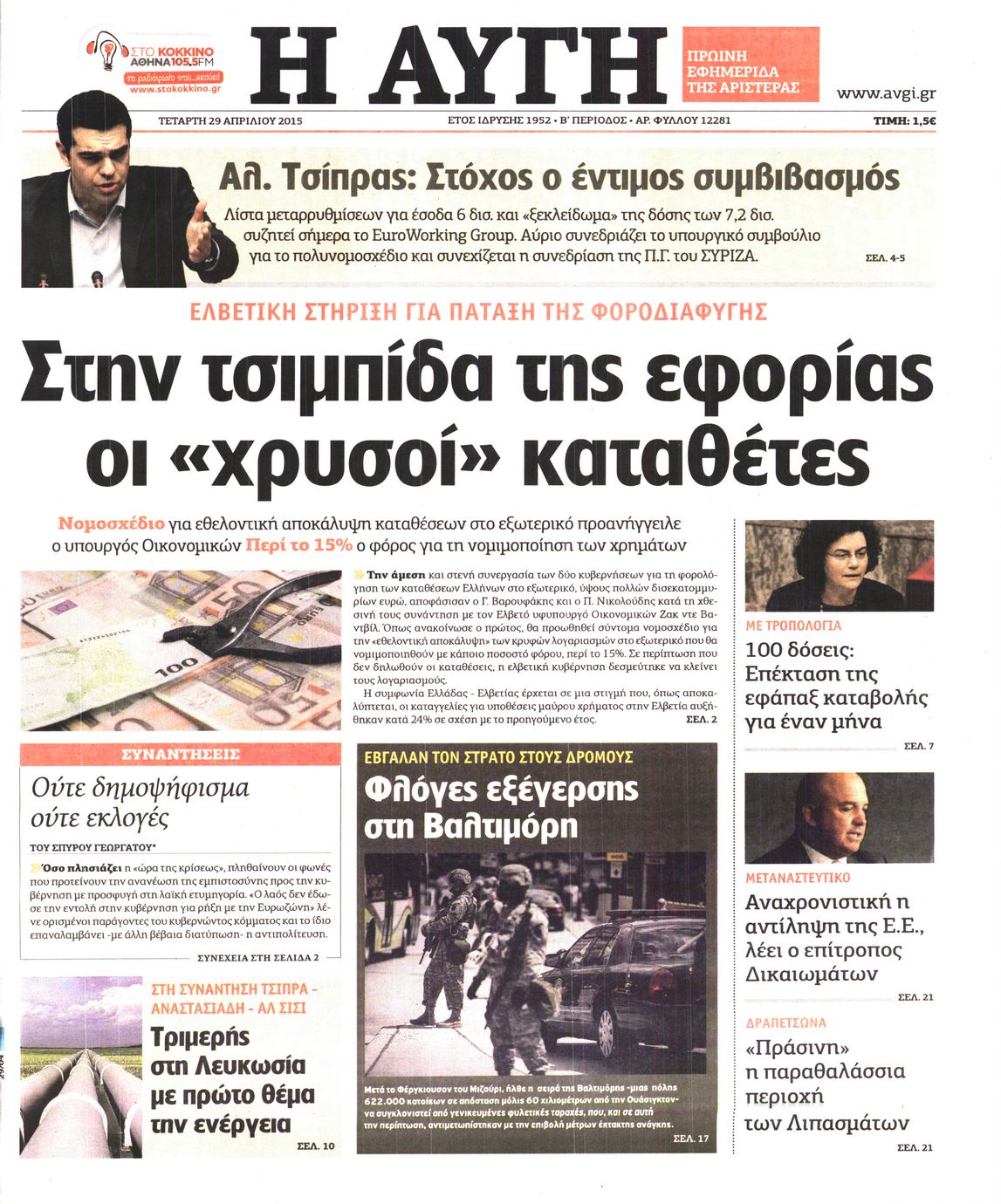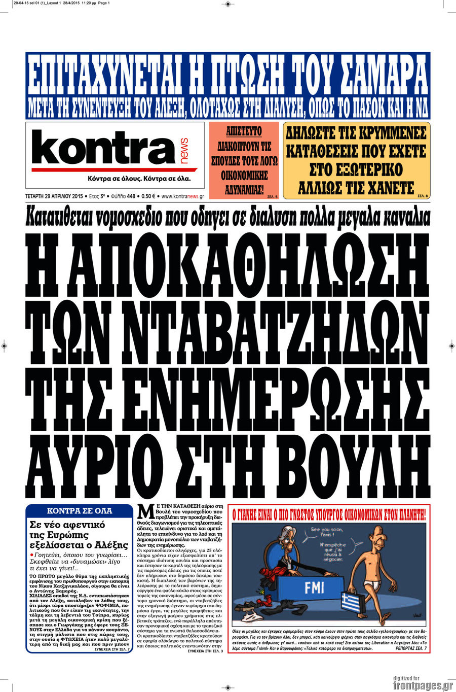 Οι πολιτικές εφημερίδες 29/4/2015 Enikos Newsroom 07:22, Τετάρτη 29 Απριλίου 2015 Media Διαβάστε τα σημερινά πρωτοσέλιδα των πολιτικών εφημερίδων: ΠΟΛΙΤΙΚΕΣ ΕΦΗΜΕΡΙΔΕΣ ΠΡΩΤΟΣΕΛΙΔΑ Μοιράσου το: σχολίασε κι εσύ (0 σχόλια) Ακολουθήστε το enikos.gr στο Google News και μάθετε πρώτοι όλες τις ειδήσεις Δείτε όλες τις τελευταίες ειδήσεις από την Ελλάδα και τον Κόσμο στο enikos.gr Ειδήσεις Ροή Ειδήσεων 1 ώρα πριν Υπόθεση Έπσταϊν: Το Υπουργείο Δικαιοσύνης δημοσιοποίησε μια σειρά από εξαιρετικά επεξεργασμένα αρχεία – «Λείπουν τα πιο σημαντικά έγγραφα», λένε οι Δημοκρατικοί 33 λεπτά πριν Ο «χάρτης» με τις αυξήσεις και τις φοροελαφρύνσεις του 2026 – Ποιοι και πόσα κερδίζουν 11 ώρες πριν Χριστούγεννα στα μπλόκα: Επιμένουν στις κινητοποιήσεις τους οι αγρότες – Ανοίγουν τα διόδια το Σαββατοκύριακο 2 ώρες πριν ΟΝΕΧ – MEGATUGS: Ξεκίνησε η ναυπήγηση ρυμουλκών στην Ελλάδα – Προθάλαμος πολεμικών πλοίων – Δείτε φωτογραφίες και βίντεο 1 ώρα πριν Καιρός: Αλλαγή σκηνικού σήμερα με βροχές και πτώση της θερμοκρασίας – Οι προβλέψεις των μετεωρολόγων για τα Χριστούγεννα 3 ώρες πριν Αυγά: Πόσα μπορείτε να τρώτε την ημέρα με ασφάλεια για μέγιστη πρόσληψη πρωτεΐνης 4 ώρες πριν Τα ζώδια σήμερα, Σάββατο 20 Δεκεμβρίου: Παρθένοι, το σύμπαν σας δίνει το κλειδί 3 ώρες πριν Οπτική ψευδαίσθηση: Μόνο αν είσαι ο Σέρλοκ Χολμς θα βρεις τον αριθμό «87» σε 7 δευτερόλεπτα 1 ώρα πριν Αρχαιολόγοι ανακάλυψαν σε χωράφι απεικόνιση 600 ετών ενός Αγίου – Τα στοιχεία που δείχνουν ότι μαρτύρησε 5 λεπτά πριν Παιδική υπέρταση: Μια σιωπηλή απειλή που αυξάνεται διεθνώς 5 λεπτά πριν Αγχώνεται για το χριστουγεννιάτικο δώρο που πήρε στην πλούσια σύντροφό του – «Φοβάμαι πως θα το βρει φθηνιάρικο, φοράει βραχιόλια Cartier» 12 λεπτά πριν Enerwave: Το νέο «ρεύμα» στη λιανική ενέργειας που αλλάζει την εμπειρία του καταναλωτή 17 λεπτά πριν Γιώργος Μαζωνάκης: Τη Δευτέρα η μήνυση του τραγουδιστή κατά του 22χρονου 26 λεπτά πριν Αμαλία Κωστοπούλου: Το μήνυμα για το χειρουργείο στο γόνατο – «Αυτός ο τραυματισμός μού στέρησε πολλά…» ENIKOS NETWORK Πόσα κιλά παίρνουμε πραγματικά τα Χριστούγεννα, σύμφωνα με την επιστήμη – Πώς να το αποτρέψουμε; Το δημοφιλές ρόφημα που αυξάνει την πίεση πιο γρήγορα και από το αλάτι Mega χριστουγεννιάτικη φορολοταρία: «Κλείδωσε» η ημερομηνία για την κλήρωση – Ερωτήσεις και απαντήσεις Αναστολή μέτρων αναγκαστικής εκτέλεσης για κτηνοτρόφους που πλήττονται από την ευλογιά των αιγοπροβάτων Χαρτογραφώντας το «σημείο χωρίς επιστροφή»: Για πρώτη φορά αποκαλύπτεται με λεπτομέρεια το ακανθώδες όριο της ατμόσφαιρας τ... Η Google καταργεί τη λειτουργία «dark web report» – Πώς θα μπορούν οι χρήστες να διαγράφουν τα δεδομένα τους περισσότερα 08:14 , Σάββατο 20 Δεκεμβρίου 2025 Τρομεροί γονείς: Η Μαρία Καβογιάννη εισβάλλει στο σπίτι της οικογένειας Στεφανίδη Όσα θα δούμε στο νέο διπλό επεισόδιο της σειράς «Τρομεροί γονείς», σήμερα Σάββατο 20 Δεκεμβρίο... 05:48 , Σάββατο 20 Δεκεμβρίου 2025 Οι οικονομικές εφημερίδες 20/12/2025 Διαβάστε τα πρωτοσέλιδα από τις οικονομικές εφημερίδες, σήμερα 20/12/2025. 05:43 , Σάββατο 20 Δεκεμβρίου 2025 Οι αθλητικές εφημερίδες 20/12/2025 Διαβάστε τα πρωτοσέλιδα από τις αθλητικές εφημερίδες, σήμερα 20/12/2025. 05:38 , Σάββατο 20 Δεκεμβρίου 2025 Οι πολιτικές εφημερίδες 20/12/2025 Διαβάστε τα πρωτοσέλιδα από τις πολιτικές εφημερίδες, σήμερα 20/12/2025. ΤΕΛΕΥΤΑΙΕΣ ΕΙΔΗΣΕΙΣ 5 λεπτά πριν Παιδική υπέρταση: Μια σιωπηλή απειλή που αυξάνεται... 5 λεπτά πριν Αγχώνεται για το χριστουγε