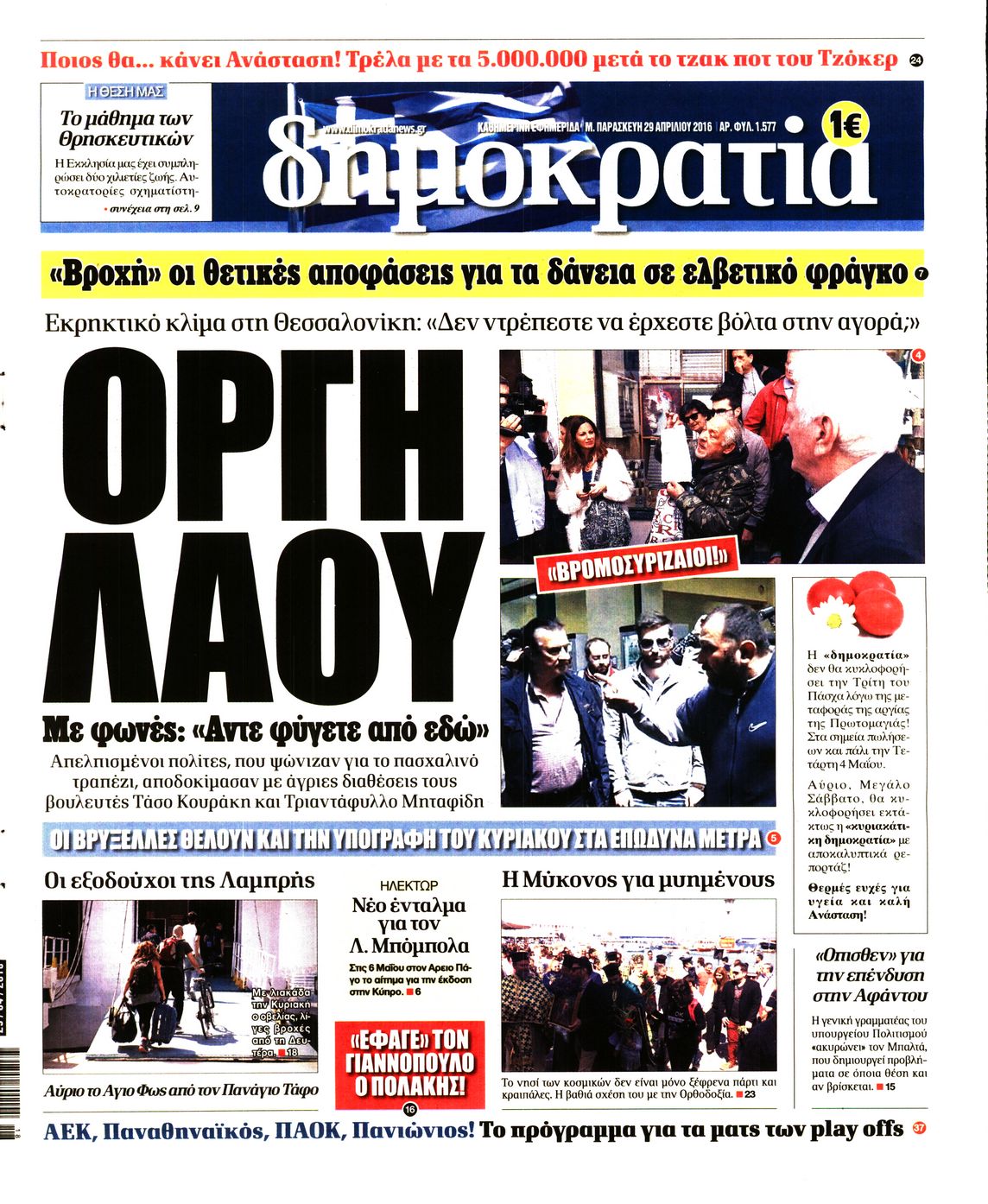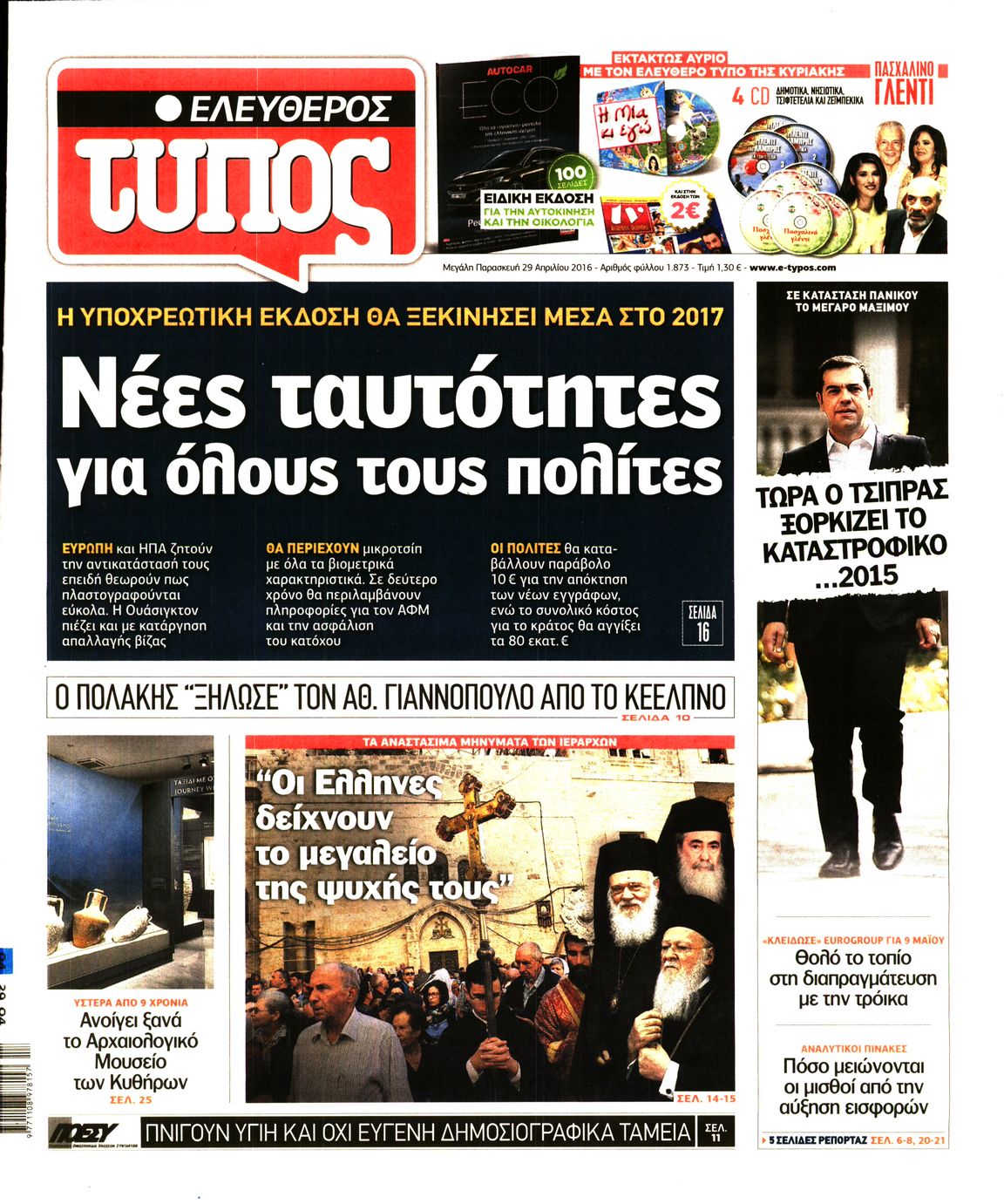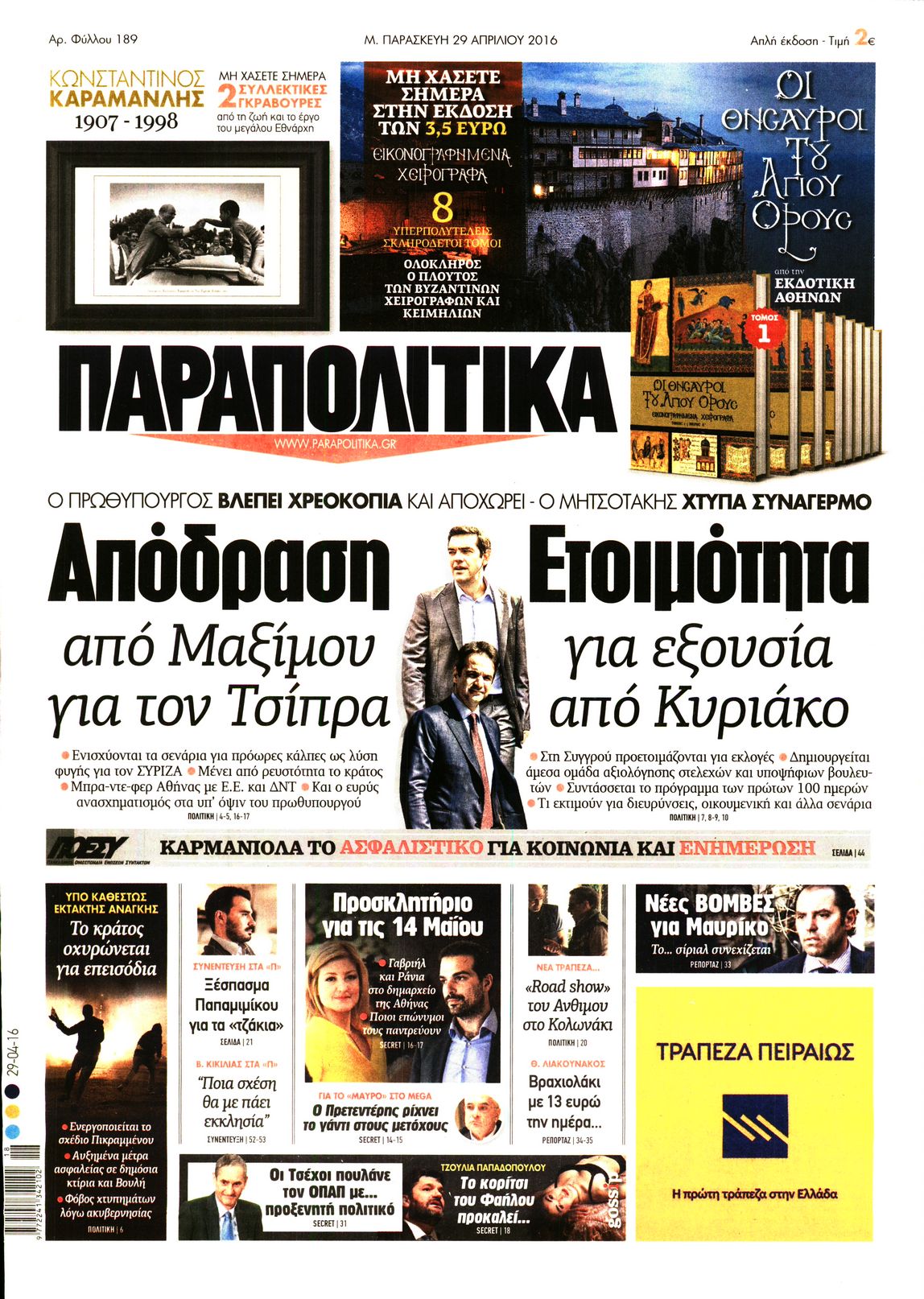 Oι πολιτικές εφημερίδες 29/4/2016 Enikos Newsroom 05:53, Παρασκευή 29 Απριλίου 2016 Media Διαβάστε τα σημερινά πρωτοσέλιδα των πολιτικών εφημερίδων: ΠΟΛΙΤΙΚΕΣ ΕΦΗΜΕΡΙΔΕΣ ΠΡΩΤΟΣΕΛΙΔΑ Μοιράσου το: σχολίασε κι εσύ (0 σχόλια) Ακολουθήστε το enikos.gr στο Google News και μάθετε πρώτοι όλες τις ειδήσεις Δείτε όλες τις τελευταίες ειδήσεις από την Ελλάδα και τον Κόσμο στο enikos.gr Ειδήσεις Ροή Ειδήσεων 23 λεπτά πριν Τραμπ: Δεν αποκλείει την πιθανότητα ενός πολέμου στη Βενεζουέλα – «Ο Μαδούρο ξέρει καλύτερα από τον καθένα τι ακριβώς θέλω» 17 λεπτά πριν Ουκρανία: Η άνευ προηγουμένου επίθεση σε ρωσικό τάνκερ στη Μεσόγειο και το μήνυμα προς στον Πούτιν – Το «μακρύ χέρι» του Κιέβου 3 ώρες πριν Εμπλοκή και αερομαχίες με οπλισμένα τουρκικά F-16 στο Αιγαίο 3 ώρες πριν Πούτιν: «Ναι, είμαι ερωτευμένος» – Βίντεο από τη σπάνια προσωπική παραδοχή του 1 ώρα πριν Ανδρέας Λυκουρέντζος: Υπέβαλε την παραίτησή του ο πρόεδρος του ΕΛΓΑ, αλλά δεν έγινε δεκτή – Όλο το παρασκήνιο 2 ώρες πριν Αριθμολογία: Οι άνθρωποι που έχουν γεννηθεί αυτές τις 4 ημερομηνίες, συχνά παρεξηγούνται – «Η καλοσύνη τους κρύβει τεράστια δύναμη» 4 ώρες πριν Μήπως έχετε χάσει τον εαυτό σας στη σχέση σας; 7 «αθόρυβες» υποχωρήσεις που μάλλον κάνατε, χωρίς να το συνειδητοποιήσετε 3 ώρες πριν Ξεχάστε το καθάρισμα το Σαββατοκύριακο: Ο «κανόνας των 20 λεπτών» που θα σας λύσει τα χέρια 32 λεπτά πριν Ύπνος: Μια κρυφή κατάσταση του εγκεφάλου πριν από τον ύπνο μπορεί να είναι το “κλειδί” για υψηλή ευφυΐα και δημιουργικότητα 6 λεπτά πριν Χάρι και Μέγκαν: Η σπάνια οικογενειακή φωτογραφία με τον Άρτσι και τη Λίλιμπετ – Τι σχεδιάζουν για τα Χριστούγεννα 13 λεπτά πριν Βασίλης Καρράς: «Είναι πάντα δίπλα μου, δεν έφυγε…», λέει ο αδελφός του 17 λεπτά πριν Ουκρανία: Η άνευ προηγουμένου επίθεση σε ρωσικό τάνκερ στη Μεσόγειο και το μήνυμα προς στον Πούτιν – Το «μακρύ χέρι» του Κιέβου 23 λεπτά πριν Τραμπ: Δεν αποκλείει την πιθανότητα ενός πολέμου στη Βενεζουέλα – «Ο Μαδούρο ξέρει καλύτερα από τον καθένα τι ακριβώς θέλω» 24 λεπτά πριν Κηφισιά: Με πολλές απουσίες κόντρα στον Ολυμπιακό – «Last dance» για τον Τεττέη ENIKOS NETWORK Το ΕΚΑΒ τιμήθηκε από την Ακαδημία Αθηνών για τα 40 χρόνια προσφοράς του Έχετε πραγματικά μεγάλη καρδιά; 10 χαρακτηριστικά όσων έχουν καλοσύνη ΑΑΔΕ: Νέες αναβαθμίσεις στο Ψηφιακό Πελατολόγιο και την εφαρμογή myDATAapp – Τι πρέπει να γνωρίζετε Όμιλος ΔΕΗ: Νέα ορόσημα και ενισχυμένη διαφάνεια στην ετήσια Έκθεση Βιώσιμης Ανάπτυξης Χαρτογραφώντας το «σημείο χωρίς επιστροφή»: Για πρώτη φορά αποκαλύπτεται με λεπτομέρεια το ακανθώδες όριο της ατμόσφαιρας τ... Η Google καταργεί τη λειτουργία «dark web report» – Πώς θα μπορούν οι χρήστες να διαγράφουν τα δεδομένα τους περισσότερα 20:37 , Παρασκευή 19 Δεκεμβρίου 2025 Don’t Forget The Lyrics: Η Έλλη Κοκκίνου υποδέχεται 4 παίκτες που θα κάνουν τα πάντα για να μη χάσουν ούτε… μισή λέξη από τους στίχους Το «Don’t Forget The Lyrics» επιστρέφει απόψε, Παρασκευή 19 Δεκεμβρίου, στις 21:00 με νέο επει... 19:31 , Παρασκευή 19 Δεκεμβρίου 2025 GNTM: Απόψε ο μεγάλος τελικός για τους 4 φιναλίστ Έπειτα από μήνες γεμάτους μόδα, δημιουργία και έντονες αναμετρήσεις, το GNTM 2025 κορυφώνεται,... 18:11 , Παρασκευή 19 Δεκεμβρίου 2025 Το σόι σου: Ο Άρης έρχεται στην Ελλάδα για τις γιορτές των Χριστουγέννων – Τι θα δούμε στο αποψινό εορταστικό επεισόδιο Ένα απολαυστικό, εορταστικό επεισόδιο της σειράς “Το σόι σου”, γεμάτο ευτράπελα αλ... 15:15 , Παρασκευή 19 Δεκεμβρίου 2025 Την Κυριακή με τη Realnews
