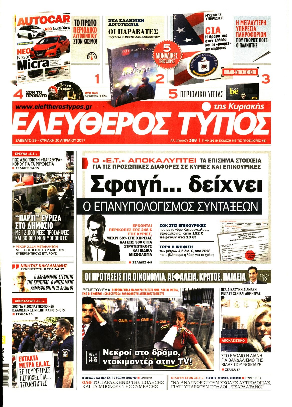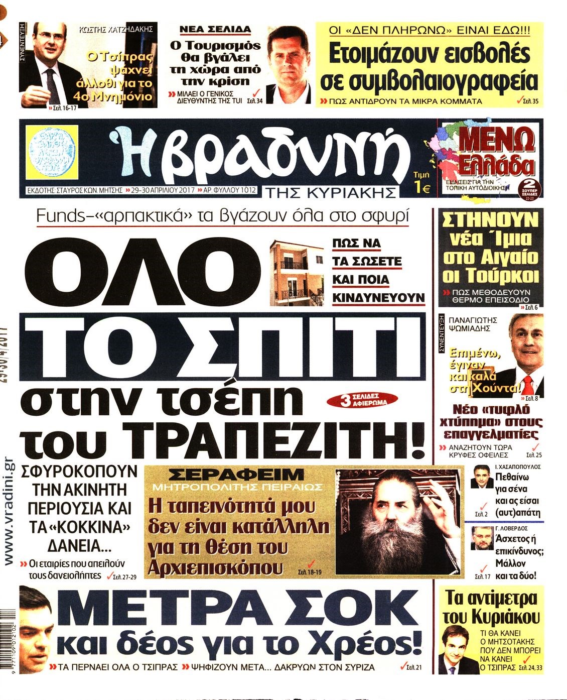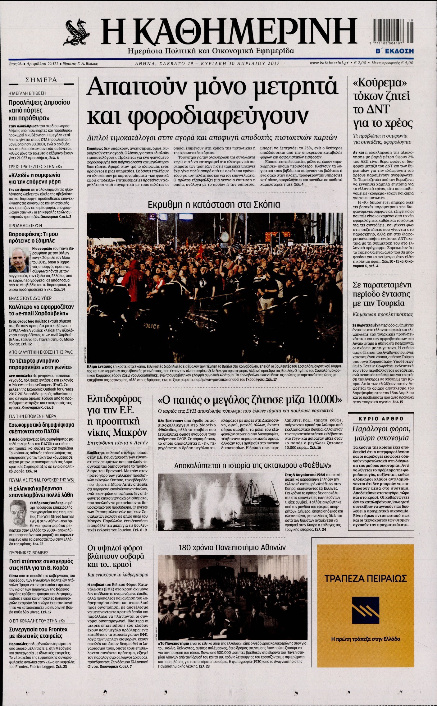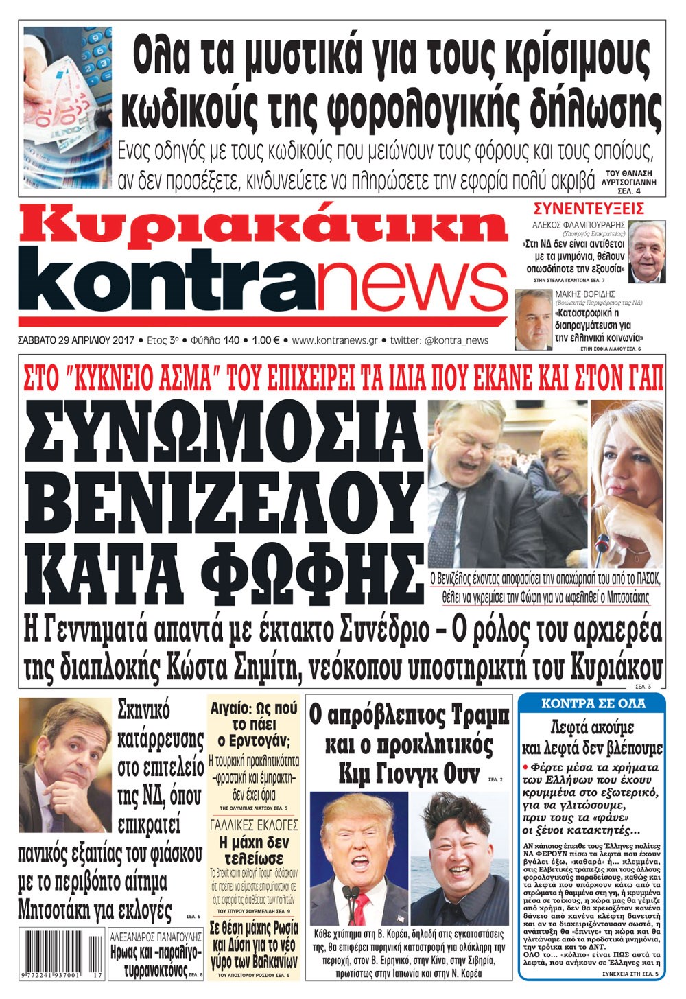 Οι πολιτικές εφημερίδες 29/4/2017 Enikos Newsroom 07:17, Σάββατο 29 Απριλίου 2017 Media Διαβάστε τα σημερινά πρωτοσέλιδα των πολιτικών εφημερίδων: ΠΟΛΙΤΙΚΕΣ ΕΦΗΜΕΡΙΔΕΣ ΠΡΩΤΟΣΕΛΙΔΑ Μοιράσου το: σχολίασε κι εσύ (0 σχόλια) Ακολουθήστε το enikos.gr στο Google News και μάθετε πρώτοι όλες τις ειδήσεις Δείτε όλες τις τελευταίες ειδήσεις από την Ελλάδα και τον Κόσμο στο enikos.gr Ειδήσεις Ροή Ειδήσεων 4 ώρες πριν Χριστούγεννα στα μπλόκα: Επιμένουν στις κινητοποιήσεις τους οι αγρότες – Ανοίγουν τα διόδια το Σαββατοκύριακο 5 ώρες πριν Ουκρανία: Η άνευ προηγουμένου επίθεση σε ρωσικό τάνκερ στη Μεσόγειο και το μήνυμα προς στον Πούτιν – Το «μακρύ χέρι» του Κιέβου 4 ώρες πριν Πούτιν: Τα μηνύματα σε Ευρώπη και ΝΑΤΟ από το μαραθώνιο «σόου» του – Η απαίτηση για «σεβασμό» και η ειρήνη «με τους όρους» της Μόσχας 5 ώρες πριν Τραμπ: Δεν αποκλείει την πιθανότητα ενός πολέμου στη Βενεζουέλα – «Ο Μαδούρο ξέρει καλύτερα από τον καθένα τι ακριβώς θέλω» 5 ώρες πριν Συνεχίζει να προκαλεί ο Μίτσκοσκι: «Για μένα το όνομα Μακεδονία είναι ιερό» 4 ώρες πριν Ανακαλύφθηκαν αρχαία χρυσά νομίσματα 2.200 ετών που απεικονίζουν τον θεό Απόλλωνα – Η άγνωστη σύνδεση με τον Φίλιππο Β΄ της Μακεδονίας 5 ώρες πριν Ύπνος: Μια κρυφή κατάσταση του εγκεφάλου πριν από τον ύπνο μπορεί να είναι το “κλειδί” για υψηλή ευφυΐα και δημιουργικότητα 6 ώρες πριν Αριθμολογία: Οι άνθρωποι που έχουν γεννηθεί αυτές τις 4 ημερομηνίες, συχνά παρεξηγούνται – «Η καλοσύνη τους κρύβει τεράστια δύναμη» 7 ώρες πριν Ξεχάστε το καθάρισμα το Σαββατοκύριακο: Ο «κανόνας των 20 λεπτών» που θα σας λύσει τα χέρια 24 λεπτά πριν Θεσσαλονίκη: Εξαφανίστηκε 13χρονος από χώρο φιλοξενίας ασυνόδευτων ανηλίκων στο Ωραιόκαστρο 34 λεπτά πριν Ντόναλντ Τραμπ: «Πολύ βαριά αντίποινα» στη Συρία – «Πλήττουμε πολύ δυνατά οχυρά του Ισλαμικού Κράτους» 49 λεπτά πριν Εξάρχεια: Ένταση με μολότοφ, χημικά και κρότου λάμψης 1 ώρα πριν ΗΠΑ: Τραγωδία στην Αλαμπάμα – Σκότωσε την δημοσιογράφο σύζυγό του και αυτοκτόνησε μπροστά στον 3χρονο γιο τους 1 ώρα πριν Πρόταση γάμου στο ΣΕΦ κατά την διάρκεια του αγώνα Ολυμπιακός-Βιλερμπάν – Δείτε βίντεο ENIKOS NETWORK Το ΕΚΑΒ τιμήθηκε από την Ακαδημία Αθηνών για τα 40 χρόνια προσφοράς του Έχετε πραγματικά μεγάλη καρδιά; 10 χαρακτηριστικά όσων έχουν καλοσύνη Αναστολή μέτρων αναγκαστικής εκτέλεσης για κτηνοτρόφους που πλήττονται από την ευλογιά των αιγοπροβάτων Πλήρης επάρκεια προϊόντων στις λαϊκές της Αττικής, παρά τις αγροτικές κινητοποιήσεις – Τι απαντούν οι πωλητές Χαρτογραφώντας το «σημείο χωρίς επιστροφή»: Για πρώτη φορά αποκαλύπτεται με λεπτομέρεια το ακανθώδες όριο της ατμόσφαιρας τ... Η Google καταργεί τη λειτουργία «dark web report» – Πώς θα μπορούν οι χρήστες να διαγράφουν τα δεδομένα τους περισσότερα 22:42 , Παρασκευή 19 Δεκεμβρίου 2025 Γιώργος Γιαννόπουλος για “Το σόι σου”: “Είναι ευτυχία και ευλογία αυτή η σειρά” «Είναι ευτυχία και ευλογία η συγκυρία αυτής της σειράς», θα πει ο Γιώργος Γιαννόπουλος -ο αγαπ... 20:37 , Παρασκευή 19 Δεκεμβρίου 2025 Don’t Forget The Lyrics: Η Έλλη Κοκκίνου υποδέχεται 4 παίκτες που θα κάνουν τα πάντα για να μη χάσουν ούτε… μισή λέξη από τους στίχους Το «Don’t Forget The Lyrics» επιστρέφει απόψε, Παρασκευή 19 Δεκεμβρίου, στις 21:00 με νέο επει... 19:31 , Παρασκευή 19 Δεκεμβρίου 2025 GNTM: Απόψε ο μεγάλος τελικός για τους 4 φιναλίστ Έπειτα από μήνες γεμάτους μόδα, δημιουργία και έντονες αναμετρήσεις, το GNTM 2025 κορυφώνεται,... 18:11 , Παρασκευή 19 Δεκεμβρίου 2025 Το σό