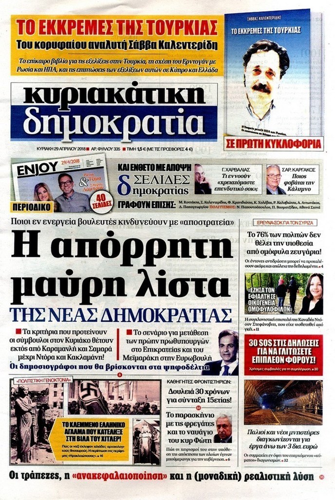 Οι πολιτικές εφημερίδες 29/4/2018 Κώστας Τεό 06:47, Κυριακή 29 Απριλίου 2018 Media Διαβάστε τα σημερινά πρωτοσέλιδα των πολιτικών εφημερίδων: ΠΟΛΙΤΙΚΕΣ ΕΦΗΜΕΡΙΔΕΣ ΠΡΩΤΟΣΕΛΙΔΑ Μοιράσου το: σχολίασε κι εσύ (0 σχόλια) Ακολουθήστε το enikos.gr στο Google News και μάθετε πρώτοι όλες τις ειδήσεις Δείτε όλες τις τελευταίες ειδήσεις από την Ελλάδα και τον Κόσμο στο enikos.gr Ειδήσεις Ροή Ειδήσεων 5 ώρες πριν Χριστούγεννα στα μπλόκα οι αγρότες: Άνοιξαν στα διόδια και μοίρασαν προϊόντα στους πολίτες – Νέα σύσκεψη την Κυριακή στη Νίκαια 5 ώρες πριν Κύκλωμα διακίνησης ναρκωτικών σε σχολεία: Τηλεφωνούσαν στους ανηλίκους την ώρα του μαθήματος – Οι διάλογοι-σοκ, τα «ψευδώνυμα» και τα βασανιστήρια 5 ώρες πριν Αρχεία Επστάιν: Οι 500 σελίδες που λείπουν, τα αναπάντητα ερωτήματα και οι επώνυμοι – Τι έπεται 6 ώρες πριν Ζελένσκι: Μόνο οι ΗΠΑ και ο Τραμπ μπορούν να πιέσουν τη Ρωσία να βάλει τέλος στον πόλεμο 7 ώρες πριν Φοινικούντα: Προφυλακιστέος ο 30χρονος για συνέργεια στη διπλή δολοφονία – Και άλλα πρόσωπα στο «μικροσκόπιο» 5 ώρες πριν Αποκαλύφθηκε το άγνωστο «GPS» της αρχαιότητας – Πώς οι ναοί «φώτιζαν» τον δρόμο των ναυτικών πριν από την εφεύρεση των φάρων 6 ώρες πριν Ύπνος: Η διατροφή που μπορεί να σας βοηθήσει να κοιμάστε καλύτερα και να ζήσετε περισσότερο 7 ώρες πριν Αριθμολογία: Ο αριθμός του φύλακα αγγέλου σας, με βάση τον μήνα γέννησής σας – «Έτσι σας στέλνει σημάδια το σύμπαν» 19 ώρες πριν Enerwave: Το νέο «ρεύμα» στη λιανική ενέργειας που αλλάζει την εμπειρία του καταναλωτή 2 ώρες πριν Σήμερα με τη Realnews: Δωροεπιταγή 10€ 32 λεπτά πριν Σήμερα με τη Realnews: Ό,τι και αν αγοράσεις, σκανάρεις και κερδίζεις! 21 λεπτά πριν Τρεις Αφγανοί μετανάστες πέθαναν από το κρύο προσπαθώντας να φθάσουν στο Ιράν 28 λεπτά πριν Σήμερα με τη Realnews: Instyle, μαζί Drive και Realnews Geopolitics 36 λεπτά πριν Κηφισιά: Το συγκινητικό «Last dance» του Ανδρέα Τεττέη – «Λύγισε» στην τελευταία του συνέντευξη ως παίκτης της ομάδας των βορείων προαστίων ENIKOS NETWORK Οι γυναίκες αποκαλύπτουν το πιο ελκυστικό πράγμα που μπορεί να κάνει ένας άνδρας Ομορφιά και αντιγήρανση: Ειδικοί μιλούν για συσκευές περιποίησης του δέρματος «Πολεμική» προετοιμασία από την ευρωπαϊκή βιομηχανία ενέργειας – Η Eurelectric ζητεί «ομπρέλα» προστασίας για τις υποδομές Ακύρωση ΑΦΜ για απάτες – Ποιους βάζει στο στόχαστρο η ΑΑΔΕ Χαρτογραφώντας το «σημείο χωρίς επιστροφή»: Για πρώτη φορά αποκαλύπτεται με λεπτομέρεια το ακανθώδες όριο της ατμόσφαιρας τ... Η Google καταργεί τη λειτουργία «dark web report» – Πώς θα μπορούν οι χρήστες να διαγράφουν τα δεδομένα τους περισσότερα 03:08 , Κυριακή 21 Δεκεμβρίου 2025 Σήμερα με τη Realnews: Instyle, μαζί Drive και Realnews Geopolitics Σήμερα με τη Realnews: Instyle, μαζί Drive και Realnews Geopolitics Instyle Η Άννα Ρεζάν, η Ch... 01:30 , Κυριακή 21 Δεκεμβρίου 2025 Άννα Βίσση: Τα… Social Media «προσκύνησαν» την «απόλυτη» για την συναυλία της στο Καλλιμάρμαρο που προβλήθηκε από το Mega Την ημέρα των γενεθλίων της Άννας Βίσση, το MEGA τίμησε τη διαχρονική παρουσία της «απόλυτης Ε... 00:00 , Κυριακή 21 Δεκεμβρίου 2025 The Voice: Η επιστροφή της Έλενας Παπαρίζου και η ατάκα του Γιώργου Μαζωνάκη μετά τις καταγγελίες Στη φάση των Cross Battles Live μπήκε το The Voice, με την Έλενα Παπαρίζου να επιστρέφει στο π... ΤΕΛΕΥΤΑΙΕΣ ΕΙΔΗΣΕΙΣ 22 λεπτά πριν Τρεις Αφγανοί μετανάστες πέθαναν από το κρύο... 28 λεπτά πριν Σήμερα με τη Realnews: Instyle, μαζί Drive και Realnews Geopolitics 36 λεπτά πριν Κηφισιά: Το συγκινητικό «Last dance» του Ανδρέα Τεττέη –... 51 λεπτά πριν Οι «εποικοδομητικ