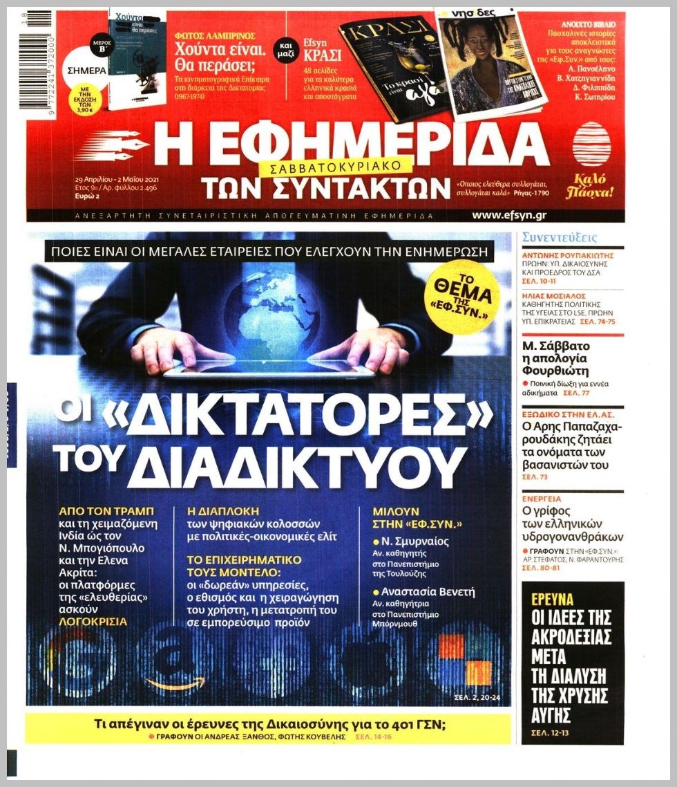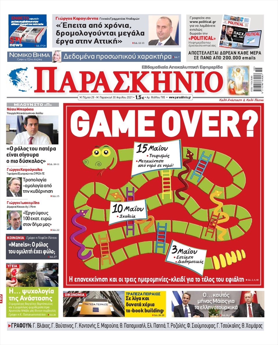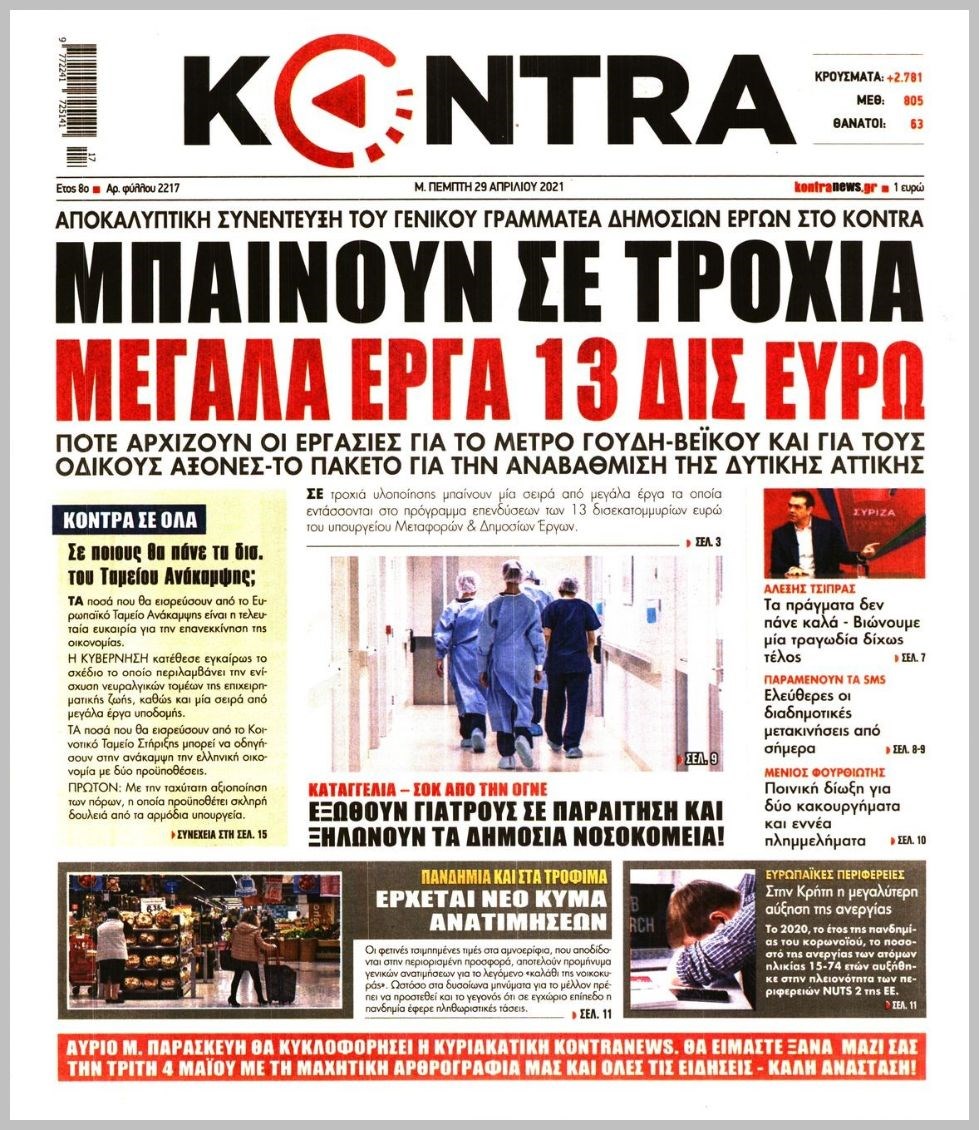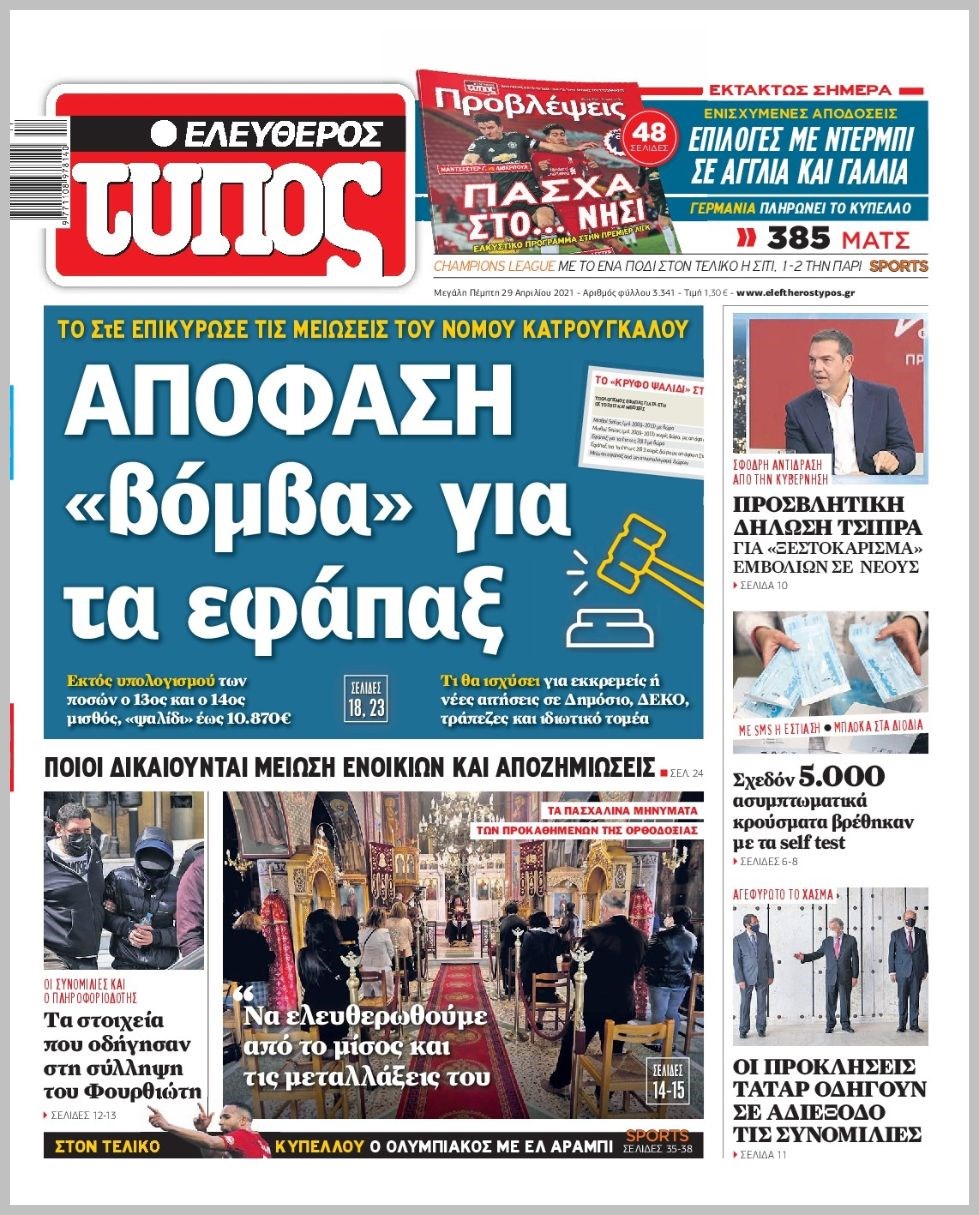 Οι πολιτικές εφημερίδες 29/4/2021 Διονύσης Νίκκας 06:00, Πέμπτη 29 Απριλίου 2021 Media Διαβάστε τα πρωτοσέλιδα των πολιτικών εφημερίδων… ΕΦΗΜΕΡΙΔΕΣ ΠΡΩΤΟΣΕΛΙΔΑ Μοιράσου το: σχολίασε κι εσύ (0 σχόλια) Ακολουθήστε το enikos.gr στο Google News και μάθετε πρώτοι όλες τις ειδήσεις Δείτε όλες τις τελευταίες ειδήσεις από την Ελλάδα και τον Κόσμο στο enikos.gr Ειδήσεις Ροή Ειδήσεων 4 ώρες πριν Υπόθεση Έπσταϊν: Το Υπουργείο Δικαιοσύνης δημοσιοποίησε μια σειρά από εξαιρετικά επεξεργασμένα αρχεία – «Λείπουν τα πιο σημαντικά έγγραφα», λένε οι Δημοκρατικοί 51 λεπτά πριν Γιορτές με μπλόκα για τους αγρότες: Ανοίγουν διόδια και μοιράζουν προϊόντα στους ταξιδιώτες 1 ώρα πριν Εξαφάνιση 33χρονου γιατρού στην Κρήτη: «Άναψα τα φώτα, τρόμαξε και άρχισε να τρέχει στα χωράφια» – Η τελευταία διαδρομή και η μαρτυρία «κλειδί» 3 ώρες πριν Ο «χάρτης» με τις αυξήσεις και τις φοροελαφρύνσεις του 2026 – Ποιοι και πόσα κερδίζουν 1 ώρα πριν Τα αρχεία του Έπσταϊν αποκαλύπτουν φωτογραφία του έκπτωτου πρίγκιπα Άντριου – Είναι ξαπλωμένος στην αγκαλιά 5 γυναικών 1 ώρα πριν Μία νέα «χρυσή» περίοδος αρχίζει για 3 ζώδια από σήμερα – «Μία αναπάντεχη ευκαιρία οδηγεί στην επιτυχία» 5 ώρες πριν Αυγά: Πόσα μπορείτε να τρώτε την ημέρα με ασφάλεια για μέγιστη πρόσληψη πρωτεΐνης 3 ώρες πριν Αρχαιολόγοι ανακάλυψαν σε χωράφι απεικόνιση 600 ετών ενός Αγίου – Τα στοιχεία που δείχνουν ότι μαρτύρησε 2 ώρες πριν Αγχώνεται για το χριστουγεννιάτικο δώρο που πήρε στην πλούσια σύντροφό του – «Φοβάμαι πως θα το βρει φθηνιάρικο, φοράει βραχιόλια Cartier» 9 λεπτά πριν Τα Labubu «μετακομίζουν» στο Χόλιγουντ: Η Sony Pictures ετοιμάζει live-action ταινία με τον σκηνοθέτη του «Wonka» 16 λεπτά πριν Νέες ταυτότητες: Μεγάλη αναμονή για ραντεβού στην Αττική – Τέλος τα ταξίδια εκτός Ελλάδος από τον Αύγουστο για όσους δεν έχουν αλλάξει 25 λεπτά πριν Οι 7 φράσεις που δεν λένε ποτέ οι συναισθηματικά έξυπνοι άνθρωποι κατά τη διάρκεια ενός καβγά 28 λεπτά πριν Τηλεθέαση (19/12): Ανατροπές και πρωτιές στην πρωινή ζώνη 36 λεπτά πριν Πώς η κλιματική αλλαγή επηρεάζει εγκύους και βρέφη – Οι επιπτώσεις των υψηλών θερμοκρασιών ENIKOS NETWORK Είστε μόνιμα απρόσεκτοι; 3 σημάδια που δείχνουν ότι μπορεί να είναι σύμπτωμα πάθησης Πόσα κιλά παίρνουμε πραγματικά τα Χριστούγεννα, σύμφωνα με την επιστήμη – Πώς να το αποτρέψουμε; e-ΕΦΚΑ και ΔΥΠΑ: Έρχονται νέες πληρωμές έως τις 24 Δεκεμβρίου – Ποιοι πάνε ταμείο Επίδομα παιδιού: Τι αλλάζει από το 2026 – Το όφελος από τις φορολογικές ελαφρύνσεις Χαρτογραφώντας το «σημείο χωρίς επιστροφή»: Για πρώτη φορά αποκαλύπτεται με λεπτομέρεια το ακανθώδες όριο της ατμόσφαιρας τ... Η Google καταργεί τη λειτουργία «dark web report» – Πώς θα μπορούν οι χρήστες να διαγράφουν τα δεδομένα τους περισσότερα 09:30 , Σάββατο 20 Δεκεμβρίου 2025 «Porto Leone: Στη γειτονιά με τα κόκκινα φανάρια» – Ο Χρόνης αποκαλύπτει στην Αλεξάνδρα το μυστικό για το παιδί της Λένας Η μεγάλη δραματική σειρά του Apha «Porto Leone: Στη γειτονιά με τα κόκκινα φανάρια» μας μεταφέ... 08:14 , Σάββατο 20 Δεκεμβρίου 2025 Τρομεροί γονείς: Η Μαρία Καβογιάννη εισβάλλει στο σπίτι της οικογένειας Στεφανίδη Όσα θα δούμε στο νέο διπλό επεισόδιο της σειράς «Τρομεροί γονείς», σήμερα Σάββατο 20 Δεκεμβρίο... 05:48 , Σάββατο 20 Δεκεμβρίου 2025 Οι οικονομικές εφημερίδες 20/12/2025 Διαβάστε τα πρωτοσέλιδα από τις οικονομικές εφημερίδες, σήμερα 20/12/2025. 05:43 , Σάββατο 20 Δεκεμβρίου 2025 Οι αθλητικές εφημερίδες 20/12/2025 Διαβάστε τα πρωτοσέλιδα από τις αθλητι