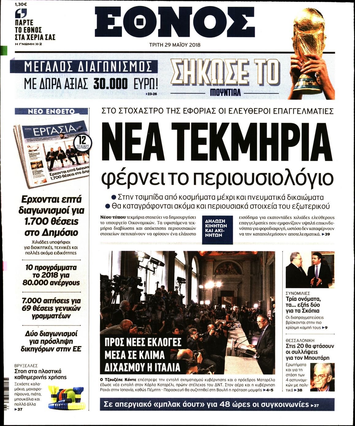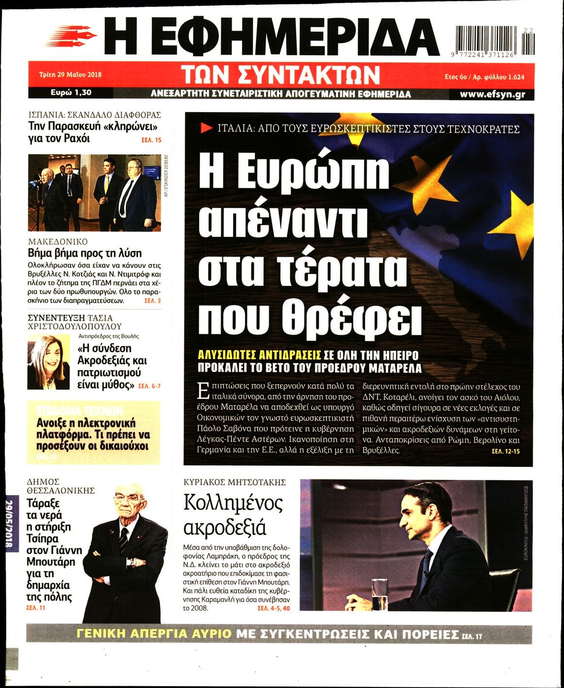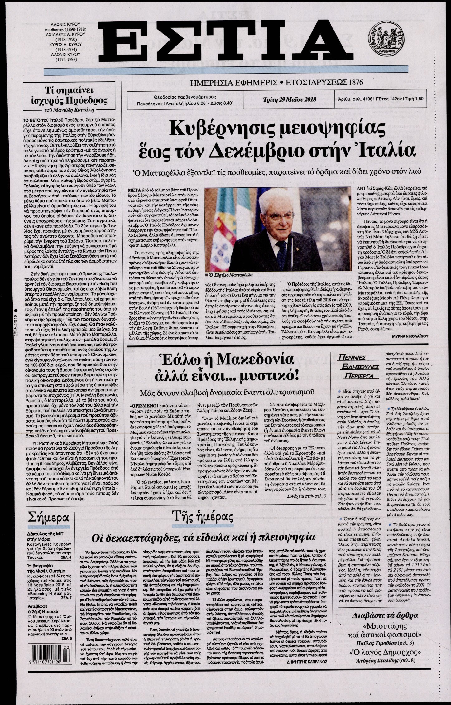 Οι πολιτικές εφημερίδες 29/5/2018 Enikos Newsroom 06:47, Τρίτη 29 Μαΐου 2018 Media Διαβάστε τα πρωτοσέλιδα: ΠΟΛΙΤΙΚΕΣ ΕΦΗΜΕΡΙΔΕΣ Μοιράσου το: σχολίασε κι εσύ (0 σχόλια) Ακολουθήστε το enikos.gr στο Google News και μάθετε πρώτοι όλες τις ειδήσεις Δείτε όλες τις τελευταίες ειδήσεις από την Ελλάδα και τον Κόσμο στο enikos.gr Ειδήσεις Ροή Ειδήσεων 7 λεπτά πριν Μπλόκα: Οι αγρότες σηκώνουν τις μπάρες σε διόδια για τους εκδρομείς των Χριστουγέννων και μοιράζουν προϊόντα – Βίντεο 44 λεπτά πριν Τσιάρας προς αγρότες: Τα μπλόκα και τα πείσματα δεν ωφελούν – Οι λύσεις περνούν μέσα από τον διάλογο 1 ώρα πριν Αρχεία Έπσταϊν: Οι συγκλονιστικές φωτογραφίες – Ο Μάικλ Τζάκσον, ο Μικ Τζάγκερ και ο Κέβιν Σπέισι ανάμεσα στους διάσημους που απεικονίζονται 3 ώρες πριν Νέες ταυτότητες: Μεγάλη αναμονή για ραντεβού στην Αττική – Τέλος τα ταξίδια εκτός Ελλάδος από τον Αύγουστο για όσους δεν έχουν αλλάξει 2 ώρες πριν Ινδία: Επτά ελέφαντες σκοτώθηκαν κατά τη σύγκρουση επιβατικού τρένου με κοπάδι 4 ώρες πριν Μία νέα «χρυσή» περίοδος αρχίζει για 3 ζώδια από σήμερα – «Μία αναπάντεχη ευκαιρία οδηγεί στην επιτυχία» 5 ώρες πριν Αγχώνεται για το χριστουγεννιάτικο δώρο που πήρε στην πλούσια σύντροφό του – «Φοβάμαι πως θα το βρει φθηνιάρικο, φοράει βραχιόλια Cartier» 2 ώρες πριν Διαιτολόγος αποκαλύπτει 9 πρωινές συνήθειες που «λιώνουν» το κοιλιακό λίπος – «Υποστηρίζουν την υγιεινή απώλεια βάρους» 3 ώρες πριν Οι 7 φράσεις που δεν λένε ποτέ οι συναισθηματικά έξυπνοι άνθρωποι κατά τη διάρκεια ενός καβγά 4 λεπτά πριν Πέτρου Ράλλη: Καρέ – καρέ η κλοπή αυτοκινήτου μέσα σε 2,5 λεπτά 7 λεπτά πριν Μπλόκα: Οι αγρότες σηκώνουν τις μπάρες σε διόδια για τους εκδρομείς των Χριστουγέννων και μοιράζουν προϊόντα – Βίντεο 11 λεπτά πριν Δημήτρης Ουγγαρέζος για τον καβγά του με την Κατερίνα Ζαρίφη: «Ήταν μια αυτανάφλεξη, όπως έγινε έφυγε» 19 λεπτά πριν Κικίλιας: «Ολοκληρώθηκαν πληρωμές 22,16 εκ. ευρώ για το μεταφορικό ισοδύναμο» 27 λεπτά πριν Πάτρα: Πέθανε 46χρονος έπειτα από λιποθυμικό επεισόδιο στο σπίτι του ENIKOS NETWORK Η αποχή από την αναπαραγωγή παρατείνει τη ζωή στα ζώα, σύμφωνα με μελέτη – Τι ισχύει για τους ανθρώπους; Σημαντικές επαφές στις ΗΠΑ είχε ο υπουργός Υγείας Άδωνις Γεωργιάδης Χειμερινές εκπτώσεις 2026: Πρεμιέρα στις 12 Ιανουαρίου – Πόσο θα διαρκέσουν και τι πρέπει να γνωρίζουν οι καταναλωτές Χρήστος Δήμας: Στα 2,5 εκατ. ευρώ την ημέρα το κόστος από το άνοιγμα των διοδίων από τους αγρότες – Θα αξιώσουν αποζημίωση ... Χαρτογραφώντας το «σημείο χωρίς επιστροφή»: Για πρώτη φορά αποκαλύπτεται με λεπτομέρεια το ακανθώδες όριο της ατμόσφαιρας τ... Η Google καταργεί τη λειτουργία «dark web report» – Πώς θα μπορούν οι χρήστες να διαγράφουν τα δεδομένα τους περισσότερα 12:53 , Σάββατο 20 Δεκεμβρίου 2025 Να μ’ αγαπάς: Το παρελθόν έρχεται στο φως – Καταιγιστικές εξελίξεις στα τελευταία επεισόδια του 2025 Ο Άγγελος αποκαλύπτεται, η Φωτεινή ανησυχεί για τον Λευτέρη και η Ζωή έρχεται αντιμέτωπη με το... 11:41 , Σάββατο 20 Δεκεμβρίου 2025 «Η αγάπη δεν χάνεται ποτέ»: Η μικρού μήκους ταινία κινουμένων σχεδίων που θέτει ερωτήματα για τη ζωή και τον θάνατο Ο θάνατος είναι ένα από τα πιο σκληρά θέματα που καλείται να διαχειριστεί κάποιος στη διάρκεια... 09:30 , Σάββατο 20 Δεκεμβρίου 2025 «Porto Leone: Στη γειτονιά με τα κόκκινα φανάρια» – Ο Χρόνης αποκαλύπτει στην Αλεξάνδρα το μυστικό για το παιδί της Λένας Η μεγάλη δραματική σειρά του Apha «Porto Leone: Στη γειτονιά με τα κόκκινα φανάρια» 