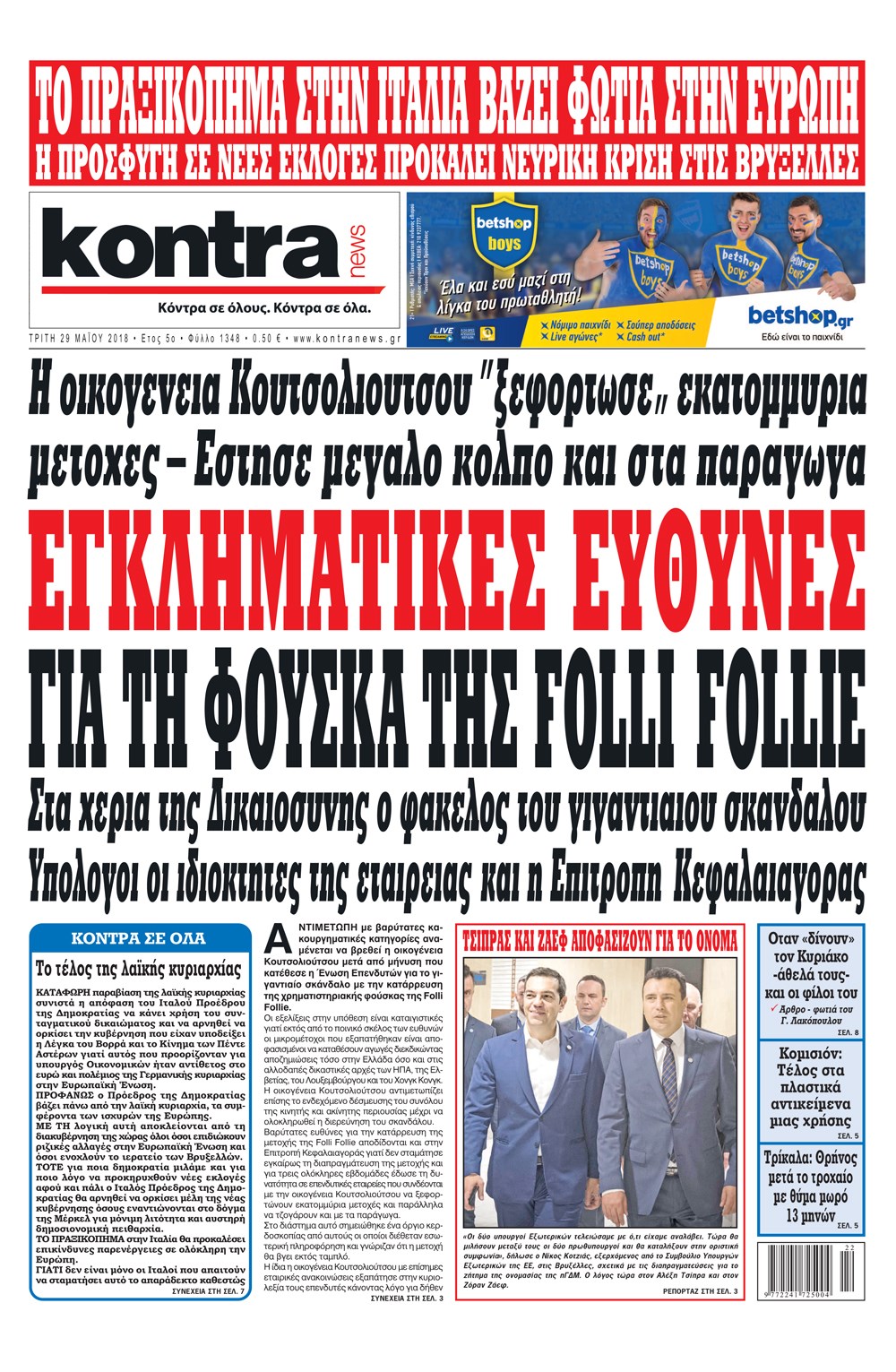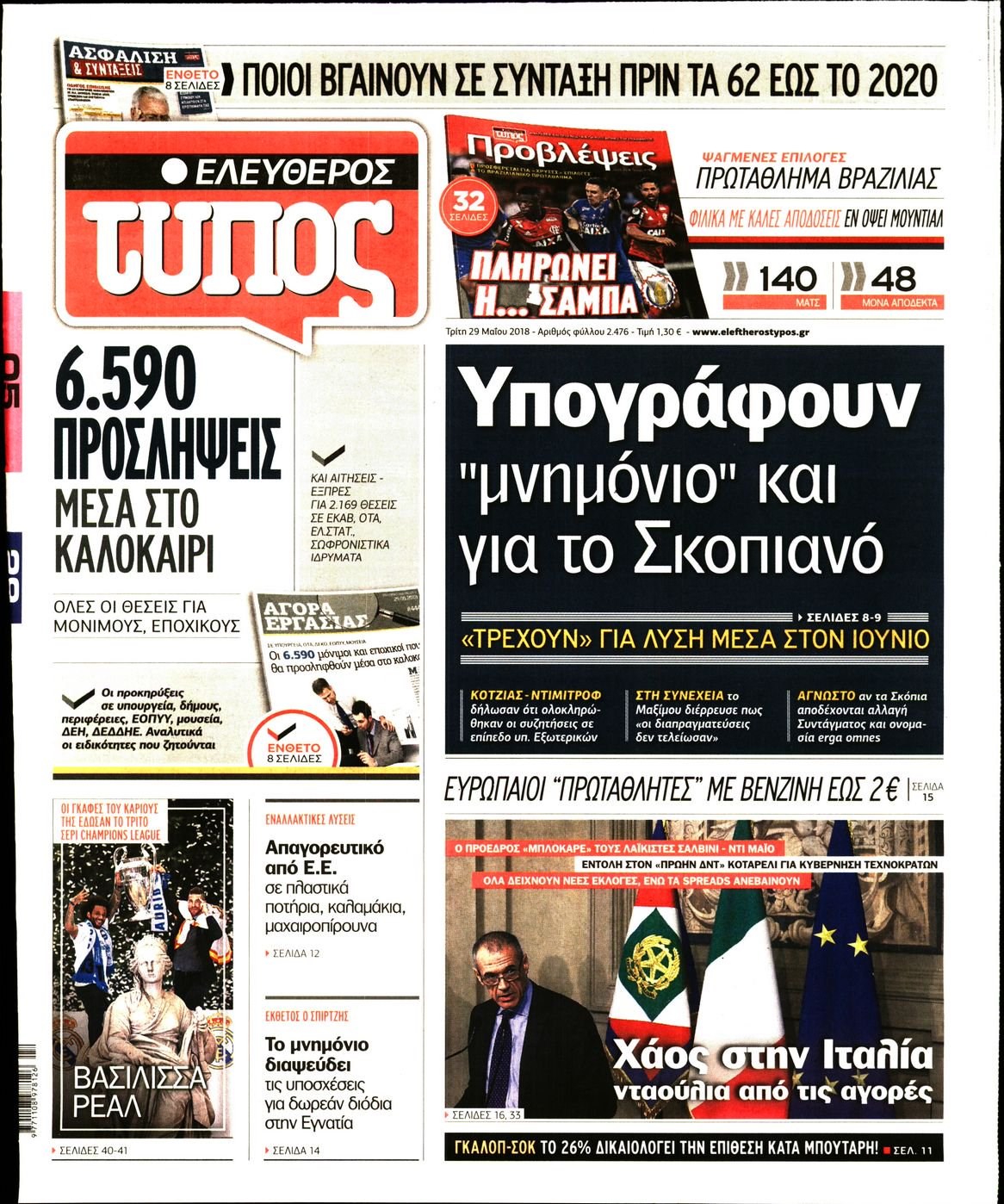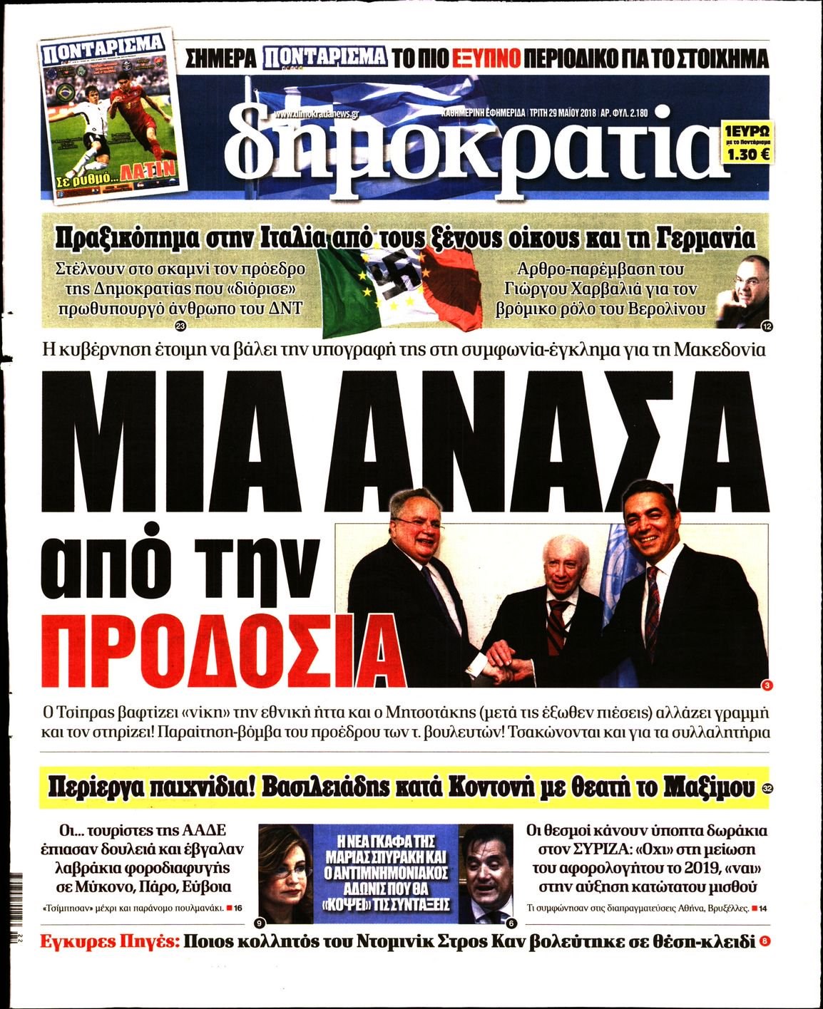 Οι πολιτικές εφημερίδες 29/5/2018 Enikos Newsroom 06:47, Τρίτη 29 Μαΐου 2018 Media Διαβάστε τα πρωτοσέλιδα: ΠΟΛΙΤΙΚΕΣ ΕΦΗΜΕΡΙΔΕΣ Μοιράσου το: σχολίασε κι εσύ (0 σχόλια) Ακολουθήστε το enikos.gr στο Google News και μάθετε πρώτοι όλες τις ειδήσεις Δείτε όλες τις τελευταίες ειδήσεις από την Ελλάδα και τον Κόσμο στο enikos.gr Ειδήσεις Ροή Ειδήσεων 7 λεπτά πριν Μπλόκα: Οι αγρότες σηκώνουν τις μπάρες σε διόδια για τους εκδρομείς των Χριστουγέννων και μοιράζουν προϊόντα – Βίντεο 44 λεπτά πριν Τσιάρας προς αγρότες: Τα μπλόκα και τα πείσματα δεν ωφελούν – Οι λύσεις περνούν μέσα από τον διάλογο 1 ώρα πριν Αρχεία Έπσταϊν: Οι συγκλονιστικές φωτογραφίες – Ο Μάικλ Τζάκσον, ο Μικ Τζάγκερ και ο Κέβιν Σπέισι ανάμεσα στους διάσημους που απεικονίζονται 3 ώρες πριν Νέες ταυτότητες: Μεγάλη αναμονή για ραντεβού στην Αττική – Τέλος τα ταξίδια εκτός Ελλάδος από τον Αύγουστο για όσους δεν έχουν αλλάξει 2 ώρες πριν Ινδία: Επτά ελέφαντες σκοτώθηκαν κατά τη σύγκρουση επιβατικού τρένου με κοπάδι 4 ώρες πριν Μία νέα «χρυσή» περίοδος αρχίζει για 3 ζώδια από σήμερα – «Μία αναπάντεχη ευκαιρία οδηγεί στην επιτυχία» 5 ώρες πριν Αγχώνεται για το χριστουγεννιάτικο δώρο που πήρε στην πλούσια σύντροφό του – «Φοβάμαι πως θα το βρει φθηνιάρικο, φοράει βραχιόλια Cartier» 2 ώρες πριν Διαιτολόγος αποκαλύπτει 9 πρωινές συνήθειες που «λιώνουν» το κοιλιακό λίπος – «Υποστηρίζουν την υγιεινή απώλεια βάρους» 3 ώρες πριν Οι 7 φράσεις που δεν λένε ποτέ οι συναισθηματικά έξυπνοι άνθρωποι κατά τη διάρκεια ενός καβγά 4 λεπτά πριν Πέτρου Ράλλη: Καρέ – καρέ η κλοπή αυτοκινήτου μέσα σε 2,5 λεπτά 7 λεπτά πριν Μπλόκα: Οι αγρότες σηκώνουν τις μπάρες σε διόδια για τους εκδρομείς των Χριστουγέννων και μοιράζουν προϊόντα – Βίντεο 11 λεπτά πριν Δημήτρης Ουγγαρέζος για τον καβγά του με την Κατερίνα Ζαρίφη: «Ήταν μια αυτανάφλεξη, όπως έγινε έφυγε» 19 λεπτά πριν Κικίλιας: «Ολοκληρώθηκαν πληρωμές 22,16 εκ. ευρώ για το μεταφορικό ισοδύναμο» 27 λεπτά πριν Πάτρα: Πέθανε 46χρονος έπειτα από λιποθυμικό επεισόδιο στο σπίτι του ENIKOS NETWORK Η αποχή από την αναπαραγωγή παρατείνει τη ζωή στα ζώα, σύμφωνα με μελέτη – Τι ισχύει για τους ανθρώπους; Σημαντικές επαφές στις ΗΠΑ είχε ο υπουργός Υγείας Άδωνις Γεωργιάδης Χειμερινές εκπτώσεις 2026: Πρεμιέρα στις 12 Ιανουαρίου – Πόσο θα διαρκέσουν και τι πρέπει να γνωρίζουν οι καταναλωτές Χρήστος Δήμας: Στα 2,5 εκατ. ευρώ την ημέρα το κόστος από το άνοιγμα των διοδίων από τους αγρότες – Θα αξιώσουν αποζημίωση ... Χαρτογραφώντας το «σημείο χωρίς επιστροφή»: Για πρώτη φορά αποκαλύπτεται με λεπτομέρεια το ακανθώδες όριο της ατμόσφαιρας τ... Η Google καταργεί τη λειτουργία «dark web report» – Πώς θα μπορούν οι χρήστες να διαγράφουν τα δεδομένα τους περισσότερα 12:53 , Σάββατο 20 Δεκεμβρίου 2025 Να μ’ αγαπάς: Το παρελθόν έρχεται στο φως – Καταιγιστικές εξελίξεις στα τελευταία επεισόδια του 2025 Ο Άγγελος αποκαλύπτεται, η Φωτεινή ανησυχεί για τον Λευτέρη και η Ζωή έρχεται αντιμέτωπη με το... 11:41 , Σάββατο 20 Δεκεμβρίου 2025 «Η αγάπη δεν χάνεται ποτέ»: Η μικρού μήκους ταινία κινουμένων σχεδίων που θέτει ερωτήματα για τη ζωή και τον θάνατο Ο θάνατος είναι ένα από τα πιο σκληρά θέματα που καλείται να διαχειριστεί κάποιος στη διάρκεια... 09:30 , Σάββατο 20 Δεκεμβρίου 2025 «Porto Leone: Στη γειτονιά με τα κόκκινα φανάρια» – Ο Χρόνης αποκαλύπτει στην Αλεξάνδρα το μυστικό για το παιδί της Λένας Η μεγάλη δραματική σειρά του Apha «Porto Leone: Στη γειτονιά με τα κόκκινα φανάρια» 