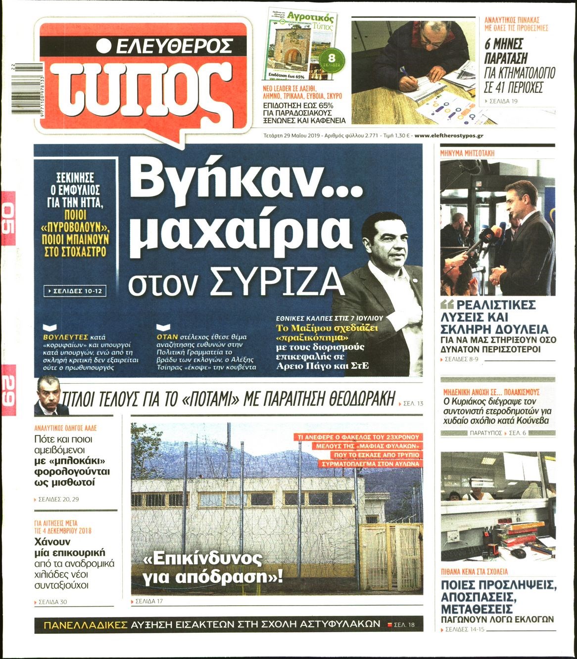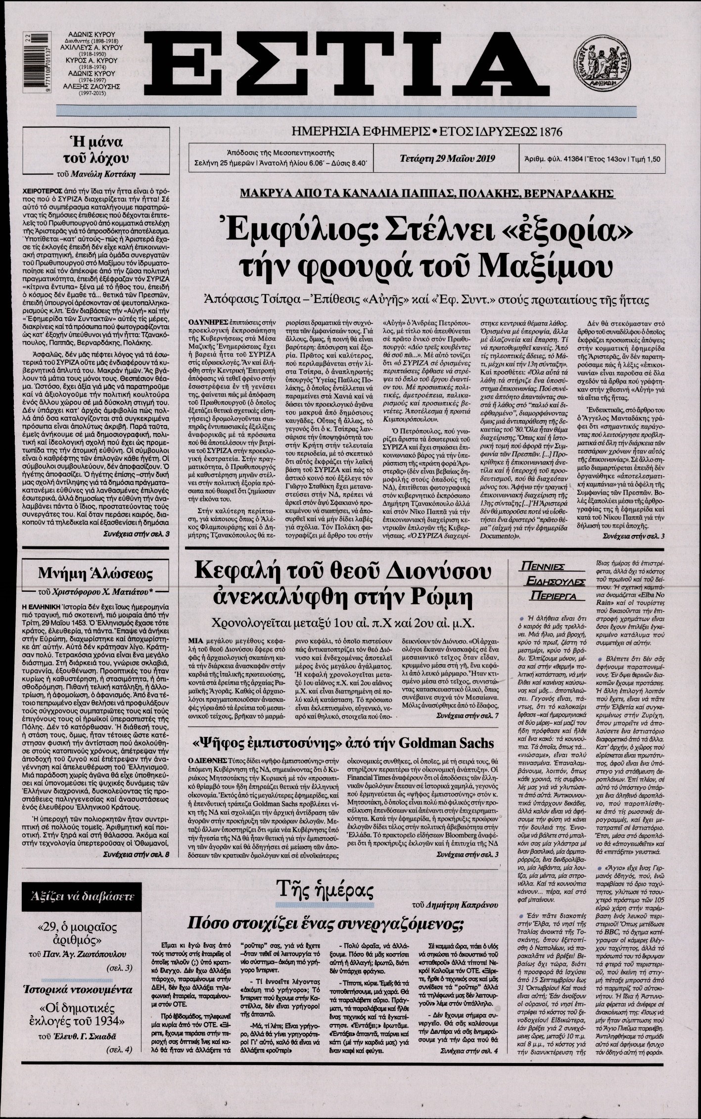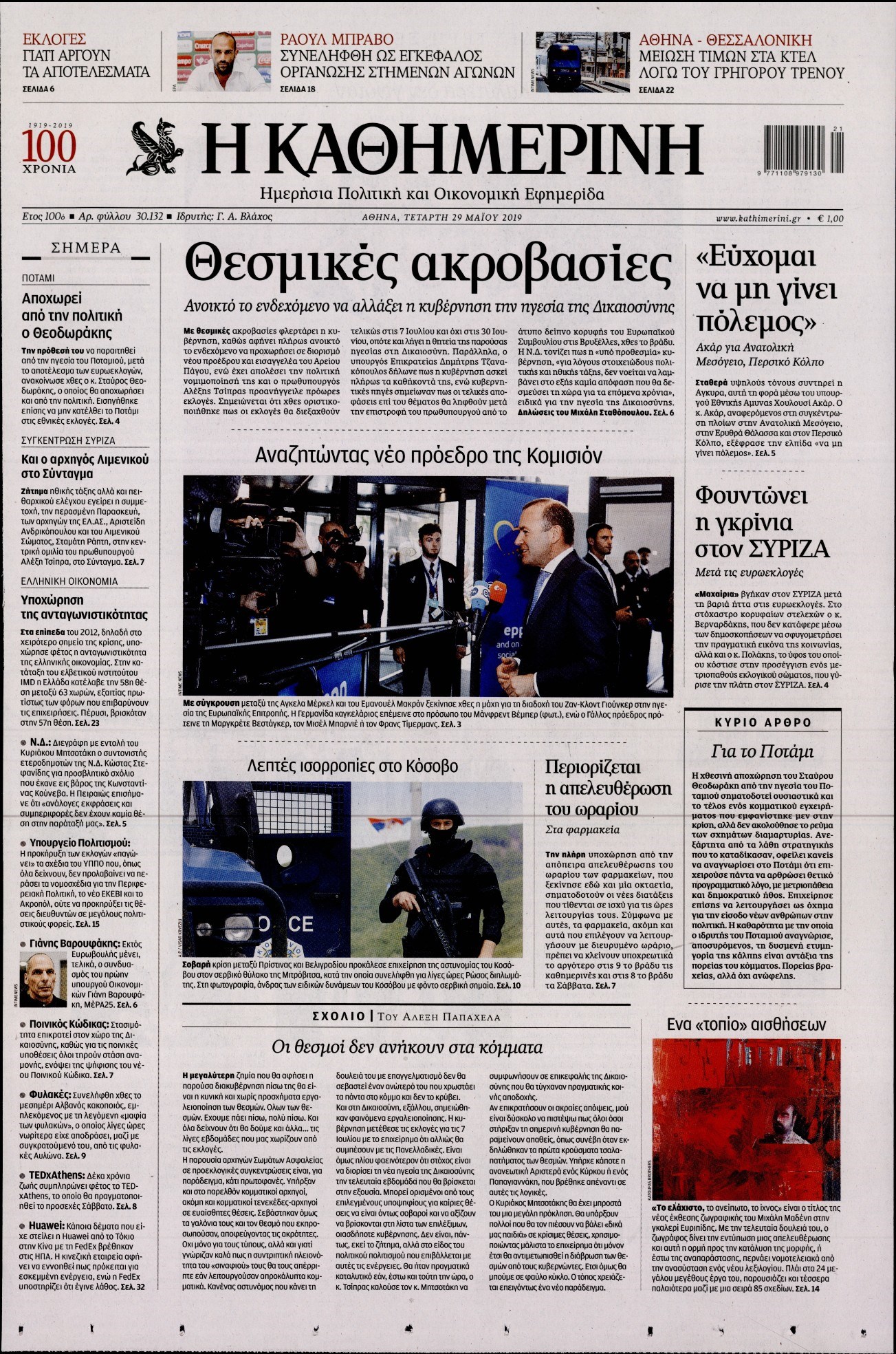 Οι πολιτικές εφημερίδες 29/5/2019 Enikos Newsroom 06:39, Τετάρτη 29 Μαΐου 2019 Media Διαβάστε τα πρωτοσέλιδα των πολιτικών εφημερίδων: ΠΟΛΙΤΙΚΕΣ ΕΦΗΜΕΡΙΔΕΣ ΠΡΩΤΟΣΕΛΙΔΑ Μοιράσου το: σχολίασε κι εσύ (0 σχόλια) Ακολουθήστε το enikos.gr στο Google News και μάθετε πρώτοι όλες τις ειδήσεις Δείτε όλες τις τελευταίες ειδήσεις από την Ελλάδα και τον Κόσμο στο enikos.gr Ειδήσεις Ροή Ειδήσεων 5 ώρες πριν Χριστούγεννα στα μπλόκα: Επιμένουν στις κινητοποιήσεις τους οι αγρότες – Ανοίγουν τα διόδια το Σαββατοκύριακο 5 ώρες πριν Ουκρανία: Η άνευ προηγουμένου επίθεση σε ρωσικό τάνκερ στη Μεσόγειο και το μήνυμα προς στον Πούτιν – Το «μακρύ χέρι» του Κιέβου 4 ώρες πριν Πούτιν: Τα μηνύματα σε Ευρώπη και ΝΑΤΟ από το μαραθώνιο «σόου» του – Η απαίτηση για «σεβασμό» και η ειρήνη «με τους όρους» της Μόσχας 5 ώρες πριν Τραμπ: Δεν αποκλείει την πιθανότητα ενός πολέμου στη Βενεζουέλα – «Ο Μαδούρο ξέρει καλύτερα από τον καθένα τι ακριβώς θέλω» 6 ώρες πριν Συνεχίζει να προκαλεί ο Μίτσκοσκι: «Για μένα το όνομα Μακεδονία είναι ιερό» 4 ώρες πριν Ανακαλύφθηκαν αρχαία χρυσά νομίσματα 2.200 ετών που απεικονίζουν τον θεό Απόλλωνα – Η άγνωστη σύνδεση με τον Φίλιππο Β΄ της Μακεδονίας 5 ώρες πριν Ύπνος: Μια κρυφή κατάσταση του εγκεφάλου πριν από τον ύπνο μπορεί να είναι το “κλειδί” για υψηλή ευφυΐα και δημιουργικότητα 6 ώρες πριν Αριθμολογία: Οι άνθρωποι που έχουν γεννηθεί αυτές τις 4 ημερομηνίες, συχνά παρεξηγούνται – «Η καλοσύνη τους κρύβει τεράστια δύναμη» 7 ώρες πριν Ξεχάστε το καθάρισμα το Σαββατοκύριακο: Ο «κανόνας των 20 λεπτών» που θα σας λύσει τα χέρια 11 λεπτά πριν Η Ελλάδα προσχωρεί στη Διεθνή Επιτροπή Αποζημιώσεων για την Ουκρανία 26 λεπτά πριν GNTM: Η Ξένια Τσίρκοβα αναδείχθηκε μεγάλη νικήτρια και πήρε τις 50.000 ευρώ – Ποιος βρέθηκε σε απόσταση αναπνοής; 41 λεπτά πριν Θεσσαλονίκη: Εξαφανίστηκε 13χρονος από χώρο φιλοξενίας ασυνόδευτων ανηλίκων στο Ωραιόκαστρο 51 λεπτά πριν Ντόναλντ Τραμπ: «Πολύ βαριά αντίποινα» στη Συρία – «Πλήττουμε πολύ δυνατά οχυρά του Ισλαμικού Κράτους» 1 ώρα πριν Εξάρχεια: Ένταση με μολότοφ, χημικά και κρότου λάμψης ENIKOS NETWORK Το ΕΚΑΒ τιμήθηκε από την Ακαδημία Αθηνών για τα 40 χρόνια προσφοράς του Έχετε πραγματικά μεγάλη καρδιά; 10 χαρακτηριστικά όσων έχουν καλοσύνη Αναστολή μέτρων αναγκαστικής εκτέλεσης για κτηνοτρόφους που πλήττονται από την ευλογιά των αιγοπροβάτων Πλήρης επάρκεια προϊόντων στις λαϊκές της Αττικής, παρά τις αγροτικές κινητοποιήσεις – Τι απαντούν οι πωλητές Χαρτογραφώντας το «σημείο χωρίς επιστροφή»: Για πρώτη φορά αποκαλύπτεται με λεπτομέρεια το ακανθώδες όριο της ατμόσφαιρας τ... Η Google καταργεί τη λειτουργία «dark web report» – Πώς θα μπορούν οι χρήστες να διαγράφουν τα δεδομένα τους περισσότερα 02:50 , Σάββατο 20 Δεκεμβρίου 2025 GNTM: Η Ξένια Τσίρκοβα αναδείχθηκε μεγάλη νικήτρια και πήρε τις 50.000 ευρώ – Ποιος βρέθηκε σε απόσταση αναπνοής; Με φαντασμαγορικό τρόπο ολοκληρώθηκε το βράδυ της Παρασκευής ο μεγάλος τελικός του GNTM, μέσα ... 22:42 , Παρασκευή 19 Δεκεμβρίου 2025 Γιώργος Γιαννόπουλος για “Το σόι σου”: “Είναι ευτυχία και ευλογία αυτή η σειρά” «Είναι ευτυχία και ευλογία η συγκυρία αυτής της σειράς», θα πει ο Γιώργος Γιαννόπουλος -ο αγαπ... 20:37 , Παρασκευή 19 Δεκεμβρίου 2025 Don’t Forget The Lyrics: Η Έλλη Κοκκίνου υποδέχεται 4 παίκτες που θα κάνουν τα πάντα για να μη χάσουν ούτε… μισή λέξη από τους στίχους Το «Don’t Forget The Lyrics» επιστρέφει απόψε, Παρασκευή 19 Δεκεμβρίου, στις 21:00 με νέο επει... 19:31