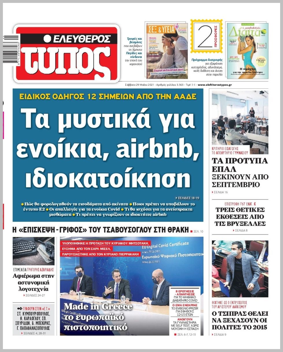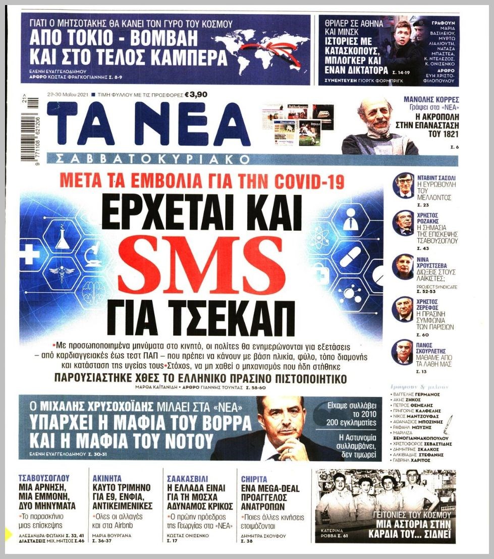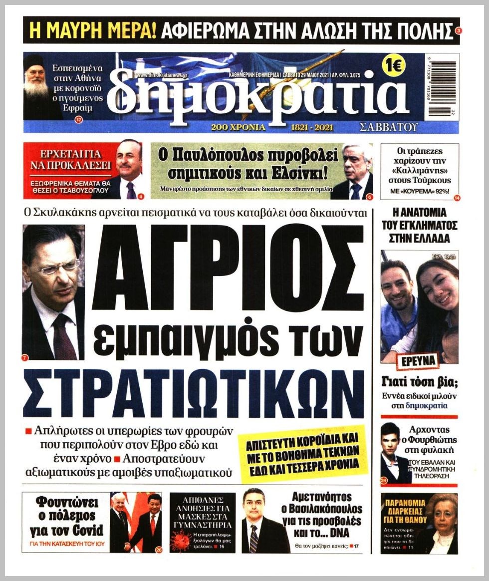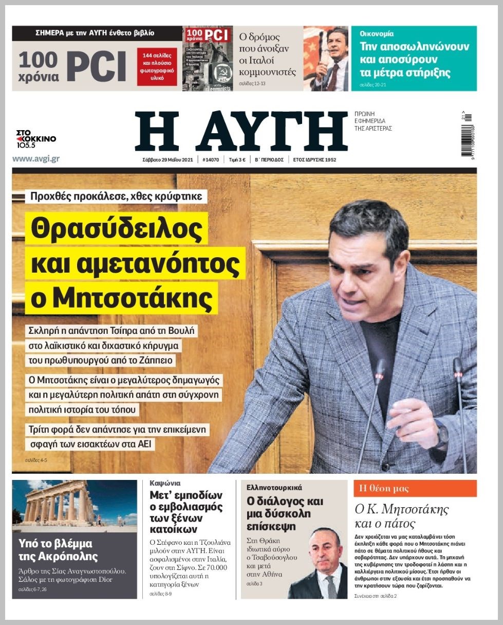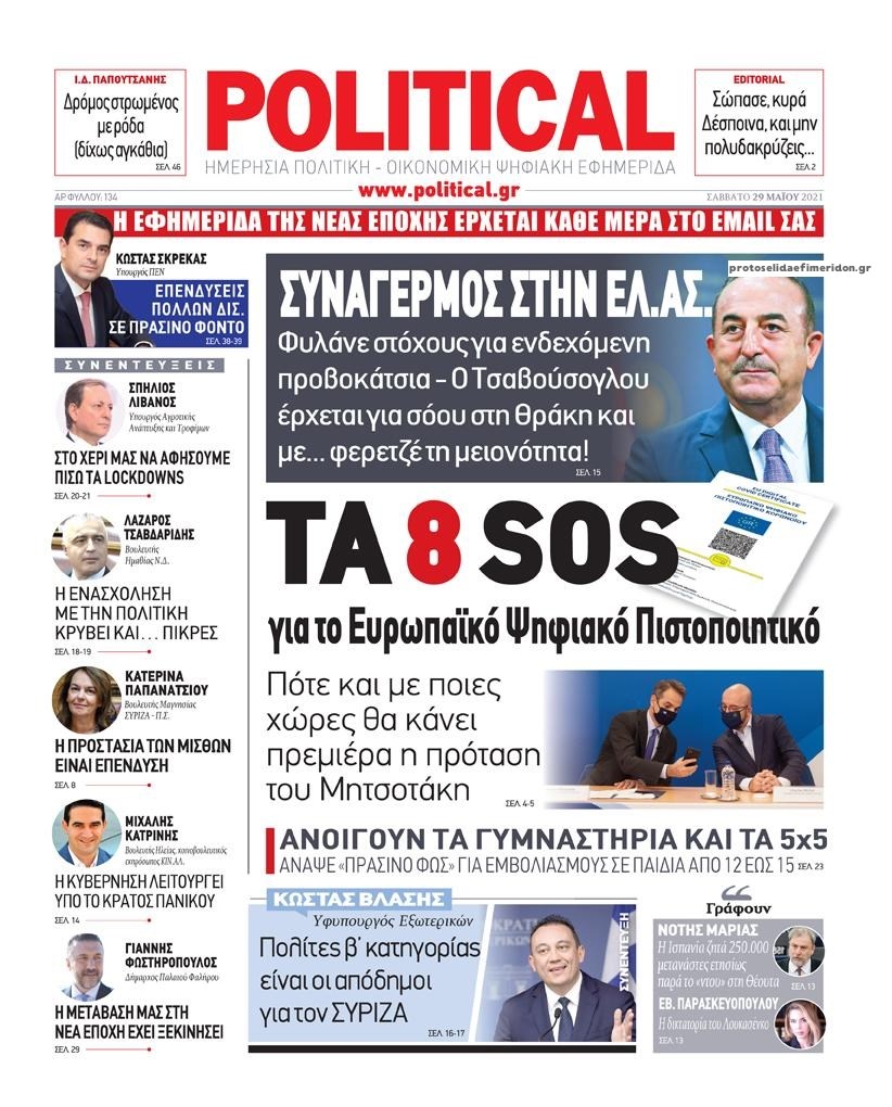 Οι πολιτικές εφημερίδες 29/5/2021 Διονύσης Νίκκας 07:04, Σάββατο 29 Μαΐου 2021 Media Διαβάστε τα πρωτοσέλιδα των πολιτικών εφημερίδων… ΕΦΗΜΕΡΙΔΕΣ ΠΡΩΤΟΣΕΛΙΔΑ Μοιράσου το: σχολίασε κι εσύ (0 σχόλια) Ακολουθήστε το enikos.gr στο Google News και μάθετε πρώτοι όλες τις ειδήσεις Δείτε όλες τις τελευταίες ειδήσεις από την Ελλάδα και τον Κόσμο στο enikos.gr Ειδήσεις Ροή Ειδήσεων 2 ώρες πριν Θετικοί οι αγρότες στη νέα πρόσκληση για διάλογο με τον Πρωθυπουργό – Αποφασίζουν την Παρασκευή εάν θα «σπάσουν» τον 48ωρο αποκλεισμό 2 ώρες πριν Πάτρα: Την Παρασκευή οι απολογίες των 4 εμπλεκομένων για τον θανάσιμο ξυλοδαρμό του 30χρονου – Το ξέσπασμα της μητέρας του θύματος και το βίντεο-σοκ 2 ώρες πριν Μινεάπολη: Η εκτέλεση της 37χρονης Ρενέ Γκουντ αποκαλύπτει δύο εντελώς αντίθετες διαχωριστικές γραμμές στην αμερικανική πολιτική 4 ώρες πριν Κύπρος: Πολιτικές αντιδράσεις μετά την διαρροή του βίντεο με «χρηματοδοτήσεις» και «επενδυτές» – Κυβέρνηση: Υβριδική επίθεση με κακόβουλο μοντάζ 2 ώρες πριν Πέθανε ο σπουδαίος ηθοποιός Χρήστος Πολίτης 4 ώρες πριν Αριθμολογία 2026: Οι άτυχοι μήνες της χρονιάς, με βάση την ημερομηνία γέννησής σας 5 ώρες πριν Περιορίστε τη σκόνη στο σπίτι σας με μια απλή και οικονομική λύση – Ο ρόλος της υγρασίας 3 ώρες πριν Ύπνος: Δυσκολεύεστε να κοιμηθείτε; Γιατρός μοιράζεται ένα «μυστικό» συστατικό που βοηθάει στη χαλάρωση 2 ώρες πριν Ανακαλύφθηκε εντυπωσιακός τάφος 1.300 ετών – Τα τεχνουργήματα που περιείχε ρίχνουν φως στη ζωή των ελίτ της δυναστείας Τανγκ 36 λεπτά πριν Premier League: Έ(Χ)ασε την ευκαιρία να ξεφύγει η Άρσεναλ, 0-0 με την Λίβερπουλ 49 λεπτά πριν Λευκός Οίκος: «Παράδειγμα της επιρροής Τραμπ», η απελευθέρωση κρατουμένων στη Βενεζουέλα 1 ώρα πριν Έκλεισε ο δρόμος Ηγουμενίτσας – Φιλιατών λόγω υπερχείλισης του Καλαμά, μέσω Παραποτάμου η κυκλοφορία 1 ώρα πριν Εργκίν Αταμάν: «Οι παίκτες πρέπει να καταλάβουν ότι παίζουν στον Παναθηναϊκό, τον κορυφαίο σύλλογο στην Ευρώπη» 1 ώρα πριν Παναθηναϊκός – Βίρτους Μπολόνια 84-71: Αγρίεψε και… «κατάπιε» τους Ιταλούς ENIKOS NETWORK Γιατί κάποιοι κρεμάνε φύλλα δάφνης στην πόρτα της κρεβατοκάμαρας; Το μυστικό για καλύτερο ύπνο ΠΟΕΔΗΝ: Σήμα κινδύνου εκπέμπει η Πνευμονολογική Κλινική του Νοσοκομείου Άρτας ΣΑΤΑ: 48ωρη απεργία για τις 13 και 14 Ιανουαρίου αποφάσισαν οι αυτοκινητιστές των ταξί στην Αττική ΔΥΠΑ: Αρχίζει η υποβολή προγραμμάτων κατάρτισης για άνεργους δικαιούχους του Ελάχιστου Εγγυημένου Εισοδήματος – Όλες οι λεπ... Ο Google Assistant θα παραμείνει λίγο περισσότερο για ορισμένους χρήστες Android Τεστ προσωπικότητας: Το βάζο που θα επιλέξετε αποκαλύπτει πώς λύνετε προβλήματα στη ζωή σας περισσότερα 18:15 , Πέμπτη 08 Ιανουαρίου 2026 Άγιος Έρωτας: Ο πατήρ Νικόλαος σώζει τη μικρή Ελευθερία και ο Παύλος παθαίνει καρδιακή προσβολή – Καθηλώνουν τα επόμενα επεισόδια Η αγαπημένη δραματική σειρά “Άγιος ‘Ερωτας” επιστρέφει στις οθόνες μας με νέ... 17:43 , Πέμπτη 08 Ιανουαρίου 2026 Οι Αθώοι: Η μουσική της μεγάλης παραγωγής του Mega – Νέο lyrics video Η σειρά εποχής, που έχει ήδη κλέψει τις εντυπώσεις από τις πρώτες κιόλας εικόνες των τρέιλερ π... 17:04 , Πέμπτη 08 Ιανουαρίου 2026 Νέα δυναμική διεθνής επένδυση του Θοδωρή Κυριακού στις ΗΠΑ Ο Πρόεδρος του Ομίλου Antenna, Θοδωρής Κυριακού, συνεχίζει να ενισχύει δυναμικά την παγκόσμια ... 12:40 , Πέμπτη 08 Ιανουαρίου 2026 Ακούστε την εκπομπή του Νίκου Χατζηνικολάου 8/1/2026 Ακούστε την εκπομπή του Νίκου Χατζηνικολάου στον ραδιοφωνικό σ