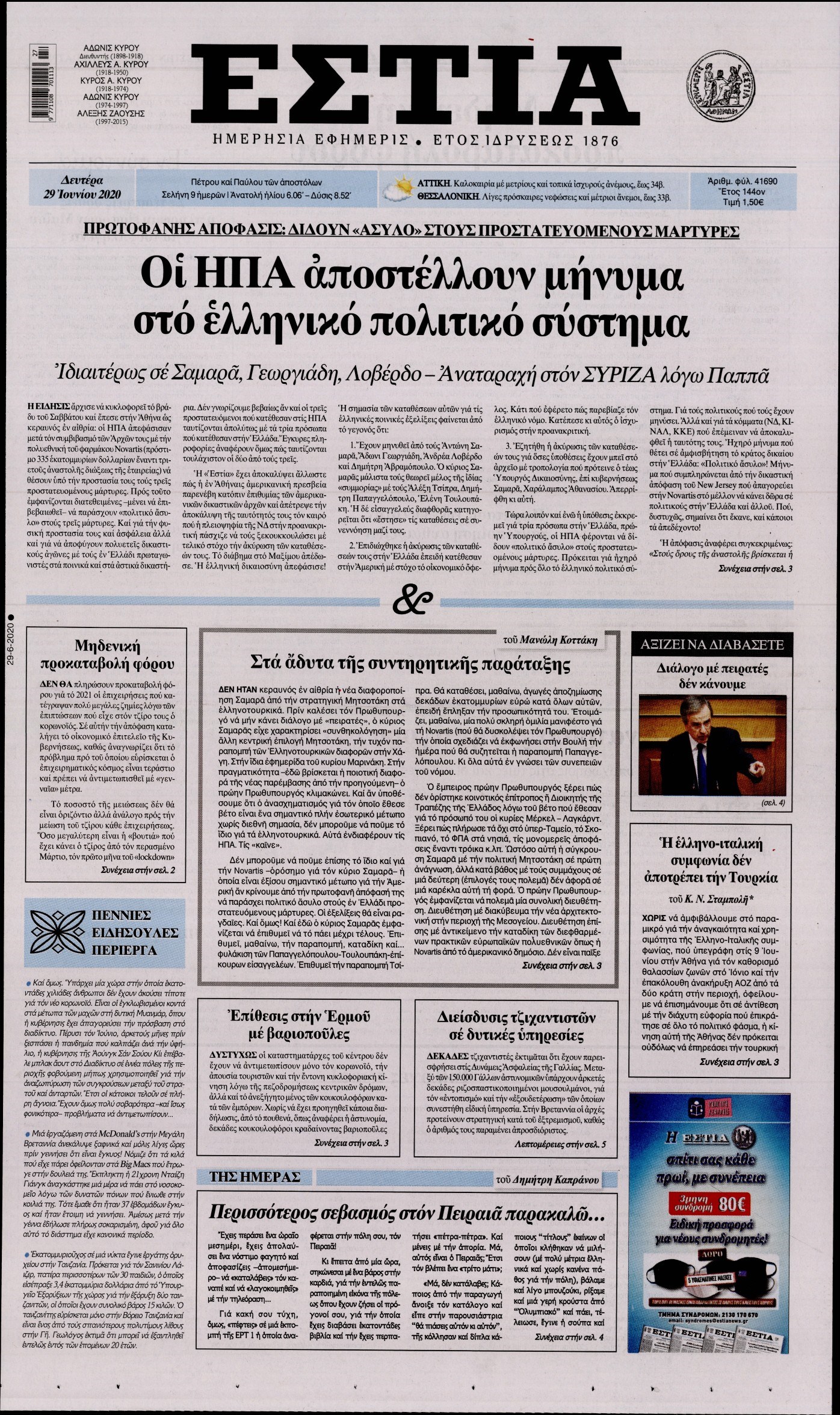Οι πολιτικές εφημερίδες 29/6/2020 Διονύσης Νίκκας 06:09, Δευτέρα 29 Ιουνίου 2020 Media Διαβάστε τα πρωτοσέλιδα των πολιτικών εφημερίδων… ΠΟΛΙΤΙΚΕΣ ΕΦΗΜΕΡΙΔΕΣ Μοιράσου το: σχολίασε κι εσύ (0 σχόλια) Ακολουθήστε το enikos.gr στο Google News και μάθετε πρώτοι όλες τις ειδήσεις Δείτε όλες τις τελευταίες ειδήσεις από την Ελλάδα και τον Κόσμο στο enikos.gr Ειδήσεις Ροή Ειδήσεων 4 ώρες πριν Χριστούγεννα στα μπλόκα: Επιμένουν στις κινητοποιήσεις τους οι αγρότες – Ανοίγουν τα διόδια το Σαββατοκύριακο 4 ώρες πριν Ουκρανία: Η άνευ προηγουμένου επίθεση σε ρωσικό τάνκερ στη Μεσόγειο και το μήνυμα προς στον Πούτιν – Το «μακρύ χέρι» του Κιέβου 3 ώρες πριν Πούτιν: Τα μηνύματα σε Ευρώπη και ΝΑΤΟ από το μαραθώνιο «σόου» του – Η απαίτηση για «σεβασμό» και η ειρήνη «με τους όρους» της Μόσχας 4 ώρες πριν Τραμπ: Δεν αποκλείει την πιθανότητα ενός πολέμου στη Βενεζουέλα – «Ο Μαδούρο ξέρει καλύτερα από τον καθένα τι ακριβώς θέλω» 5 ώρες πριν Συνεχίζει να προκαλεί ο Μίτσκοσκι: «Για μένα το όνομα Μακεδονία είναι ιερό» 3 ώρες πριν Ανακαλύφθηκαν αρχαία χρυσά νομίσματα 2.200 ετών που απεικονίζουν τον θεό Απόλλωνα – Η άγνωστη σύνδεση με τον Φίλιππο Β΄ της Μακεδονίας 4 ώρες πριν Ύπνος: Μια κρυφή κατάσταση του εγκεφάλου πριν από τον ύπνο μπορεί να είναι το “κλειδί” για υψηλή ευφυΐα και δημιουργικότητα 5 ώρες πριν Αριθμολογία: Οι άνθρωποι που έχουν γεννηθεί αυτές τις 4 ημερομηνίες, συχνά παρεξηγούνται – «Η καλοσύνη τους κρύβει τεράστια δύναμη» 6 ώρες πριν Ξεχάστε το καθάρισμα το Σαββατοκύριακο: Ο «κανόνας των 20 λεπτών» που θα σας λύσει τα χέρια 3 λεπτά πριν Ντόναλντ Τραμπ: «Πολύ βαριά αντίποινα» στη Συρία – «Πλήττουμε πολύ δυνατά οχυρά του Ισλαμικού Κράτους» 18 λεπτά πριν Εξάρχεια: Ένταση με μολότοφ, χημικά και κρότου λάμψης 34 λεπτά πριν ΗΠΑ: Τραγωδία στην Αλαμπάμα – Σκότωσε την δημοσιογράφο σύζυγό του και αυτοκτόνησε μπροστά στον 3χρονο γιο τους 48 λεπτά πριν Πρόταση γάμου στο ΣΕΦ κατά την διάρκεια του αγώνα Ολυμπιακός-Βιλερμπάν – Δείτε βίντεο 1 ώρα πριν Euroleague: Επέστρεψε στις νίκες ο Ολυμπιακός, πήρε την ματσάρα της χρονιάς η Μπάρτσα – Τα αποτελέσματα και η βαθμολογία ENIKOS NETWORK Το ΕΚΑΒ τιμήθηκε από την Ακαδημία Αθηνών για τα 40 χρόνια προσφοράς του Έχετε πραγματικά μεγάλη καρδιά; 10 χαρακτηριστικά όσων έχουν καλοσύνη Αναστολή μέτρων αναγκαστικής εκτέλεσης για κτηνοτρόφους που πλήττονται από την ευλογιά των αιγοπροβάτων Πλήρης επάρκεια προϊόντων στις λαϊκές της Αττικής, παρά τις αγροτικές κινητοποιήσεις – Τι απαντούν οι πωλητές Χαρτογραφώντας το «σημείο χωρίς επιστροφή»: Για πρώτη φορά αποκαλύπτεται με λεπτομέρεια το ακανθώδες όριο της ατμόσφαιρας τ... Η Google καταργεί τη λειτουργία «dark web report» – Πώς θα μπορούν οι χρήστες να διαγράφουν τα δεδομένα τους περισσότερα 22:42 , Παρασκευή 19 Δεκεμβρίου 2025 Γιώργος Γιαννόπουλος για “Το σόι σου”: “Είναι ευτυχία και ευλογία αυτή η σειρά” «Είναι ευτυχία και ευλογία η συγκυρία αυτής της σειράς», θα πει ο Γιώργος Γιαννόπουλος -ο αγαπ... 20:37 , Παρασκευή 19 Δεκεμβρίου 2025 Don’t Forget The Lyrics: Η Έλλη Κοκκίνου υποδέχεται 4 παίκτες που θα κάνουν τα πάντα για να μη χάσουν ούτε… μισή λέξη από τους στίχους Το «Don’t Forget The Lyrics» επιστρέφει απόψε, Παρασκευή 19 Δεκεμβρίου, στις 21:00 με νέο επει... 19:31 , Παρασκευή 19 Δεκεμβρίου 2025 GNTM: Απόψε ο μεγάλος τελικός για τους 4 φιναλίστ Έπειτα από μήνες γεμάτους μόδα, δημιουργία και έντονες αναμετρήσεις, το GNTM 2025 κορυφώνεται,... 18:11 , Παρασκευή 19 Δεκεμβρί