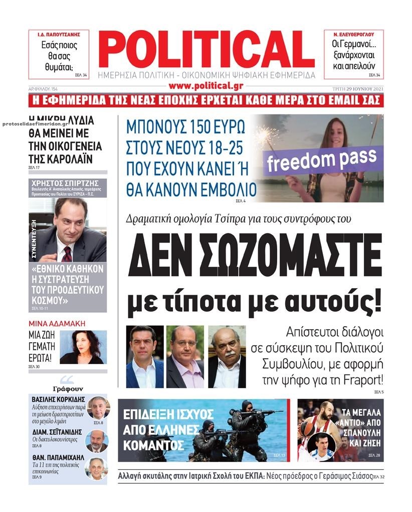 Οι πολιτικές εφημερίδες 29/6/2021 Σήφης Γαρυφαλάκης 06:31, Τρίτη 29 Ιουνίου 2021 Media Διαβάστε τα πρωτοσέλιδα των πολιτικών εφημερίδων. ΕΦΗΜΕΡΙΔΕΣ ΠΟΛΙΤΙΚΕΣ ΕΦΗΜΕΡΙΔΕΣ ΠΡΩΤΟΣΕΛΙΔΑ ΠΡΩΤΟΣΕΛΙΔΑ ΕΦΗΜΕΡΙΔΩΝ Μοιράσου το: σχολίασε κι εσύ (0 σχόλια) Ακολουθήστε το enikos.gr στο Google News και μάθετε πρώτοι όλες τις ειδήσεις Δείτε όλες τις τελευταίες ειδήσεις από την Ελλάδα και τον Κόσμο στο enikos.gr Ειδήσεις Ροή Ειδήσεων 3 ώρες πριν Αγρότες: Πολύωροι αποκλεισμοί στα τελωνεία Προμαχώνα, Εξοχής, Ευζώνων και Νίκης – Κλείνουν τον κόμβο Φιλώτα οι παραγωγοί στη Δυτική Μακεδονία 2 ώρες πριν Νίκος Παππάς: Ζητώ συγγνώμη για αυτό το επεισόδιο – Δεν τον γρονθοκόπησα 1 ώρα πριν Πούτιν: Η Ουκρανία δεν είναι έτοιμη για ειρηνευτικές συνομιλίες – ο ρωσικός στρατός προελαύνει σε όλα τα μέτωπα 56 λεπτά πριν Κρήτη: Στο Ρέθυμνο μεταφέρονται οι εκατοντάδες μετανάστες που διασώθηκαν ανοιχτά της Γαύδου 2 ώρες πριν Τρομακτικό βίντεο: Η στιγμή της έκρηξης στο τζετ που μετέφερε τον οδηγό του NASCAR, Γκρεγκ Μπιφλ και την οικογένειά του 3 ώρες πριν Αλλαγή σελίδας για 3 ζώδια – «Μία δύσκολη περίοδος φτάνει στο τέλος της» 2 ημέρες πριν 20 χρόνια τα Χριστούγεννα ξεκινούν στα Public με μεγάλη ποικιλία σε δώρα! 2 ώρες πριν Γεμάτος νεροχύτης; 5 σοβαρές ευθύνες που «φοβίζουν» όσους αφήνουν άπλυτα πιάτα 1 ώρα πριν Ειδικός μοιράζεται 6 κόλπα για να διατηρείστε σε φόρμα με πάνω από 40 ώρες εργασίας την εβδομάδα: «Προπονηθείτε πριν από τη δουλειά, όχι μετά» 3 λεπτά πριν ΑΑΔΕ: QR Code και Barcode για εύκολες και γρήγορες πληρωμές οφειλών 8 λεπτά πριν Νέα Φιλαδέλφεια: Βίντεο ντοκουμέντο από το θανατηφόρο τροχαίο 13 λεπτά πριν Παπαθανάσης: «Η Ελλάδα αλλάζει με μεταρρυθμίσεις και έργα – Το 2026 χρονιά μεγάλης ανάπτυξης, νέων θέσεων εργασίας, καλύτερων αμοιβών» 19 λεπτά πριν Αγρότες: Παραμένουν στα μπλόκα και ενισχύουν τις δράσεις τους σε Ημαθία, Πέλλα, Πιερία και Καβάλα 25 λεπτά πριν Γιώργος Μαζωνάκης: «Φοβόταν, θεώρησα ότι έπρεπε να τον προστατεύσω» – Τι λέει η τραγουδίστρια, Νωαίνα για τον Στέφανο Παπαδόπουλο ENIKOS NETWORK Κίνδυνος παραπλάνησης από διαφημίσεις οδοντικών εμφυτευμάτων Καρκίνος του πνεύμονα: Έως 8.000 ζωές μπορούν να σωθούν με την έγκαιρη διάγνωση Αγορά πολυτελών κατοικιών: Αυτές είναι οι προτεραιότητες των αγοραστών – Σε ποιες περιοχές στρέφονται και τι επιλέγουν ΕΥΔΑΠ: Στο τραπέζι αλλαγές στους λογαριασμούς του νερού – Τι θα ισχύσει για ευάλωτα νοικοκυριά και επιχειρήσεις Χαρτογραφώντας το «σημείο χωρίς επιστροφή»: Για πρώτη φορά αποκαλύπτεται με λεπτομέρεια το ακανθώδες όριο της ατμόσφαιρας τ... Η Google καταργεί τη λειτουργία «dark web report» – Πώς θα μπορούν οι χρήστες να διαγράφουν τα δεδομένα τους περισσότερα 08:00 , Παρασκευή 19 Δεκεμβρίου 2025 Την Κυριακή με τη Realnews: Δωροεπιταγή 10€ Δωροεπιταγή αξίας 10€ για αγορές άνω των 60€ από τα πολυκαταστήματα FactoryOutlet H προσφορά ι... 05:48 , Παρασκευή 19 Δεκεμβρίου 2025 Οι οικονομικές εφημερίδες 19/12/2025 Διαβάστε τα πρωτοσέλιδα από τις οικονομικές εφημερίδες, σήμερα 19/12/2025. 05:43 , Παρασκευή 19 Δεκεμβρίου 2025 Οι αθλητικές εφημερίδες 19/12/2025 Διαβάστε τα πρωτοσέλιδα από τις αθλητικές εφημερίδες, σήμερα 19/12/2025. 05:38 , Παρασκευή 19 Δεκεμβρίου 2025 Οι πολιτικές εφημερίδες 19/12/2025 Διαβάστε τα πρωτοσέλιδα από τις πολιτικές εφημερίδες, σήμερα 19/12/2025. ΤΕΛΕΥΤΑΙΕΣ ΕΙΔΗΣΕΙΣ 3 λεπτά πριν ΑΑΔΕ: QR Code και Barcode για εύκολες και γρήγορες πληρωμές... 8 λεπτά πριν Νέα Φιλαδέλφεια: Βίντεο ντοκουμέντο από το θανατηφόρο... 13 λεπτά π