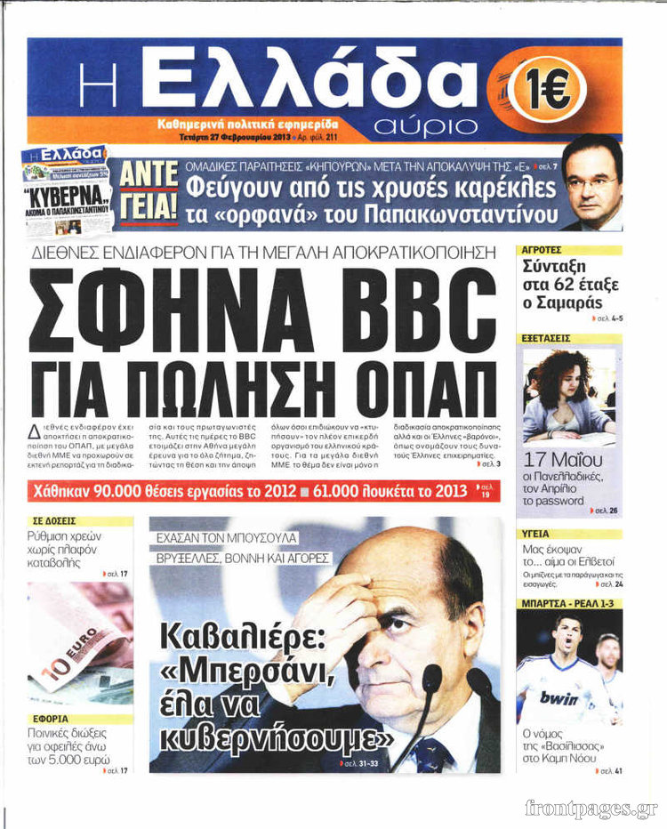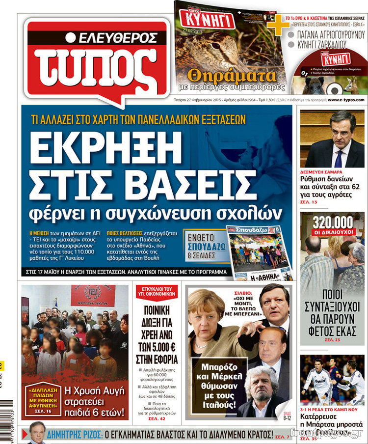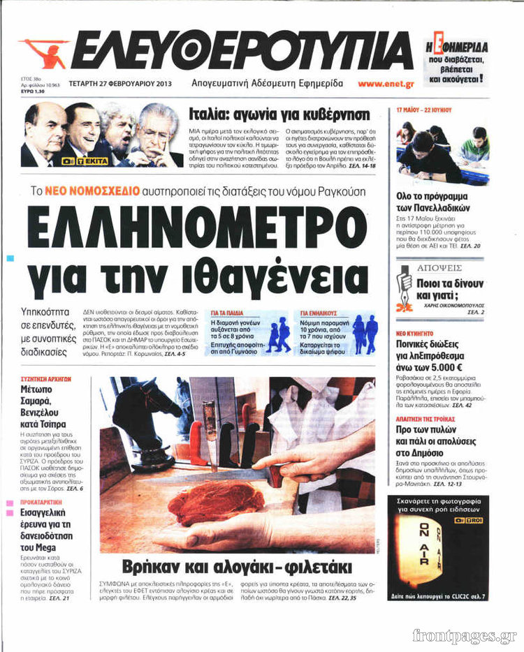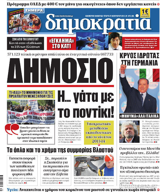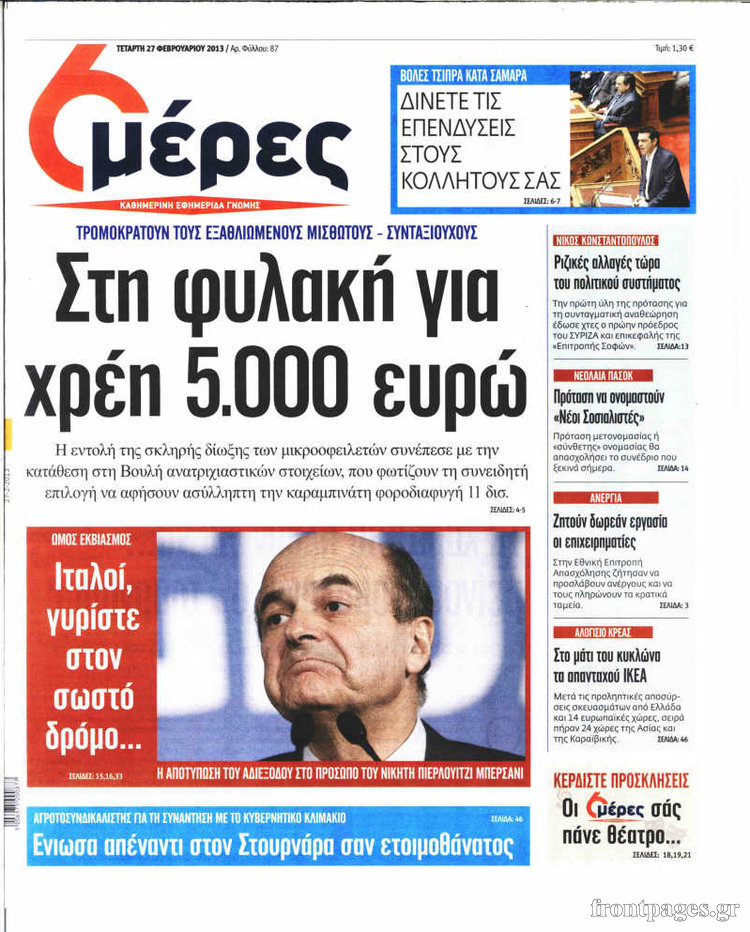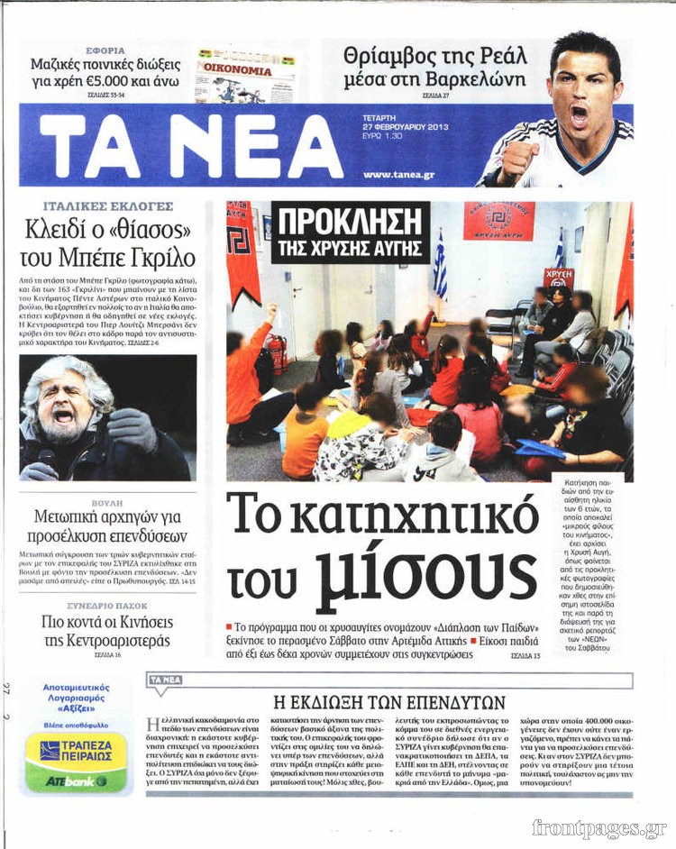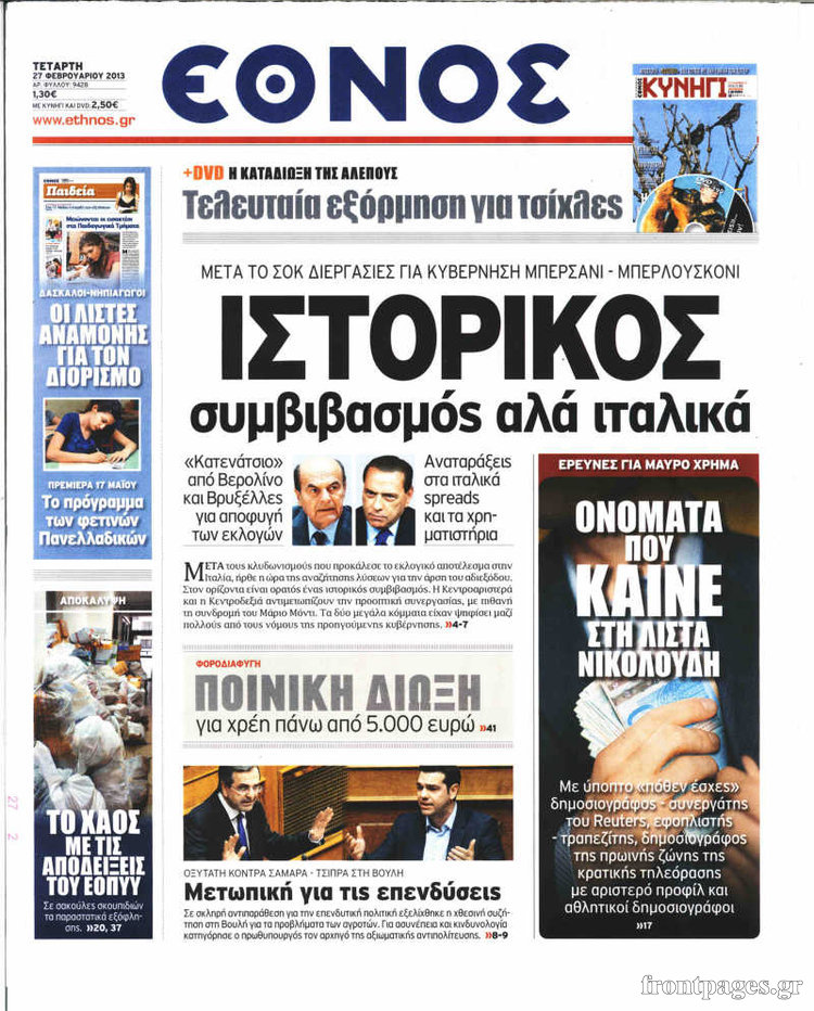 Οι πολιτικές εφημερίδες Enikos Newsroom 09:32, Τετάρτη 27 Φεβρουαρίου 2013 Media Οι πολιτικές εφημερίδες Τα πρωτοσέλιδα των πολιτικών εφημερίδων. ΕΦΗΜΕΡΙΔΕΣ ΠΟΛΙΤΙΚΕΣ ΕΦΗΜΕΡΙΔΕΣ ΠΡΩΤΟΣΕΛΙΔΑ Μοιράσου το: σχολίασε κι εσύ (0 σχόλια) Ακολουθήστε το enikos.gr στο Google News και μάθετε πρώτοι όλες τις ειδήσεις Δείτε όλες τις τελευταίες ειδήσεις από την Ελλάδα και τον Κόσμο στο enikos.gr Ειδήσεις Ροή Ειδήσεων 6 ώρες πριν Δολοφονία στην Κρήτη: Σκότωσε τον 67χρονο αδελφό του με μαχαίρι έπειτα από καβγά 6 ώρες πριν Βιολάντα: Κρατούμενος μέχρι την απολογία του ο ιδιοκτήτης του εργοστασίου – Τα στοιχεία που οδήγησαν στην αναβάθμιση του κατηγορητηρίου 6 ώρες πριν Λούτσα: Μαρτυρίες ότι ο οδηγός του οχήματος τράβηξε χειρόφρενο πριν το τροχαίο – Σοκ προκαλεί το ηχητικό ντοκουμέντο από το συμβάν 6 ώρες πριν Σοκ στην Αλεξανδρούπολη: Άνδρας βρέθηκε νεκρός μέσα στο διαμέρισμά του – Φέρει πολλαπλά τραύματα απο μαχαίρι 6 ώρες πριν Washington Post: Ο Ρούμπιο μετέφερε στους Ευρωπαίους το σκληρό μήνυμα του Τραμπ, αλλά με πιο ήπιο τόνο – «Θα είμαστε πάντα παιδιά της Ευρώπης» 7 ώρες πριν Ύπνος: 7 πράγματα στο υπνοδωμάτιο που καταστρέφουν κρυφά την ξεκούρασή σας, σύμφωνα με ειδικούς 8 ώρες πριν Αριθμολογία: Οι άνθρωποι που έχουν γεννηθεί 3 συγκεκριμένες ημερομηνίες, έχουν την πιο ζεστή καρδιά 10 ώρες πριν Καθαρισμός τοίχων: Πώς να εξαφανίσετε εύκολα σημάδια και γρατζουνιές με ένα μόνο εργαλείο 6 ώρες πριν Πού βρήκαν οι πρώτοι αγρότες στη Γη το σιτάρι και το κριθάρι; Νέα μελέτη αποκαλύπτει πού γεννήθηκε τελικά η γεωργία 14 λεπτά πριν Λίβερπουλ – Μπράιτον 3-0: Ψαγμένος οπαδός πήγε στο Άνφιλντ ντυμένος… γλάρος – Δείτε τα γκολ 29 λεπτά πριν Πρωθυπουργός της Δανίας: Ο Τραμπ ακόμη «ποθεί» η χώρα του να αποκτήσει τη Γροιλανδία 45 λεπτά πριν Επιχείρηση στις φυλακές Μαλανδρίνου: Ο βαρυποινίτης και η 23χρονη που έκρυβε ναρκωτικά στα γεννητικά της όργανα 60 λεπτά πριν Σήμερα με τη Realnews: Ό,τι και αν αγοράσεις, σκανάρεις και κερδίζεις! 1 ώρα πριν Αδελφοκτονία στην Κρήτη: Φωτογραφίες από το σπίτι της τραγωδίας – Στον 63χρονο το μαύρο 4Χ4 ENIKOS NETWORK Δερματολόγος εξηγεί πώς να φροντίζουμε την επιδερμίδα μας τον χειμώνα – Τι να κάνετε αν είναι λιπαρή Είναι δυνατόν να με απατήσει την ημέρα του Αγίου Βαλεντίνου; Ιδιωτική ντετέκτιβ μοιράζεται τα 3 σημάδια που μπορεί να το απ... Νέες θέσεις στάθμευσης στο κέντρο της Αθήνας – Το σχέδιο του Δήμου Αγορά νεόδμητου ακινήτου: Τι πρέπει να προσέξετε πριν υπογράψετε – Τα 5 σημεία «κλειδιά» Ευπάθεια στο moltbook ai αποκαλύπτει email, tokens σύνδεσης και api keys Αυτός είναι ο ρόλος της μικρής τρύπας στους νυχοκόπτες – «Είμαι ο μόνος που δεν το ήξερε;»» περισσότερα 04:00 , Κυριακή 15 Φεβρουαρίου 2026 Σήμερα με τη Realnews: Ό,τι και αν αγοράσεις, σκανάρεις και κερδίζεις! Σήμερα με τη Realnews: Ό,τι και αν αγοράσεις, σκανάρεις και κερδίζεις! Με το PADU app, το κορυ... 03:19 , Κυριακή 15 Φεβρουαρίου 2026 J2US: «Ακούστηκε ένα μπάμ!» και… μοίρασαν καρδιακά η Έφη Θώδη μαζί με DJ Δελέαση σ’ ένα ανατρεπτικό ντουέτο – Δείτε βίντεο Η Έφη Θώδη… μοίρασε καρδιακά εμφανιζόμενη μαζί με τον DJ Deleasis, σε μια εκρηκτική συνε... 03:00 , Κυριακή 15 Φεβρουαρίου 2026 Σήμερα με τη Realnews: Ένας βασιλικός φόνος της συγγραφέως S.J. Bennett – Η βασίλισσα αναζητεί την αλήθεια σε μια σκοτεινή ιστορία δράσης και μυστηρίου Σήμερα με τη Realnews: Ένας βασιλικός φόνος της συγγραφέως S.J. Bennett – Η βασίλισσα ... 02:00 , Κυριακή 15 Φεβρουαρίου 2026 Η Realnews στο www.pressreader.com Διαβάστε την ψηφιακή έκδοση της 
