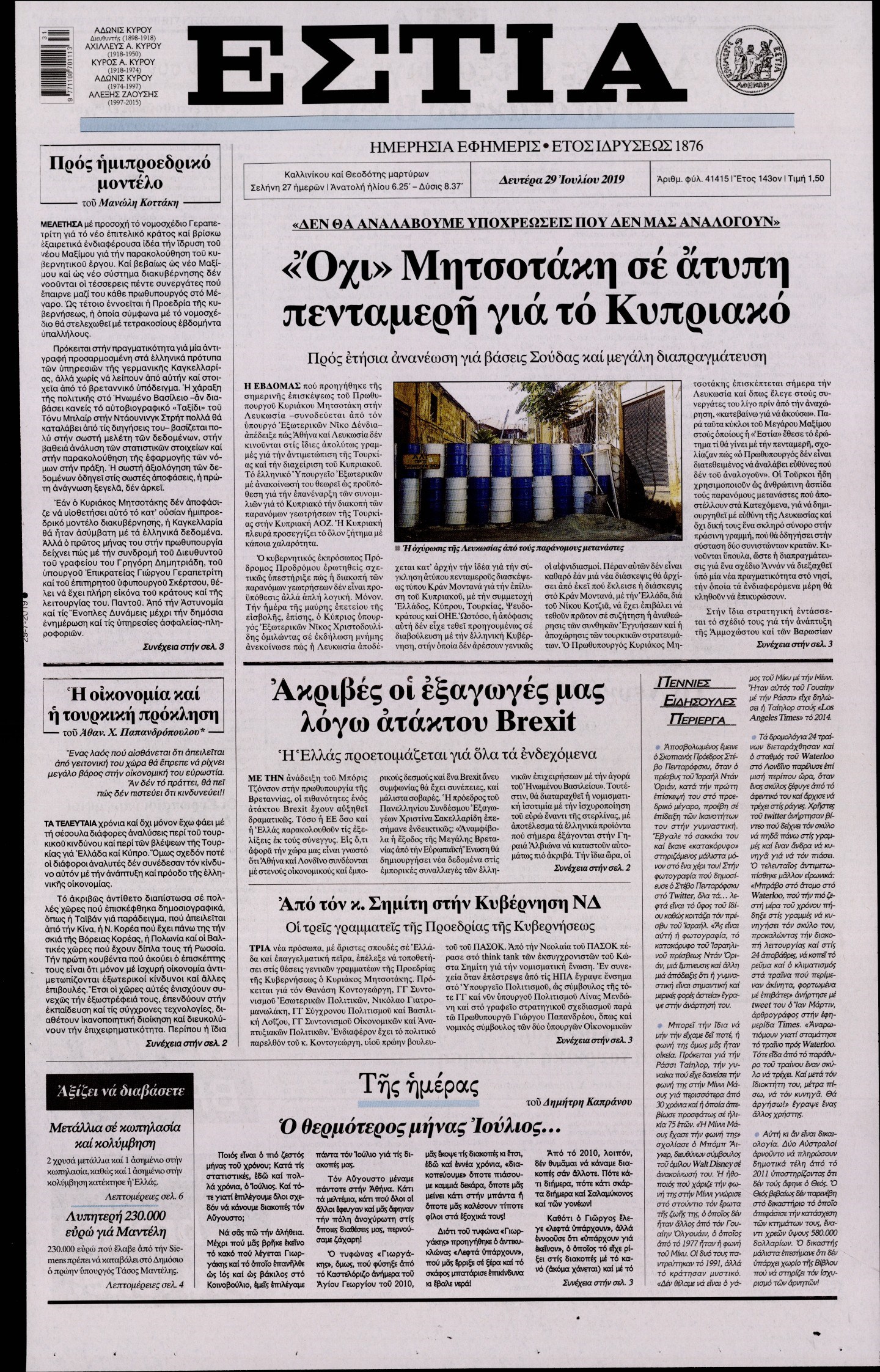 Οι πολιτικές εφημερίδες 29/7/19 Enikos Newsroom 07:49, Δευτέρα 29 Ιουλίου 2019 Media Διαβάστε τα πρωτοσέλιδα των πολιτικών εφημερίδων: ΠΟΛΙΤΙΚΕΣ ΕΦΗΜΕΡΙΔΕΣ ΠΡΩΤΟΣΕΛΙΔΑ Μοιράσου το: σχολίασε κι εσύ (0 σχόλια) Ακολουθήστε το enikos.gr στο Google News και μάθετε πρώτοι όλες τις ειδήσεις Δείτε όλες τις τελευταίες ειδήσεις από την Ελλάδα και τον Κόσμο στο enikos.gr Ειδήσεις Ροή Ειδήσεων 9 ώρες πριν Χριστούγεννα στα μπλόκα: Επιμένουν στις κινητοποιήσεις τους οι αγρότες – Ανοίγουν τα διόδια το Σαββατοκύριακο 1 ώρα πριν Σαρωτικοί οι έλεγχοι στους δρόμους ενόψει εορτών – Μπλόκα της τροχαίας σε κεντρικές αρτηρίες της Αττικής 8 ώρες πριν Πούτιν: Τα μηνύματα σε Ευρώπη και ΝΑΤΟ από το μαραθώνιο «σόου» του – Η απαίτηση για «σεβασμό» και η ειρήνη «με τους όρους» της Μόσχας 8 ώρες πριν ΗΠΑ: Η κυβέρνηση του Ντόναλντ Τραμπ άρχισε να δημοσιοποιεί τα αρχεία Έπσταϊν 8 ώρες πριν Άνω Λιόσια: Πυροβολισμοί σε επιχείρηση με χαλιά – Εντοπίστηκαν 10 κάλυκες 1 ώρα πριν Αυγά: Πόσα μπορείτε να τρώτε την ημέρα με ασφάλεια για μέγιστη πρόσληψη πρωτεΐνης 2 ώρες πριν Τα ζώδια σήμερα, Σάββατο 20 Δεκεμβρίου: Παρθένοι, το σύμπαν σας δίνει το κλειδί 8 ώρες πριν Ανακαλύφθηκαν αρχαία χρυσά νομίσματα 2.200 ετών που απεικονίζουν τον θεό Απόλλωνα – Η άγνωστη σύνδεση με τον Φίλιππο Β΄ της Μακεδονίας 1 ώρα πριν Οπτική ψευδαίσθηση: Μόνο αν είσαι ο Σέρλοκ Χολμς θα βρεις τον αριθμό «87» σε 7 δευτερόλεπτα 8 λεπτά πριν Οι αθλητικές μεταδόσεις 20/12/2025 18 λεπτά πριν Εορτολόγιο: Ποιοι γιορτάζουν σήμερα 20 Δεκεμβρίου 25 λεπτά πριν Συρία: Μπαράζ αμερικανικών επιδρομών εναντίον του ISIS – «Πλήττουμε δυνατά οχυρά του ΙΚ» λέει ο Ντόναλντ Τραμπ 33 λεπτά πριν Αναβολή συμφωνίας ΕΕ-Mercosur: Ο χρόνος «δεν είναι απεριόριστος» προειδοποιεί η Παραγουάη 48 λεπτά πριν Κίριλ Ντμίτριεφ: Στις ΗΠΑ ο απεσταλμένος της Ρωσίας για συνομιλίες με τους ομολόγους του, Γουίτκοφ και Κούσνερ ENIKOS NETWORK Πρέπει να αποδέχεστε ή να απορρίπτετε όλα τα cookies; Ένας ειδικός εξηγεί Η αγαπημένη λιχουδιά των πόνι που μπορεί να ενισχύσει όραση, εγκέφαλο και ανοσοποιητικό Αναστολή μέτρων αναγκαστικής εκτέλεσης για κτηνοτρόφους που πλήττονται από την ευλογιά των αιγοπροβάτων Πλήρης επάρκεια προϊόντων στις λαϊκές της Αττικής, παρά τις αγροτικές κινητοποιήσεις – Τι απαντούν οι πωλητές Χαρτογραφώντας το «σημείο χωρίς επιστροφή»: Για πρώτη φορά αποκαλύπτεται με λεπτομέρεια το ακανθώδες όριο της ατμόσφαιρας τ... Η Google καταργεί τη λειτουργία «dark web report» – Πώς θα μπορούν οι χρήστες να διαγράφουν τα δεδομένα τους περισσότερα 05:48 , Σάββατο 20 Δεκεμβρίου 2025 Οι οικονομικές εφημερίδες 20/12/2025 Διαβάστε τα πρωτοσέλιδα από τις οικονομικές εφημερίδες, σήμερα 20/12/2025. 05:43 , Σάββατο 20 Δεκεμβρίου 2025 Οι αθλητικές εφημερίδες 20/12/2025 Διαβάστε τα πρωτοσέλιδα από τις αθλητικές εφημερίδες, σήμερα 20/12/2025. 05:38 , Σάββατο 20 Δεκεμβρίου 2025 Οι πολιτικές εφημερίδες 20/12/2025 Διαβάστε τα πρωτοσέλιδα από τις πολιτικές εφημερίδες, σήμερα 20/12/2025. 04:20 , Σάββατο 20 Δεκεμβρίου 2025 Αγγελική Νικολούλη: Τα συλλυπητήρια για την απώλεια της Ειρήνης Μαρινάκη Τα συλληπητήρια στον πρόεδρο του Mega, τον Βαγγέλη Μαρινάκη, για την απώλεια της μητέρας του Ε... ΤΕΛΕΥΤΑΙΕΣ ΕΙΔΗΣΕΙΣ 8 λεπτά πριν Οι αθλητικές μεταδόσεις 20/12/2025 18 λεπτά πριν Εορτολόγιο: Ποιοι γιορτάζουν σήμερα 20 Δεκεμβρίου 25 λεπτά πριν Συρία: Μπαράζ αμερικανικών επιδρομών εναντίον του ISIS... 33 λεπτά πριν Αναβολή συμφωνίας ΕΕ-Mercosur: Ο χρόνος «δεν είναι... 48 λεπτά πριν Κίριλ Ντμίτριεφ: Στις ΗΠ