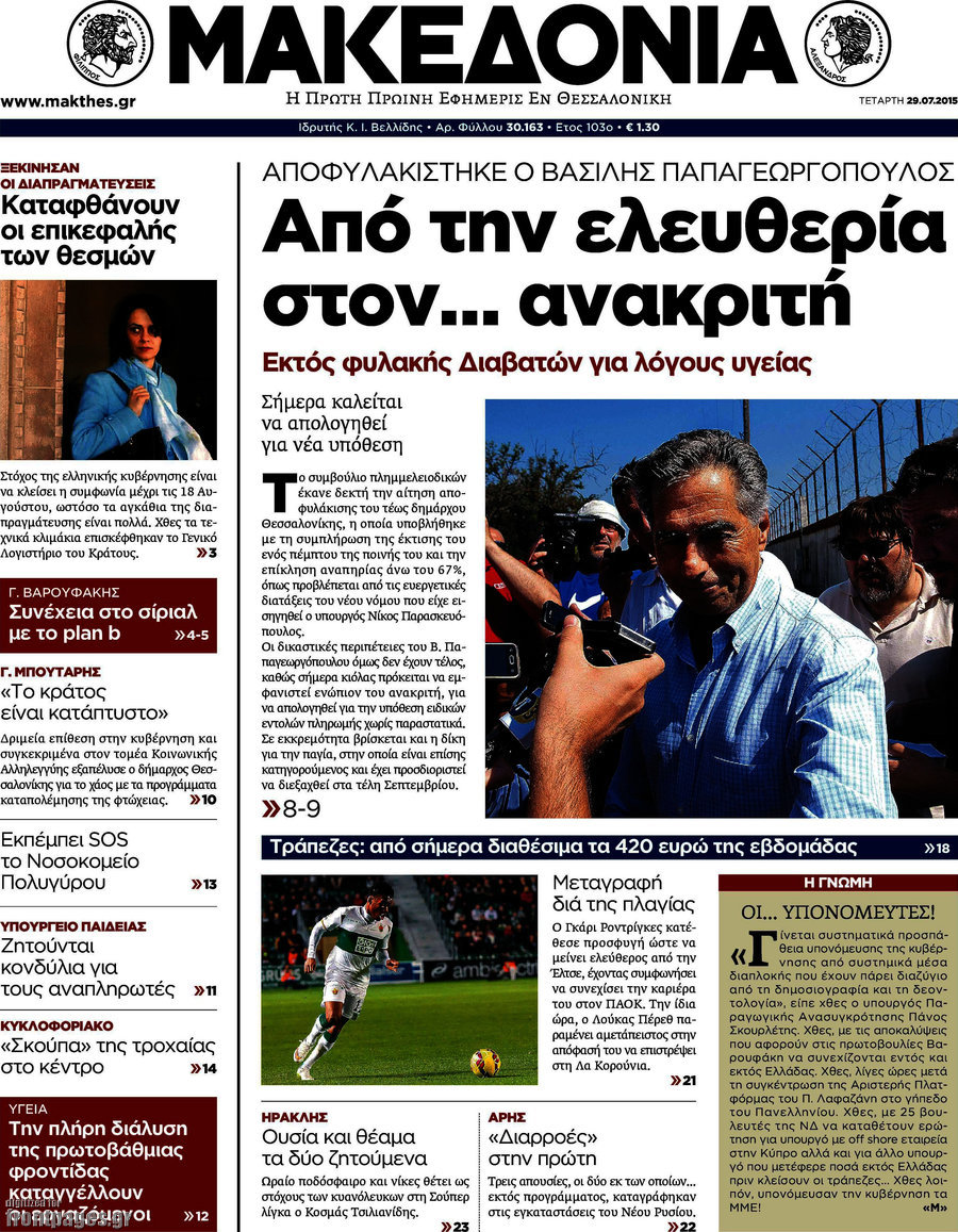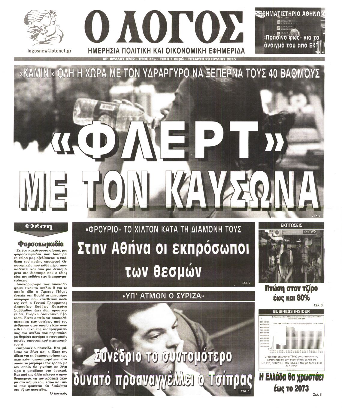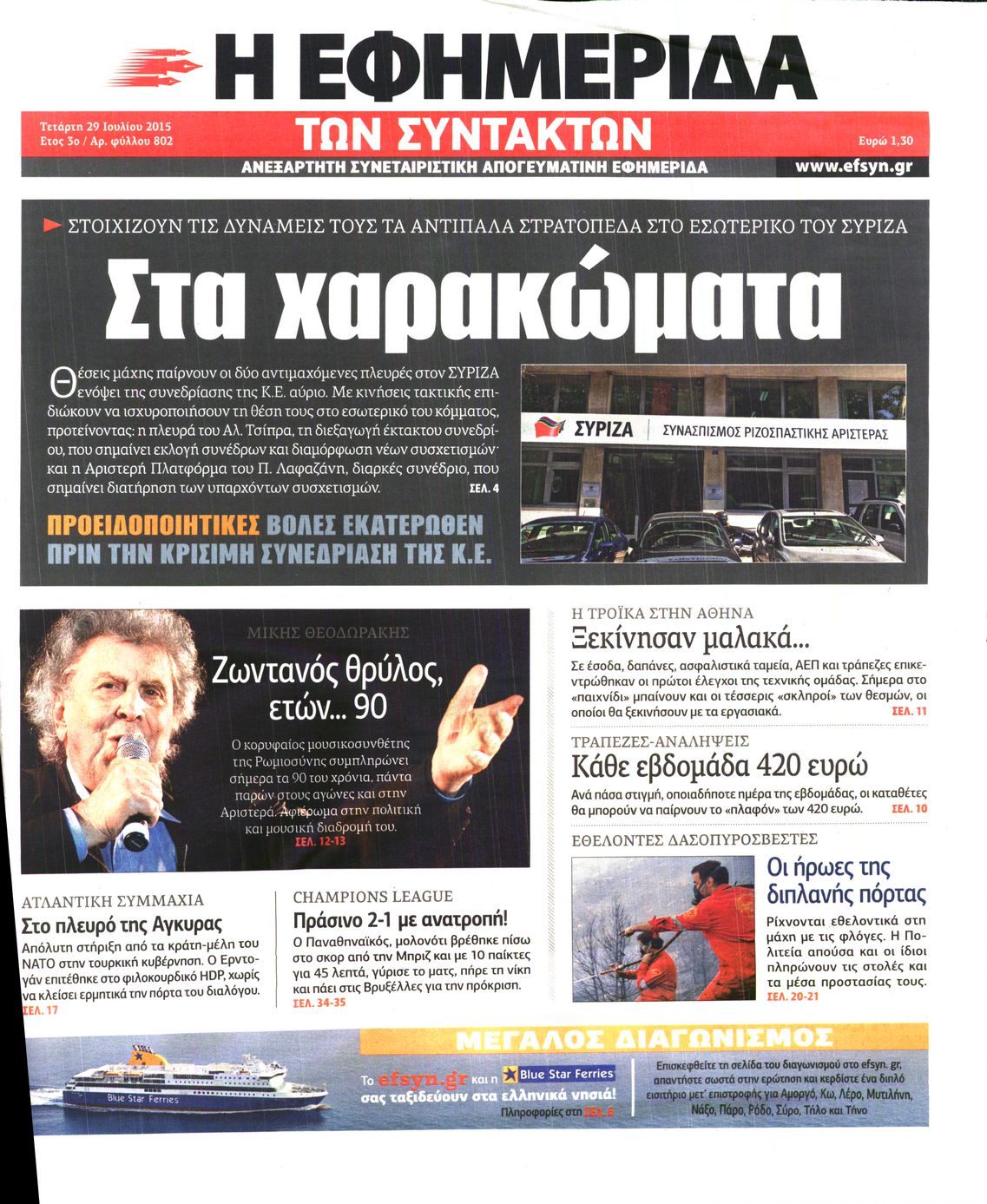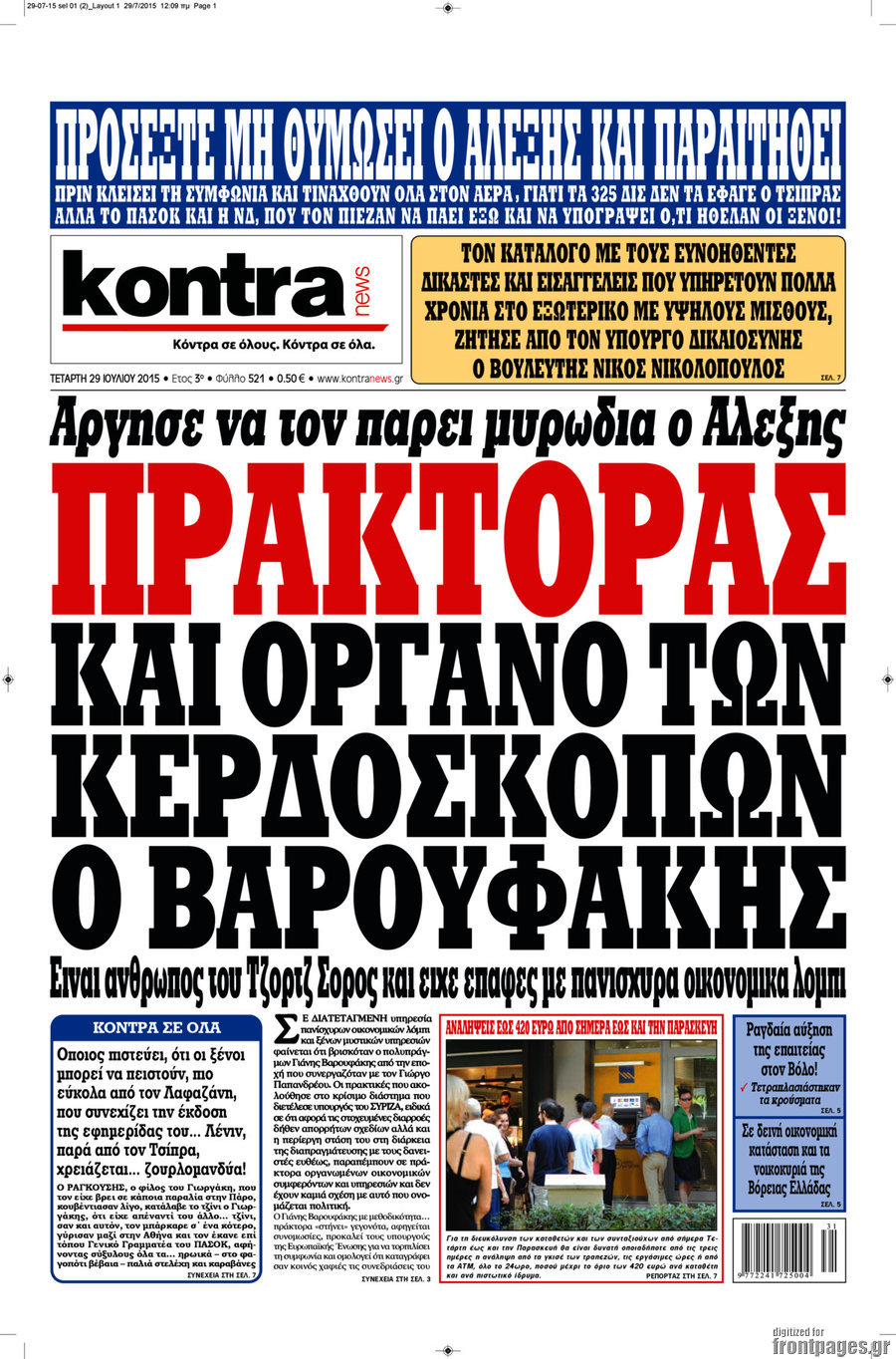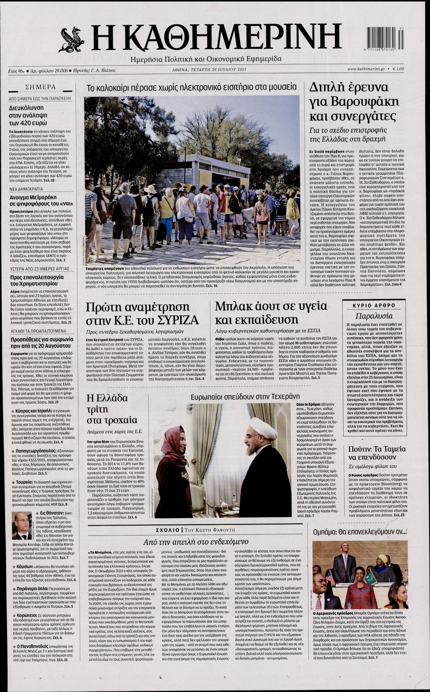 Οι πολιτικές εφημερίδες 29/7/2015 Enikos Newsroom 07:52, Τετάρτη 29 Ιουλίου 2015 Media Διαβάστε τα σημερινά πρωτοσέλιδα των πολιτικών εφημερίδων. ΕΦΗΜΕΡΙΔΕΣ ΟΙ ΠΟΛΙΤΙΚΕΣ ΕΦΗΜΕΡΙΔΕΣ ΠΡΩΤΟΣΕΛΙΔΑ Μοιράσου το: σχολίασε κι εσύ (0 σχόλια) Ακολουθήστε το enikos.gr στο Google News και μάθετε πρώτοι όλες τις ειδήσεις Δείτε όλες τις τελευταίες ειδήσεις από την Ελλάδα και τον Κόσμο στο enikos.gr Ειδήσεις Ροή Ειδήσεων 2 ώρες πριν Αυξάνουν την πίεση προς την κυβέρνηση οι αγρότες: Κλείνουν παρακαμπτήριους και ανοίγουν διόδια – Τι θα γίνει τις γιορτές 24 λεπτά πριν ΟΠΕΚΕΠΕ: Προφυλακιστέος ο φερόμενος αρχηγός και ο λογιστής της εγκληματικής οργάνωσης 1 ώρα πριν Φοινικούντα: Το Σάββατο απολογείται ο 30χρονος γιος γνωστού επιχειρηματία της Πλάκας που παραδόθηκε – Όσα είπε στους αστυνομικούς και ο ρόλος του στο έγκλημα 1 ώρα πριν Μπορεί ο Μαδούρο να αντέξει τον αποκλεισμό του Τραμπ; Τι θα χρειαστεί η Ουάσινγκτον για να τον ανατρέψει 3 ώρες πριν Πρίγκιπας Ουίλιαμ – Κέιτ: Η νέα οικογενειακή φωτογραφία για τις Χριστουγεννιάτικες κάρτες του 2025 2 ώρες πριν Ύπνος: Η απλή βραδινή ρουτίνα για να προστατεύσετε τα μαλλιά σας από το κρύο κατά τη διάρκεια του χειμώνα 3 ώρες πριν Manifesting: Πώς να συναντήσετε τον σύντροφο της ζωής σας, ανάλογα με τον μήνα γέννησής σας 2 ημέρες πριν 20 χρόνια τα Χριστούγεννα ξεκινούν στα Public με μεγάλη ποικιλία σε δώρα! 1 ώρα πριν Αρχαιολόγοι ανακάλυψαν ρωμαϊκά τεχνουργήματα από μια πόλη που δεν υπήρξε ποτέ – Τα τρία εντυπωσιακά κτίρια και ο αμφορέας με τις… σαρδέλες 4 λεπτά πριν ΑΕΚ – Κραϊόβα 3-2: Επική ανατροπή και πρόκριση στους «16» του Conference League η Ένωση 24 λεπτά πριν ΟΠΕΚΕΠΕ: Προφυλακιστέος ο φερόμενος αρχηγός και ο λογιστής της εγκληματικής οργάνωσης 34 λεπτά πριν Αθηνά Μαξίμου: Η τρυφερή ανάρτηση για τα γενέθλια του Αιμίλιου Χειλάκη – «Είναι η εκλεκτική συγγένειά μου, η επιλογή και η ευθύνη μου» 50 λεπτά πριν Παναθηναϊκός – Χάποελ Τελ Αβίβ 93-82: Με… φόρα από την Κωνσταντινούπολη 1 ώρα πριν Μπορεί ο Μαδούρο να αντέξει τον αποκλεισμό του Τραμπ; Τι θα χρειαστεί η Ουάσινγκτον για να τον ανατρέψει ENIKOS NETWORK Σε περίοδο αυξημένης δραστηριότητας η γρίπη στην Ελλάδα-Μέτρα προστασίας από τον ΕΟΔΥ Σκέφτεστε συνέχεια συζητήσεις που έχετε κάνει; Τι σημαίνει αυτό, σύμφωνα με ειδικό Στεγαστικό: Τι λέει η ΠΟΜΙΔΑ για τα νέα μέτρα που ανακοίνωσε ο Κυριάκος Μητσοτάκης Λαγκάρντ: Αισιόδοξη για την ανάπτυξη της Ευρωζώνης, αβέβαιη για τον πληθωρισμό Χαρτογραφώντας το «σημείο χωρίς επιστροφή»: Για πρώτη φορά αποκαλύπτεται με λεπτομέρεια το ακανθώδες όριο της ατμόσφαιρας τ... Η Google καταργεί τη λειτουργία «dark web report» – Πώς θα μπορούν οι χρήστες να διαγράφουν τα δεδομένα τους περισσότερα 17:45 , Πέμπτη 18 Δεκεμβρίου 2025 ROUK ZOUK: Εορταστικό επεισόδιο με καλεσμένους τους πρωταγωνιστές του «Γιατί ρε πατέρα» Το Σάββατο 20 Δεκεμβρίου στις 21:00, η Ζέτα Μακρυπούλια υποδέχεται εκλεκτούς ηθοποιούς που όλο... 17:20 , Πέμπτη 18 Δεκεμβρίου 2025 Άγιος έρωτας: Η Χριστίνα εξομολογείται στον πατέρα Νικόλαο, απόψε στις 21:00 στον Alpha Η Νότα αποφασίζει να εκδικηθεί τον Πέτρο και τον Στέφανο, για χάρη του Λούη, όμως τα πράγματα ... 16:50 , Πέμπτη 18 Δεκεμβρίου 2025 Να μ’ αγαπάς: Ζωή και Φωτεινή συμφιλιώνονται ως μάνα με κόρη, απόψε στις 20:00 Η ταυτότητα του Άγγελου αποκαλύπτεται στο νέο επεισόδιο της σειράς “Να μ’ αγαπάς... 15:52 , Πέμπτη 18 Δεκεμβρίου 2025 Το Σπίτι Δίπλα Στο Ποτάμι: Το καθηλωτικό τελευταίο επεισόδιο για το 2025 απόψε στις 22:30 Καθηλώνει το